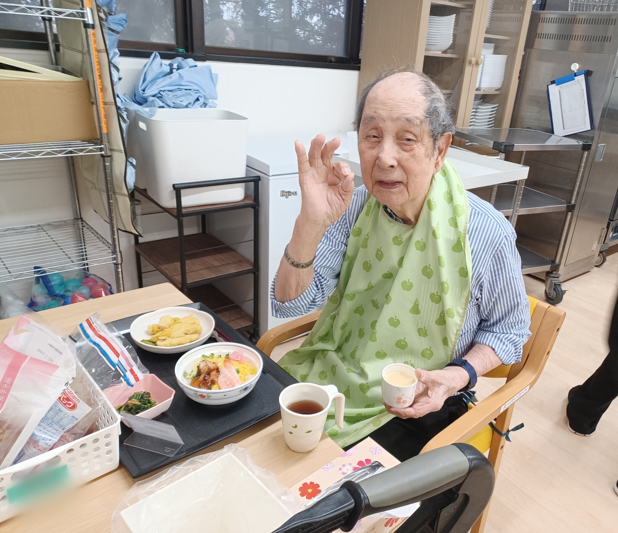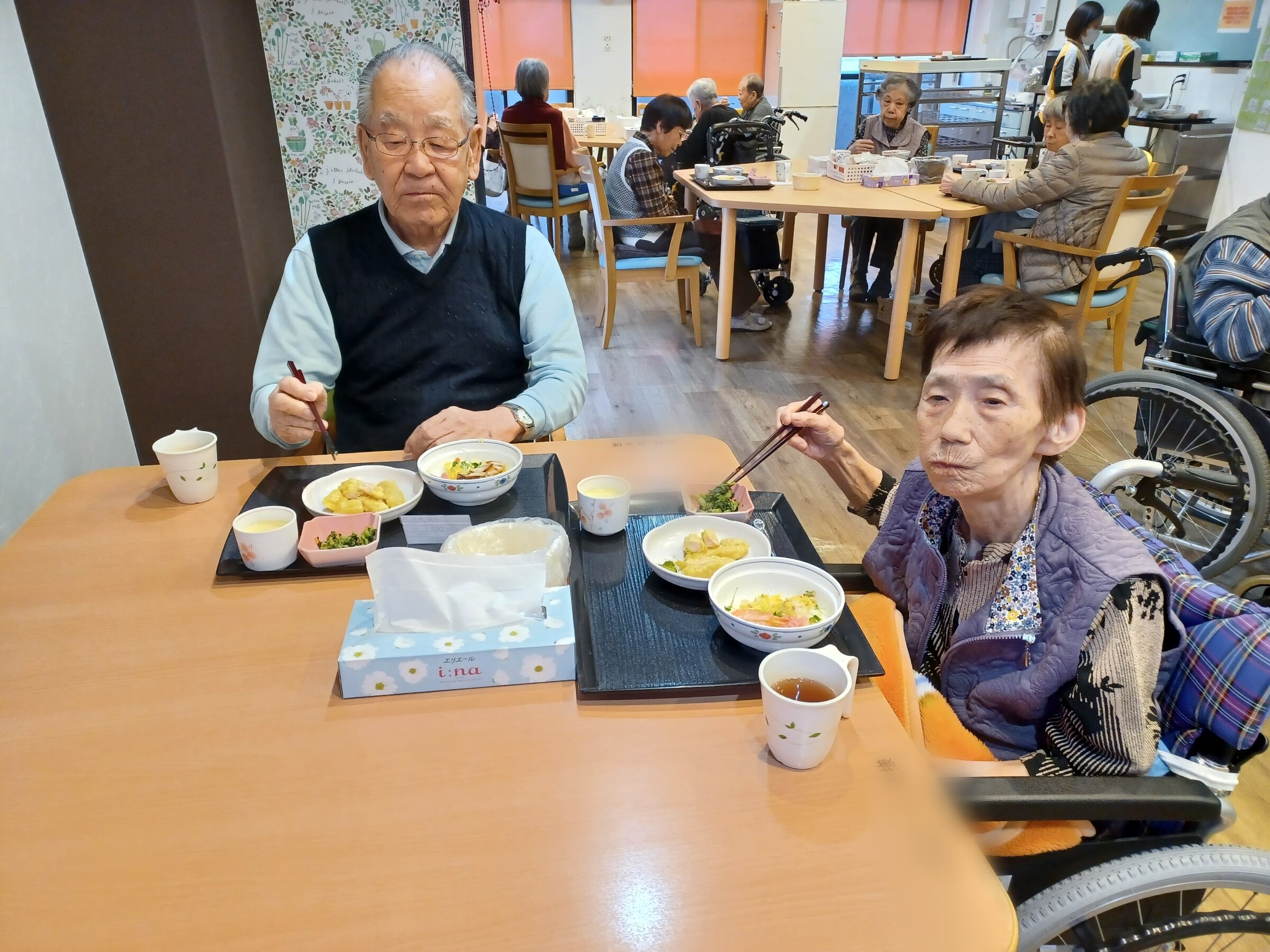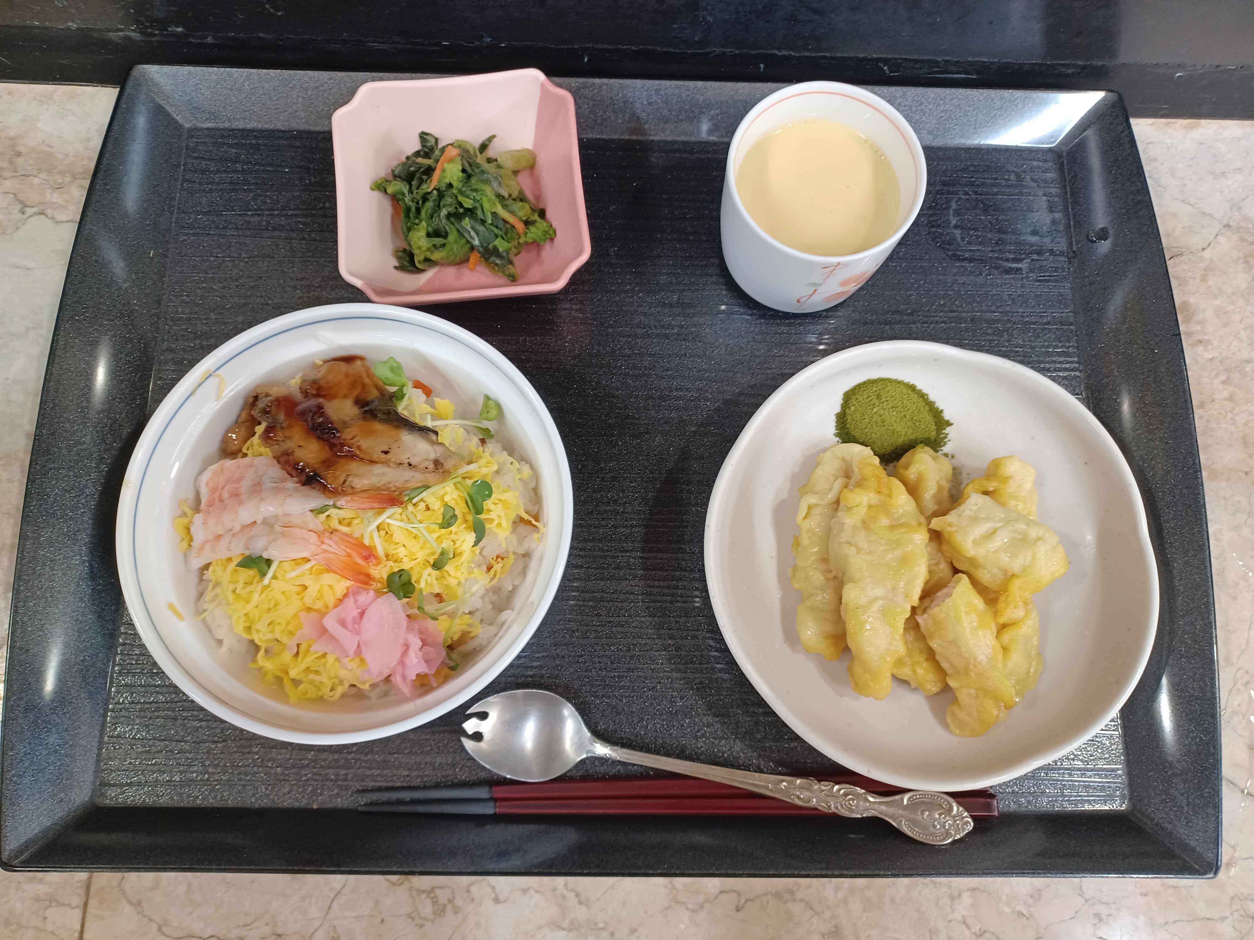4月4日にお花見メニューとして「五目寿司」と「鶏天」が振舞われました~