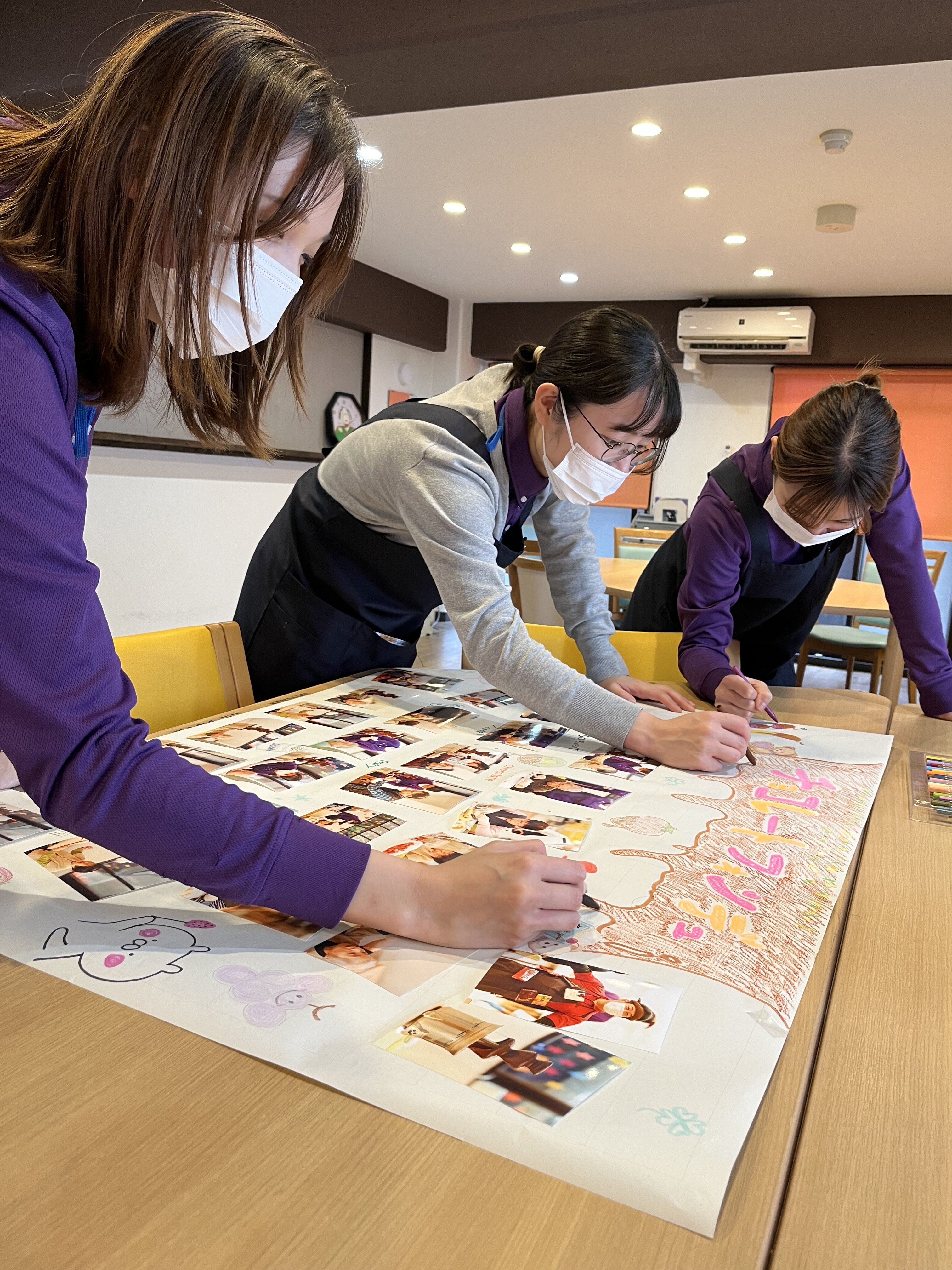 ご入居者の皆さまには顔を描いていただき、可愛いお雛様が完成しました♡