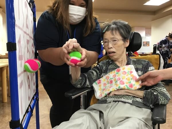 今年もグローバル職員に浴衣を着て頂いて、入居者様と一緒にお祭りを楽しんでもらいました!