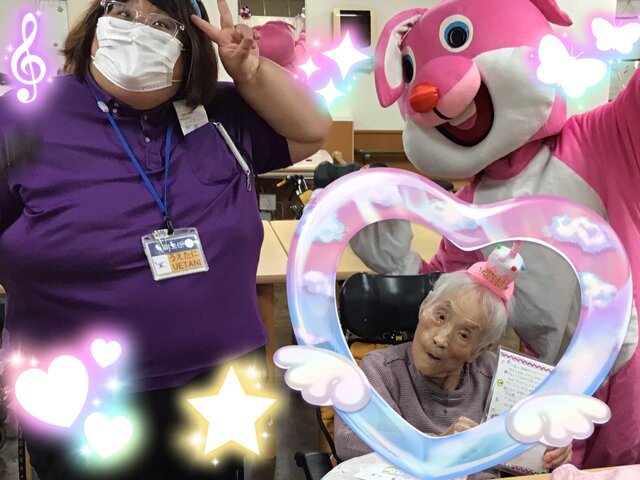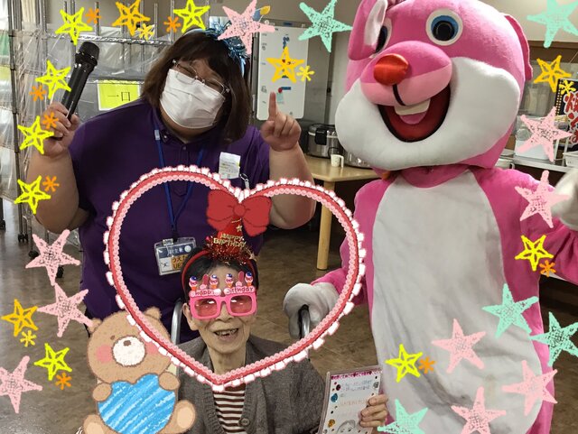 お手紙を代読すると笑顔で喜んで頂きました。職員からはメッセージカードとお花のプレゼントをさせて頂きました。