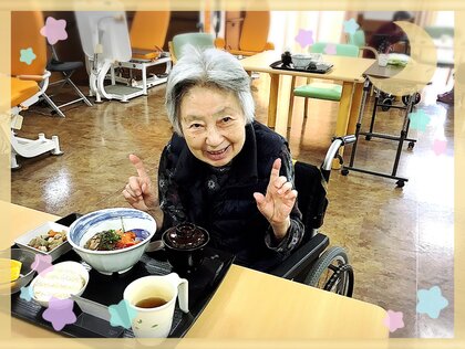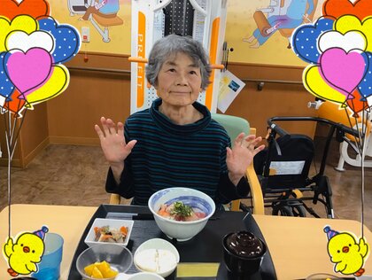 ご入居者のご長寿103歳のお祝いを持ってきてくださいました。