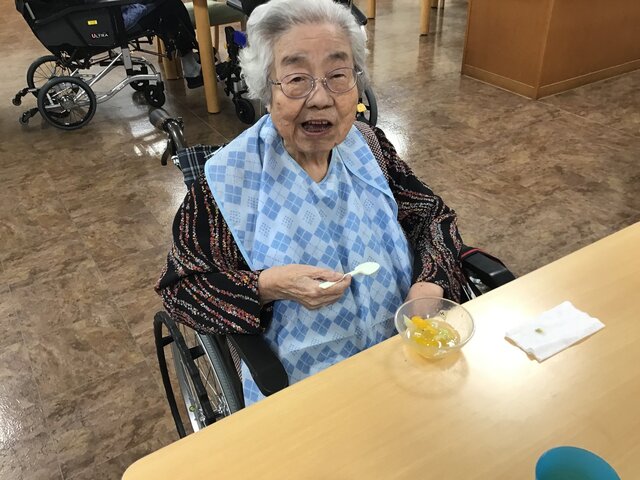 かき氷が食べにくい方はゼリーを召し上がっていただきました。