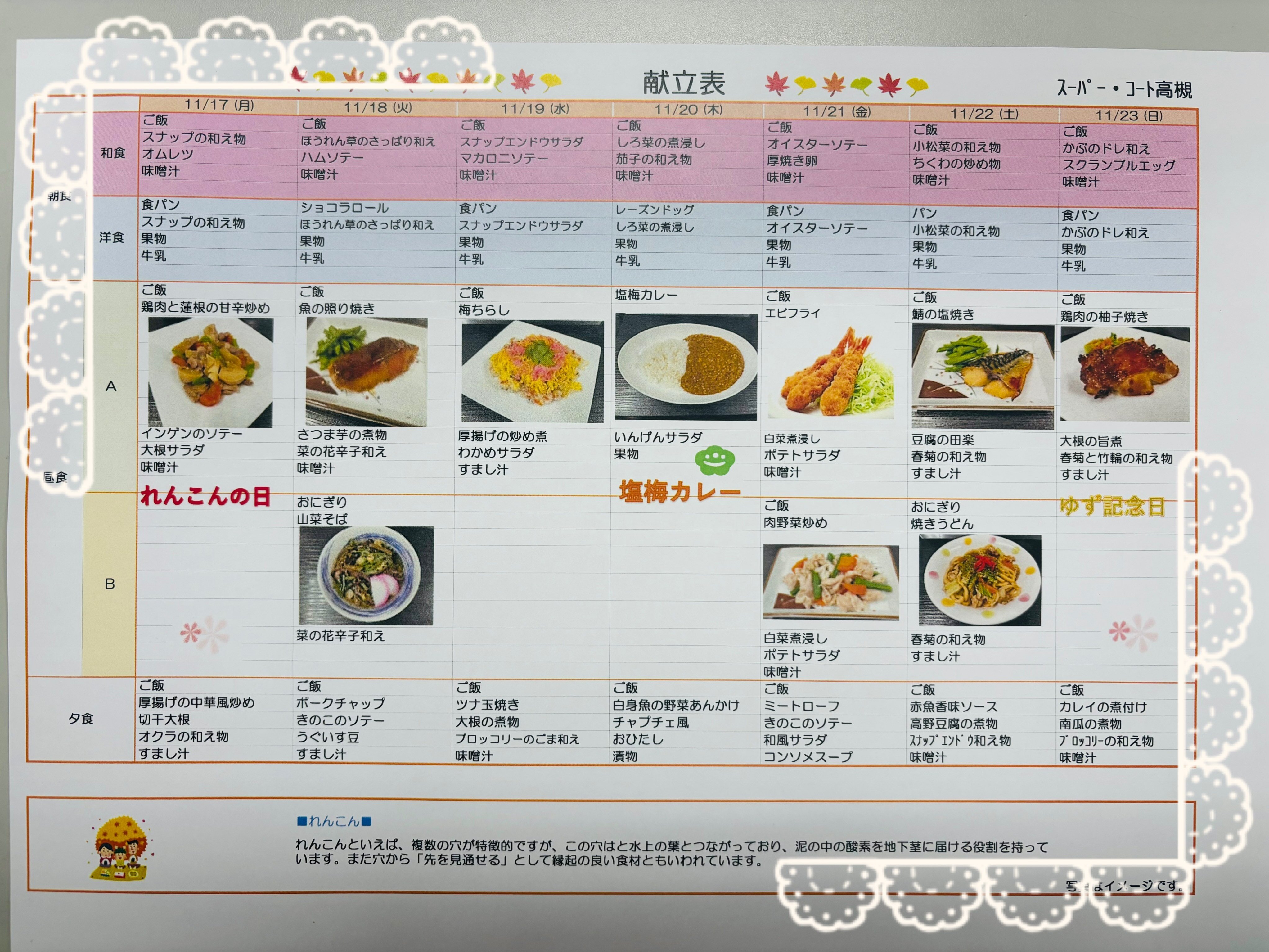 11/17(月)~11/30(日)の献立をご紹介しますね(^^♪