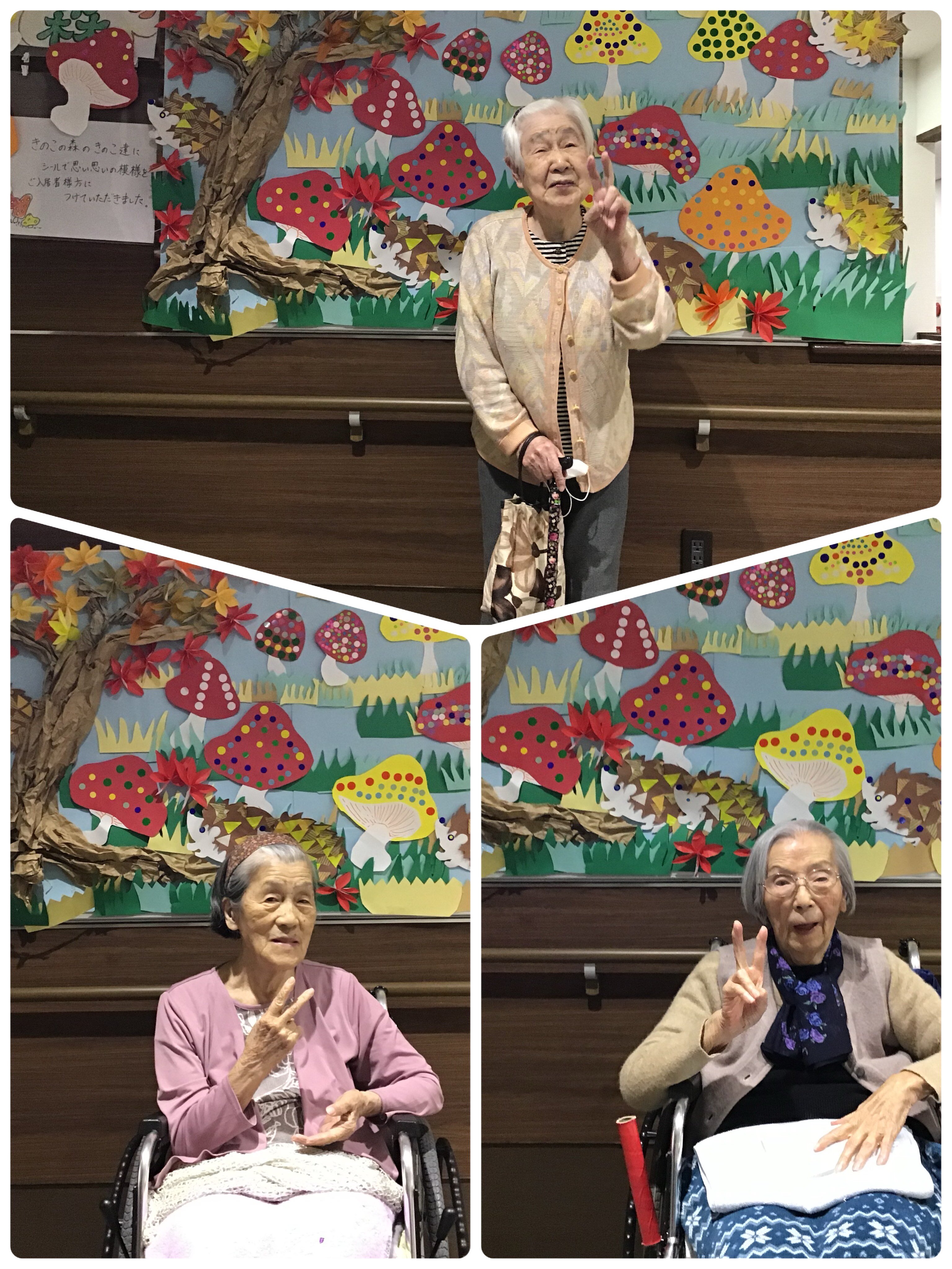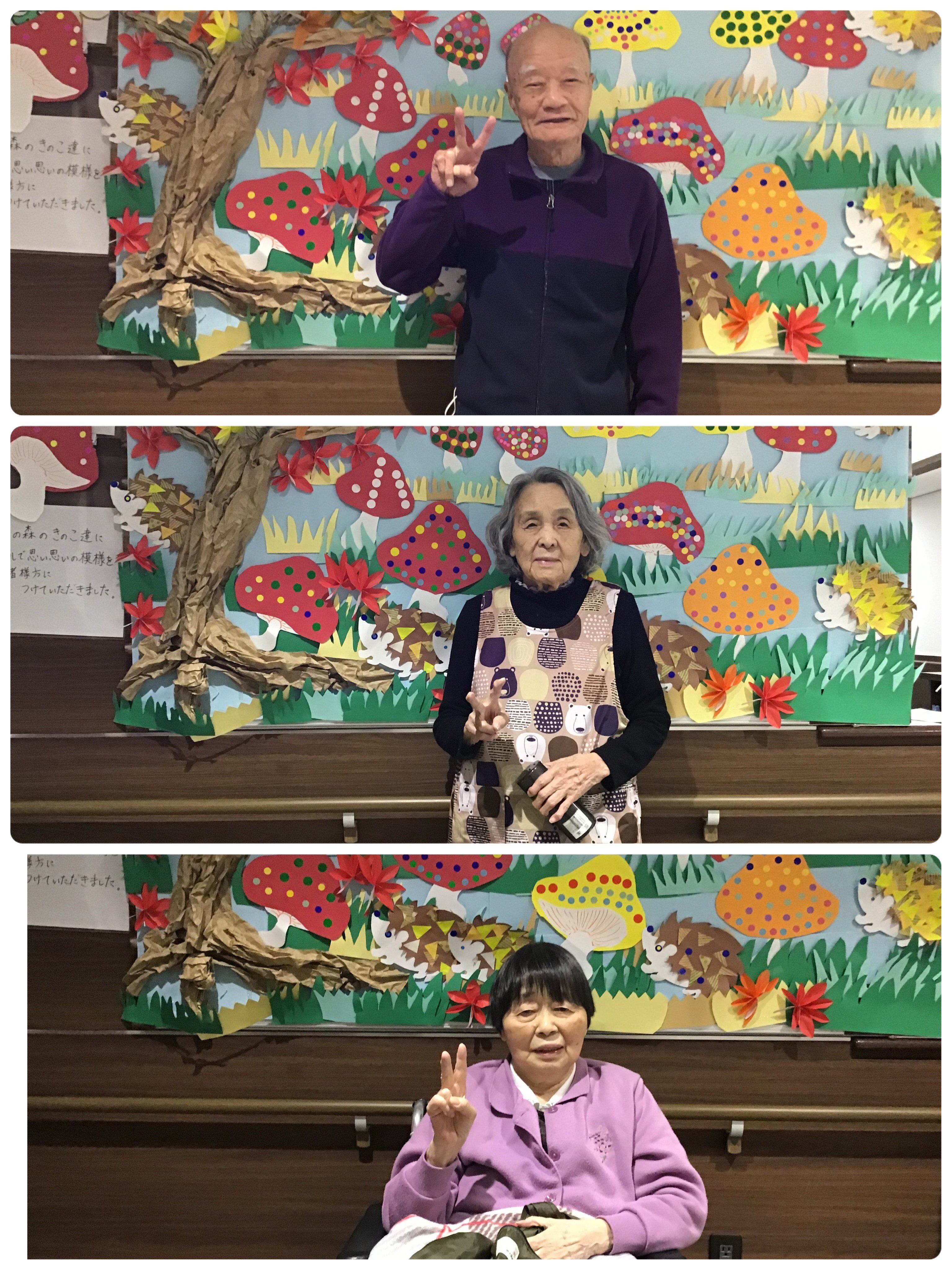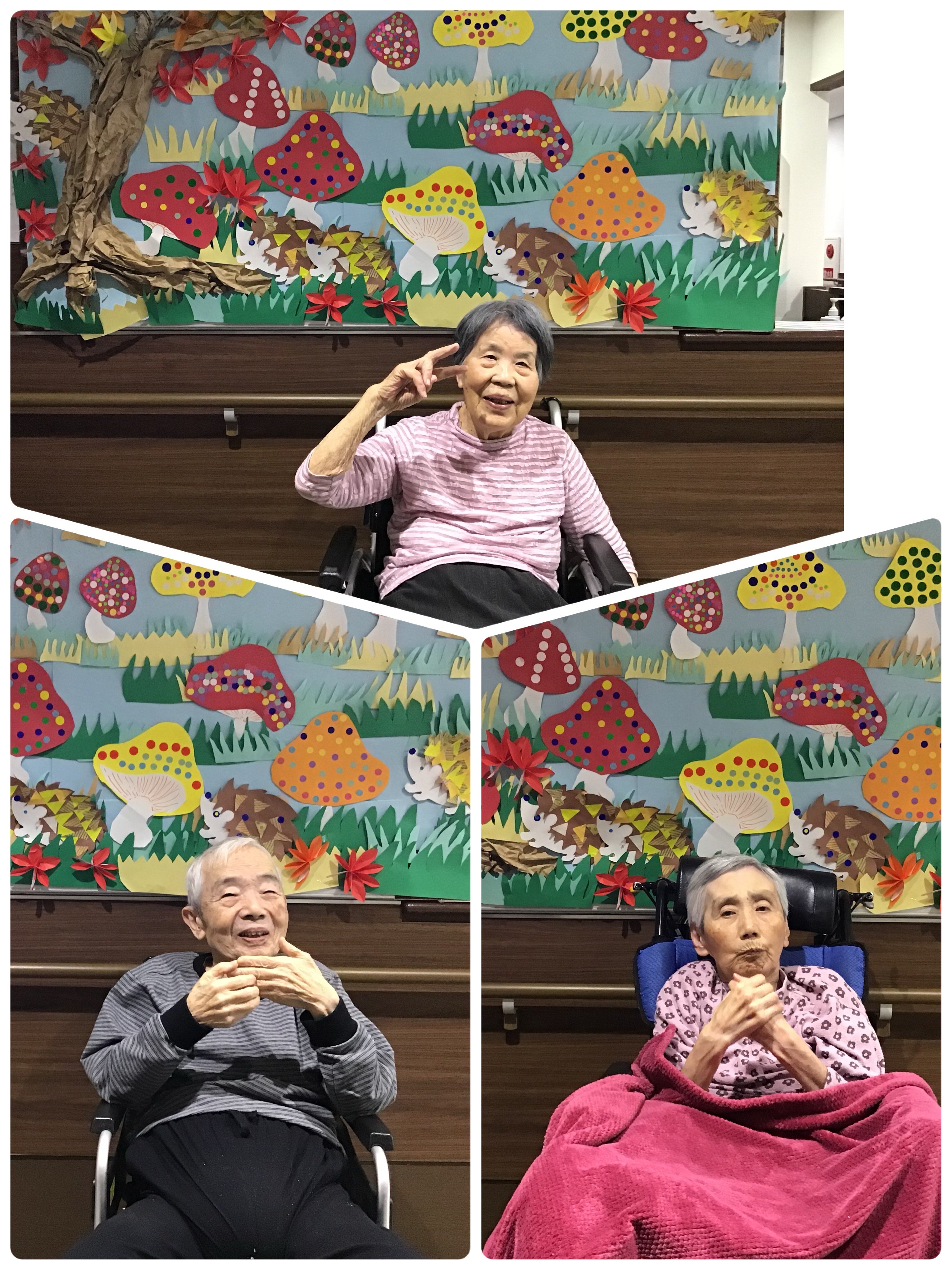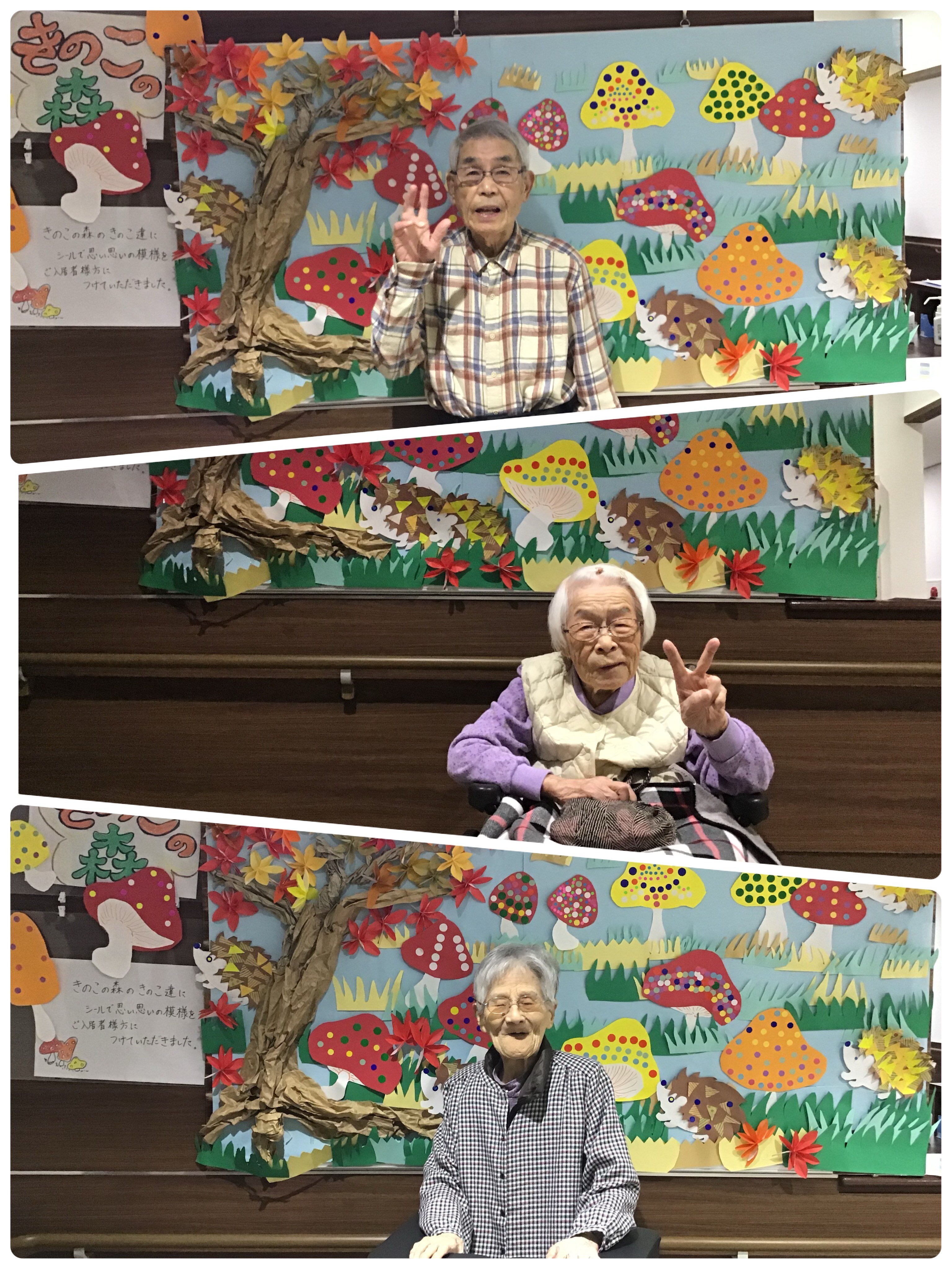 11月にご入居者の皆様が制作した「きのこの森」の前で写真撮影をいたしました(^O^)