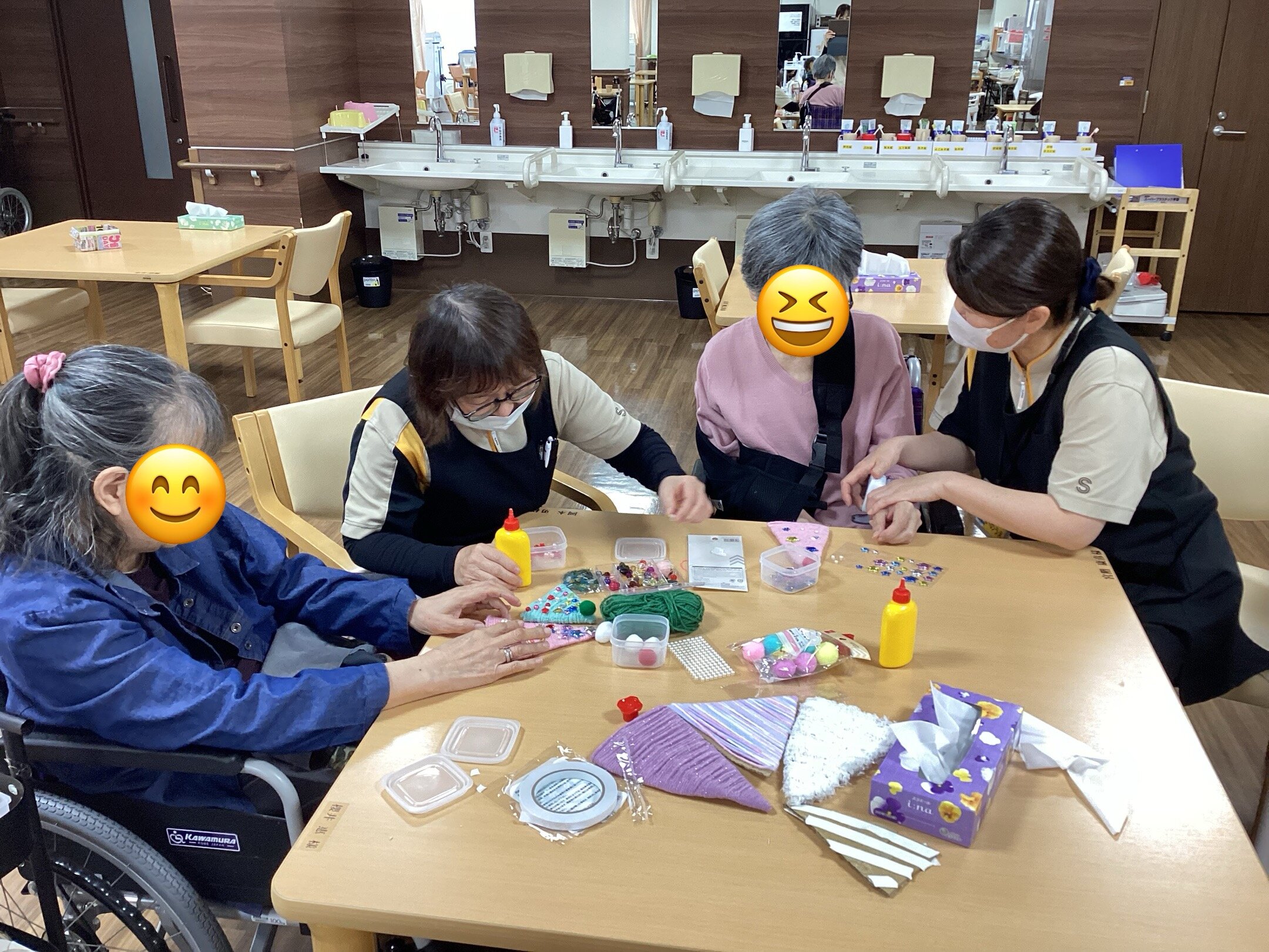 食堂前の壁面を、ご入居者の皆様が頑張って制作して下さっています(#^^#)