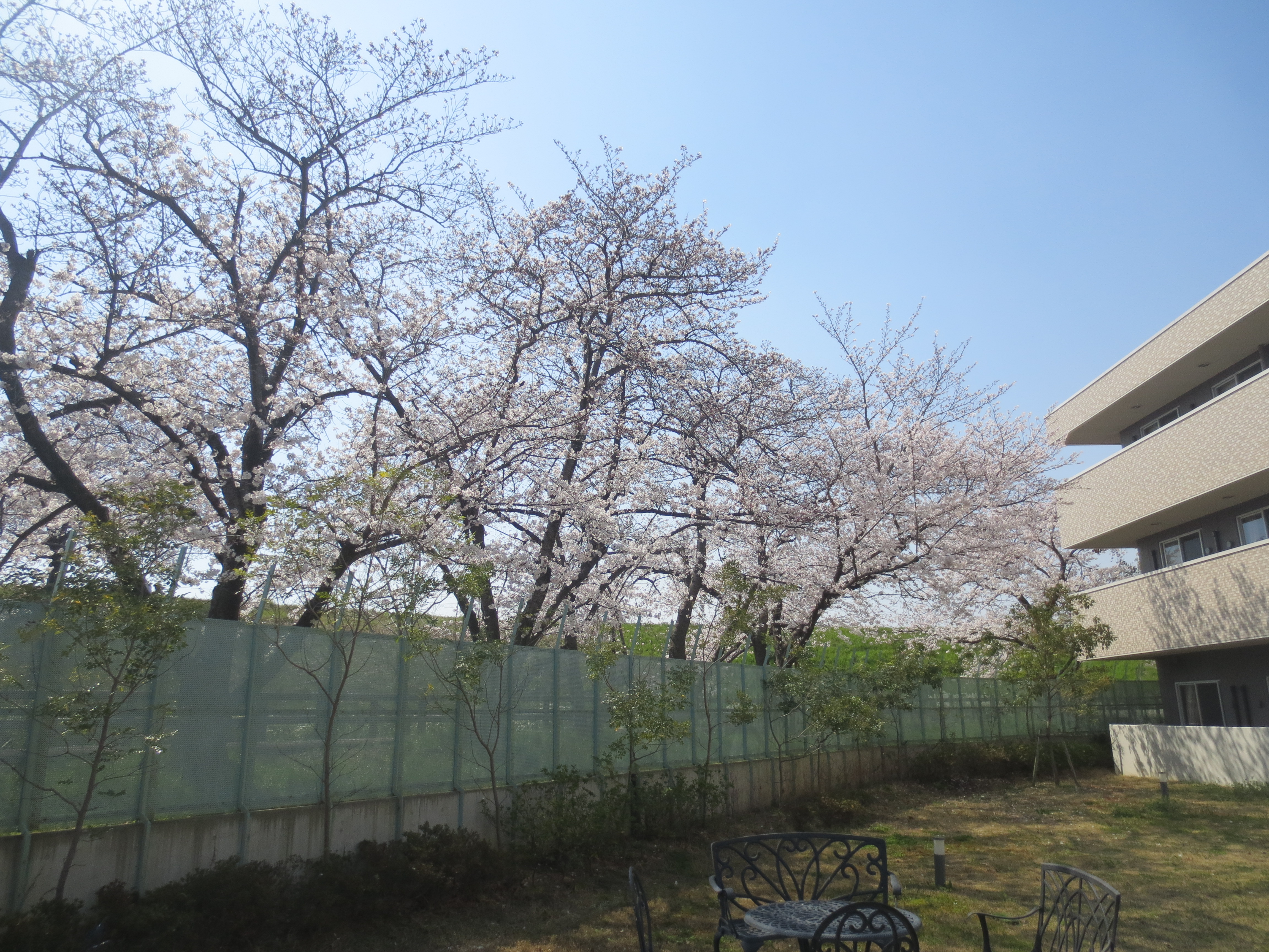 高槻は庭があり、ちょうど堤防側にあるので、春はこのように桜を見ることができます(^^)v