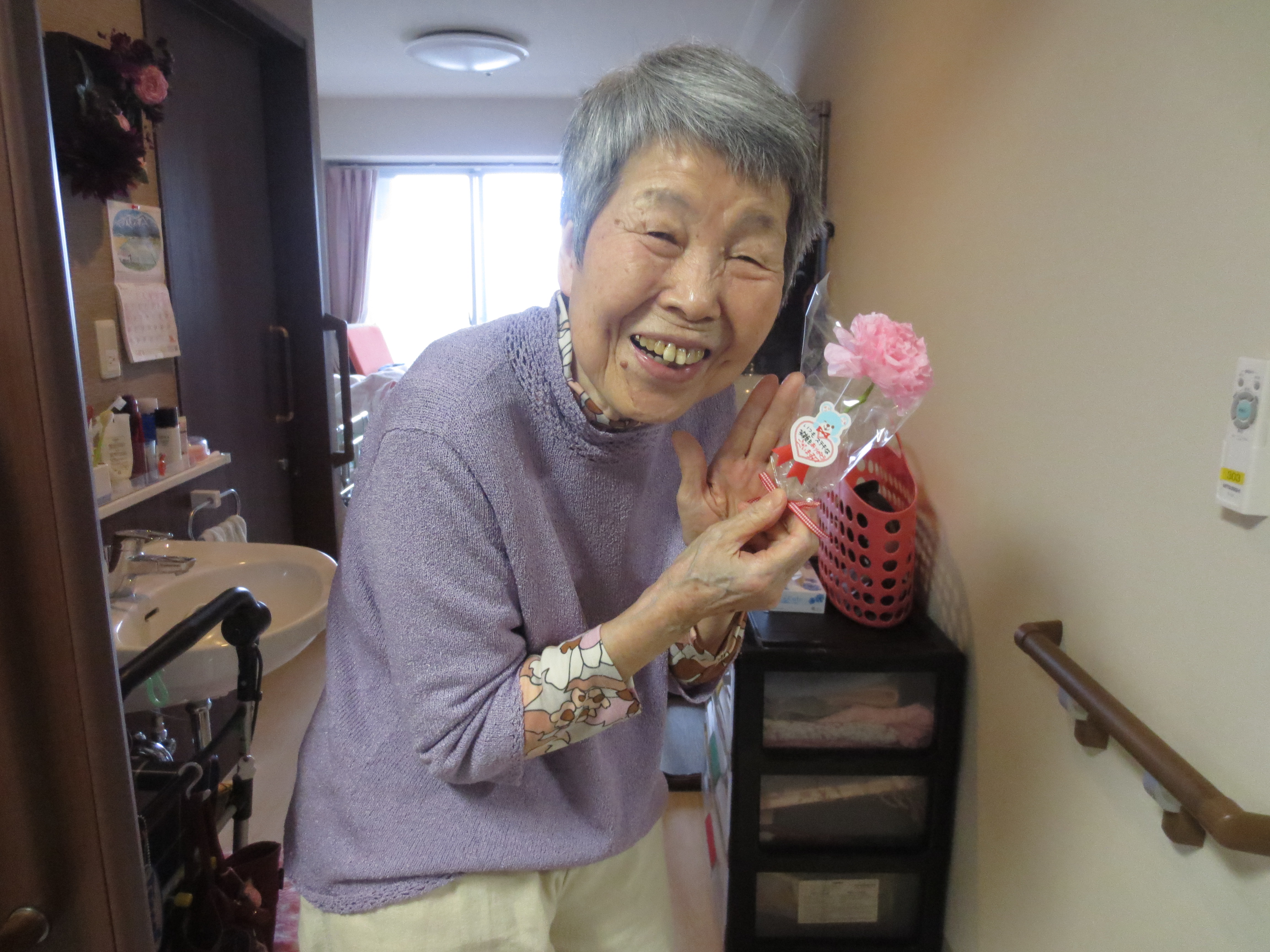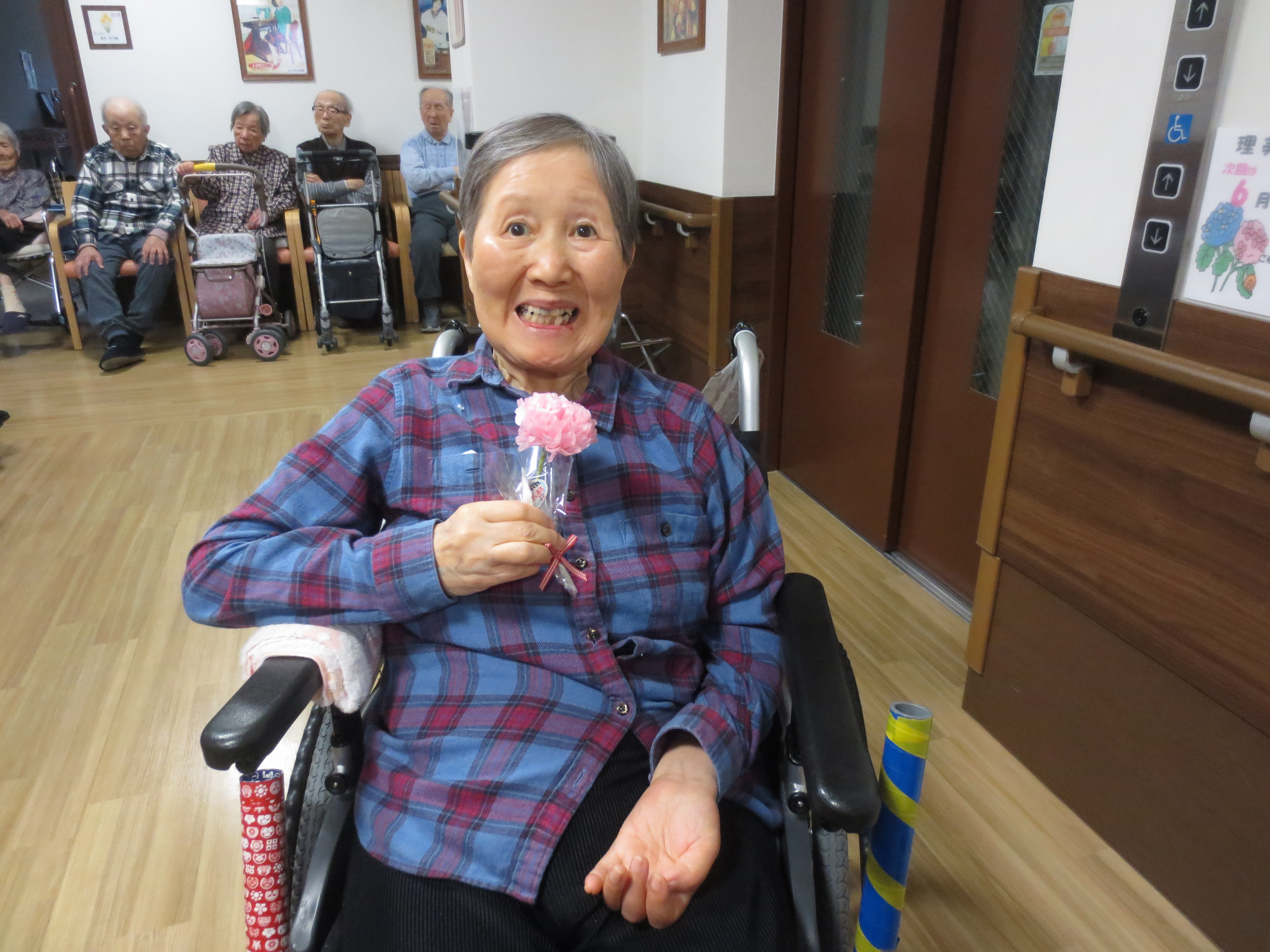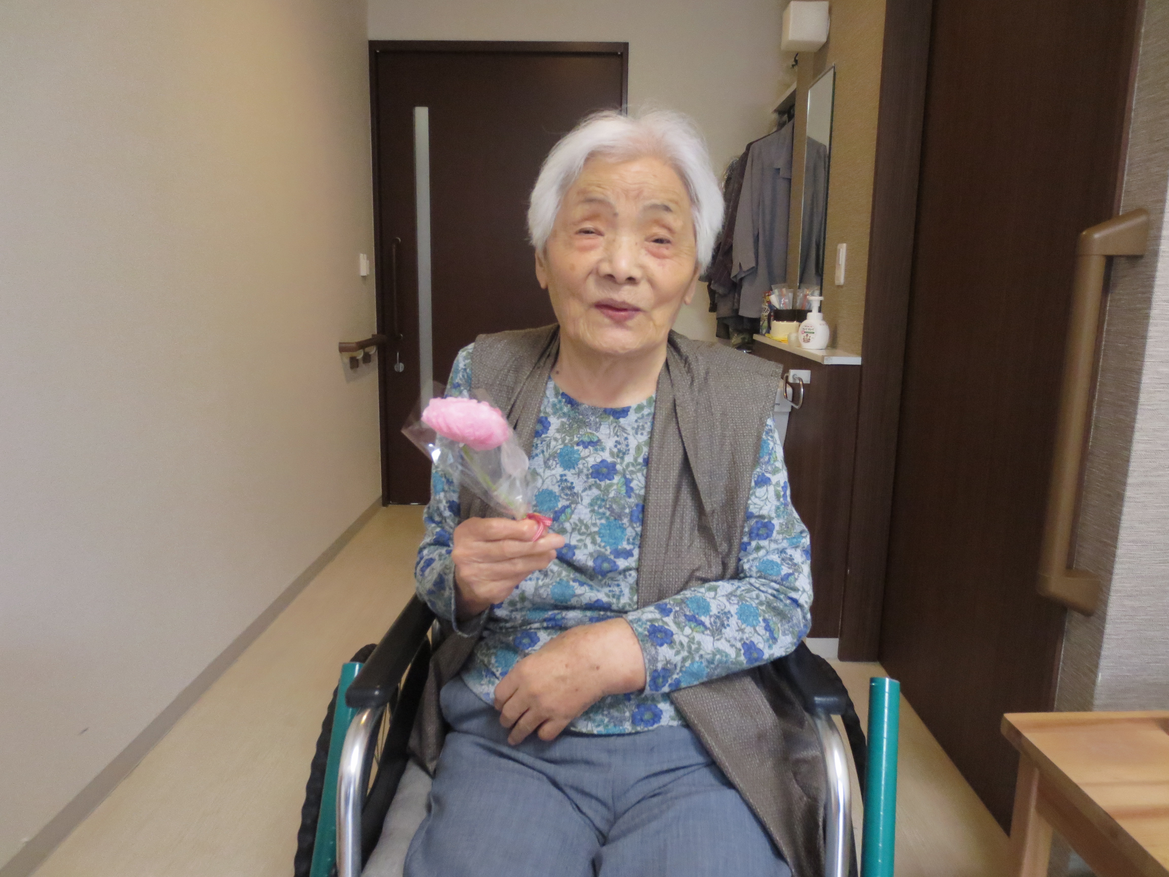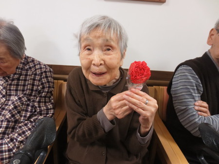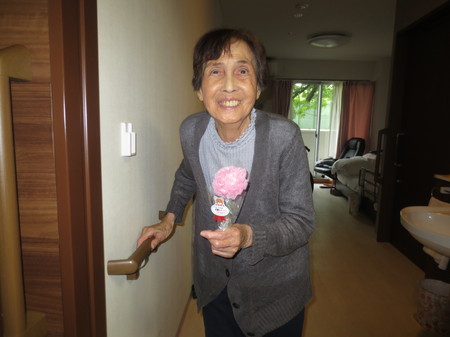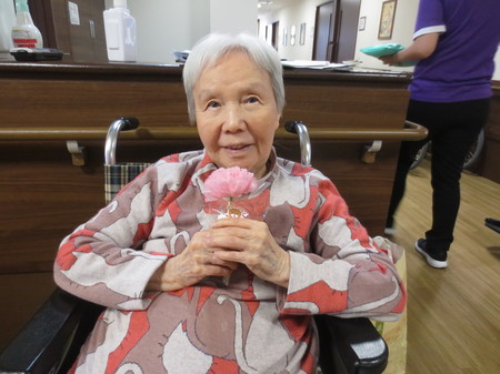 さて、今回は先日13日は母の日でしたので、女性のご入居者へカーネーションのプレゼント