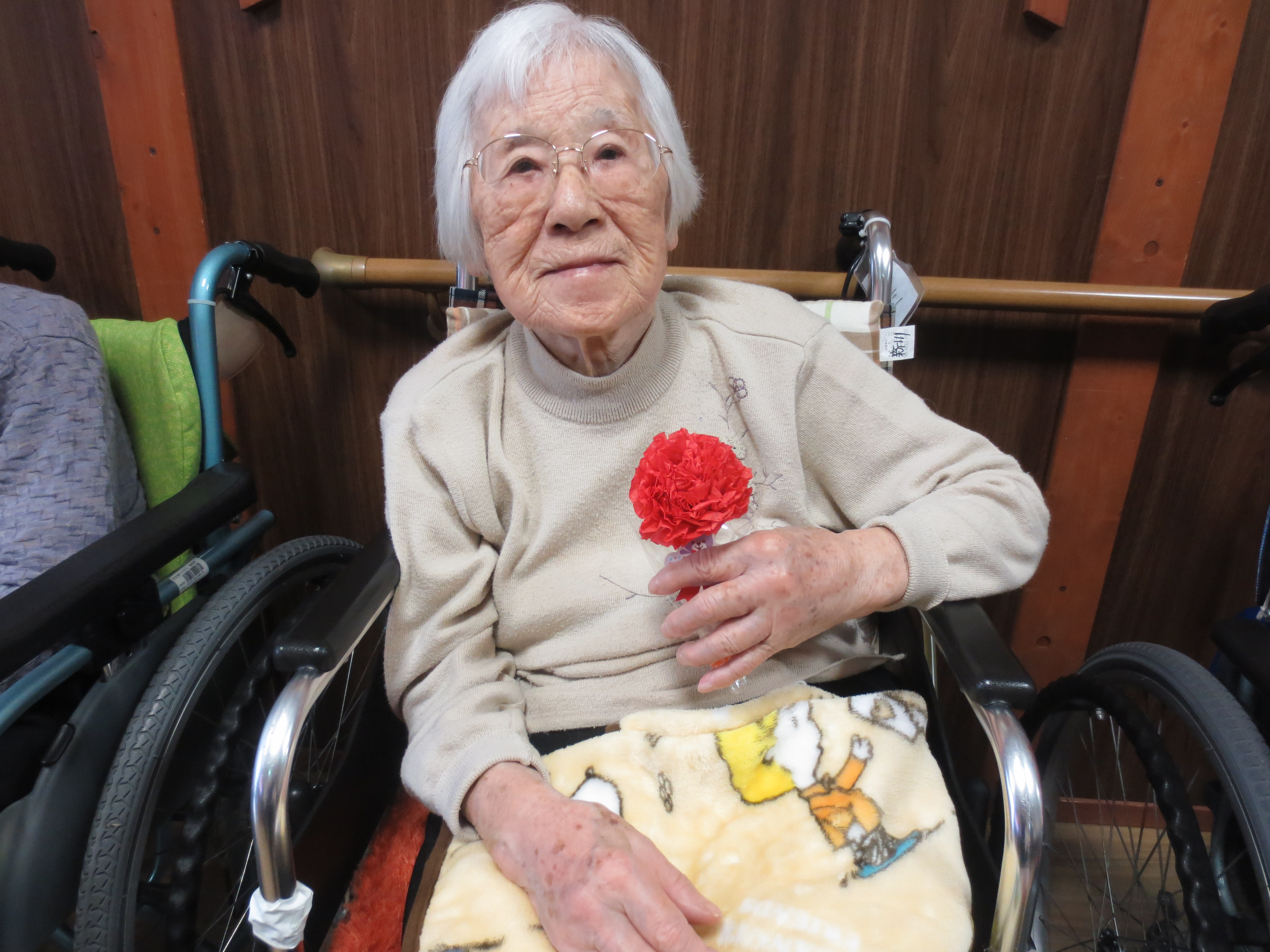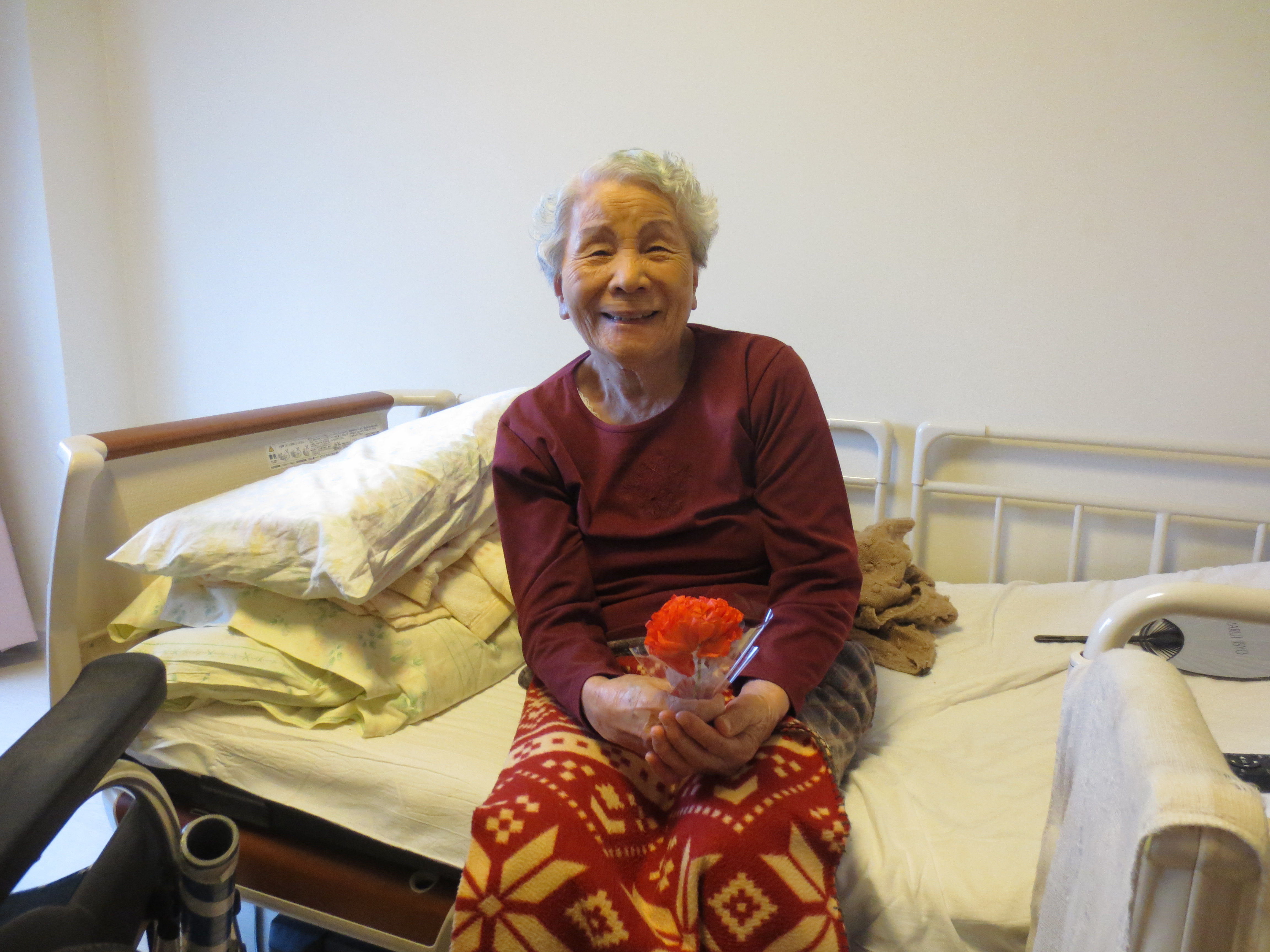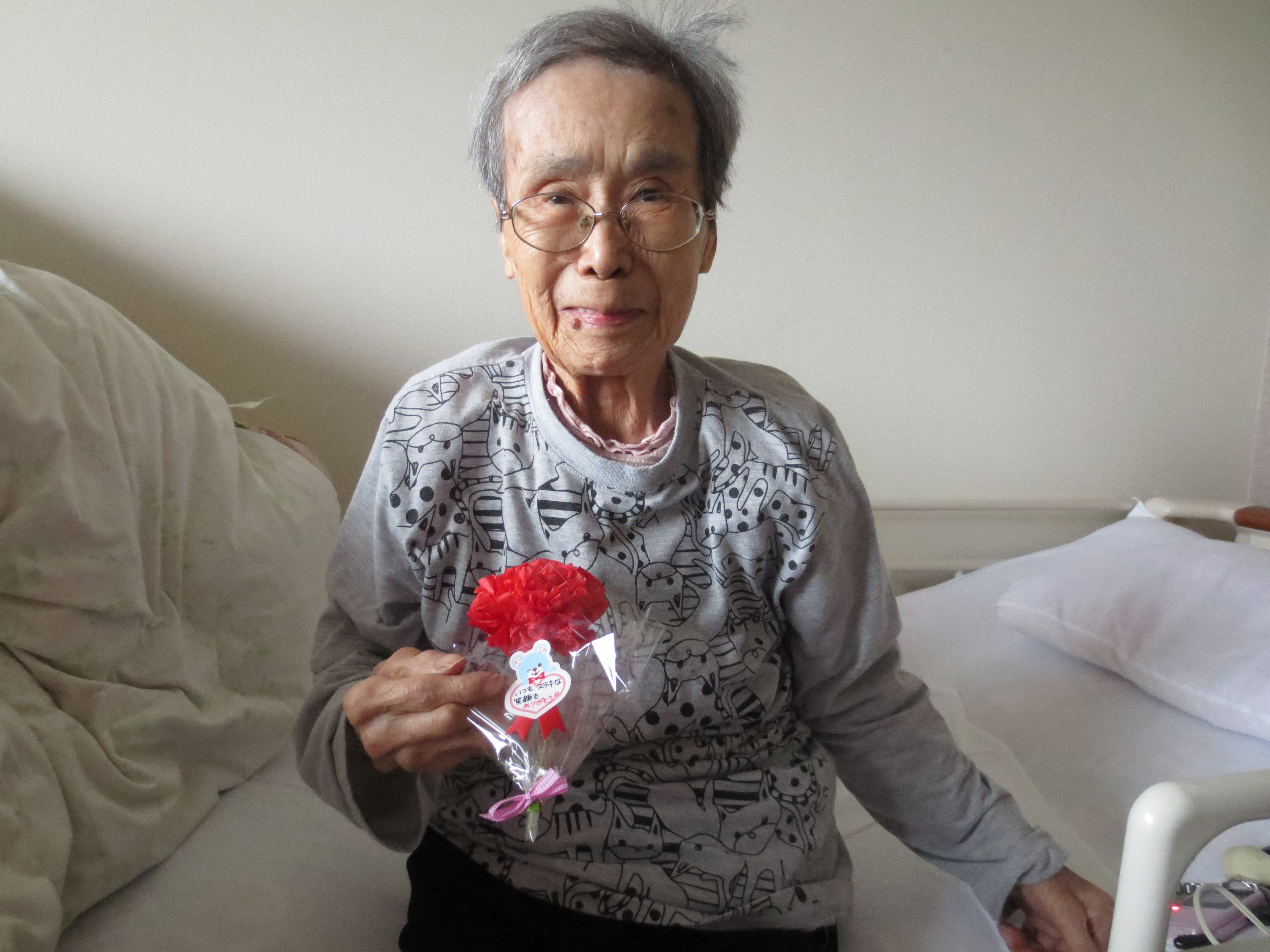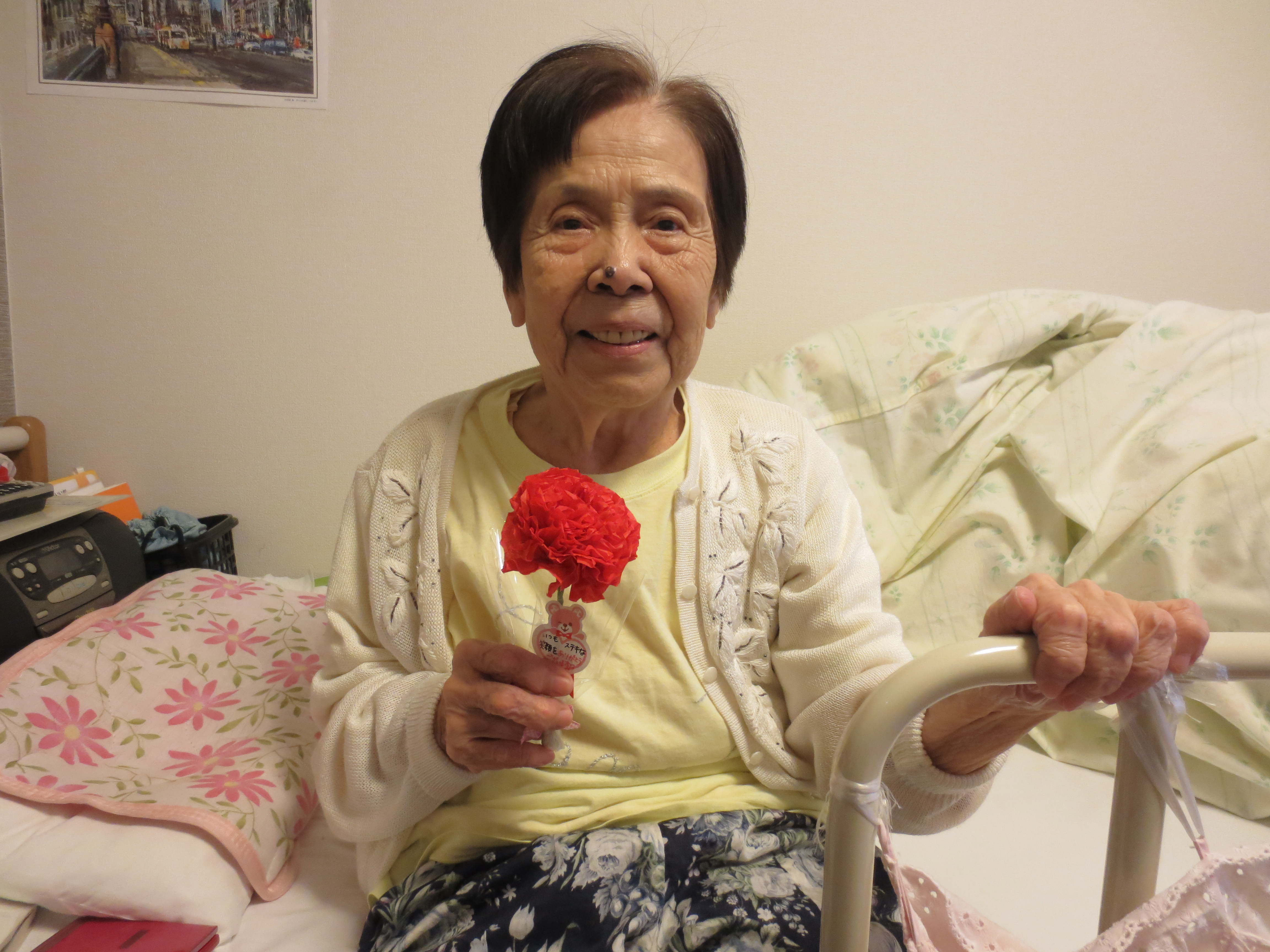 さて、今回は先日13日は母の日でしたので、女性のご入居者へカーネーションのプレゼント
