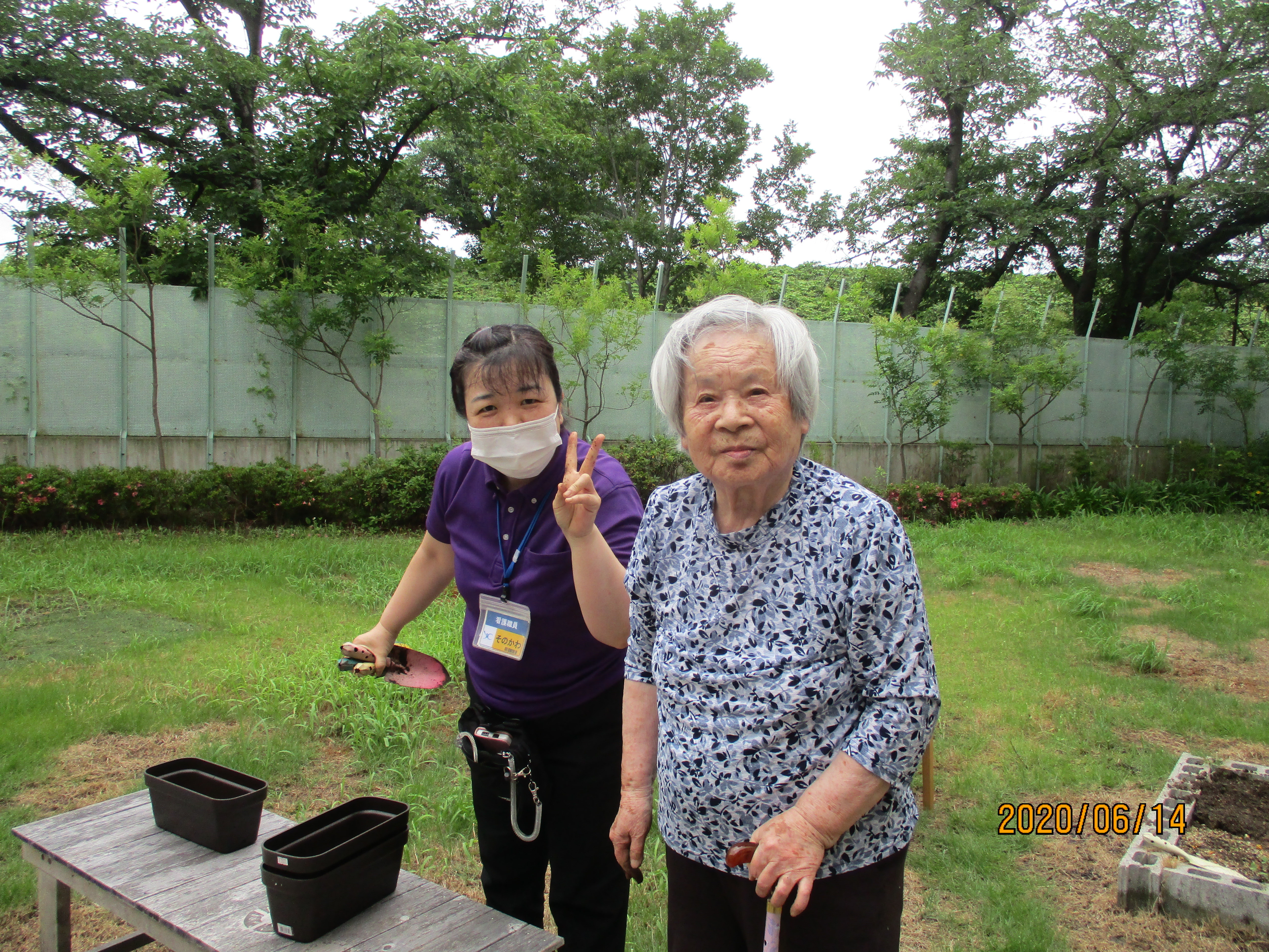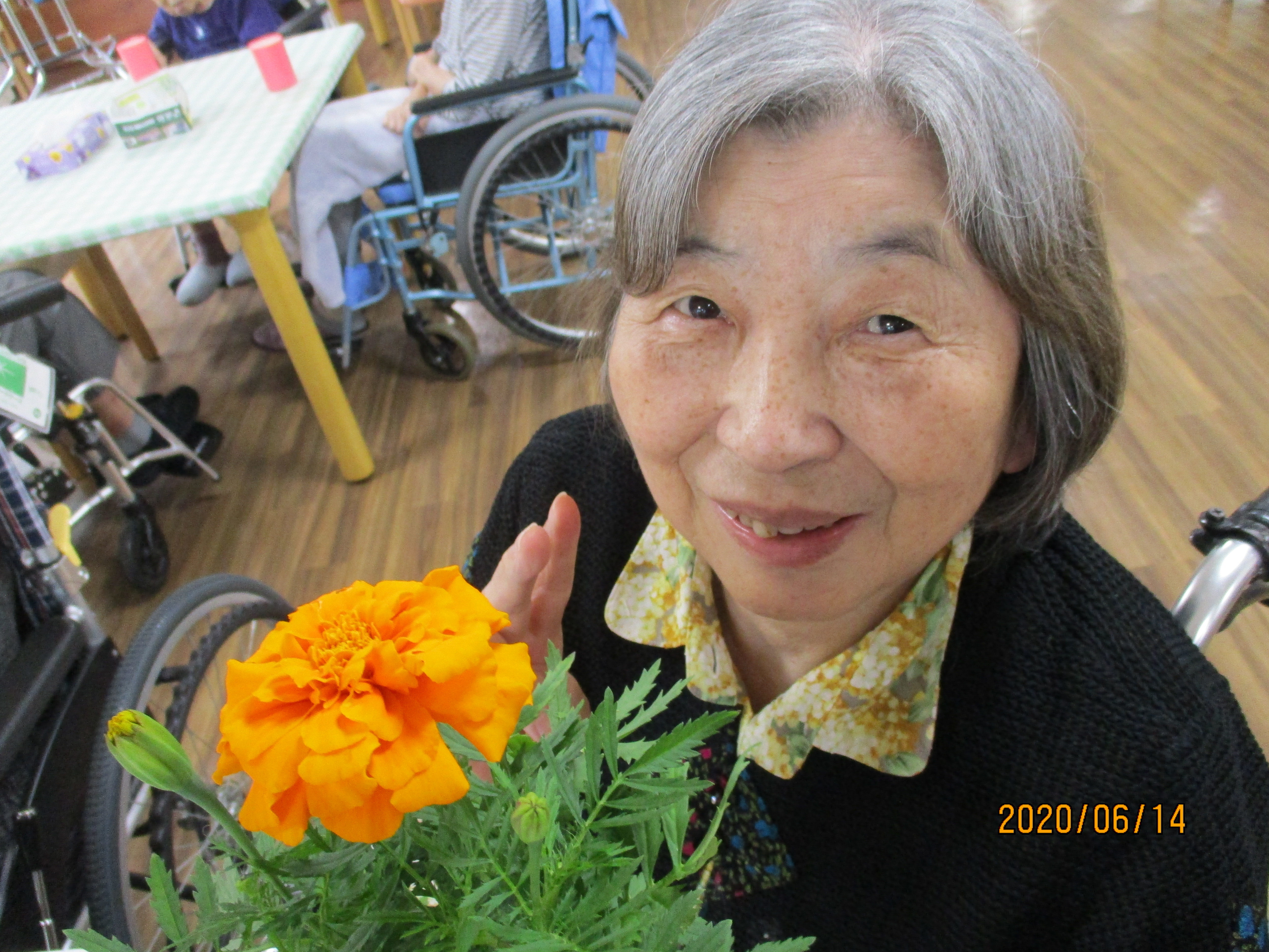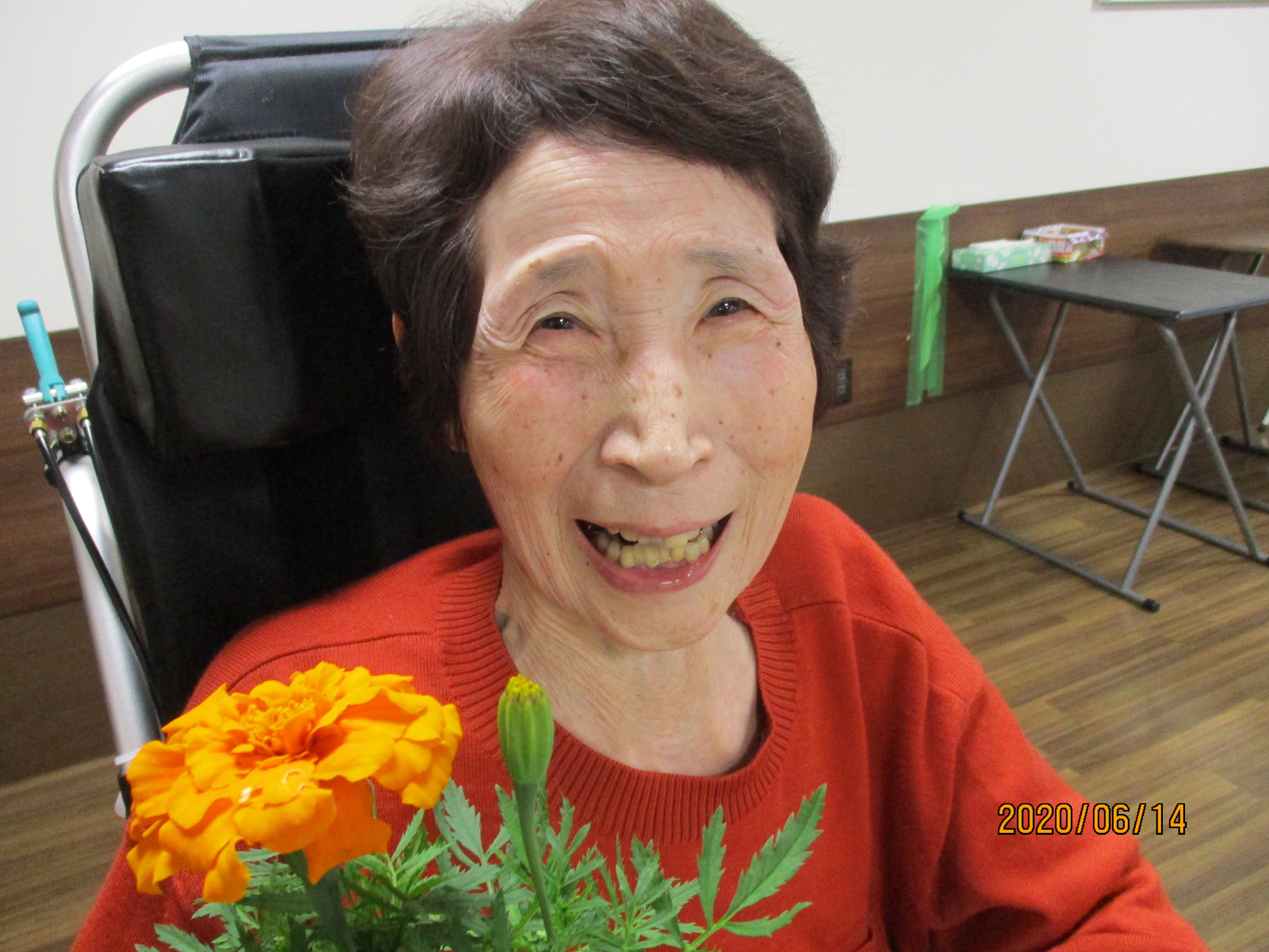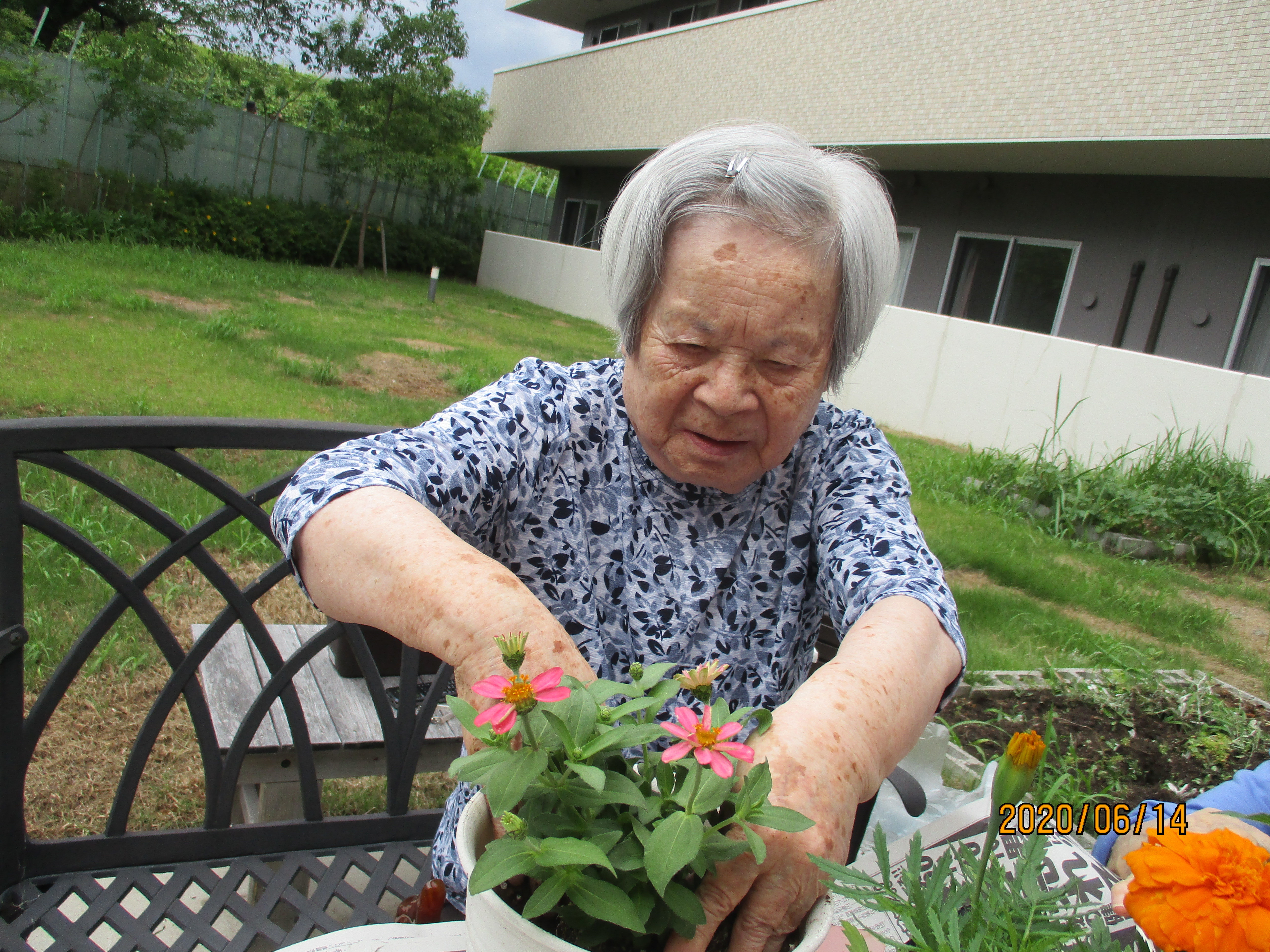 お花がお好きなご入居者様と鉢植えを楽しみました。