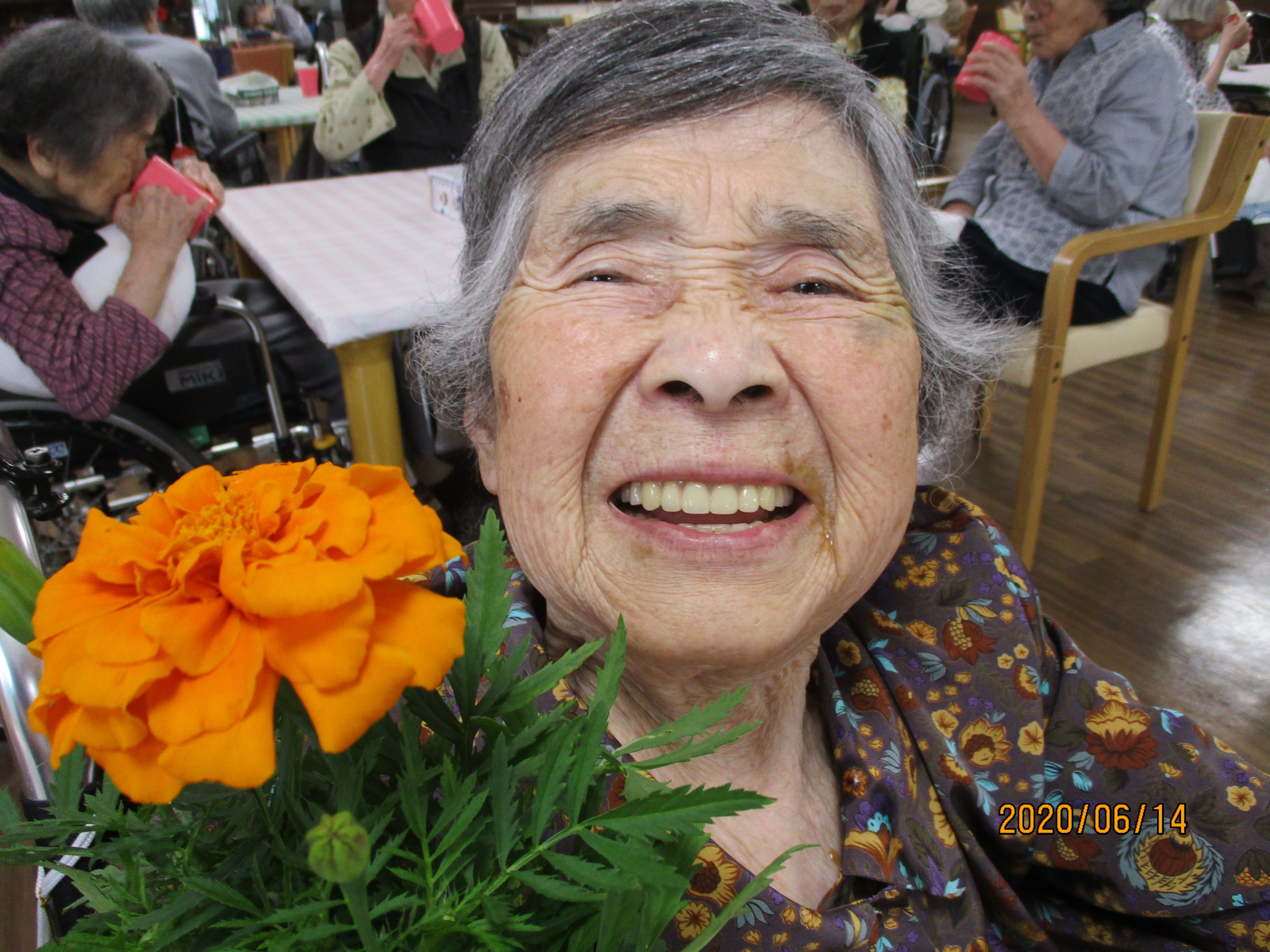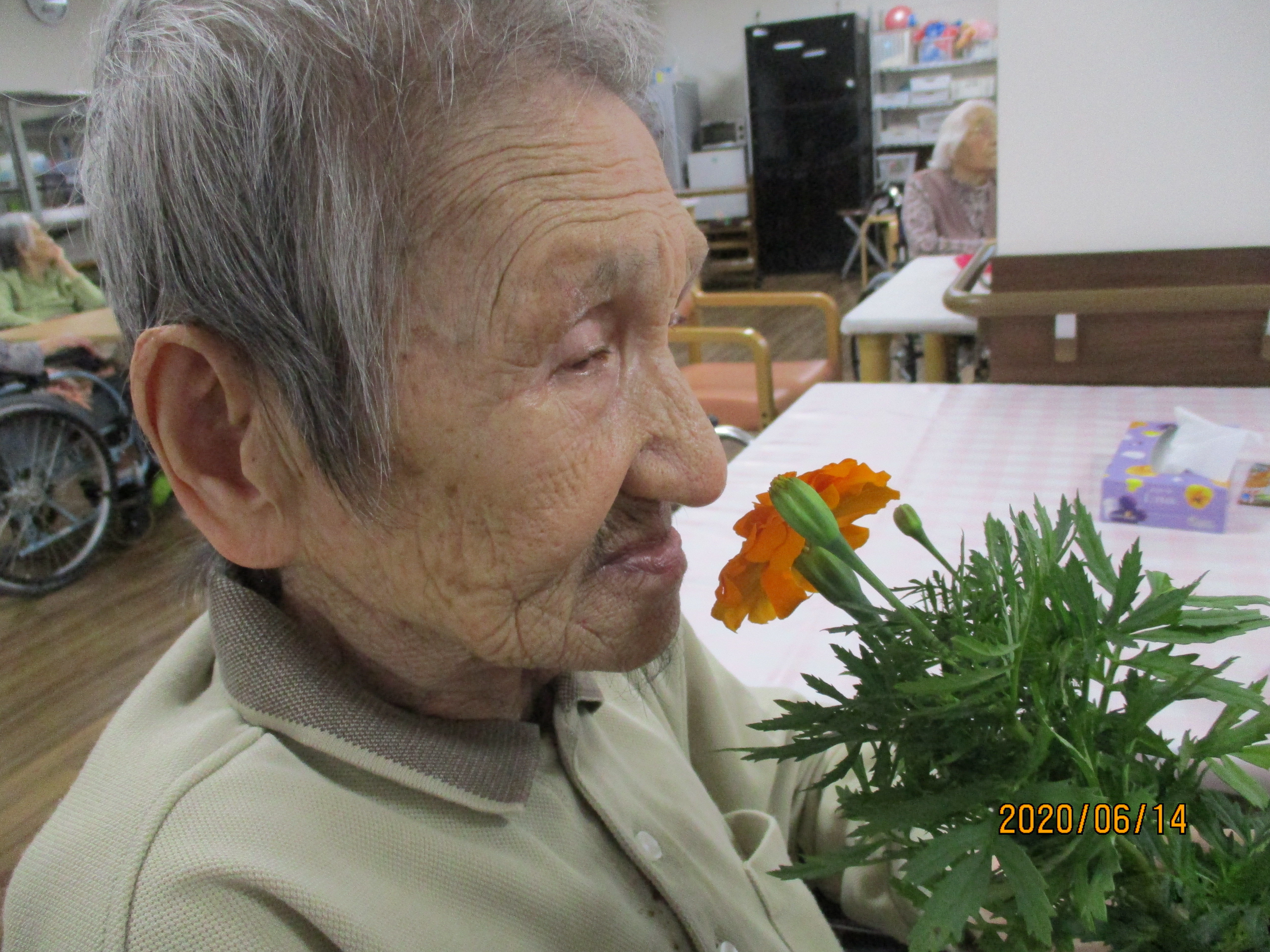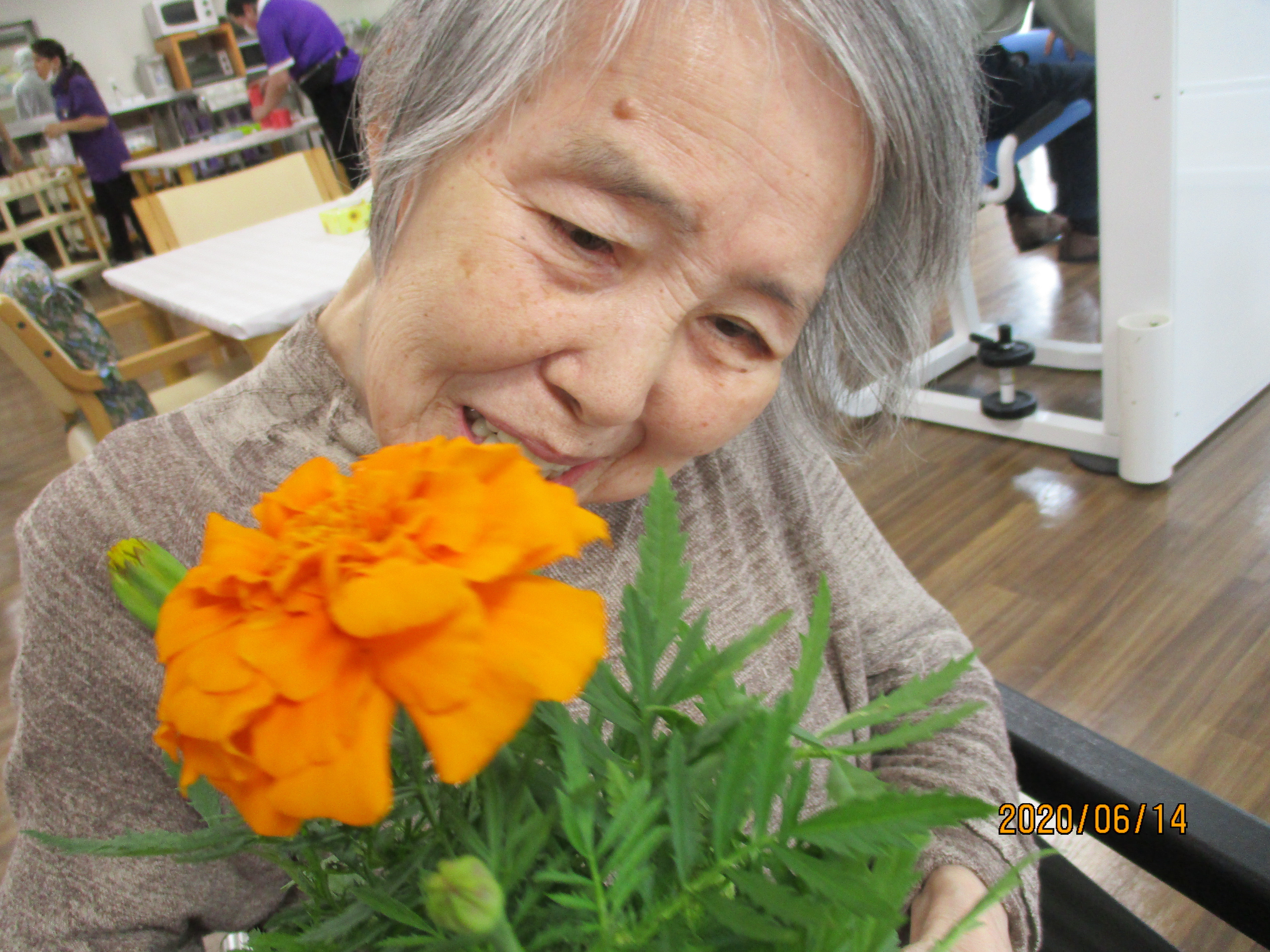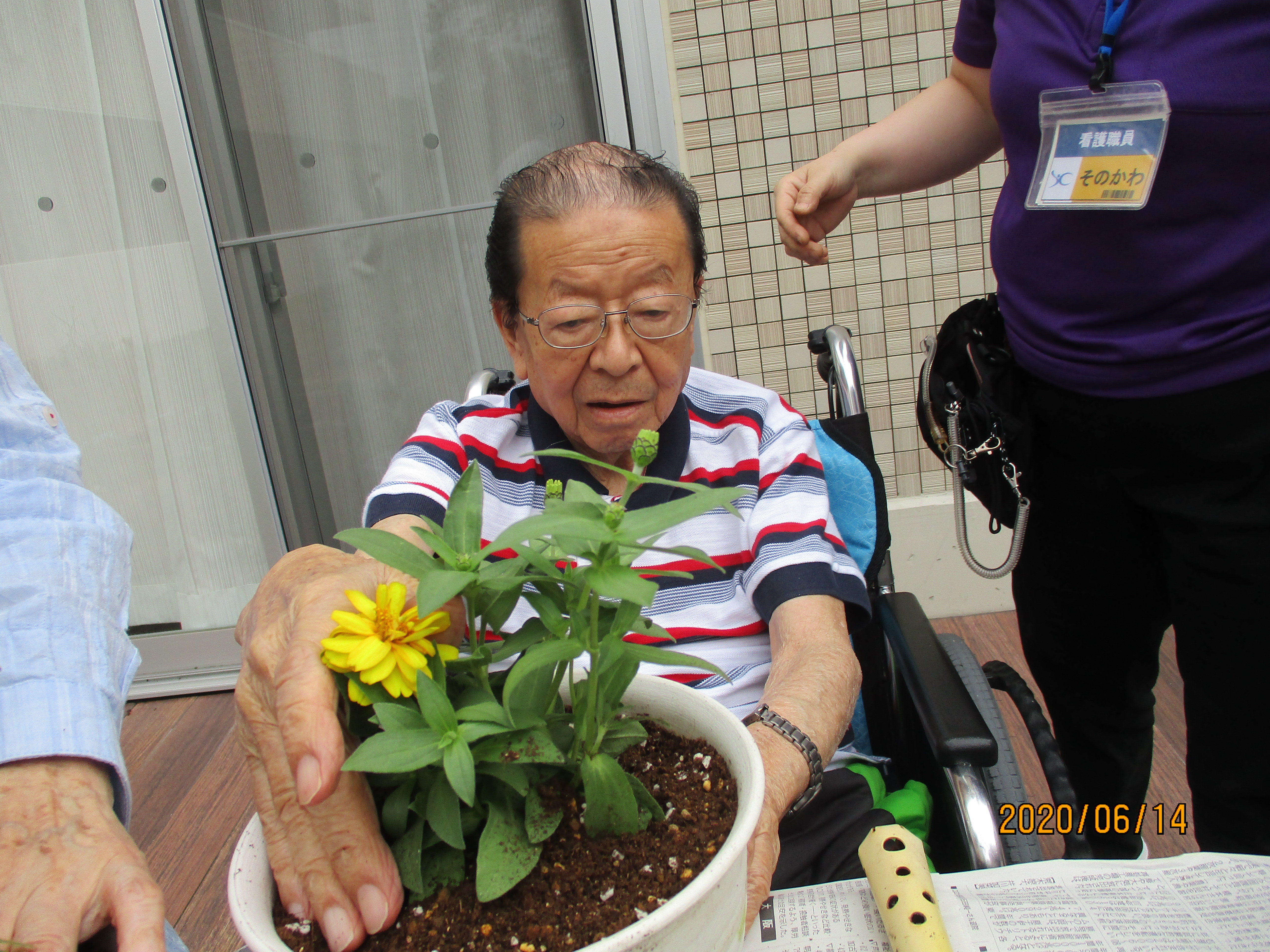 お花がお好きなご入居者様と鉢植えを楽しみました。
