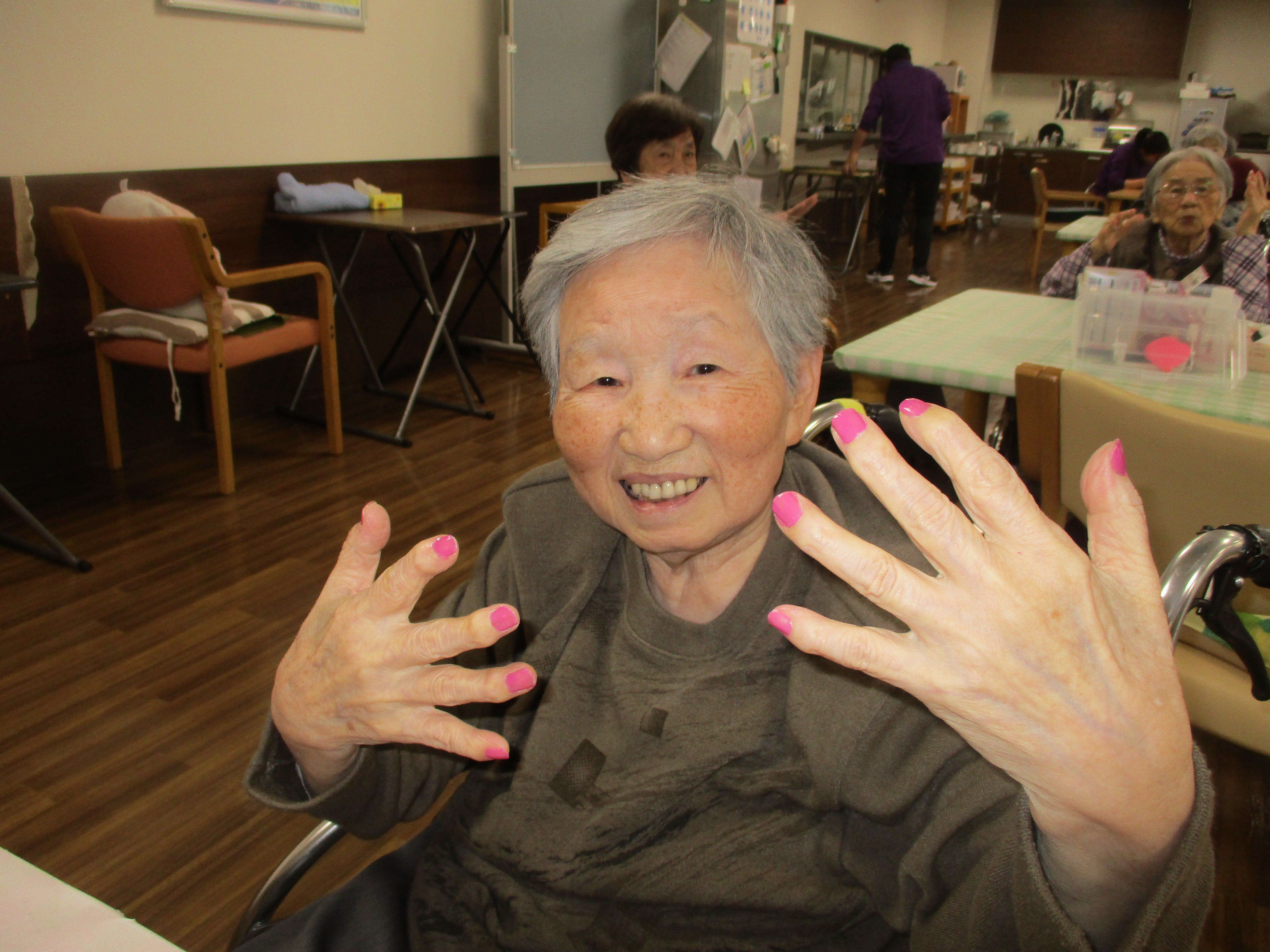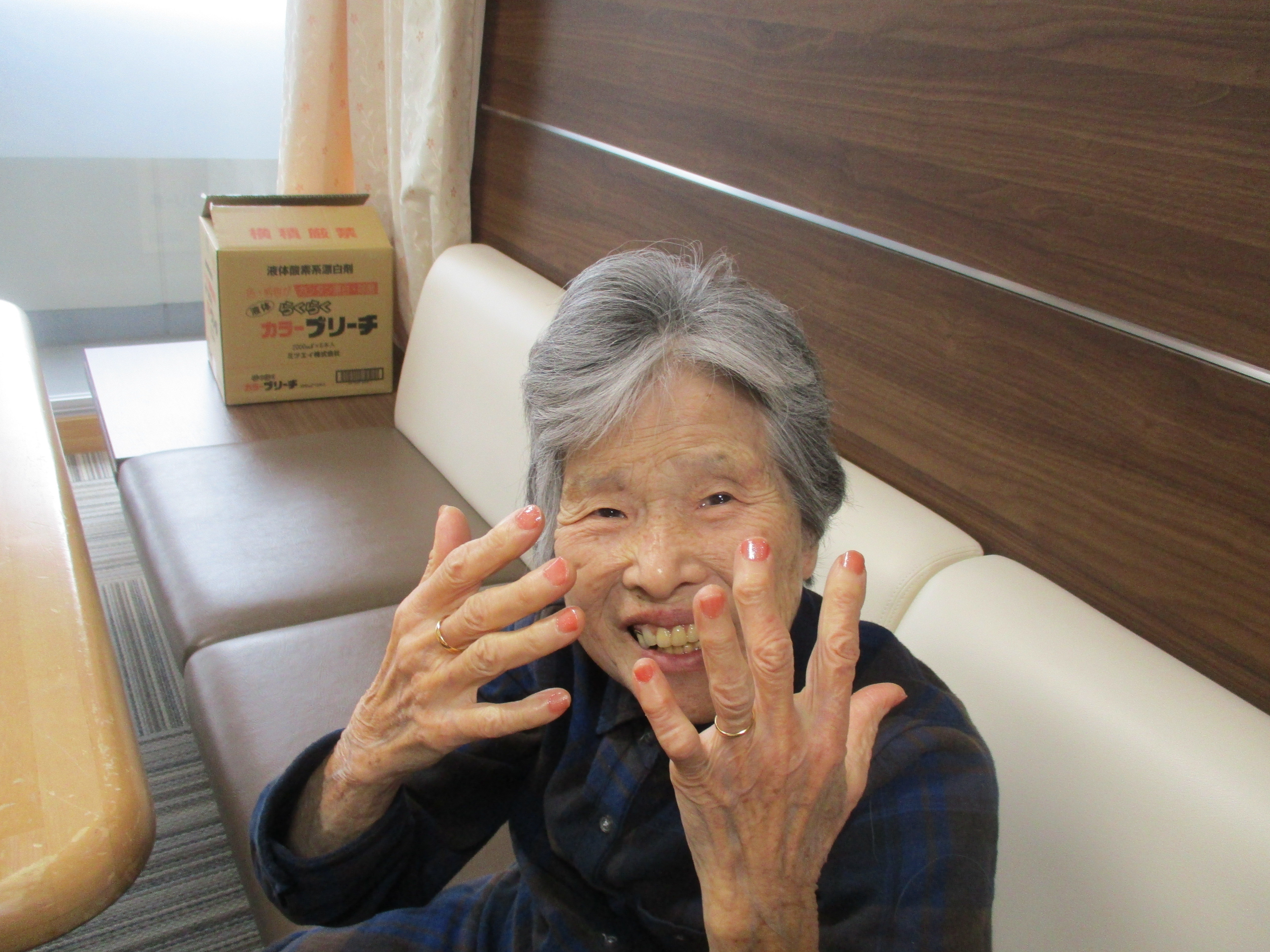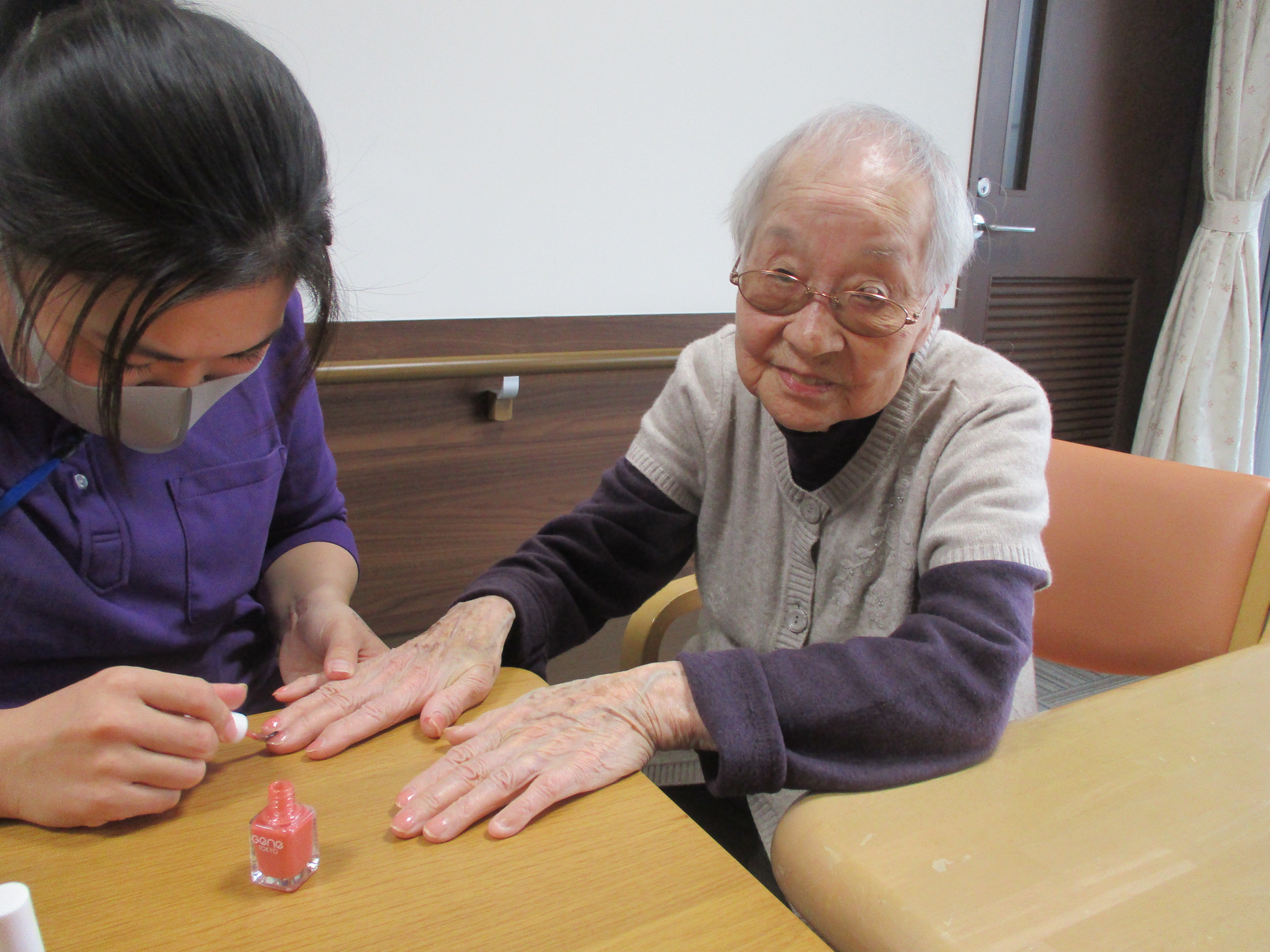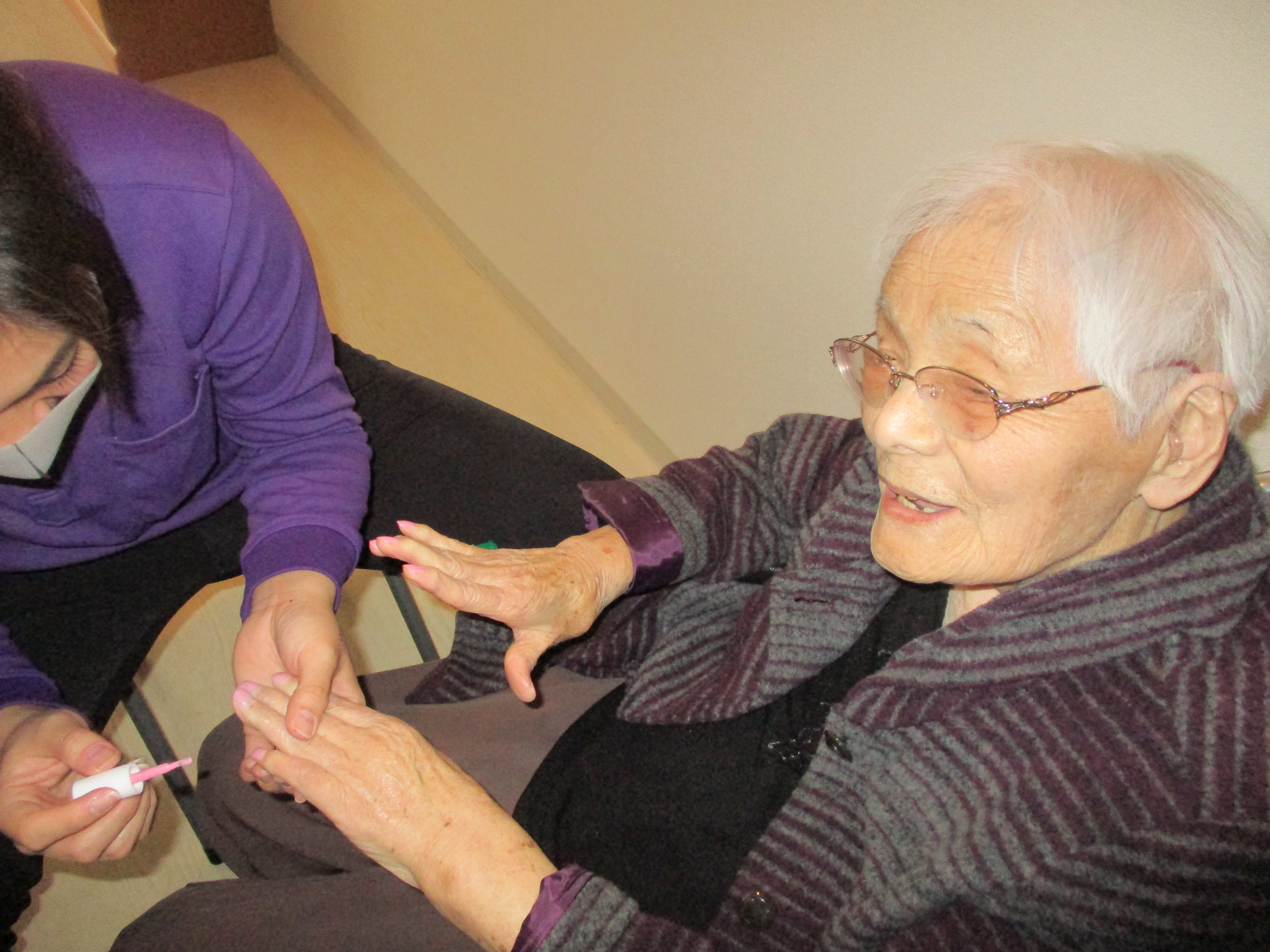 今回は女性のご入居者にネイルを楽しんでいただきました。