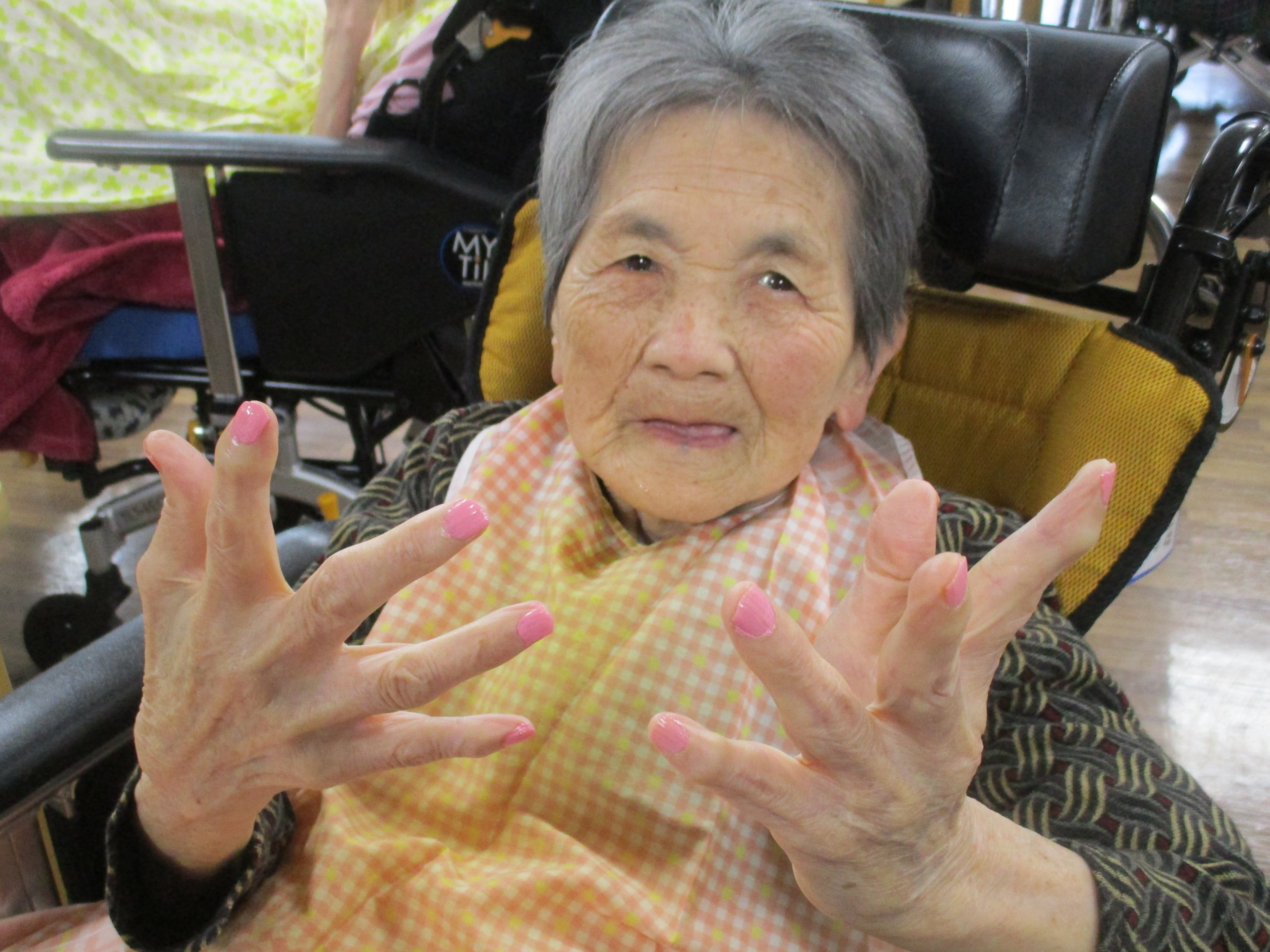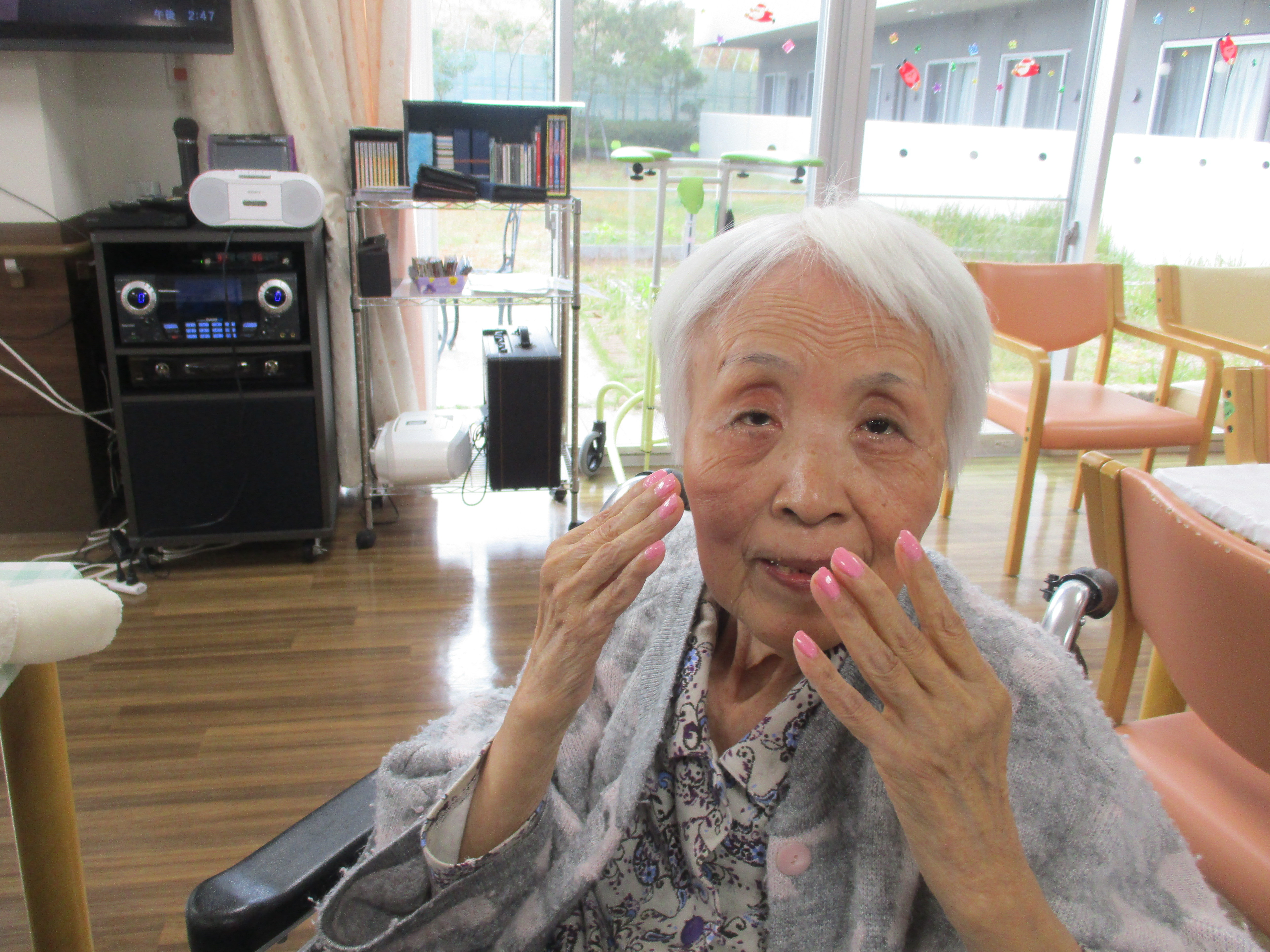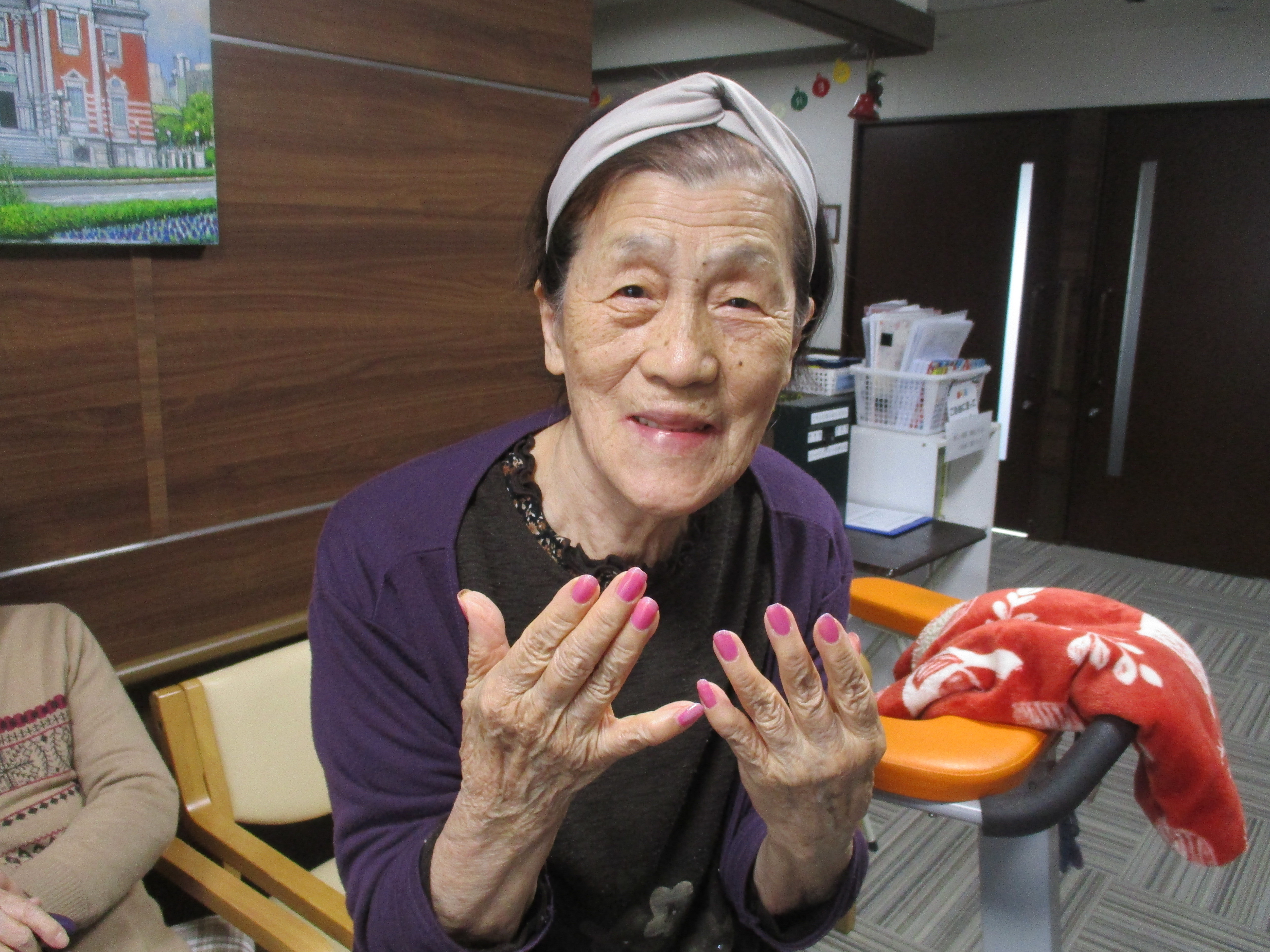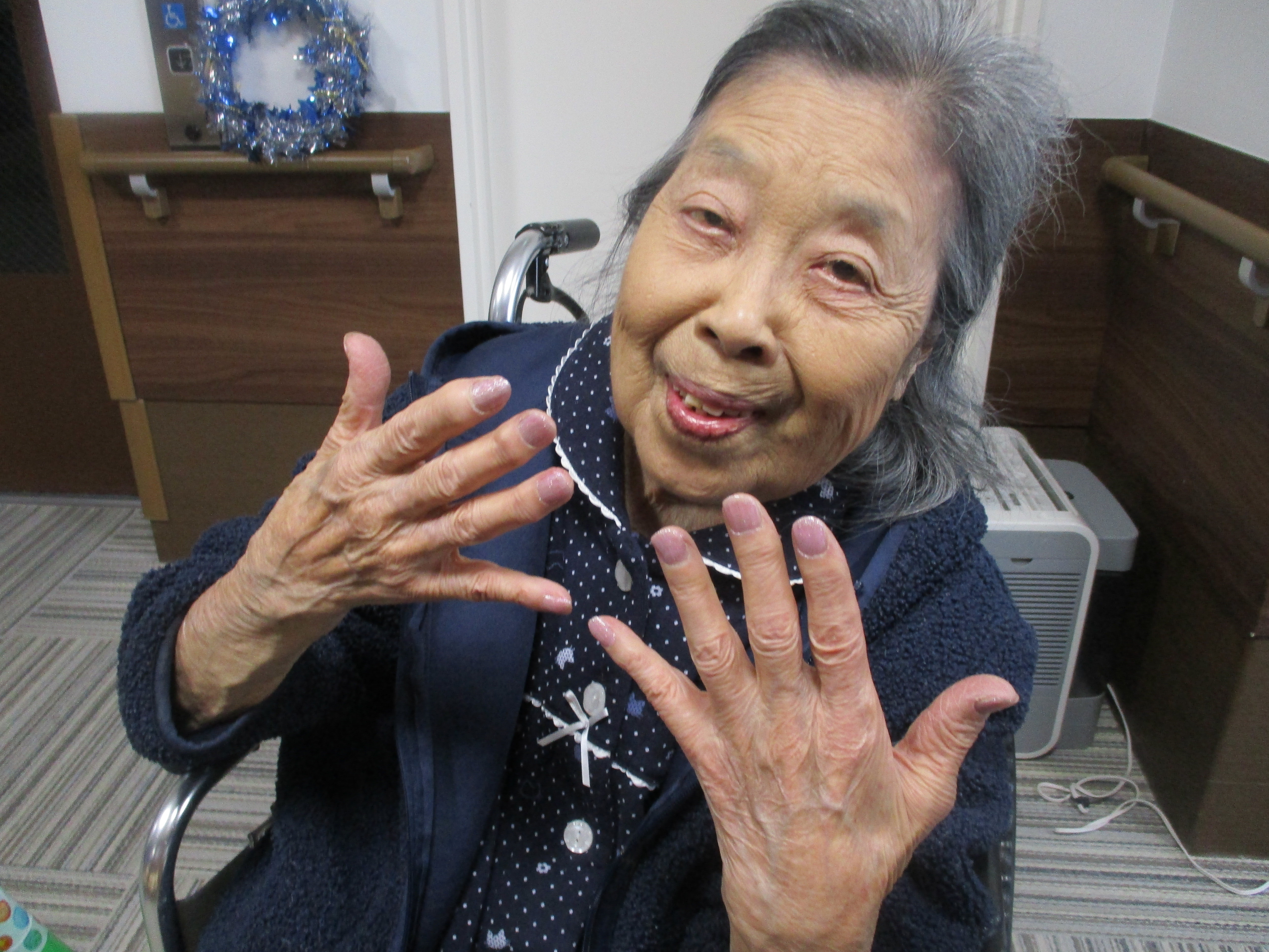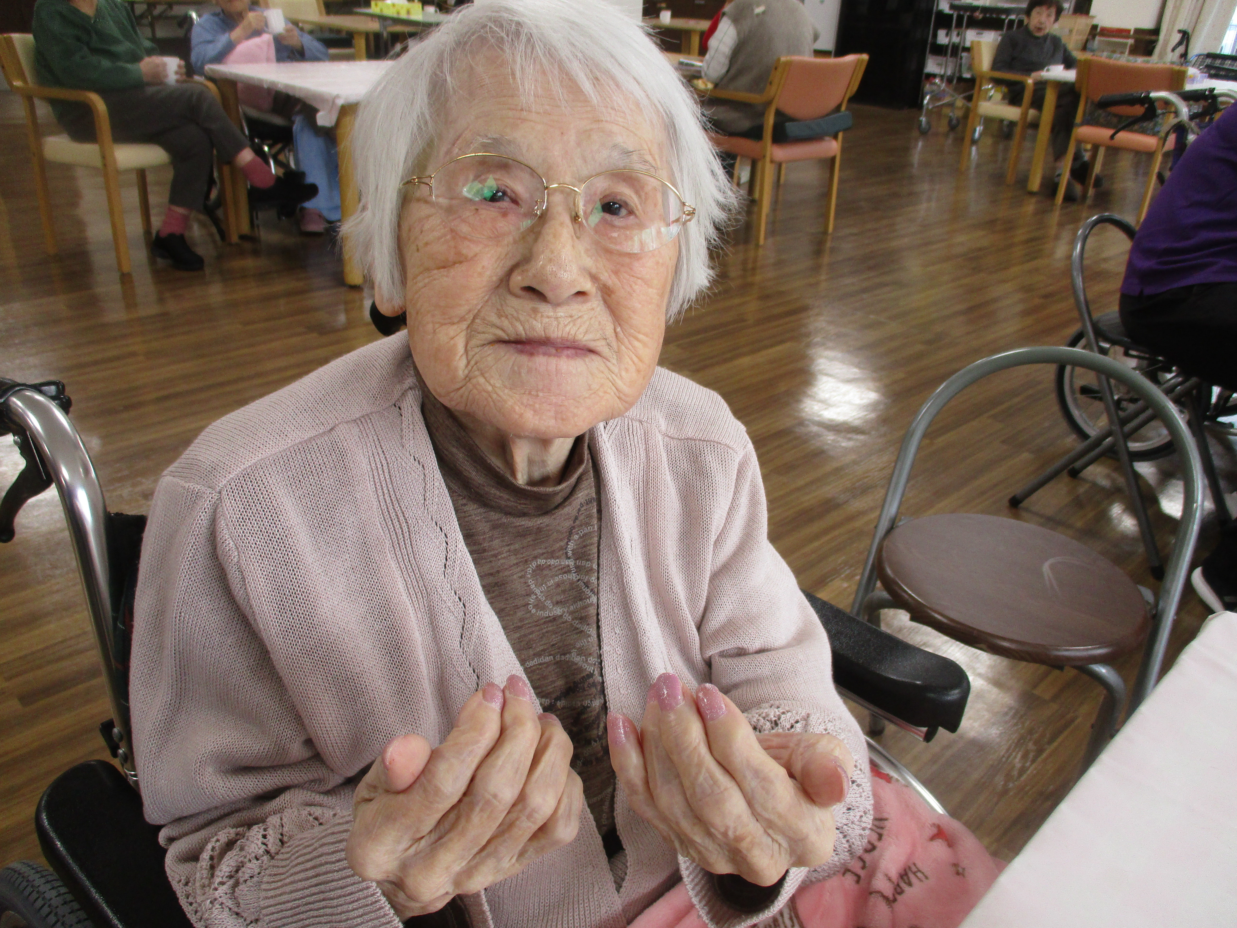今回は女性のご入居者にネイルを楽しんでいただきました。