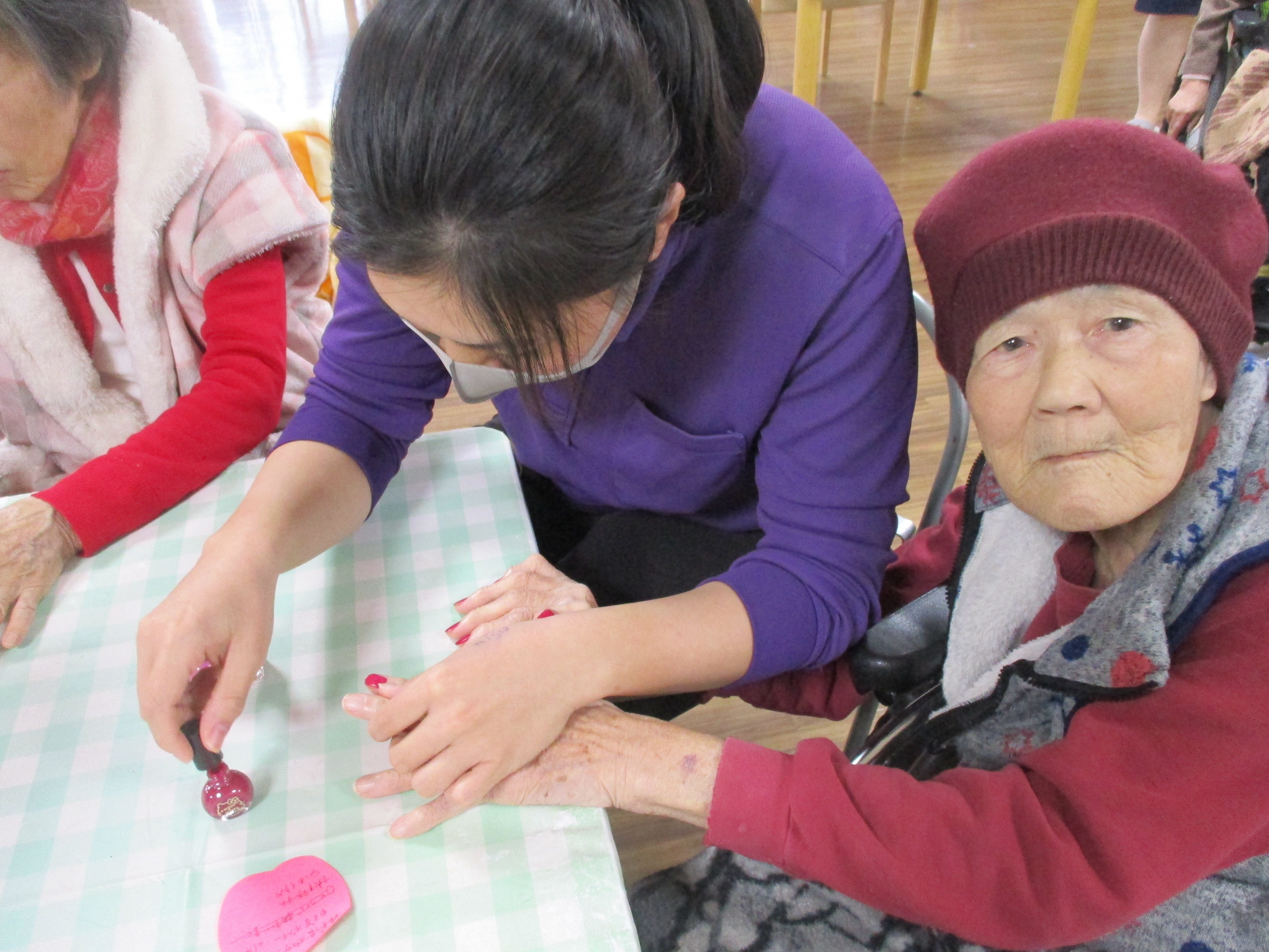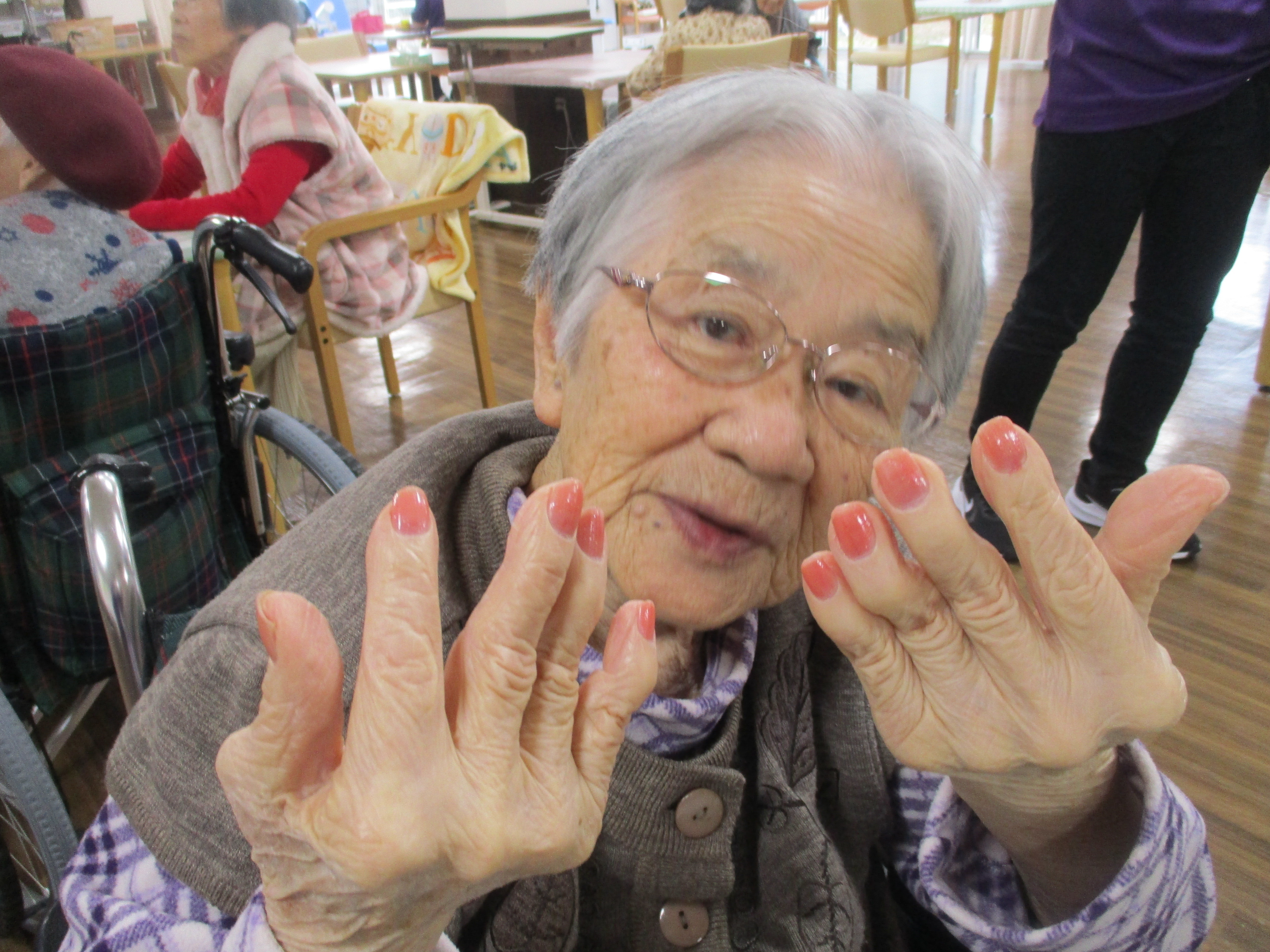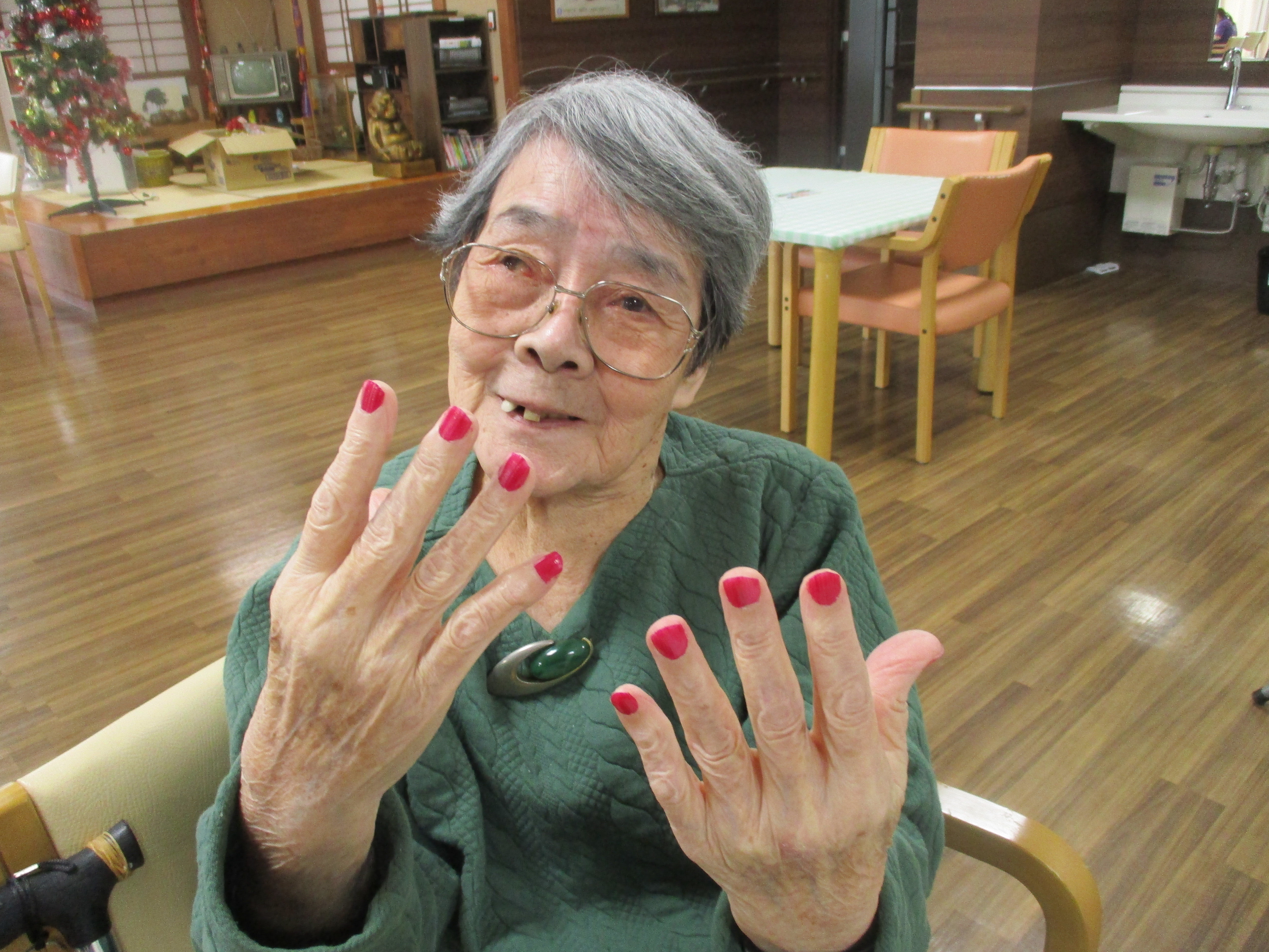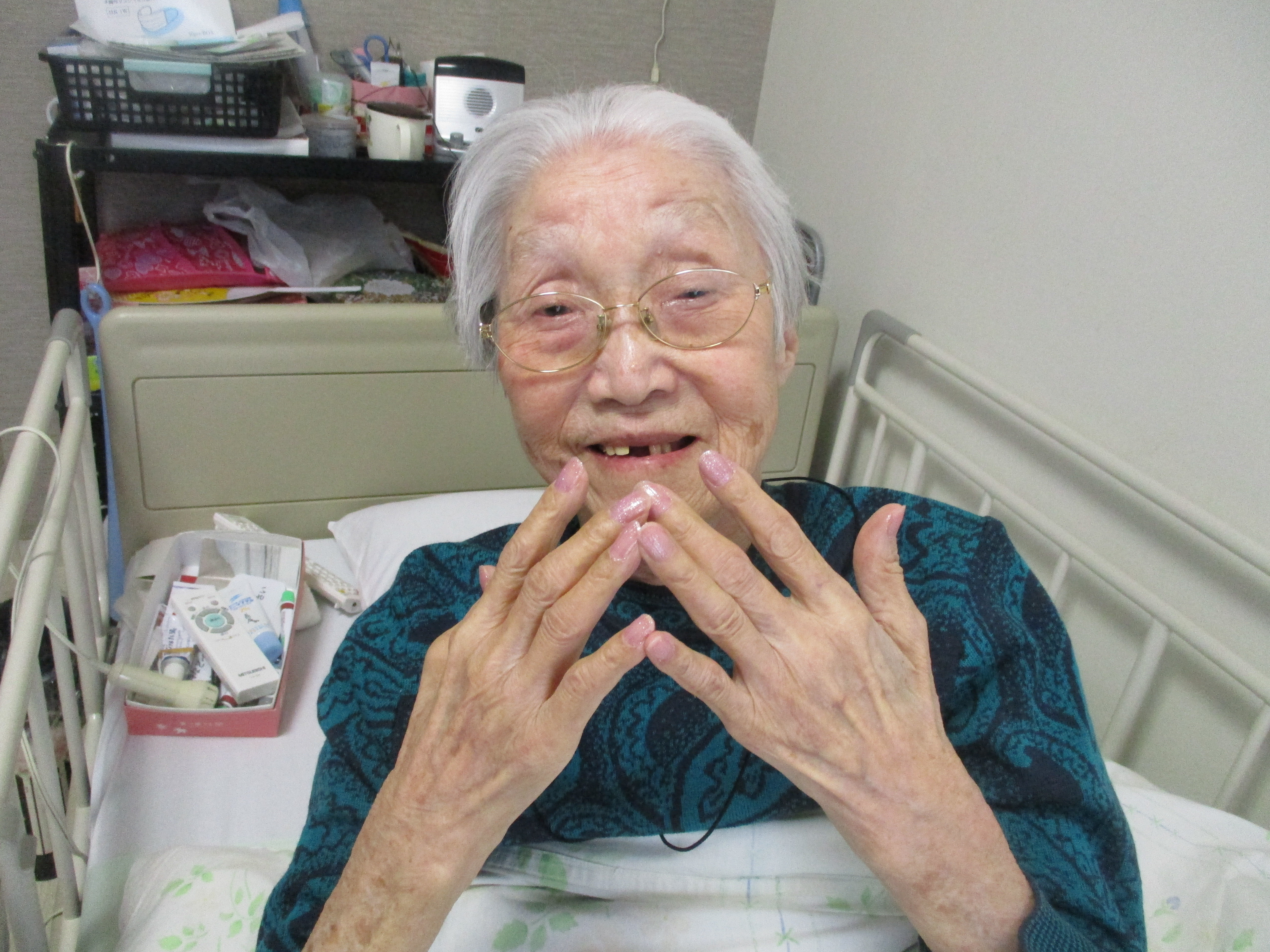 今回は女性のご入居者にネイルを楽しんでいただきました。