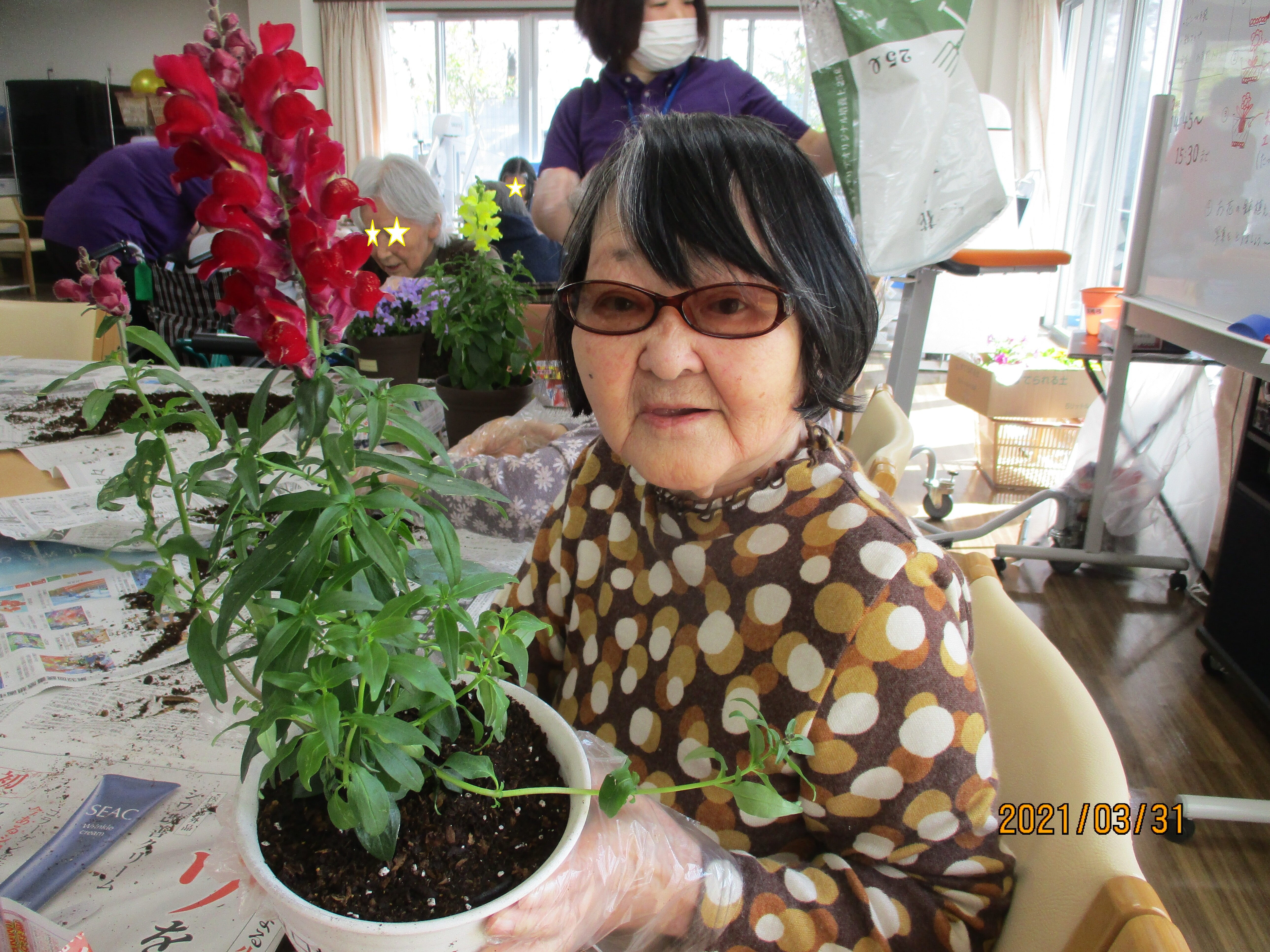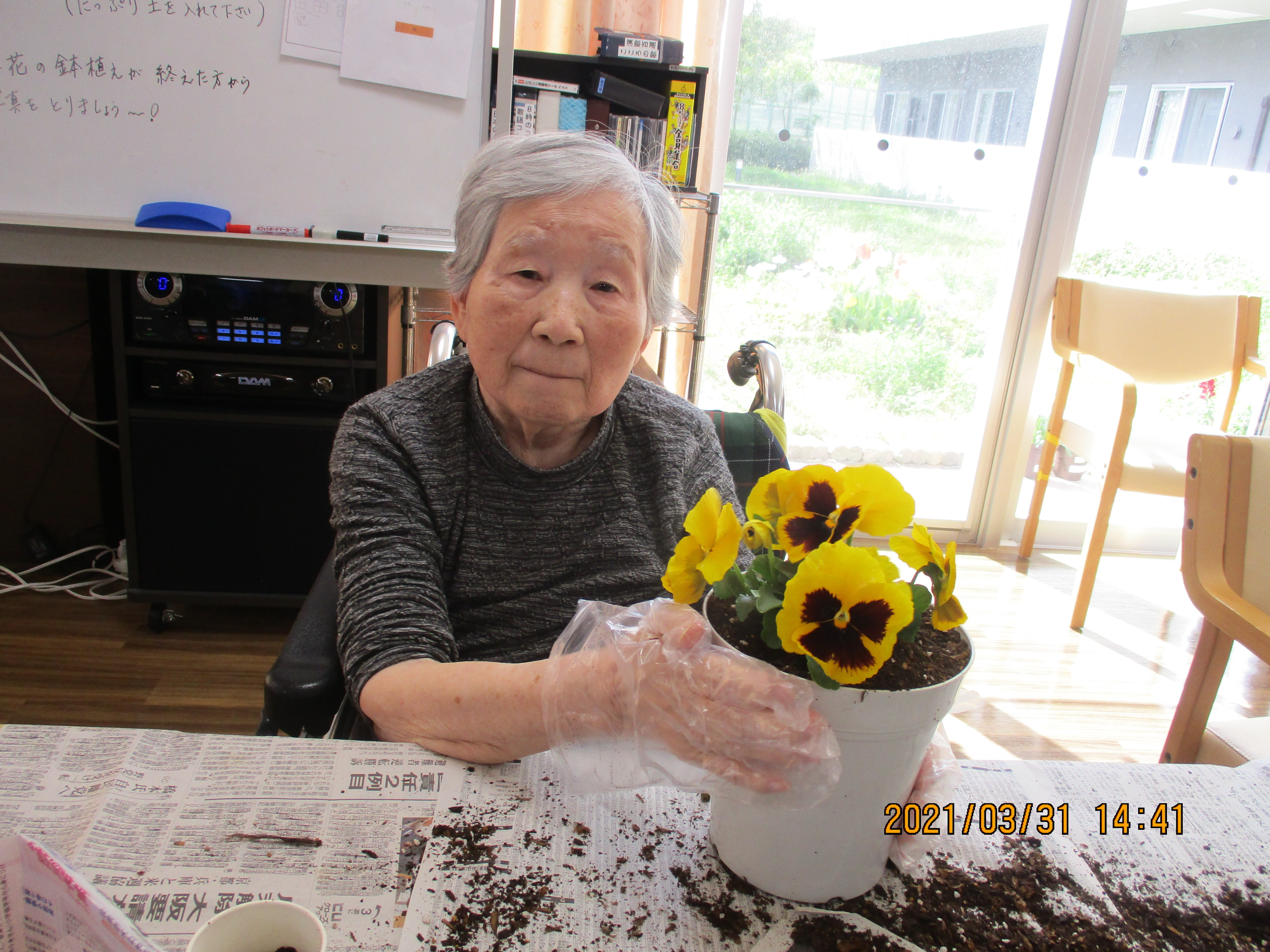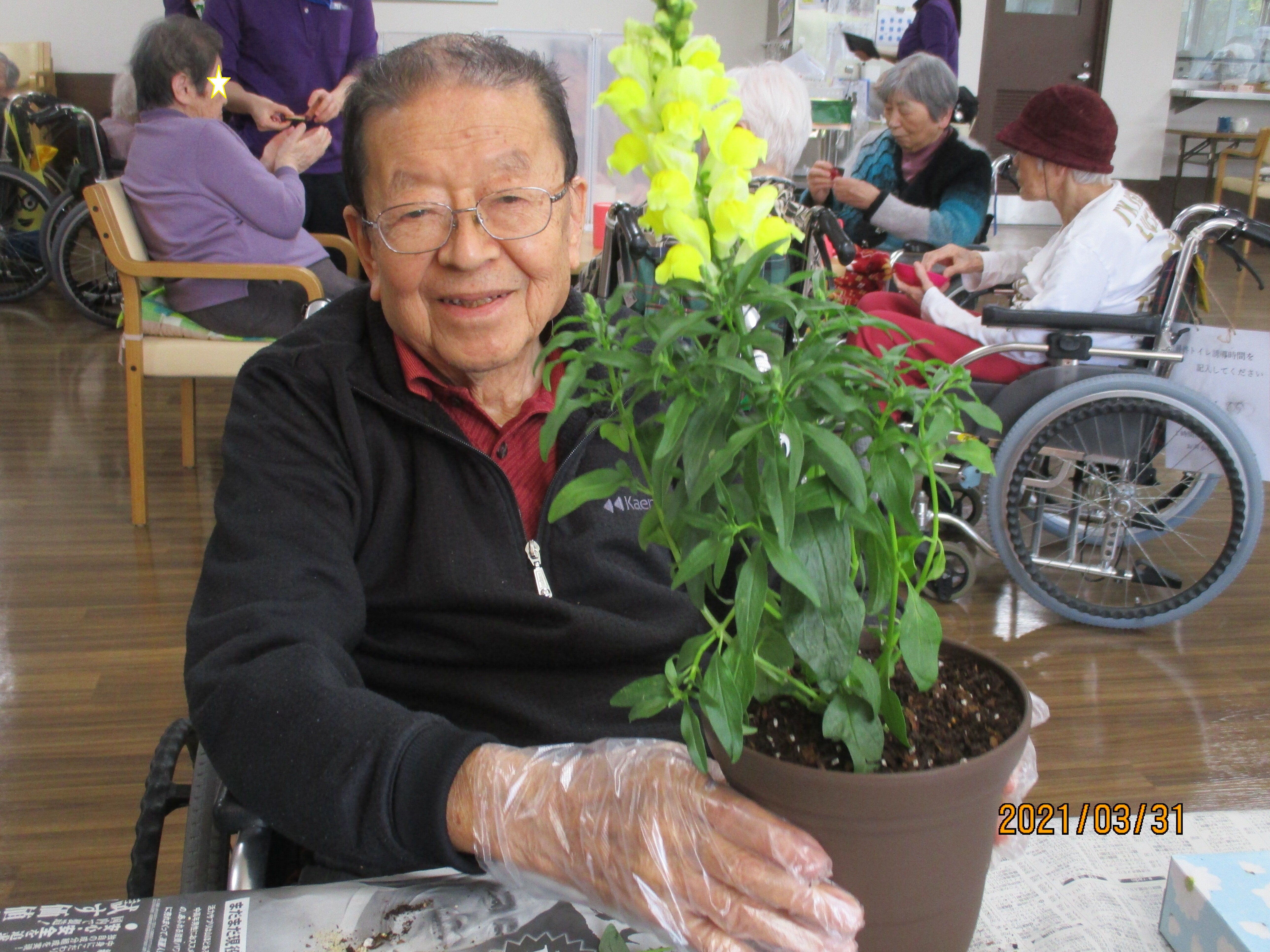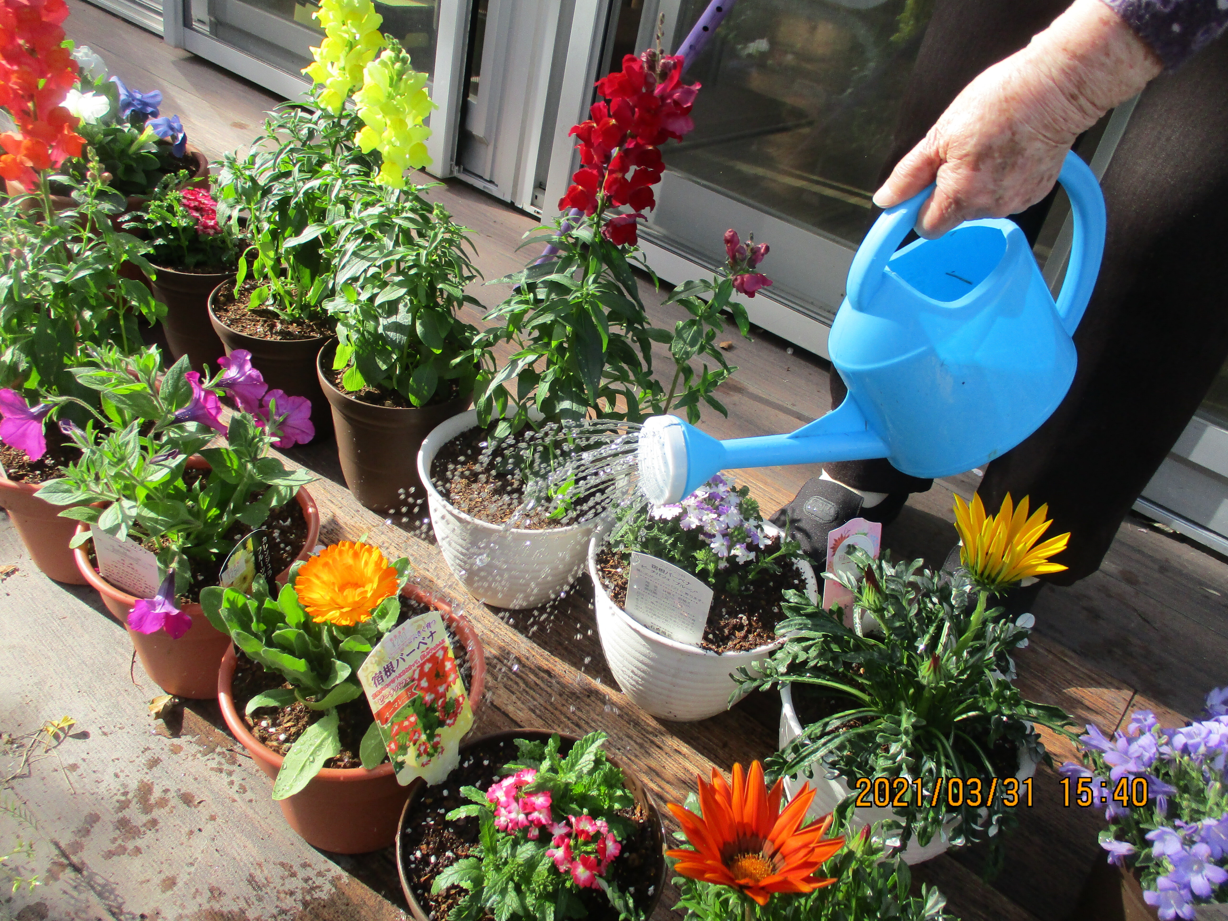 まずは3月31日 お花のお好きなみなさまと鉢植えをしました。