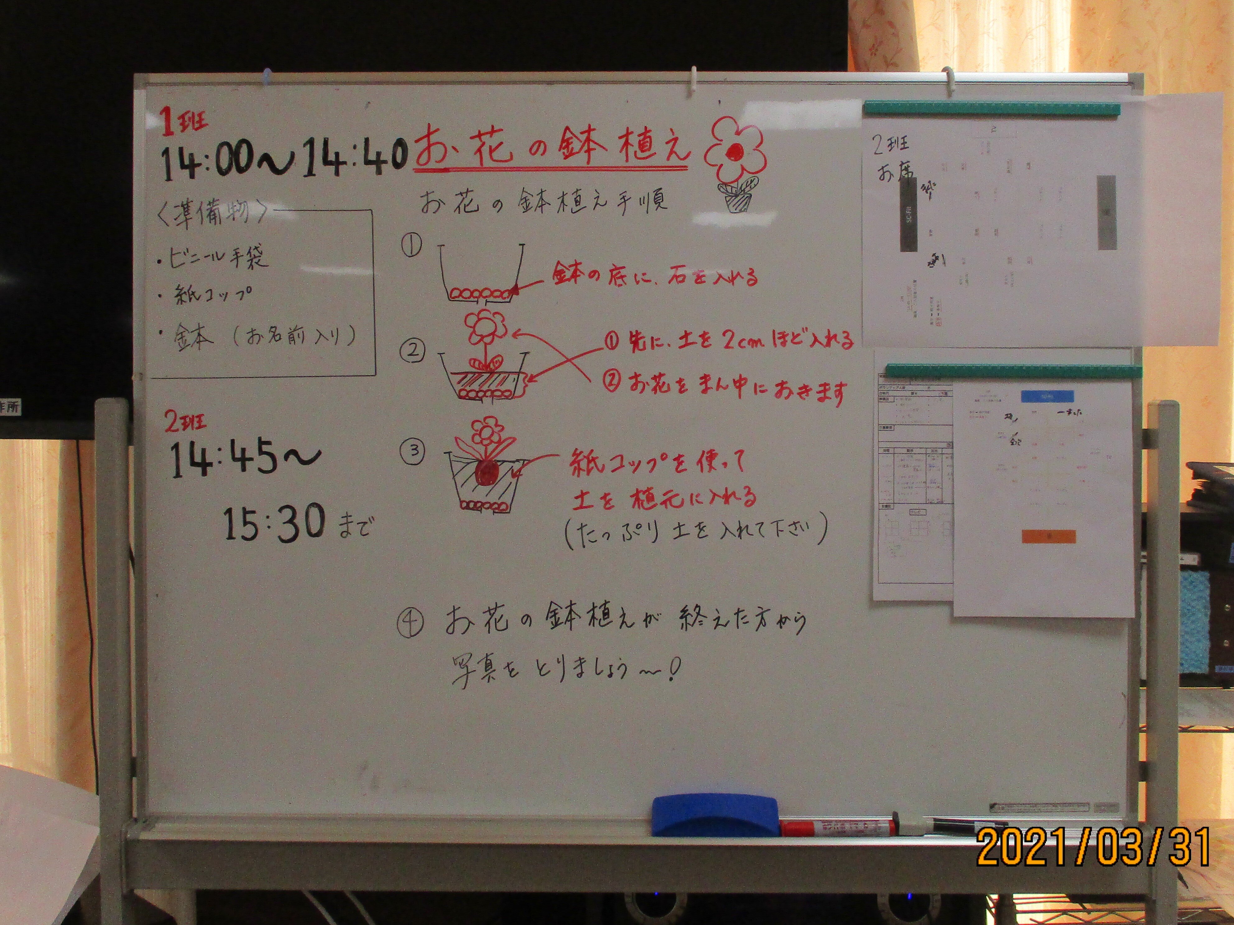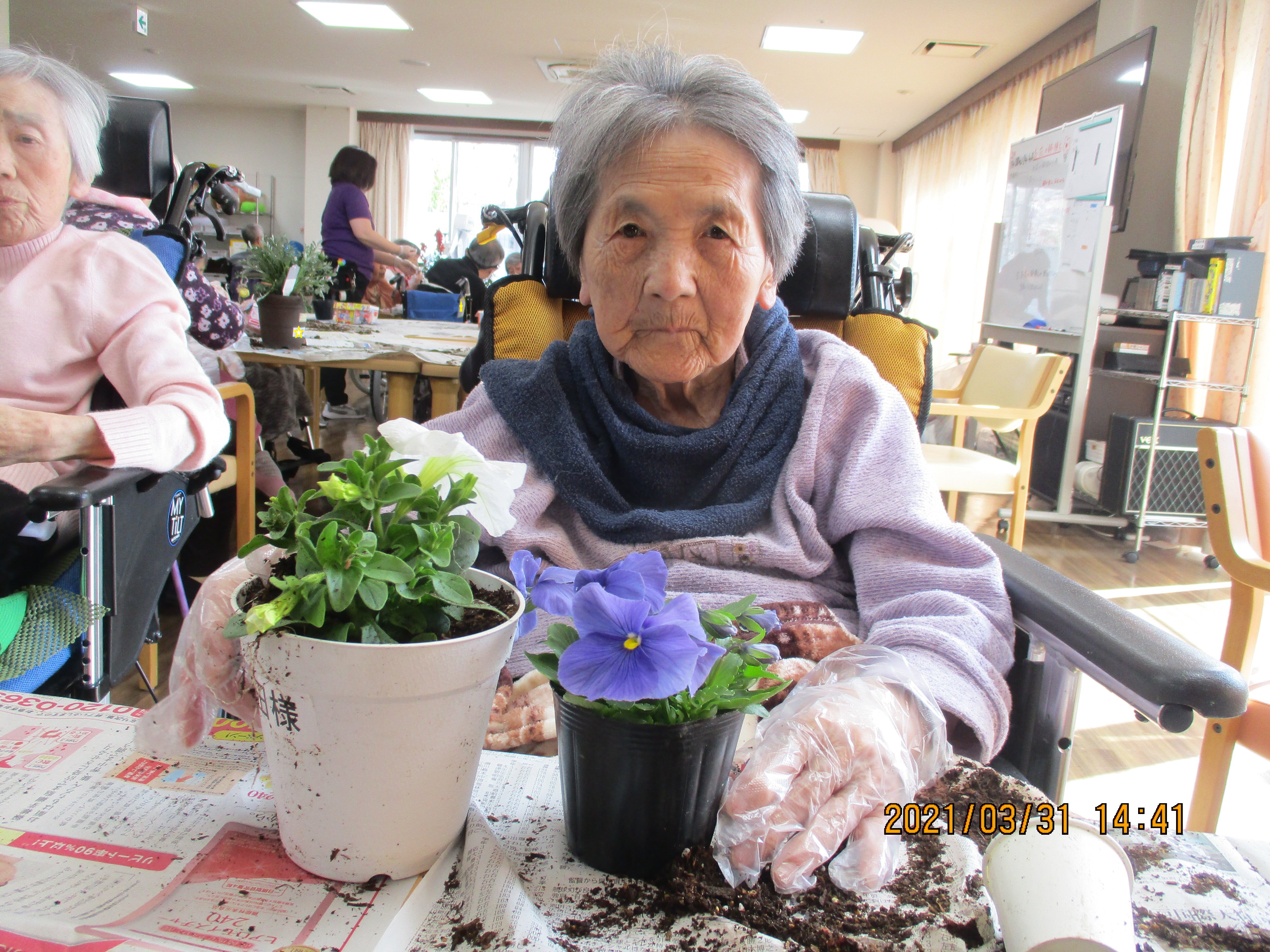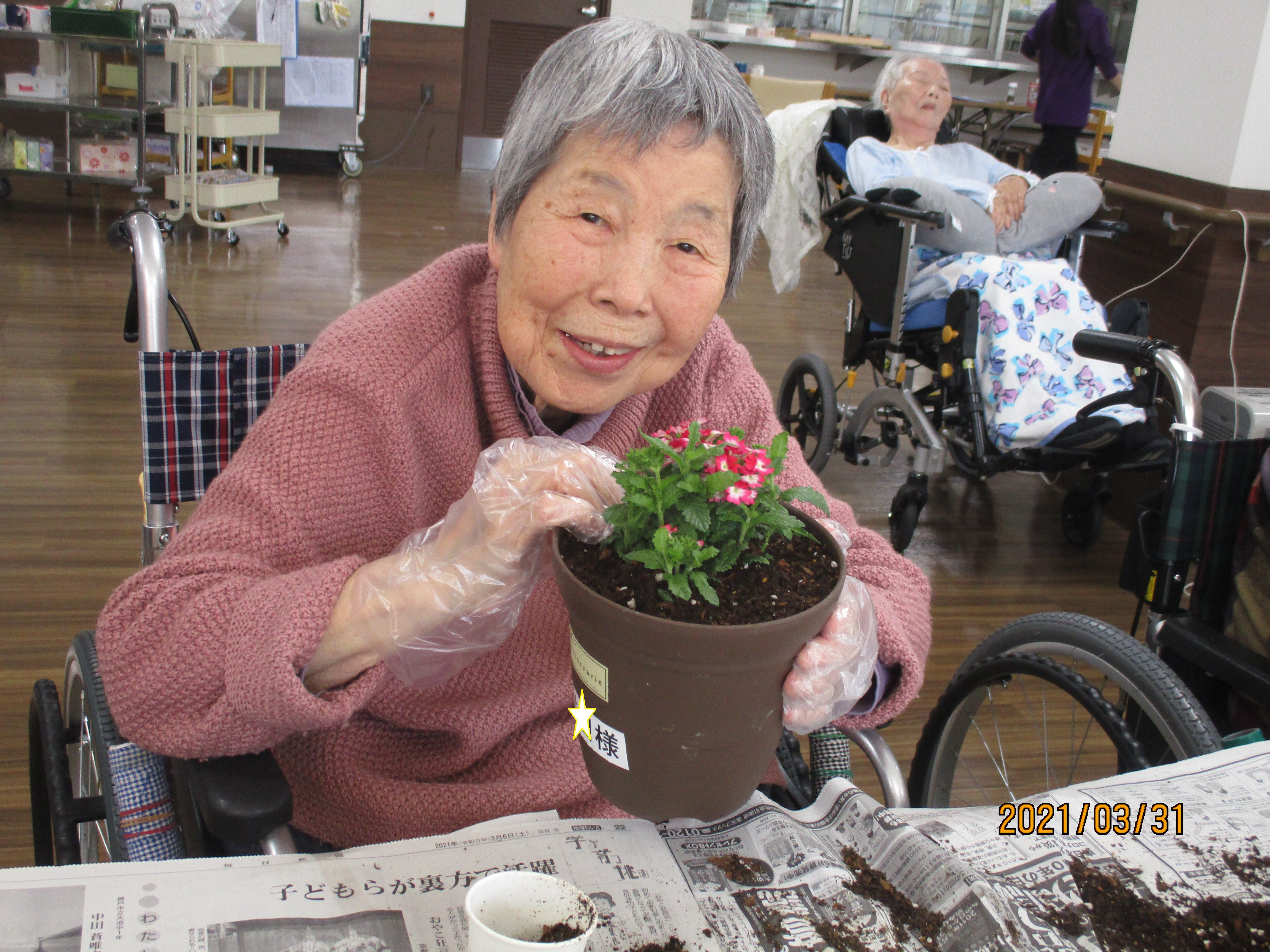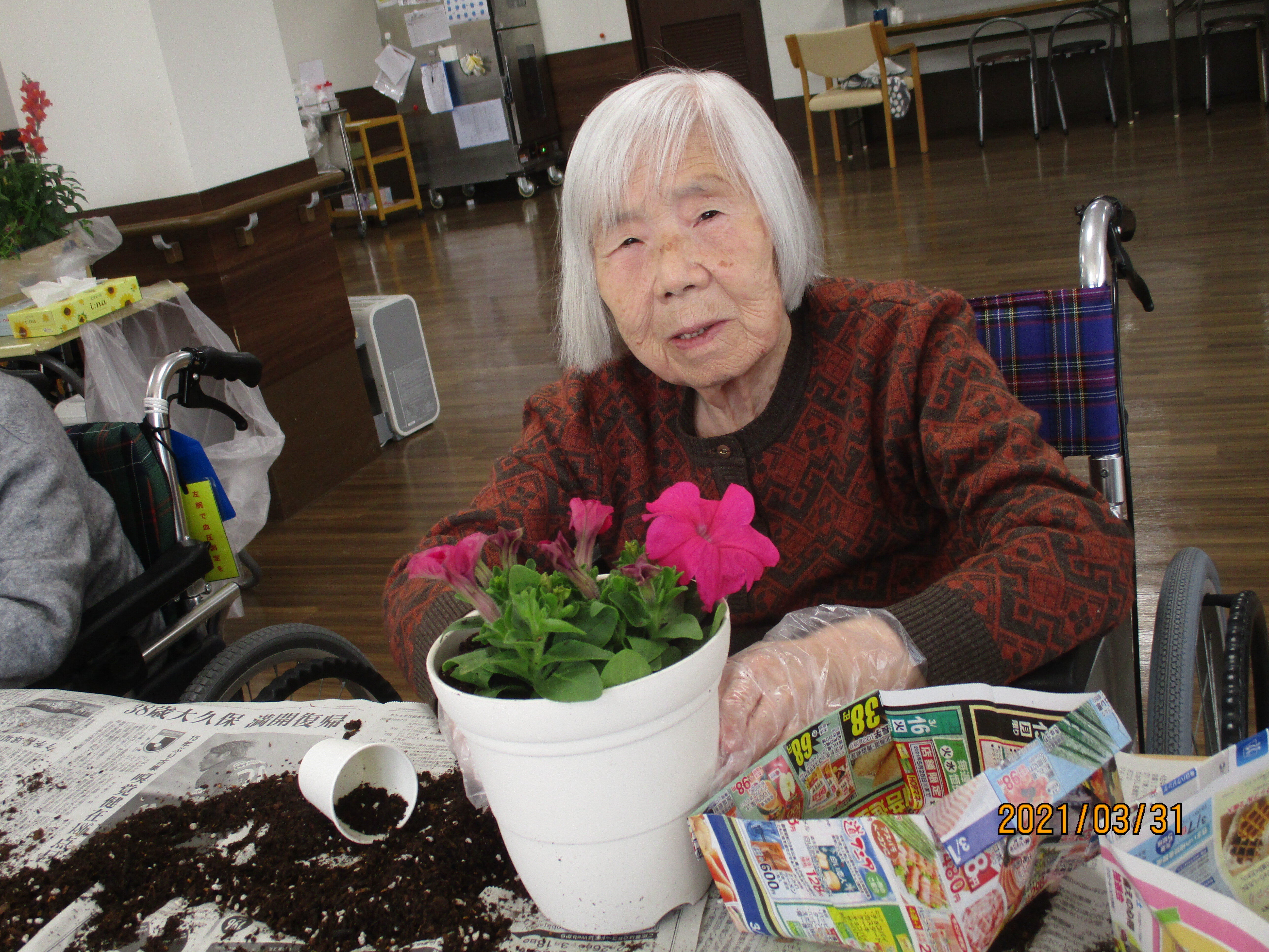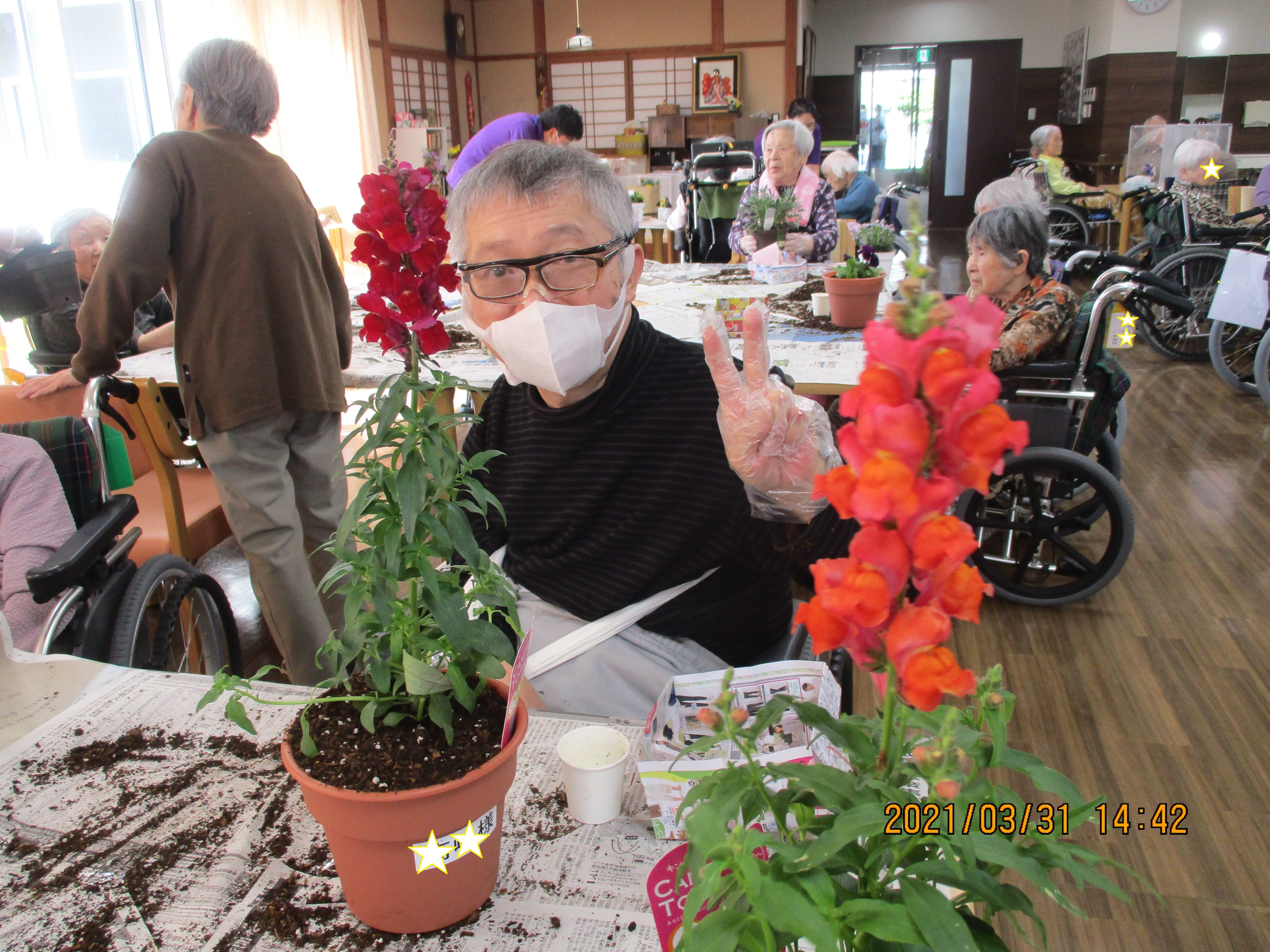 まずは3月31日 お花のお好きなみなさまと鉢植えをしました。