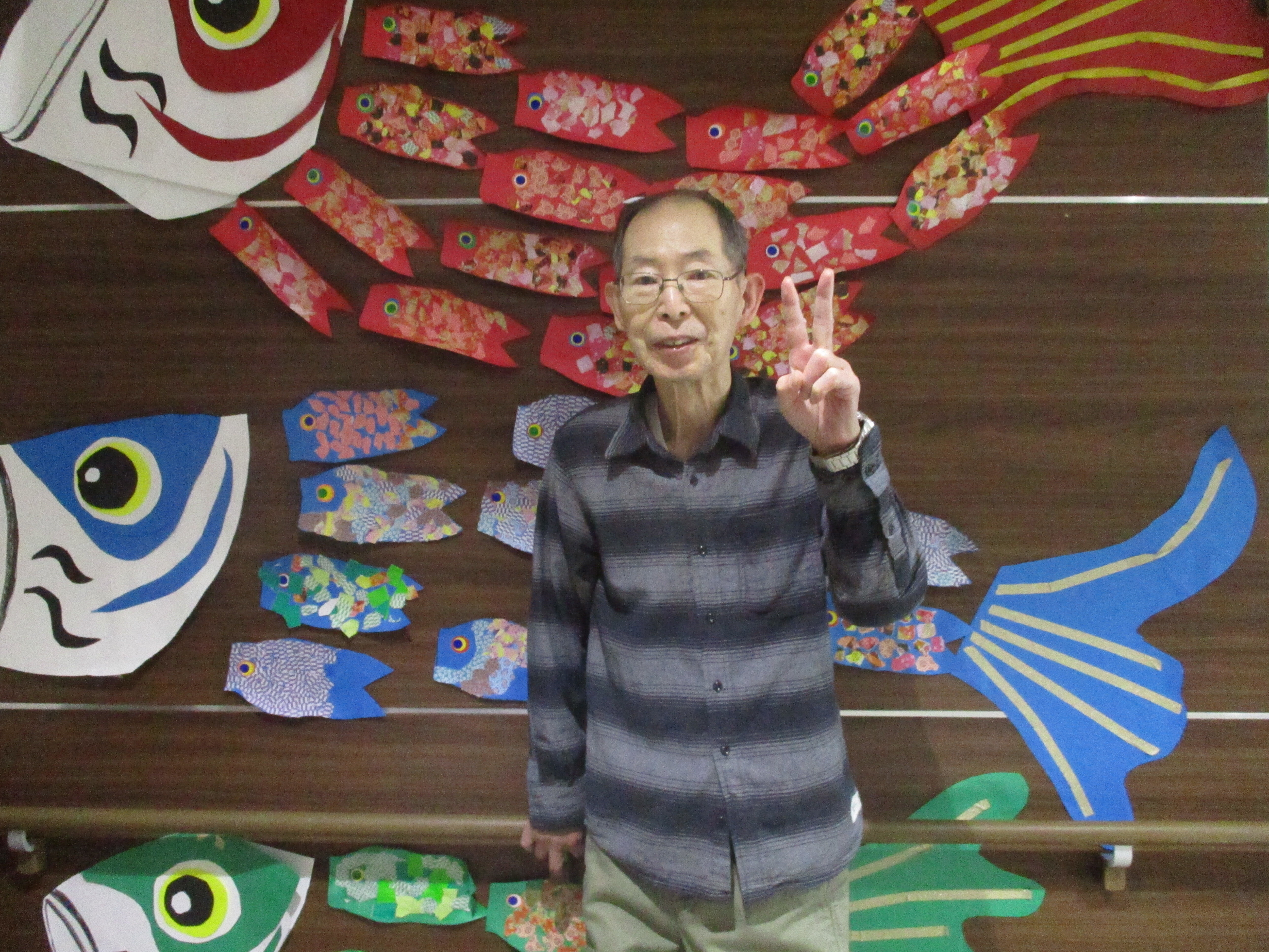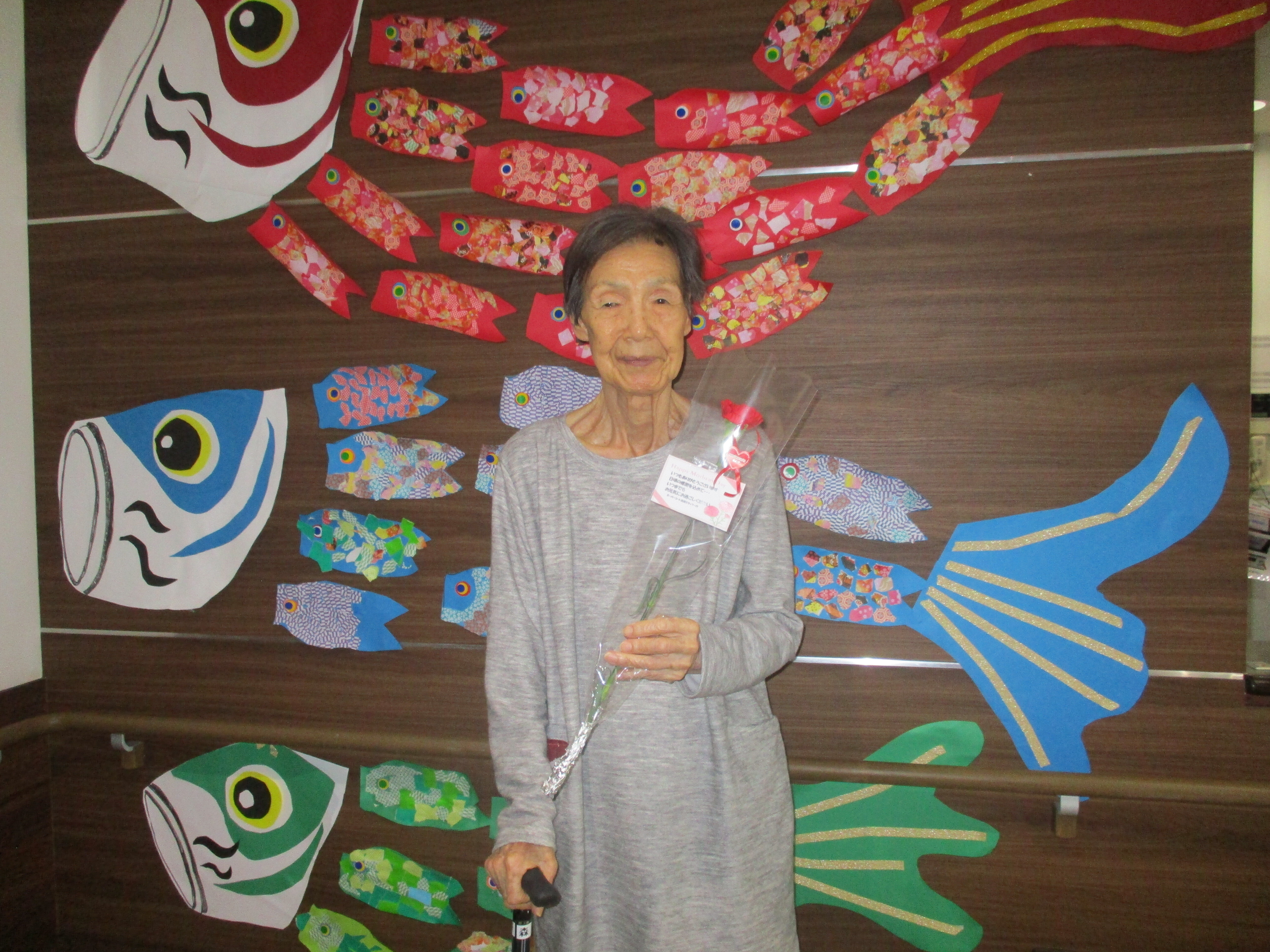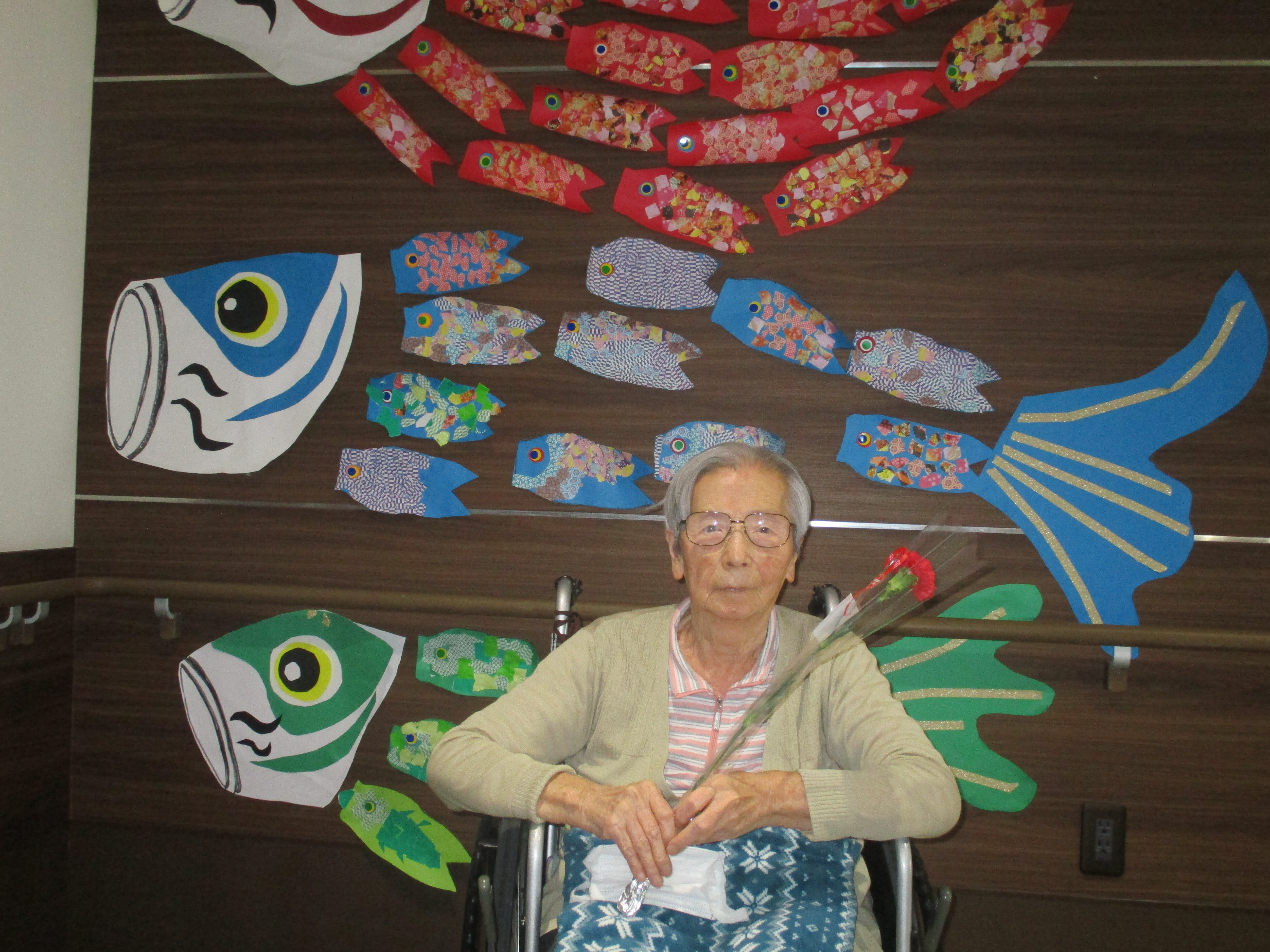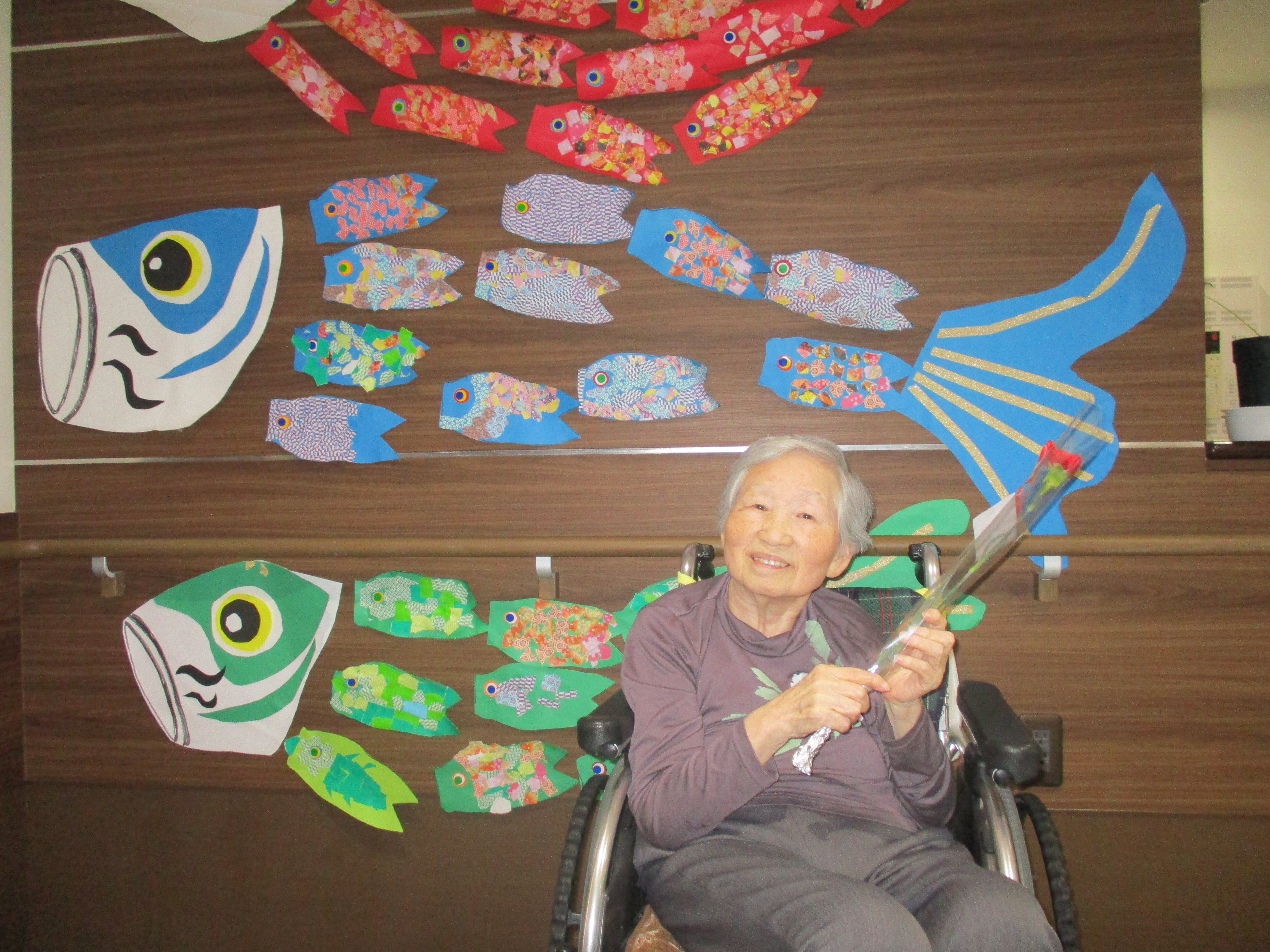 さて今回は鯉のぼりの壁画作りと母の日レクを