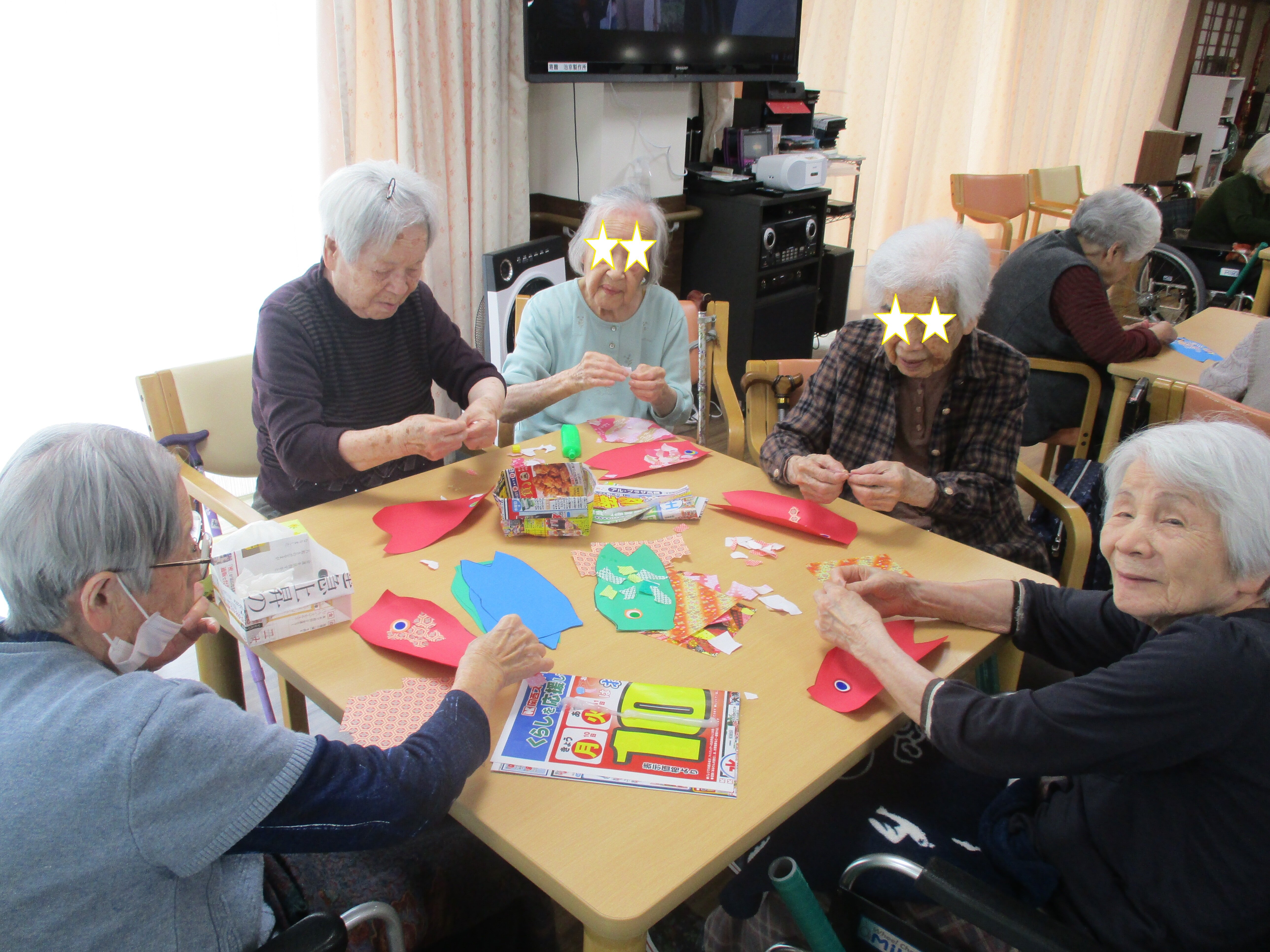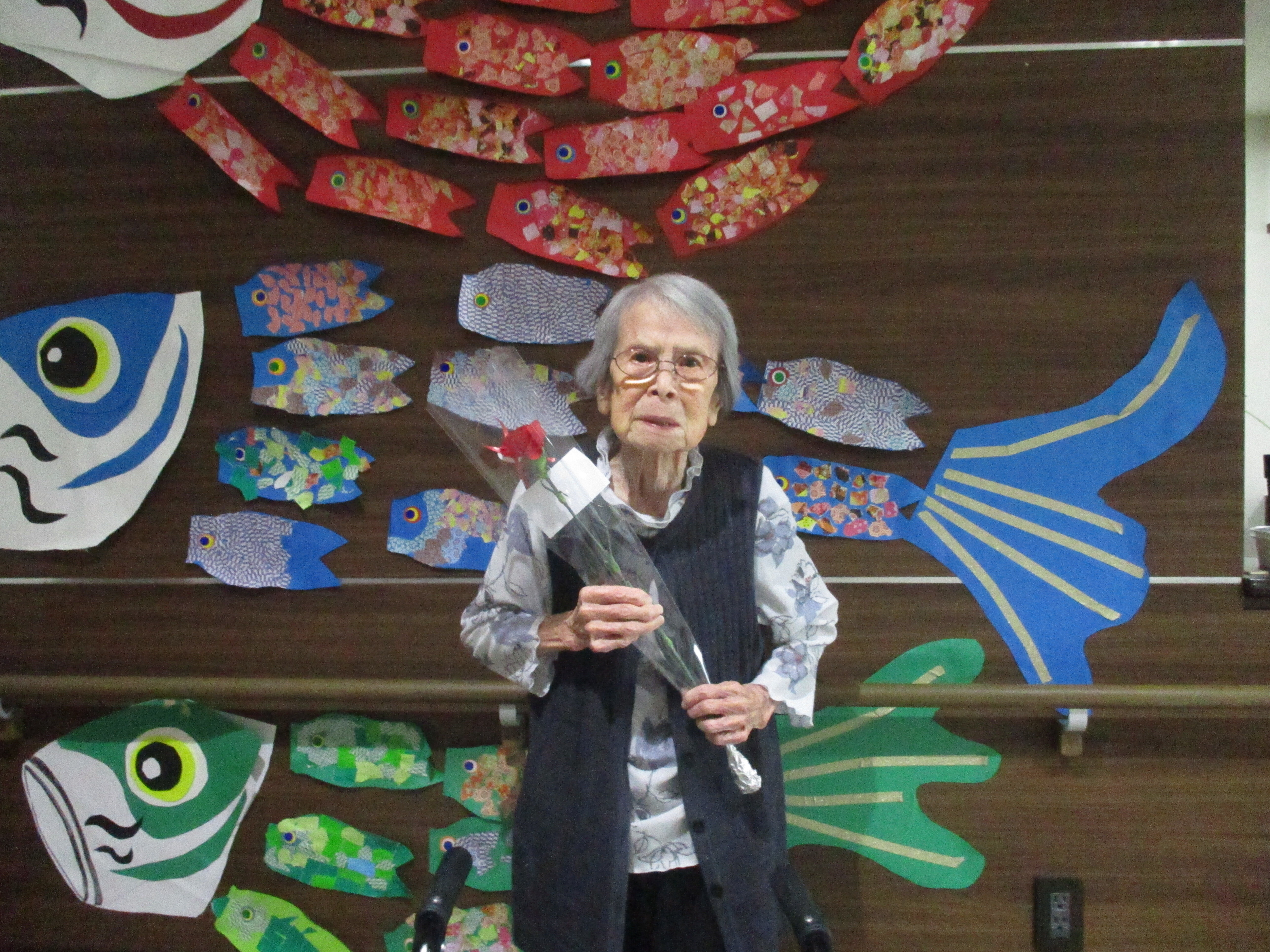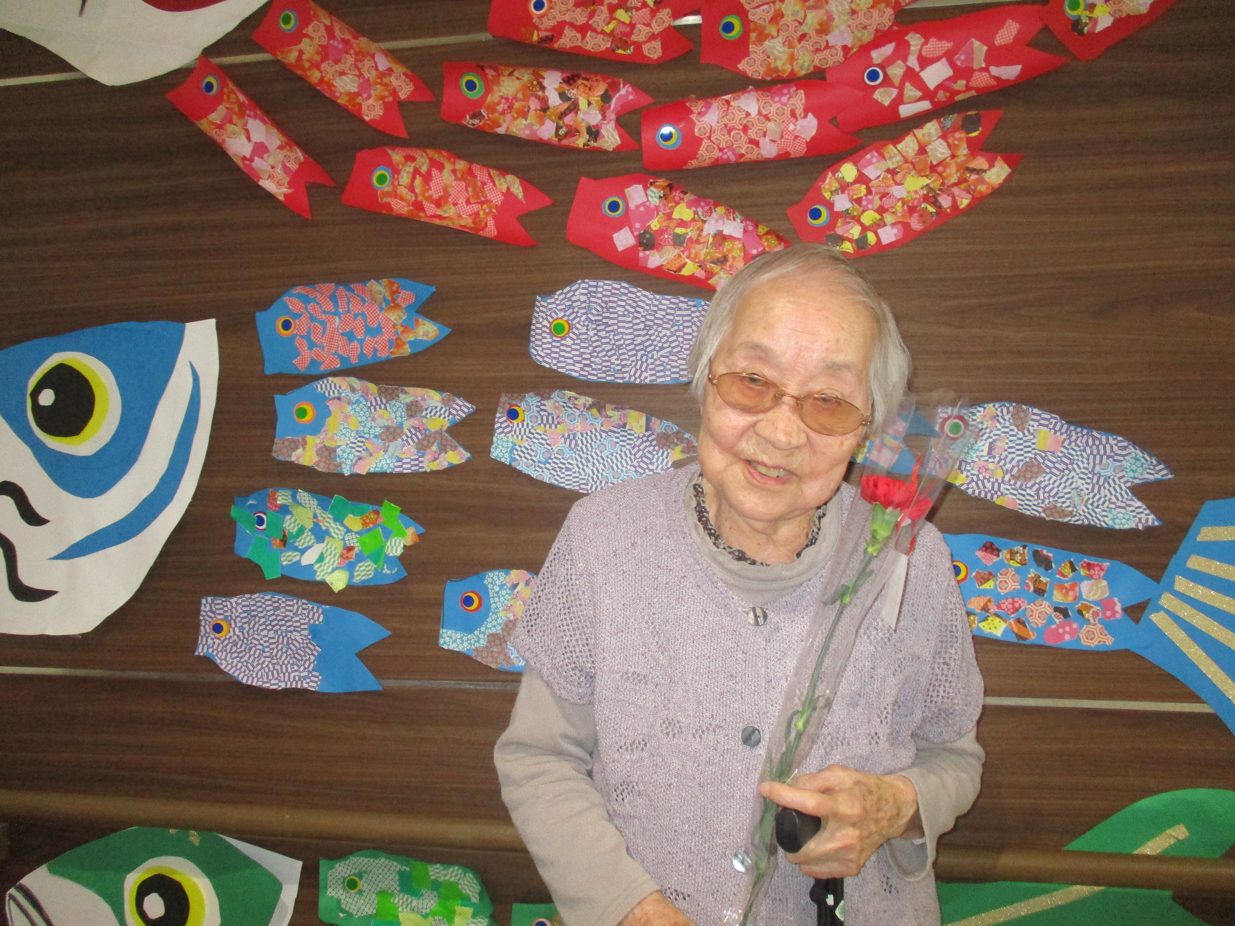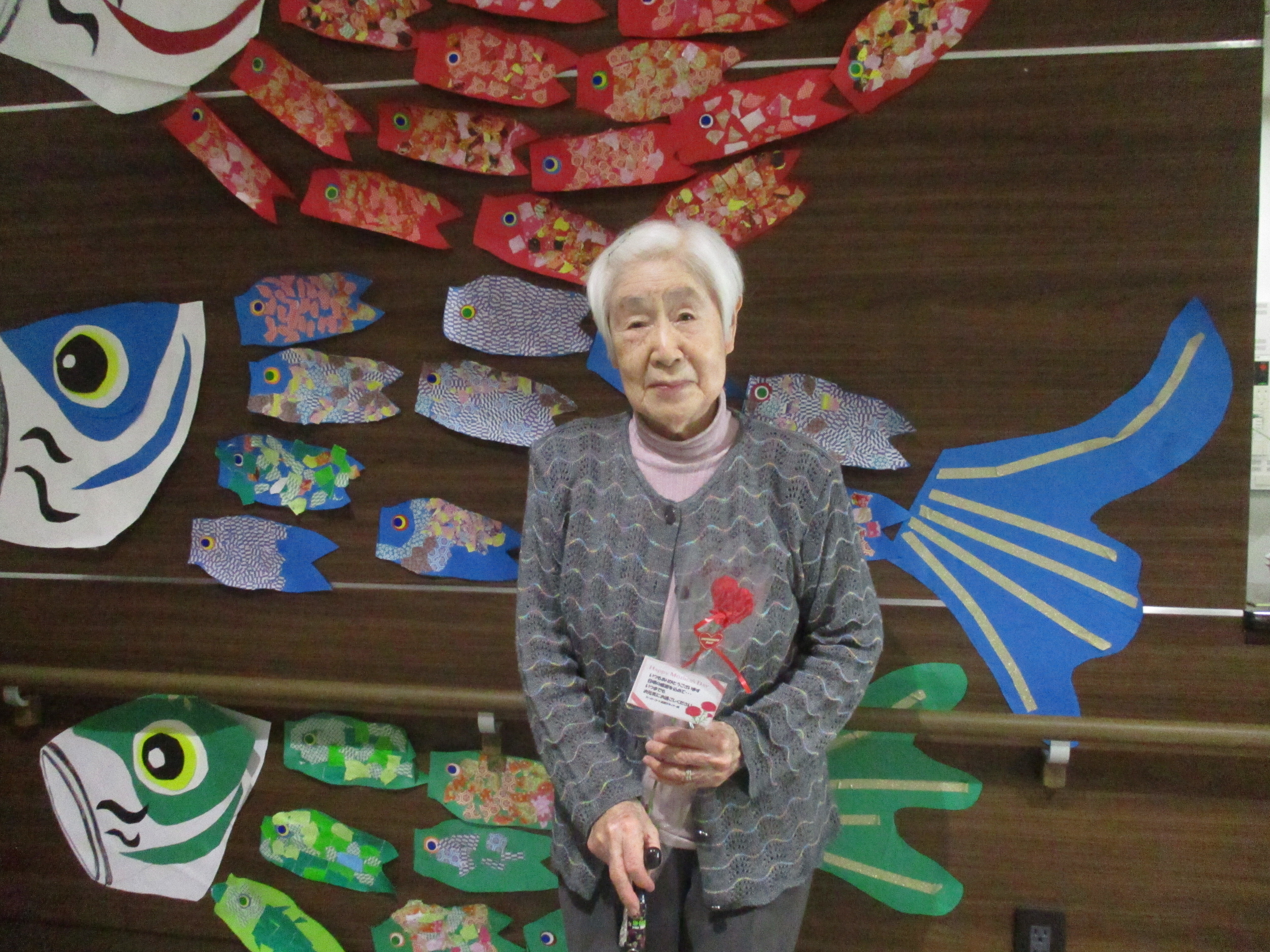 さて今回は鯉のぼりの壁画作りと母の日レクを