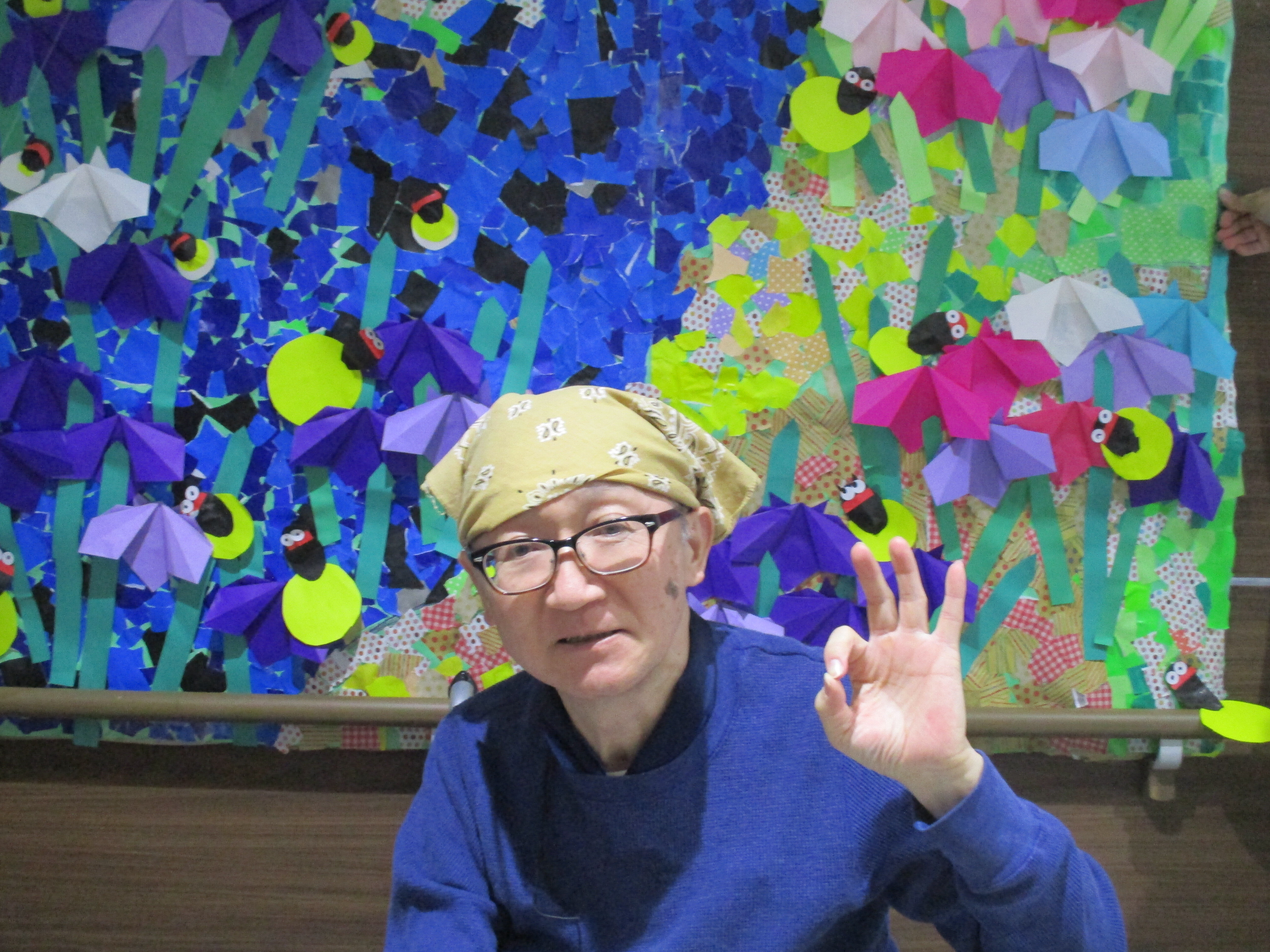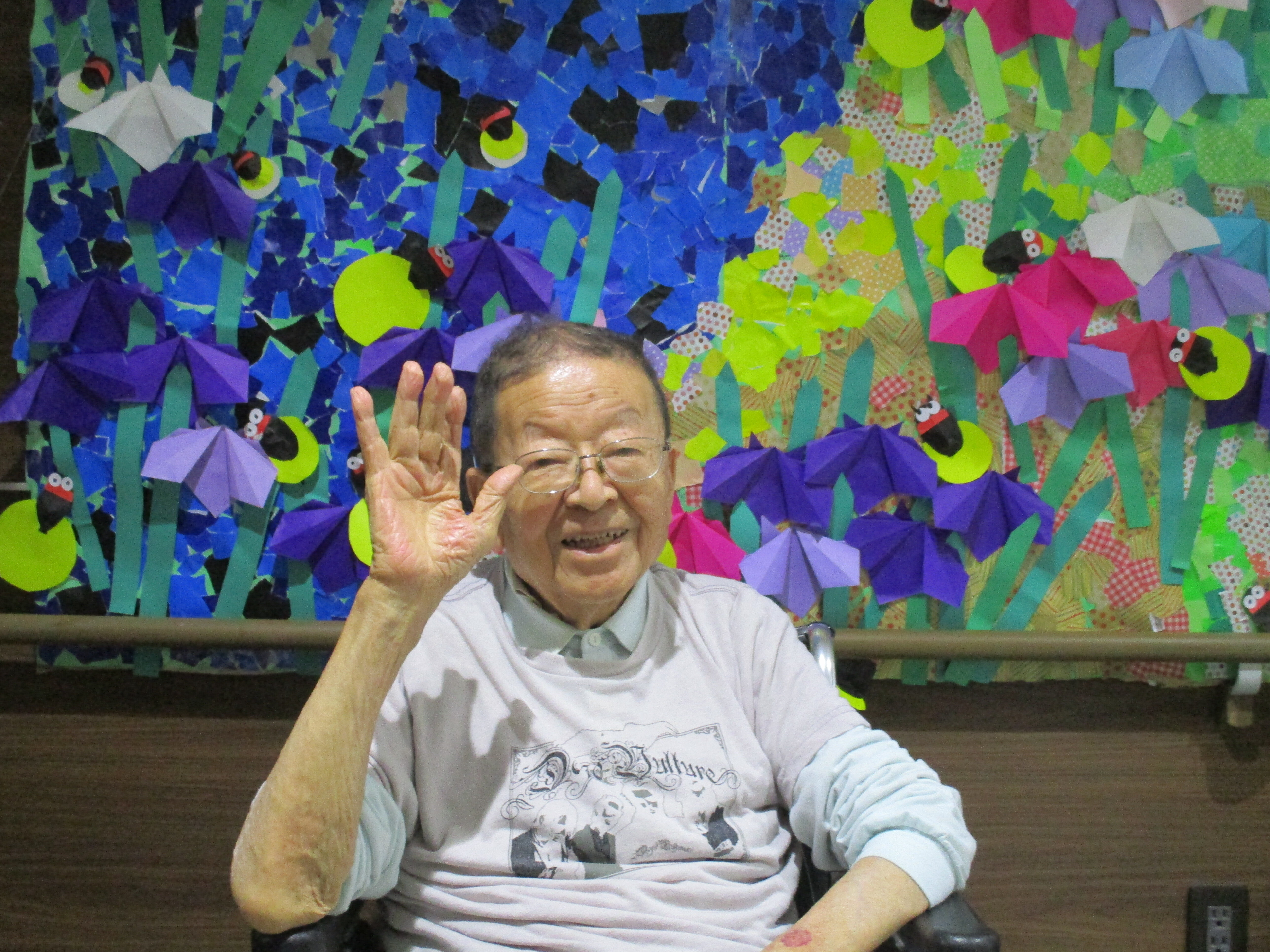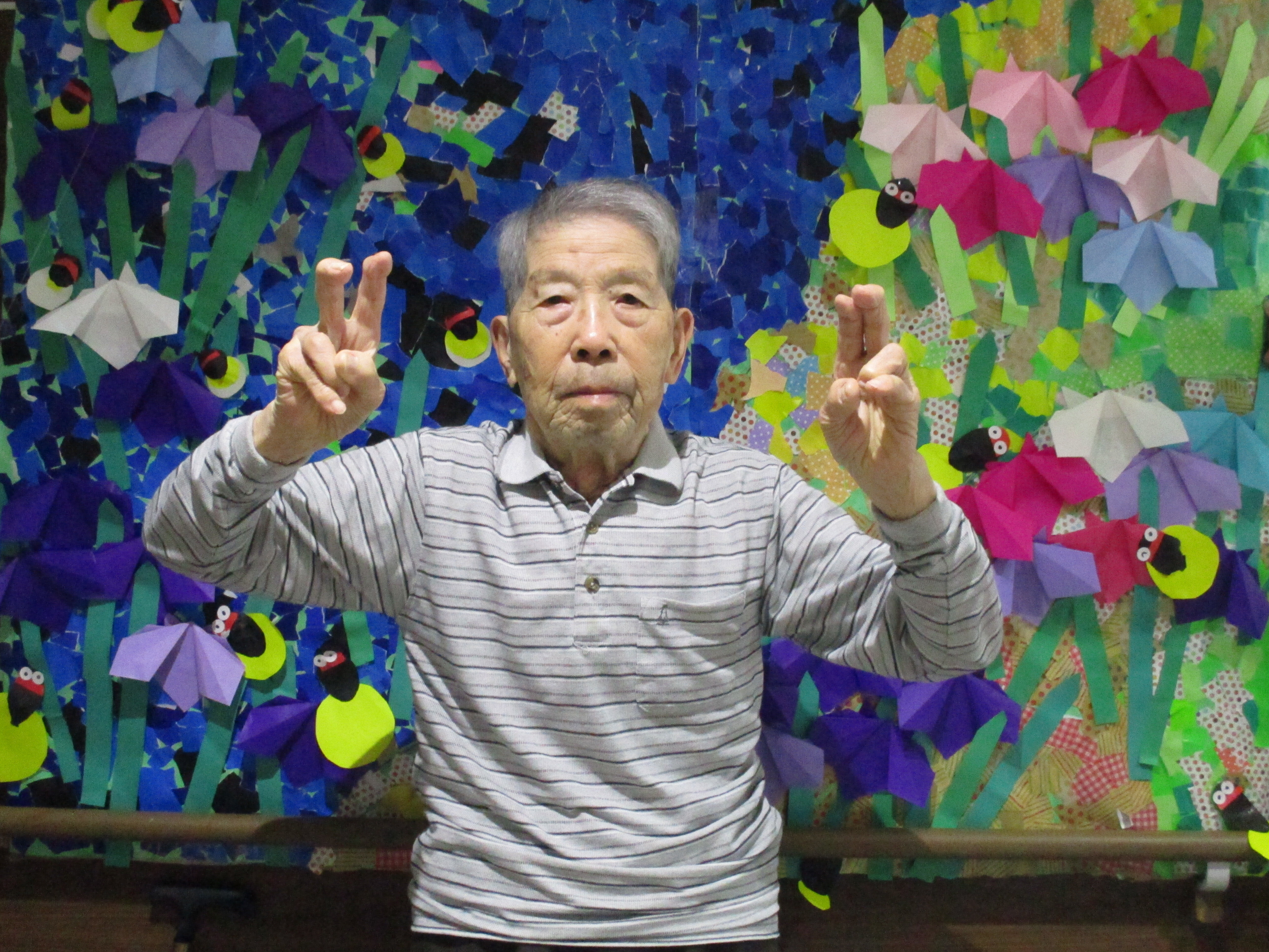 男性のご入居者は壁画の前で記念撮影です!(^^)!