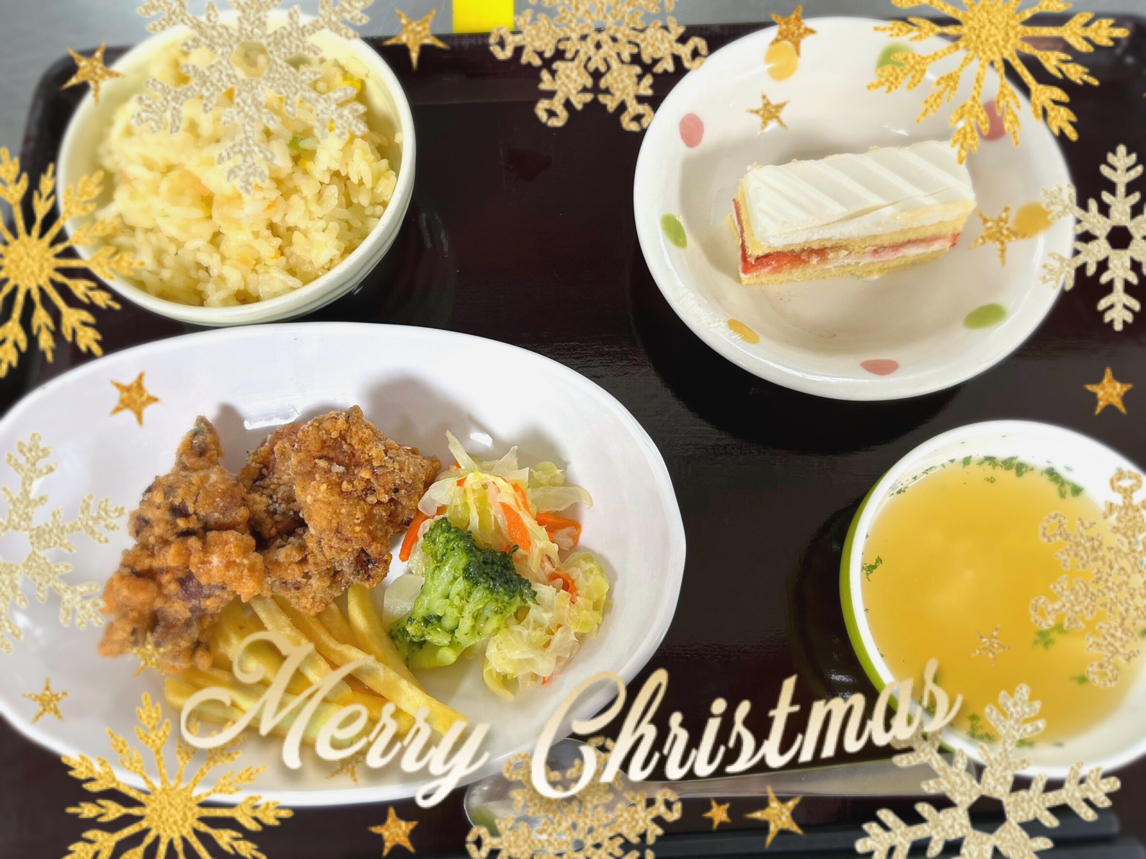 高槻では25日のクリスマスの昼食にクリスマスメニューが振舞われました!