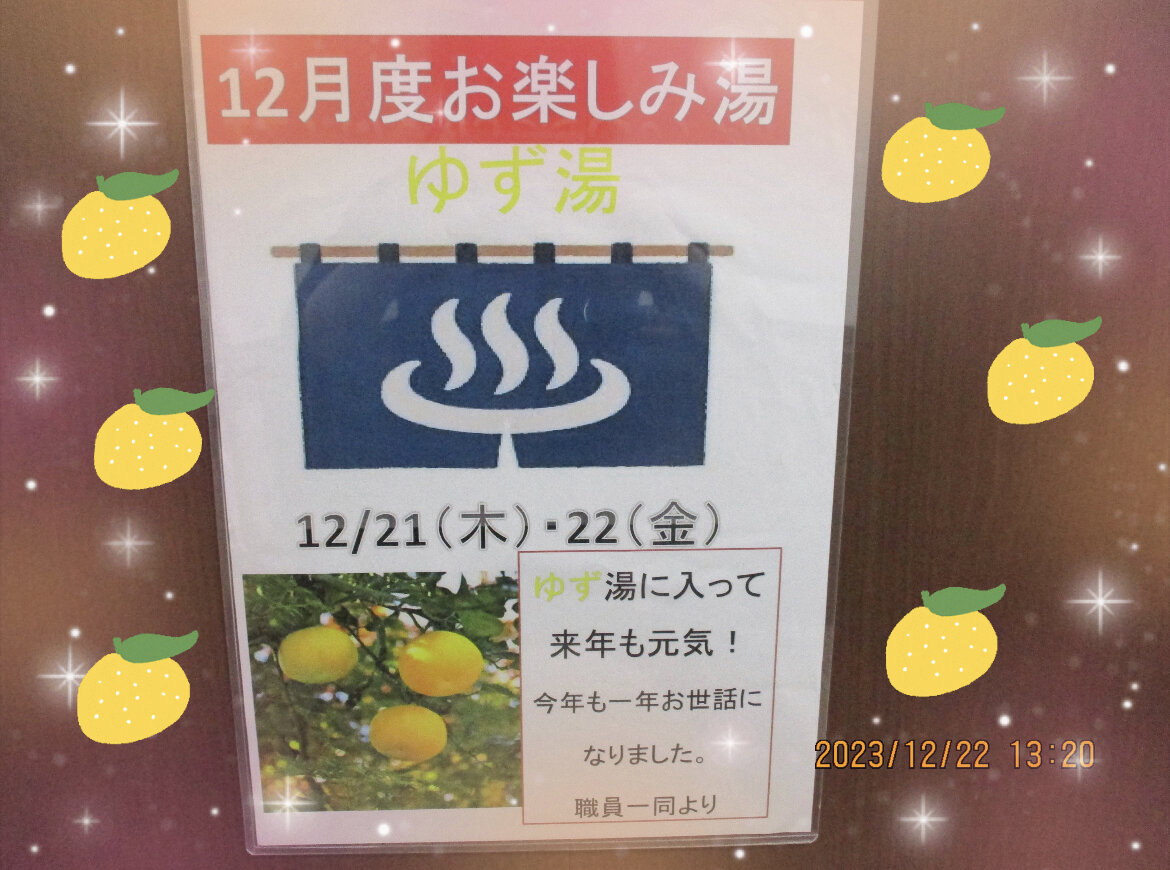 高槻では12月21日・22日にゆず湯に入って頂きました!