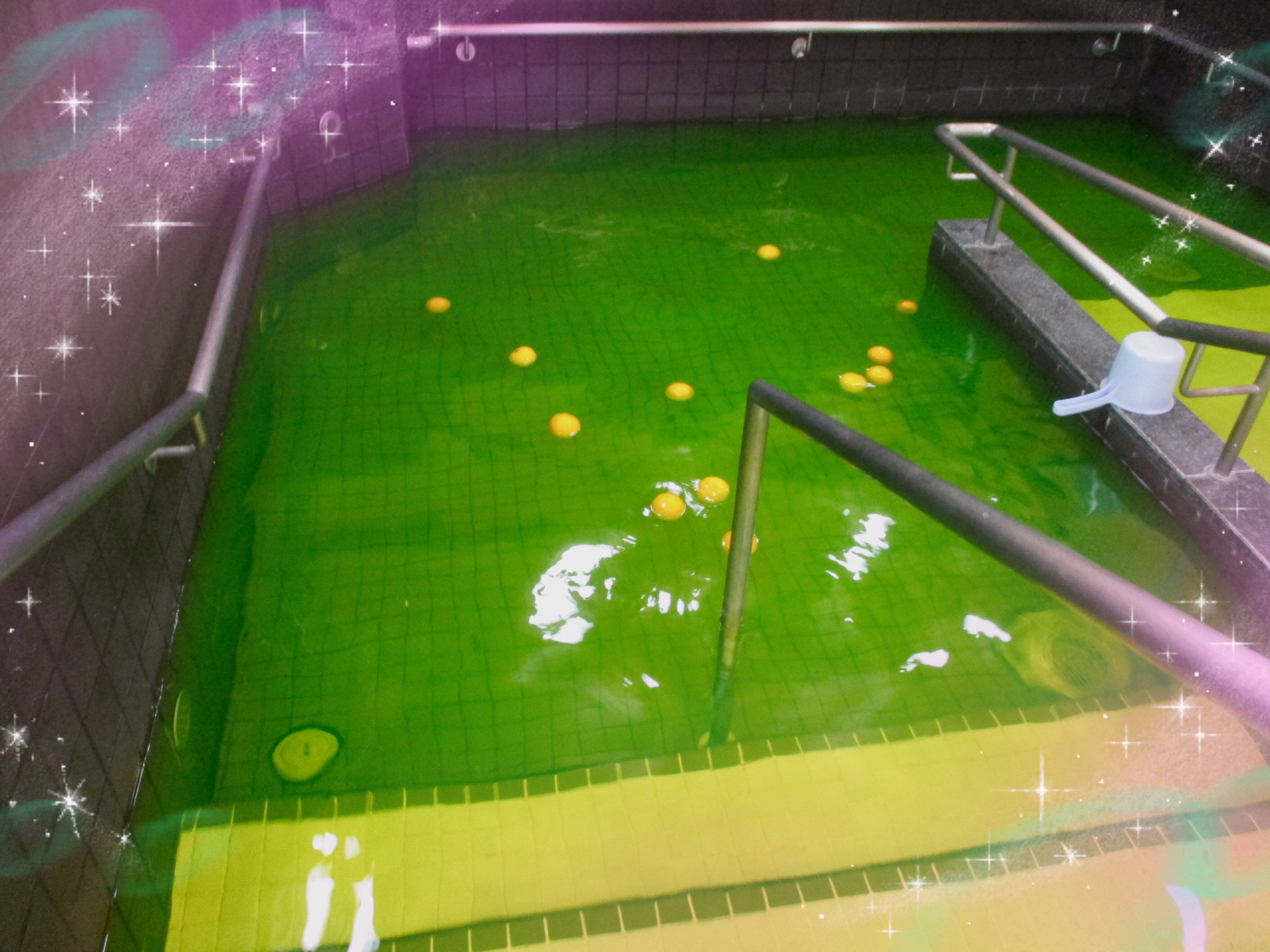 本物の柚子を浮かべて柚子の香りのする入浴剤で柚子の香りと色に包まれながら