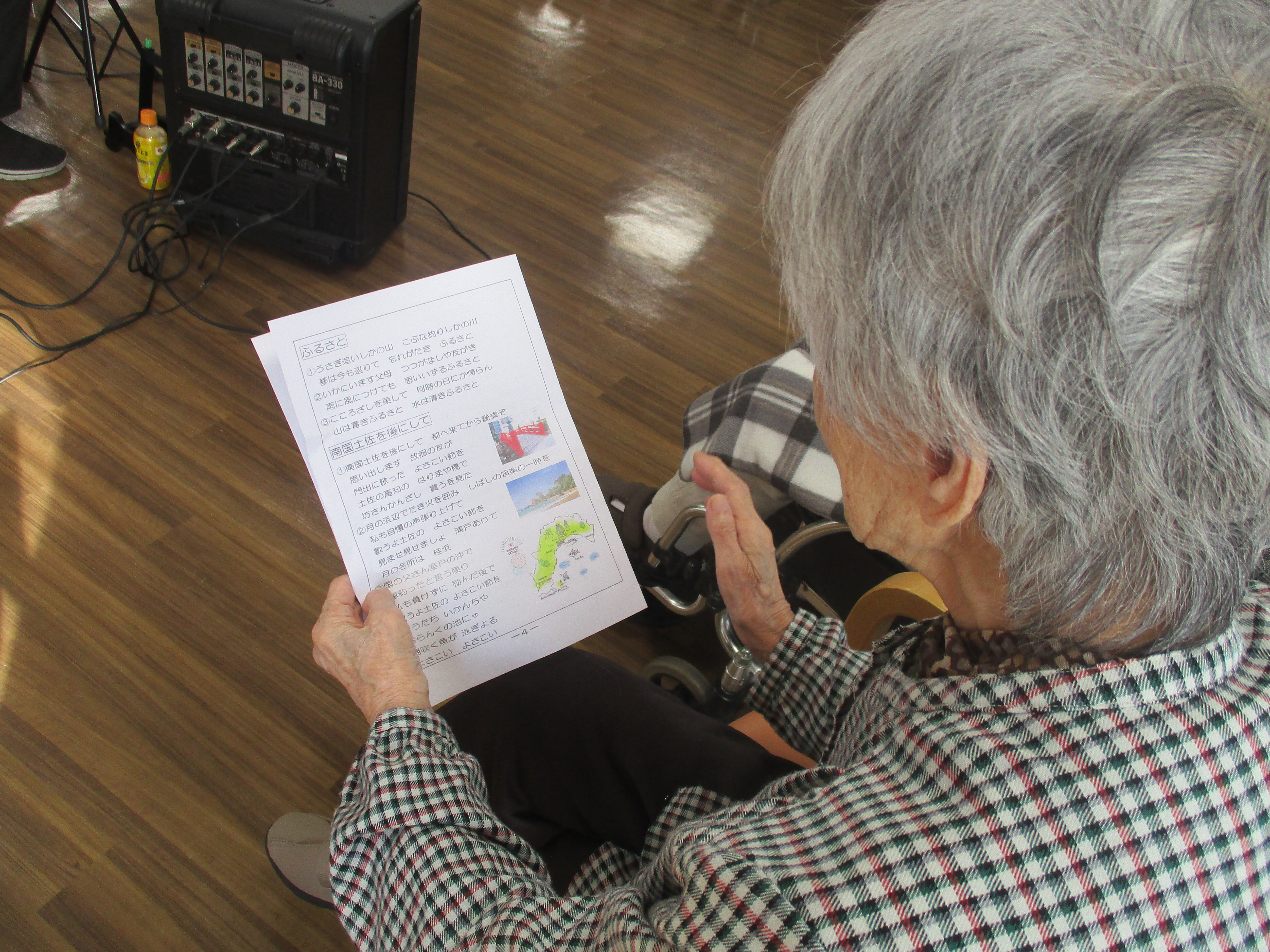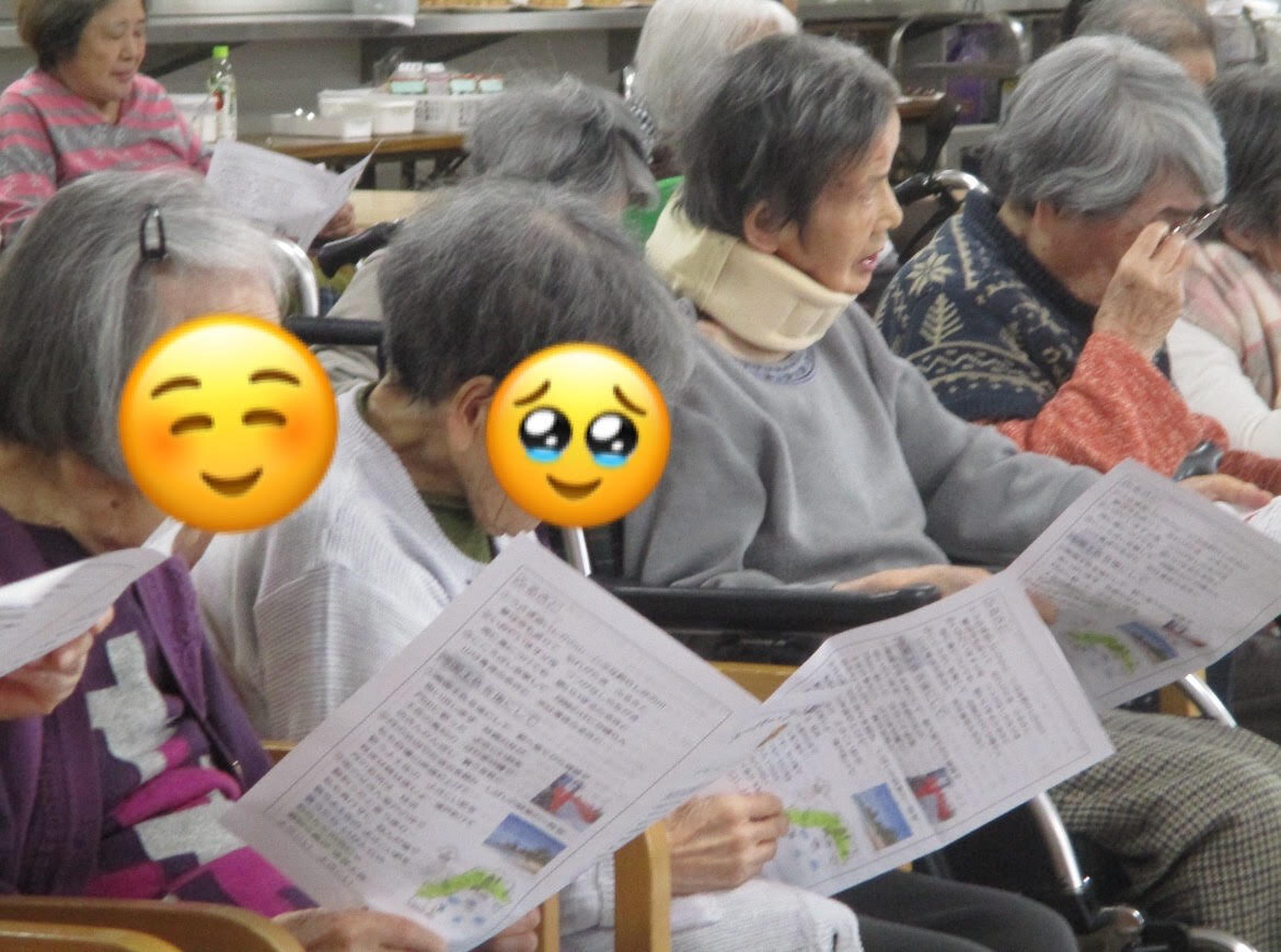 みなさま歌詞カードを見ながら知っている曲は口ずさんだり三線のゆったりとした音色を楽しまれていました(^^♪
