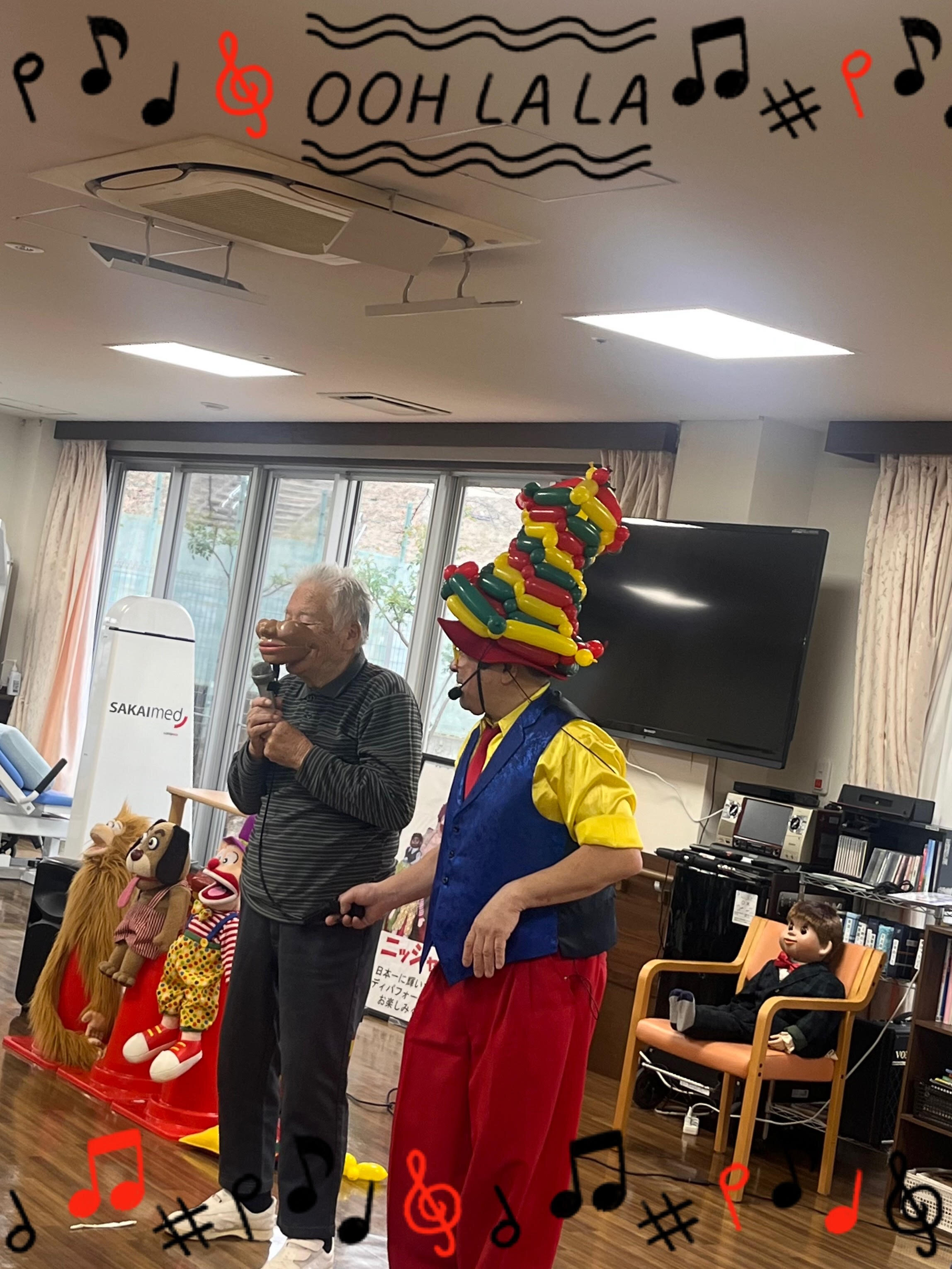 前回バルーンアートがご入居者にも職員にも好評だったので今回はたくさん持ってきてくださいました!♡