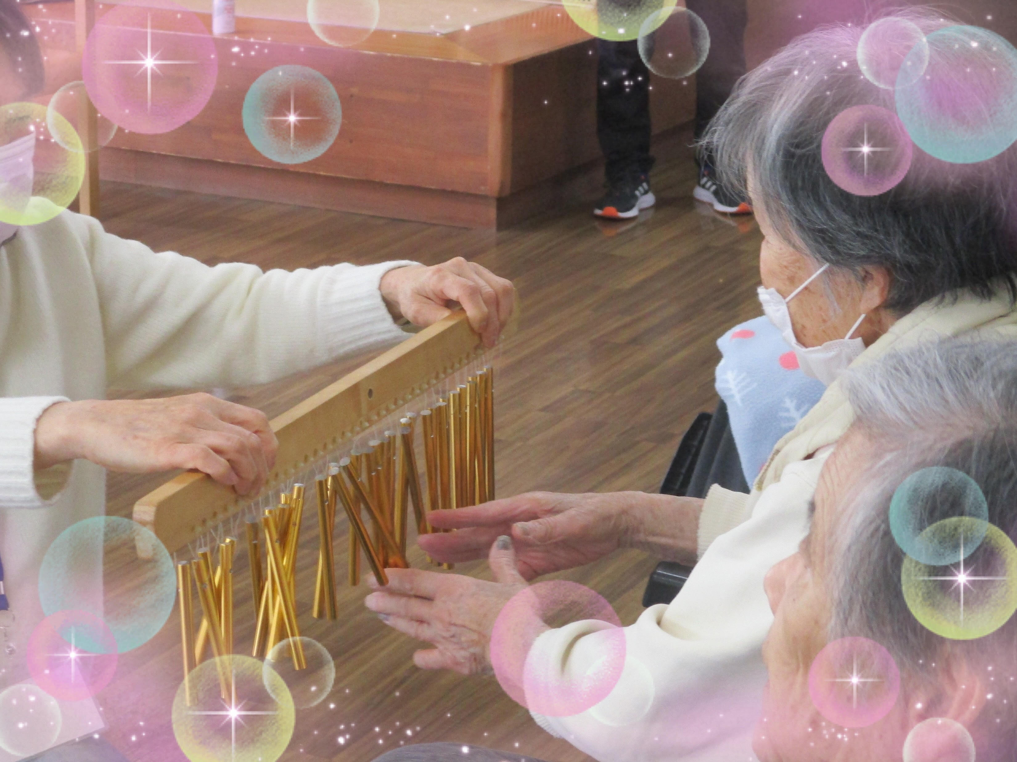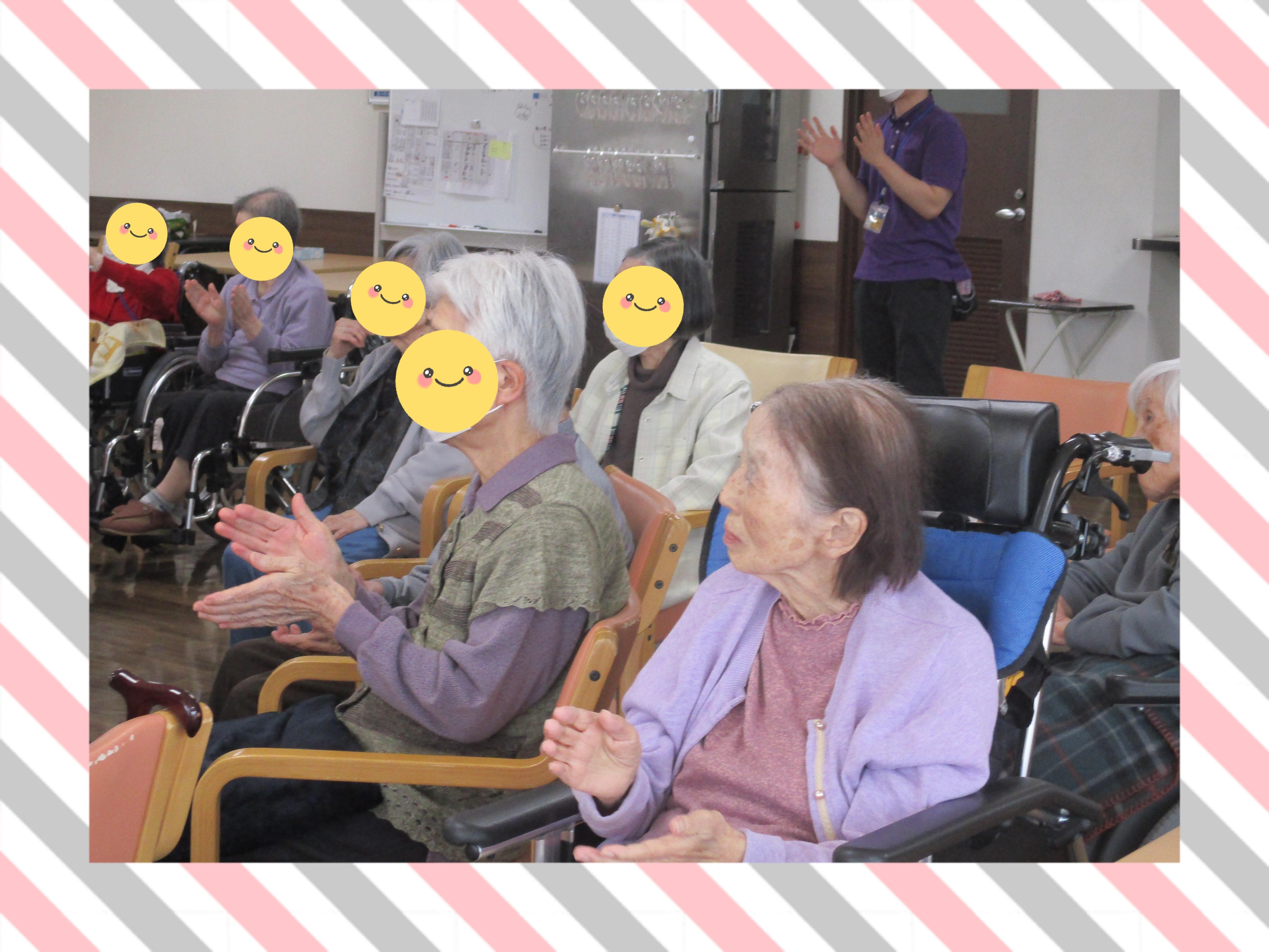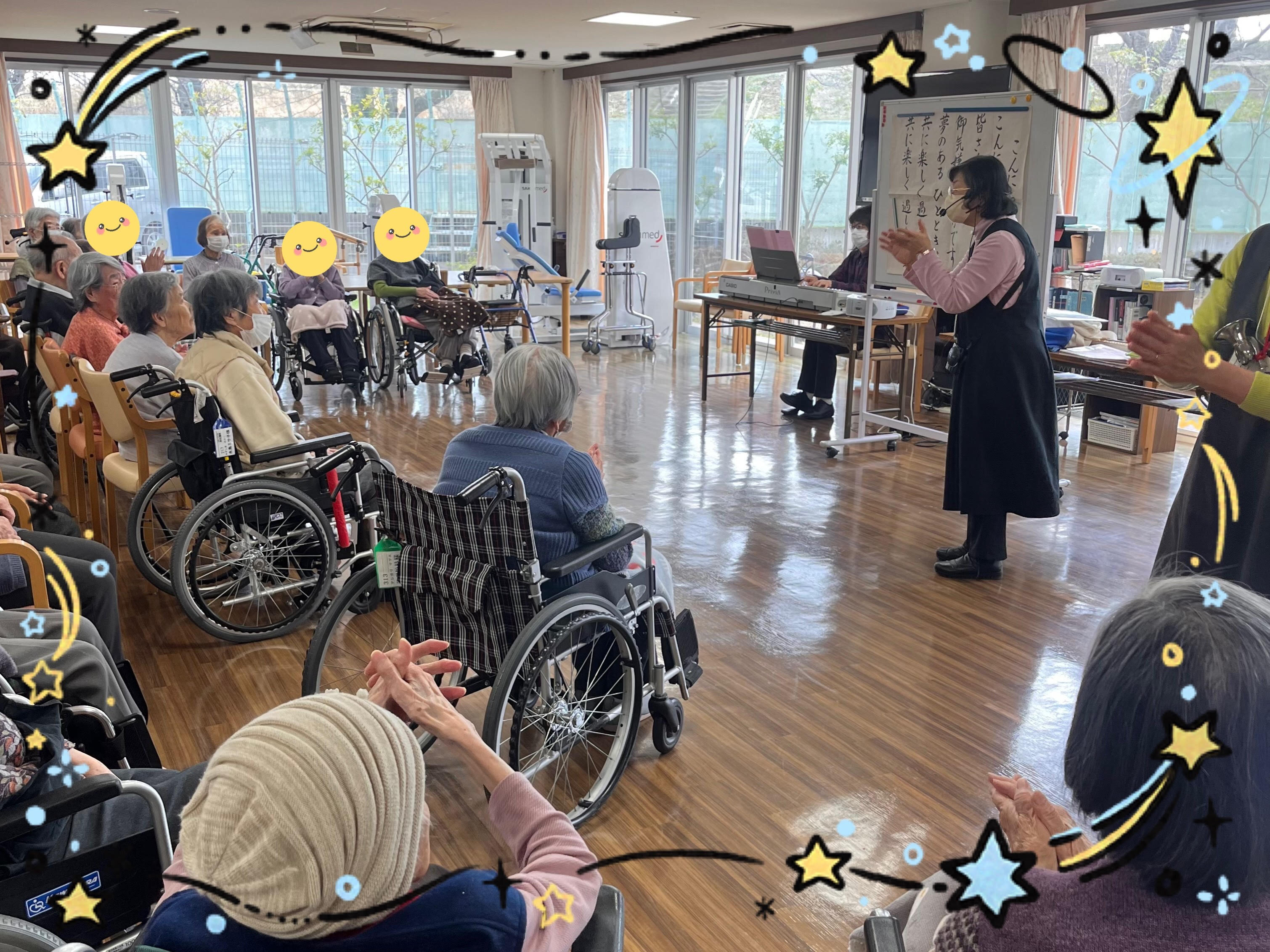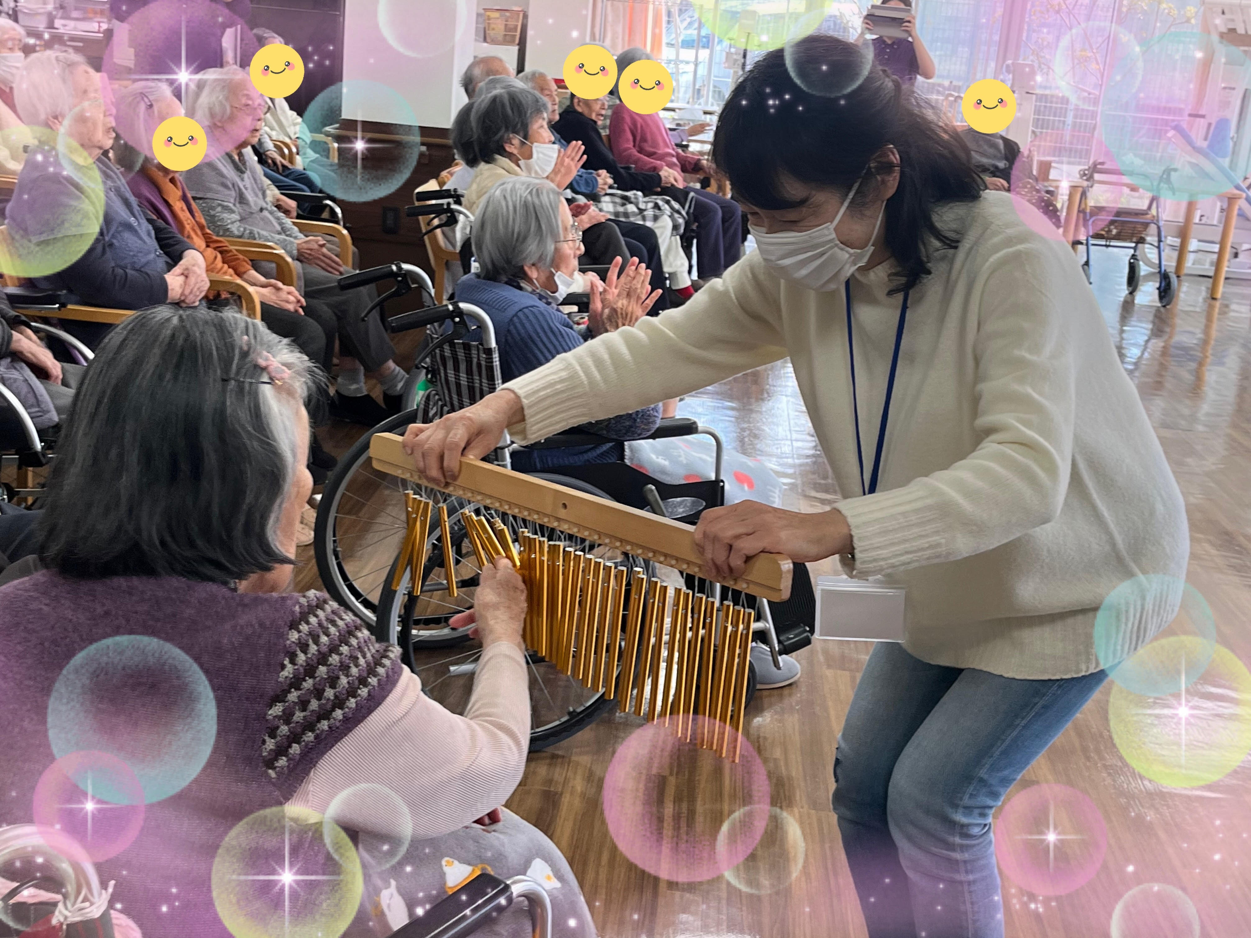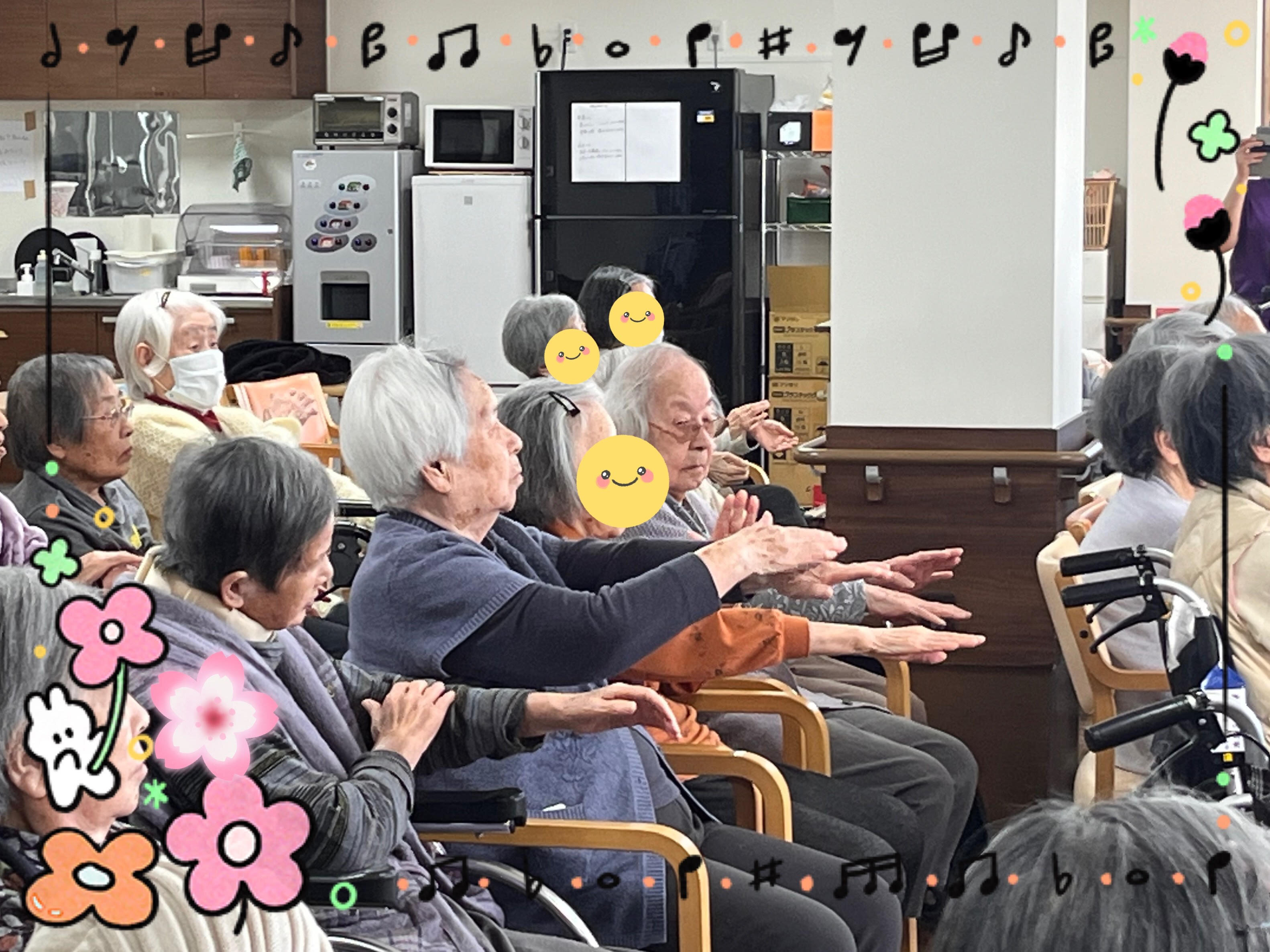 響レクは2ヶ月に1回(奇数月)音楽療法「響」さまにお越しいただき、リズム体操や演奏や紙芝居を披露してくださるレクリエーションです♬