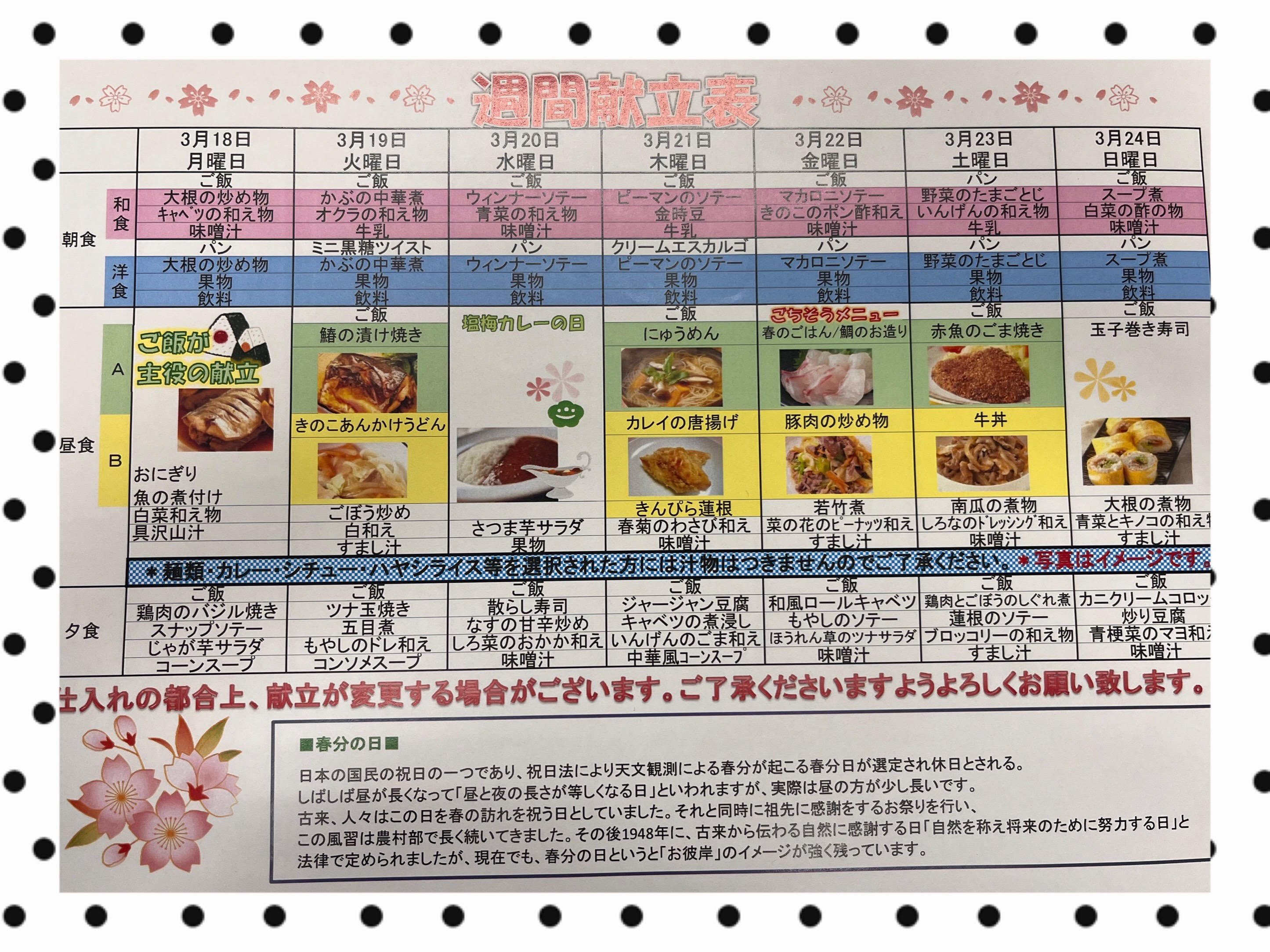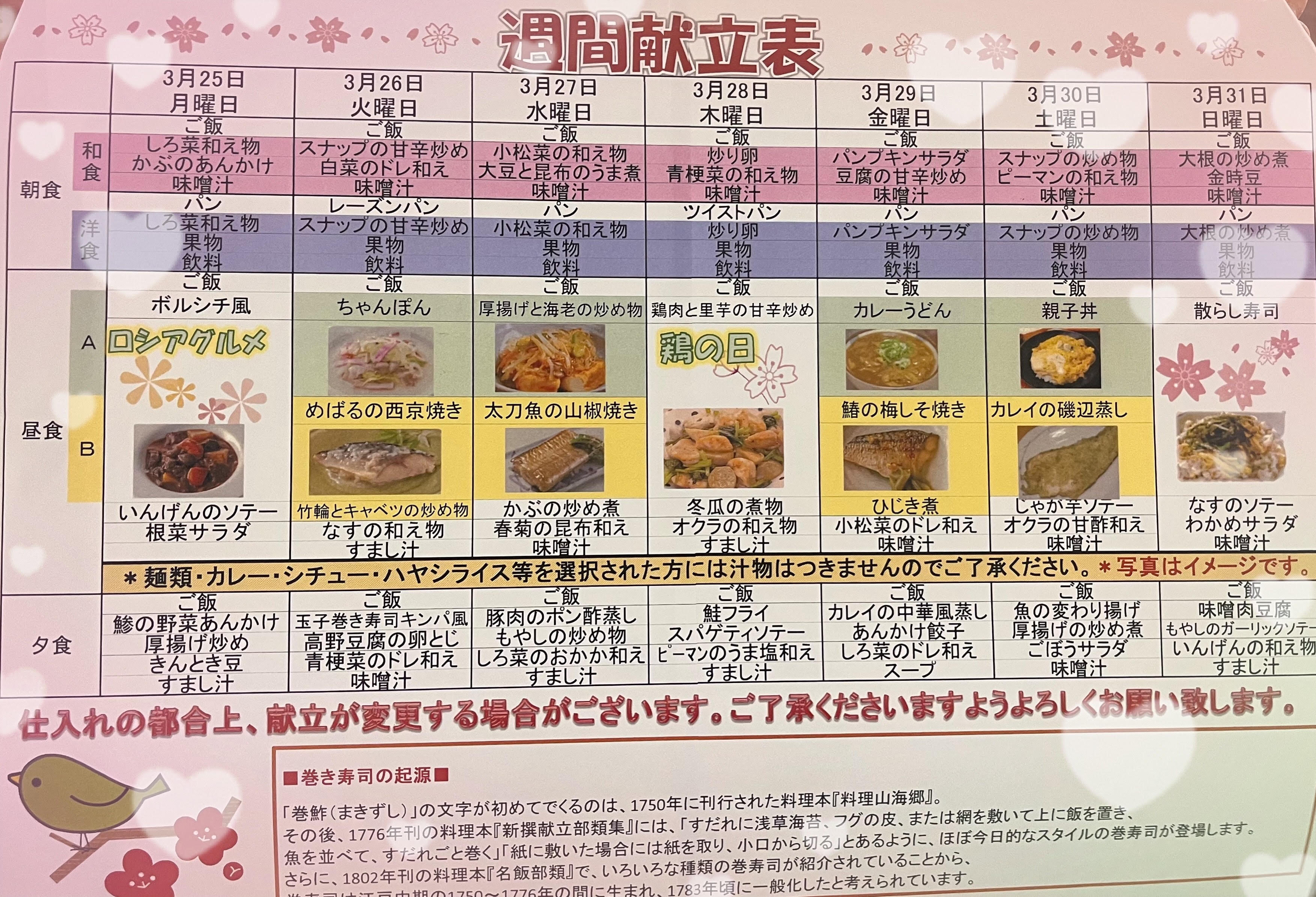 本日は3月25日~31日までの献立のお知らせですෆ˚*