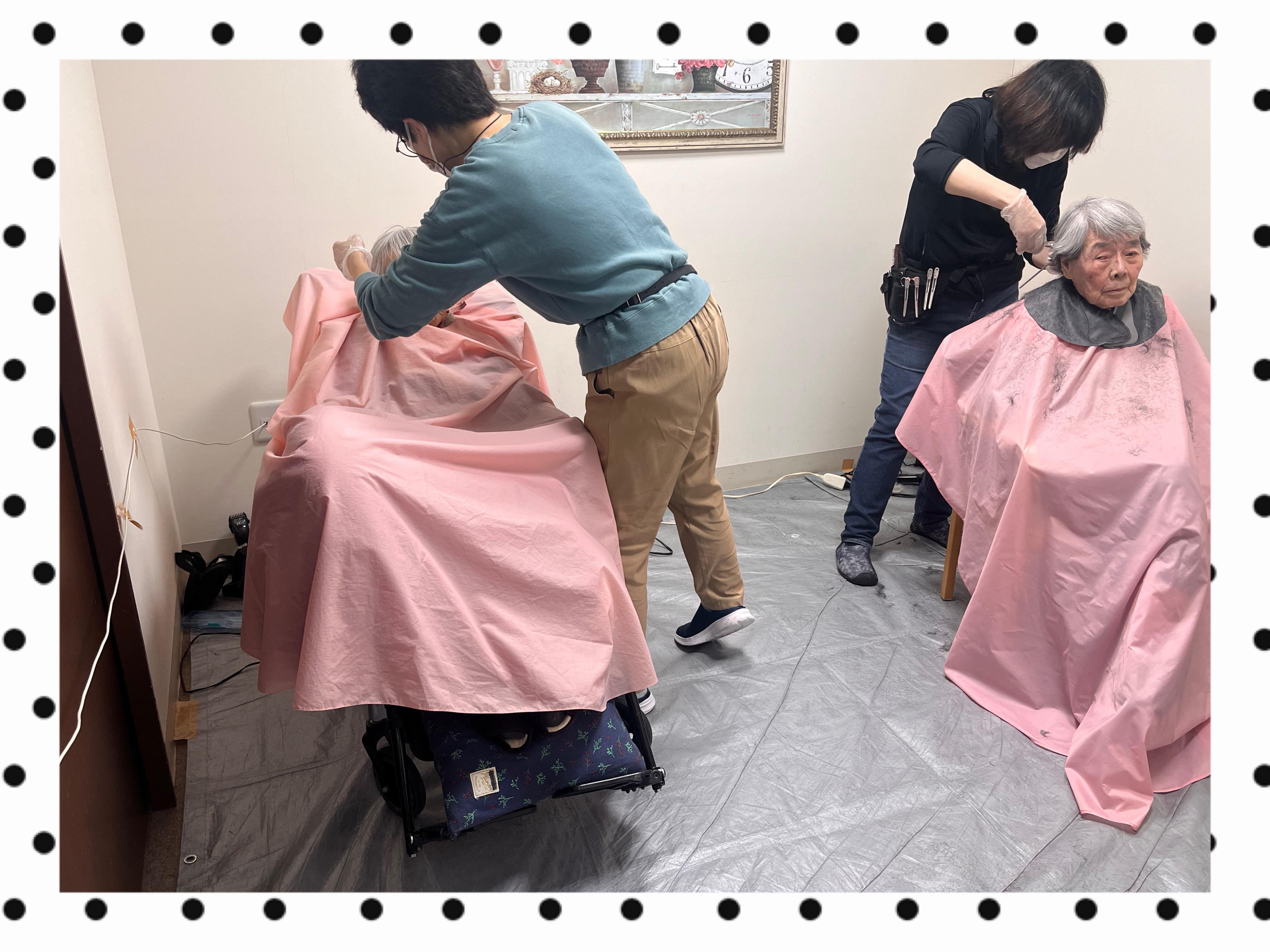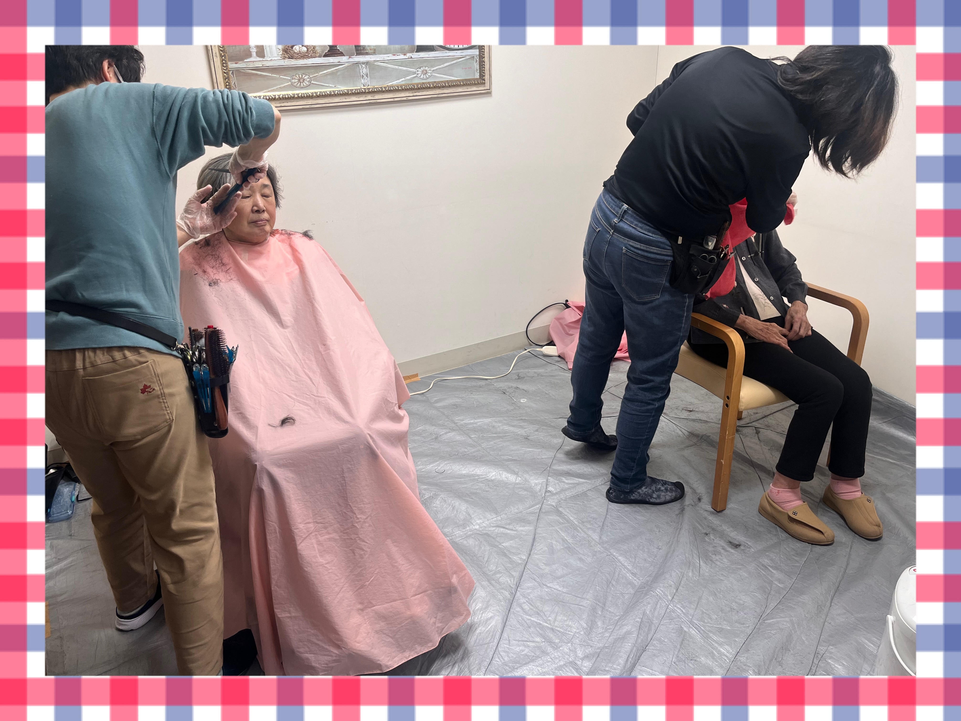 髪の毛カット中はみなさま気持ちよさそうにされています(^^)/