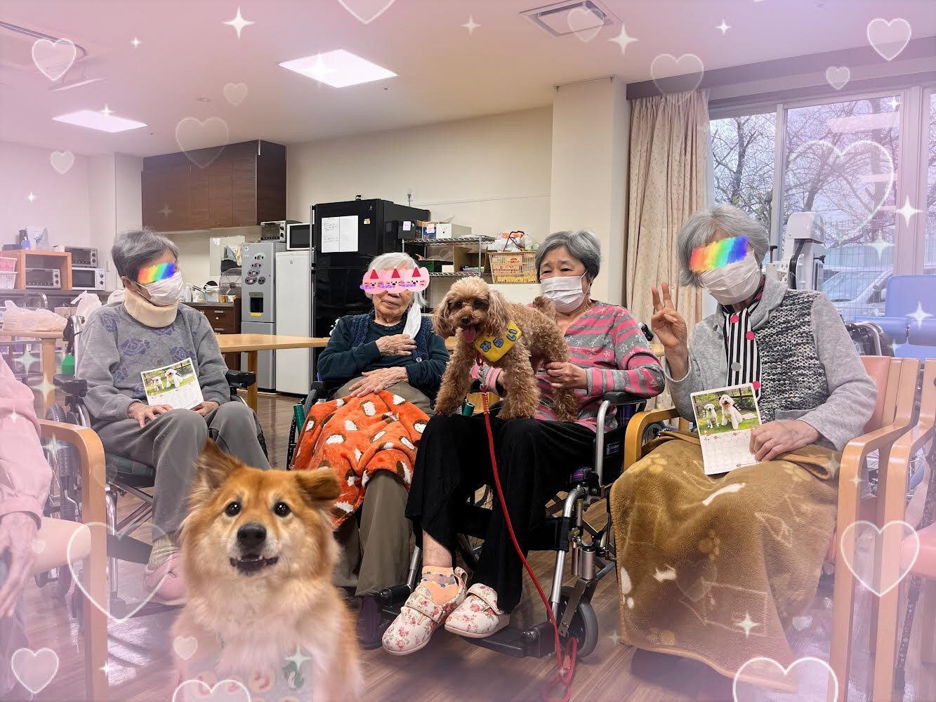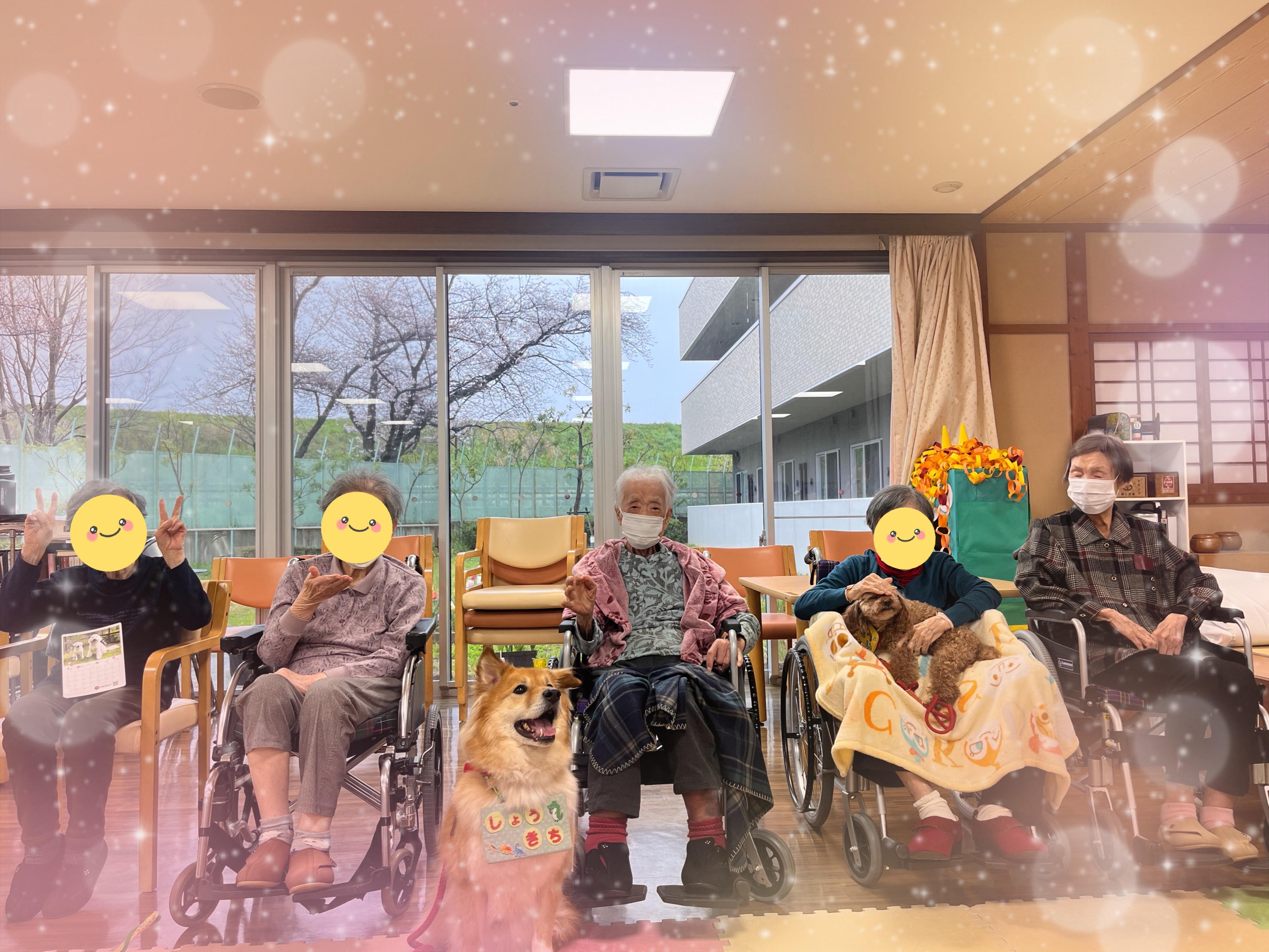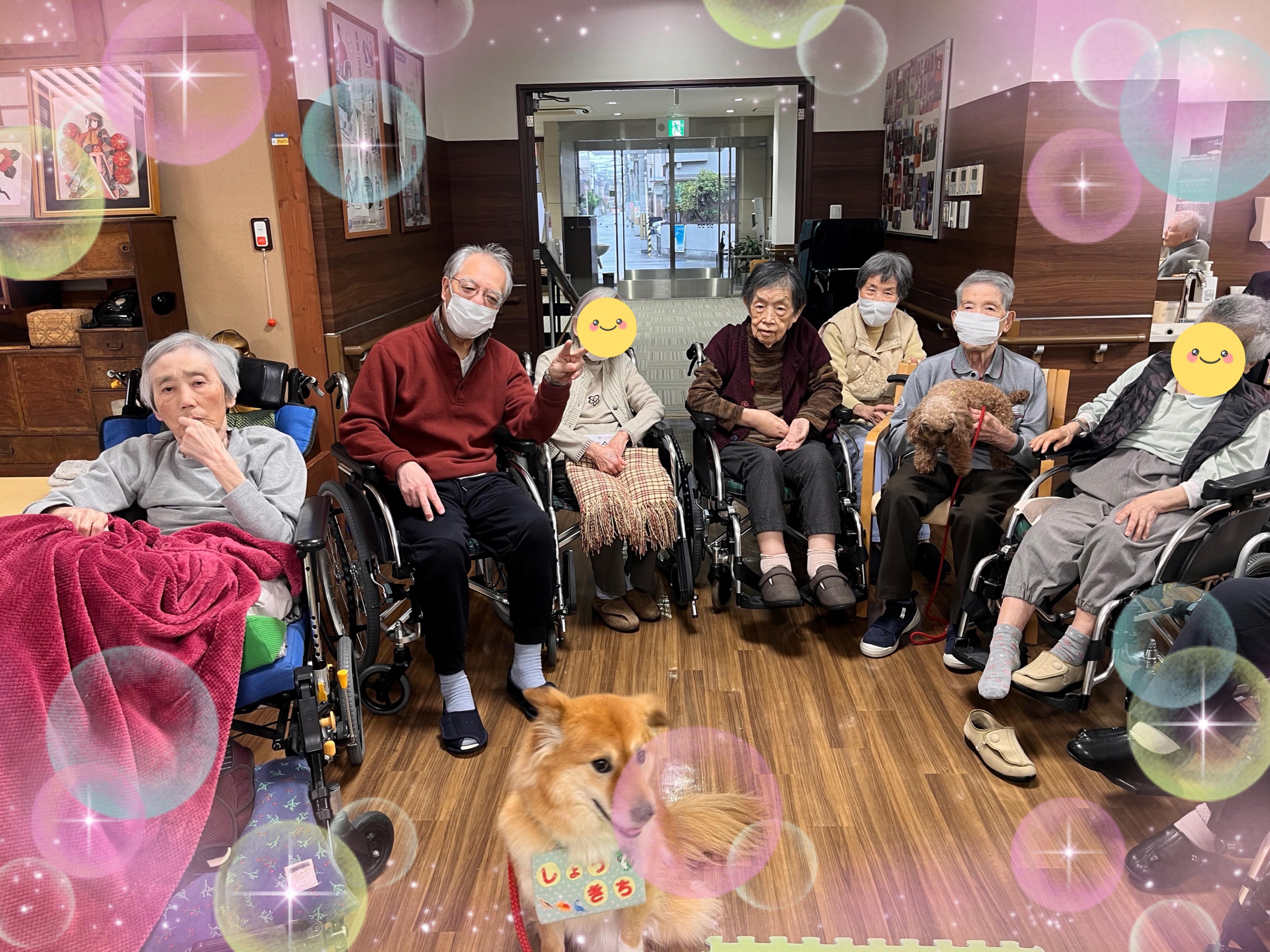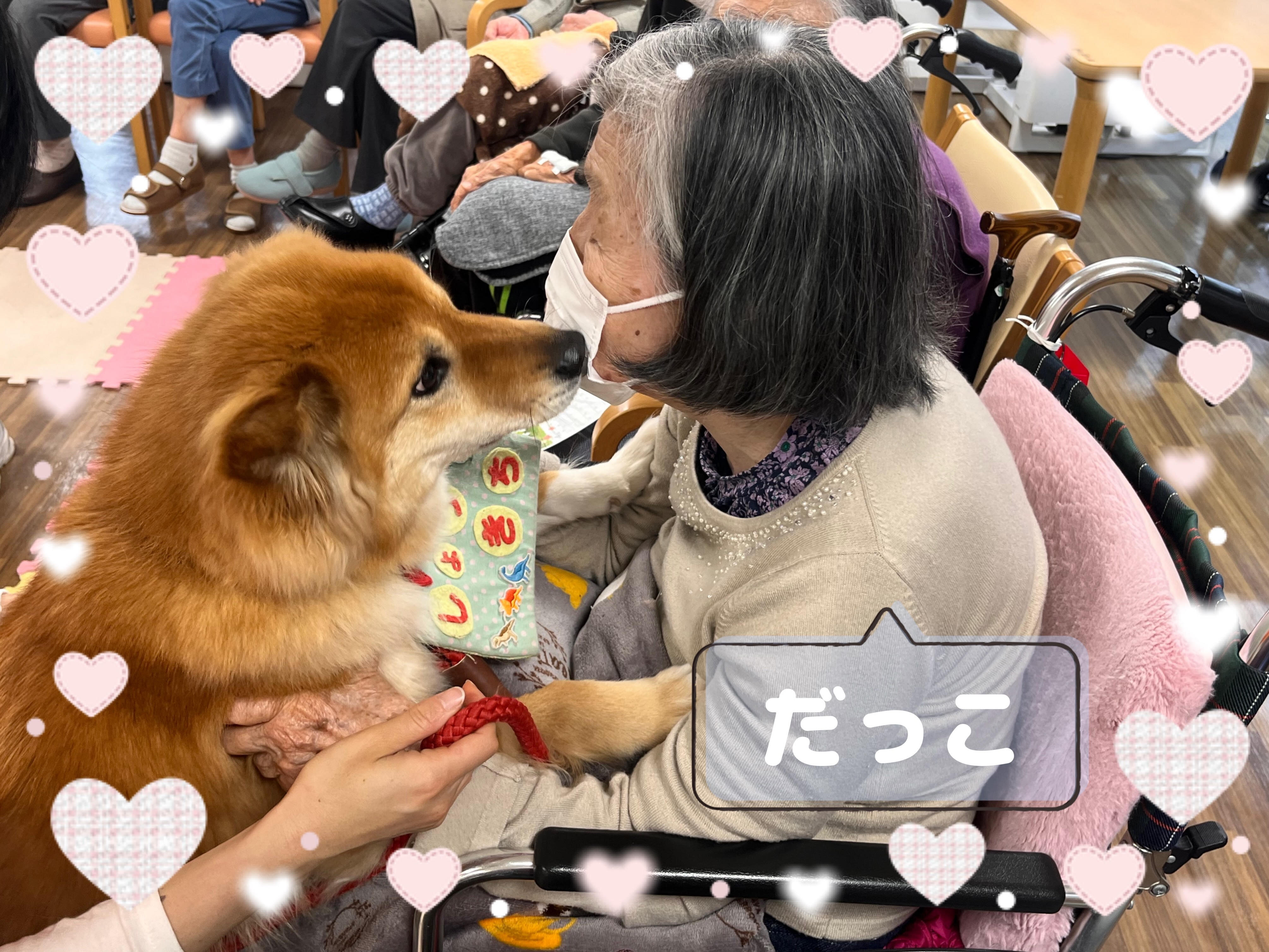登場からしっぽをブンブン振り回して愛嬌たっぷり♡ご入居者はもちろん、職員もメロメロでした(笑)