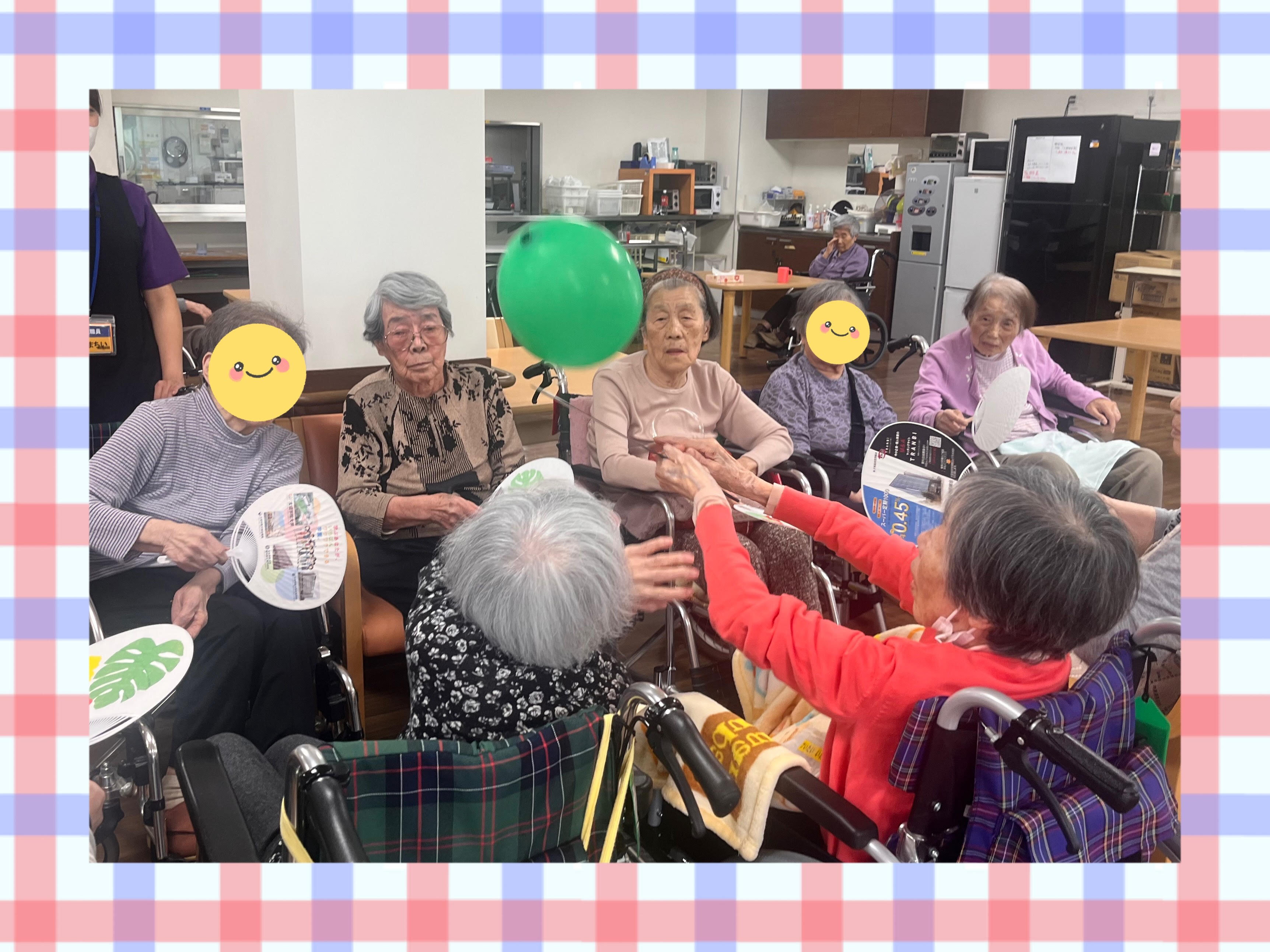 うちわで風船をとなりの人にパス!ヽ(^。^)ノ