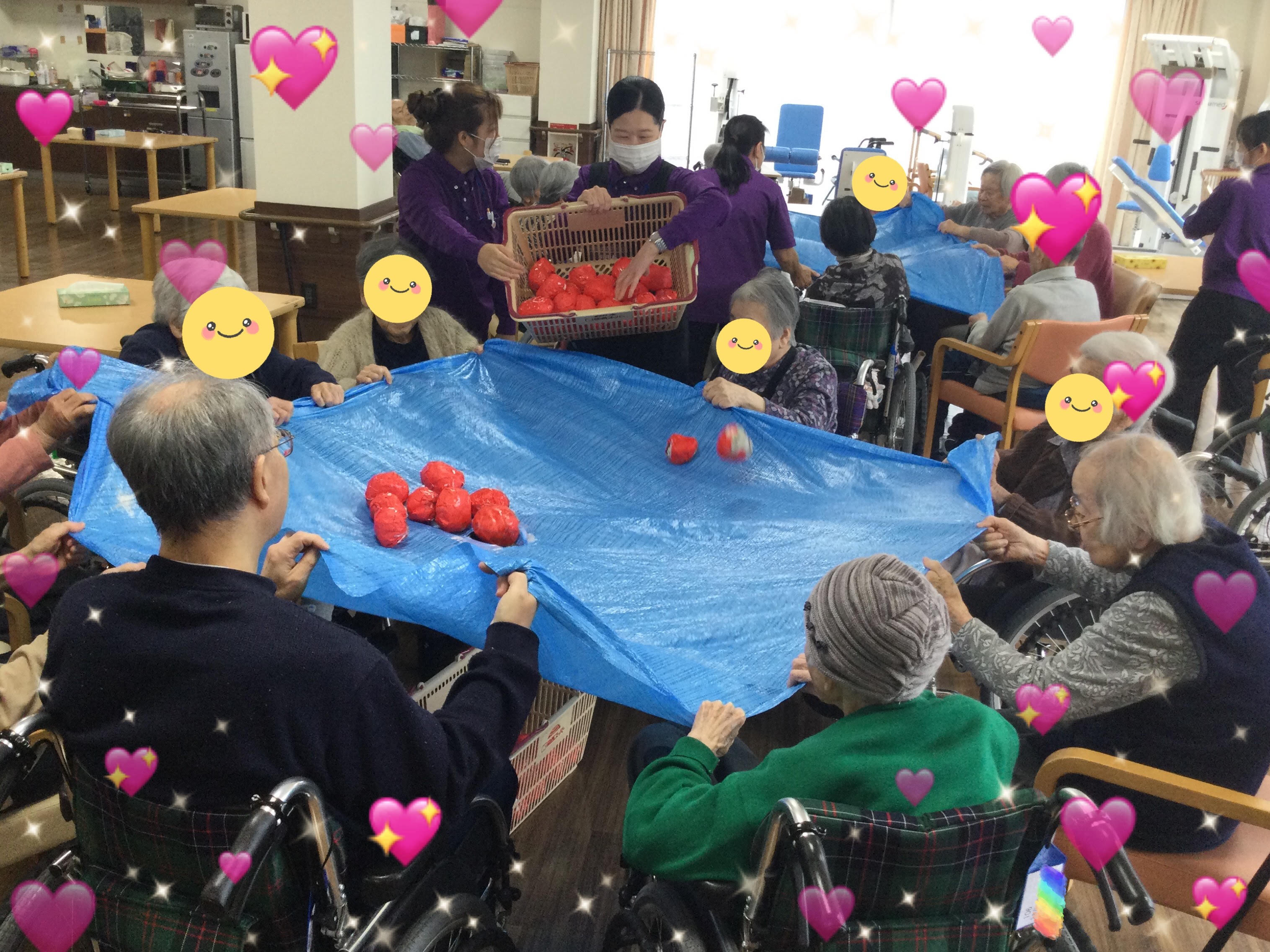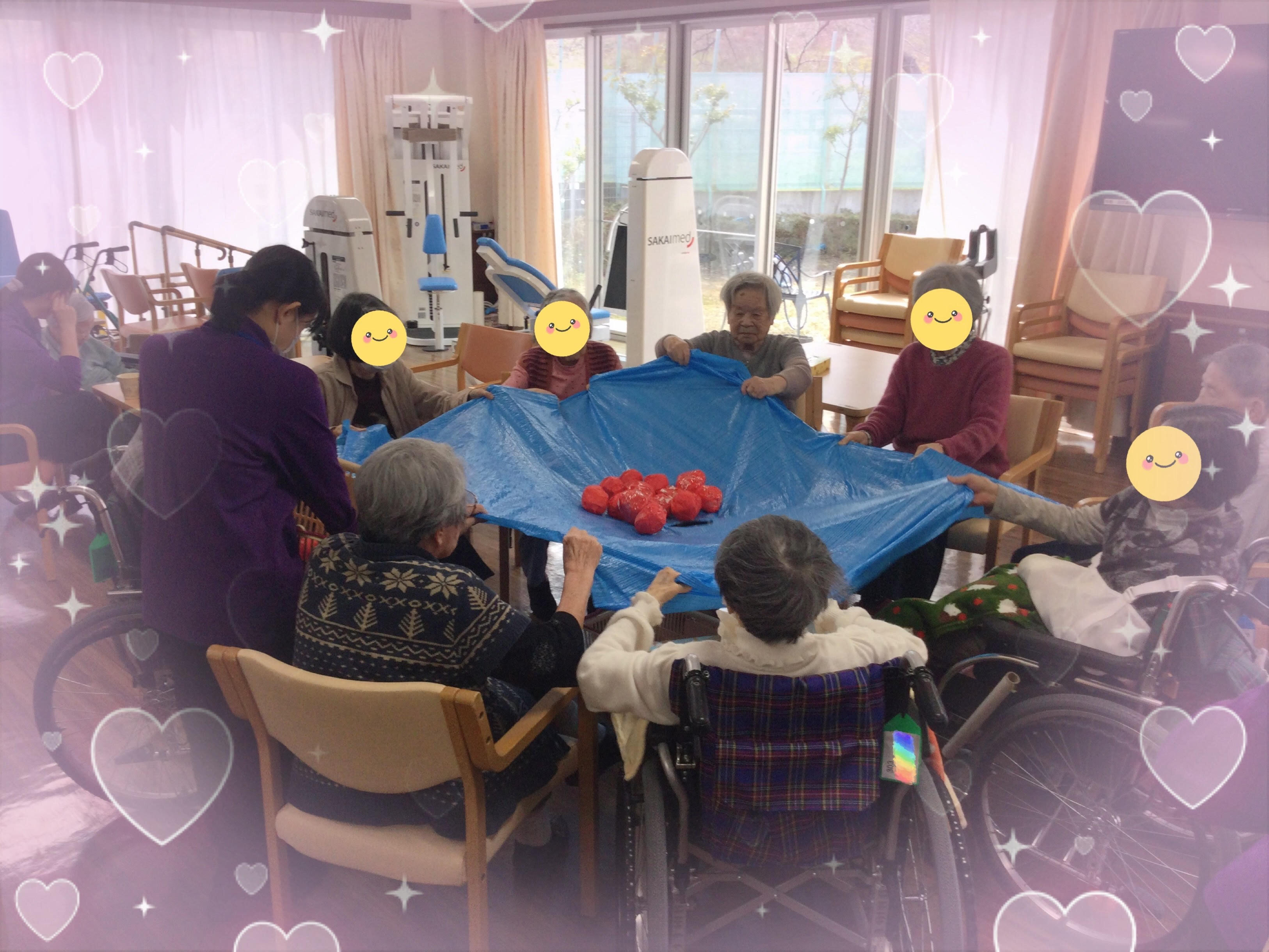 力強く引っ張る方もいれば添える程度でブルーシートを持つ方もいるのでみんなで協力して穴に紙玉をいれるのが意外と難しそうでした!(^^)!