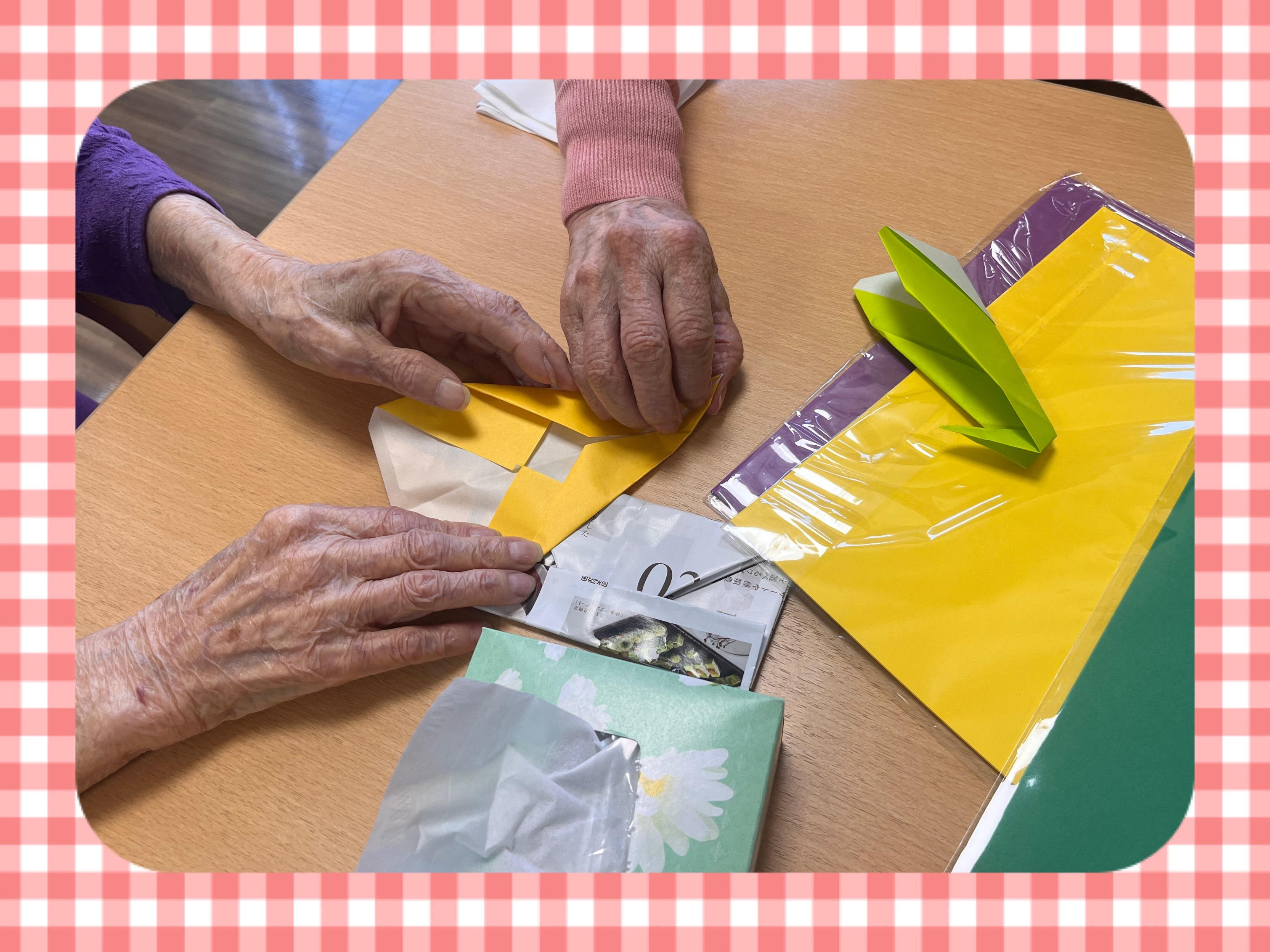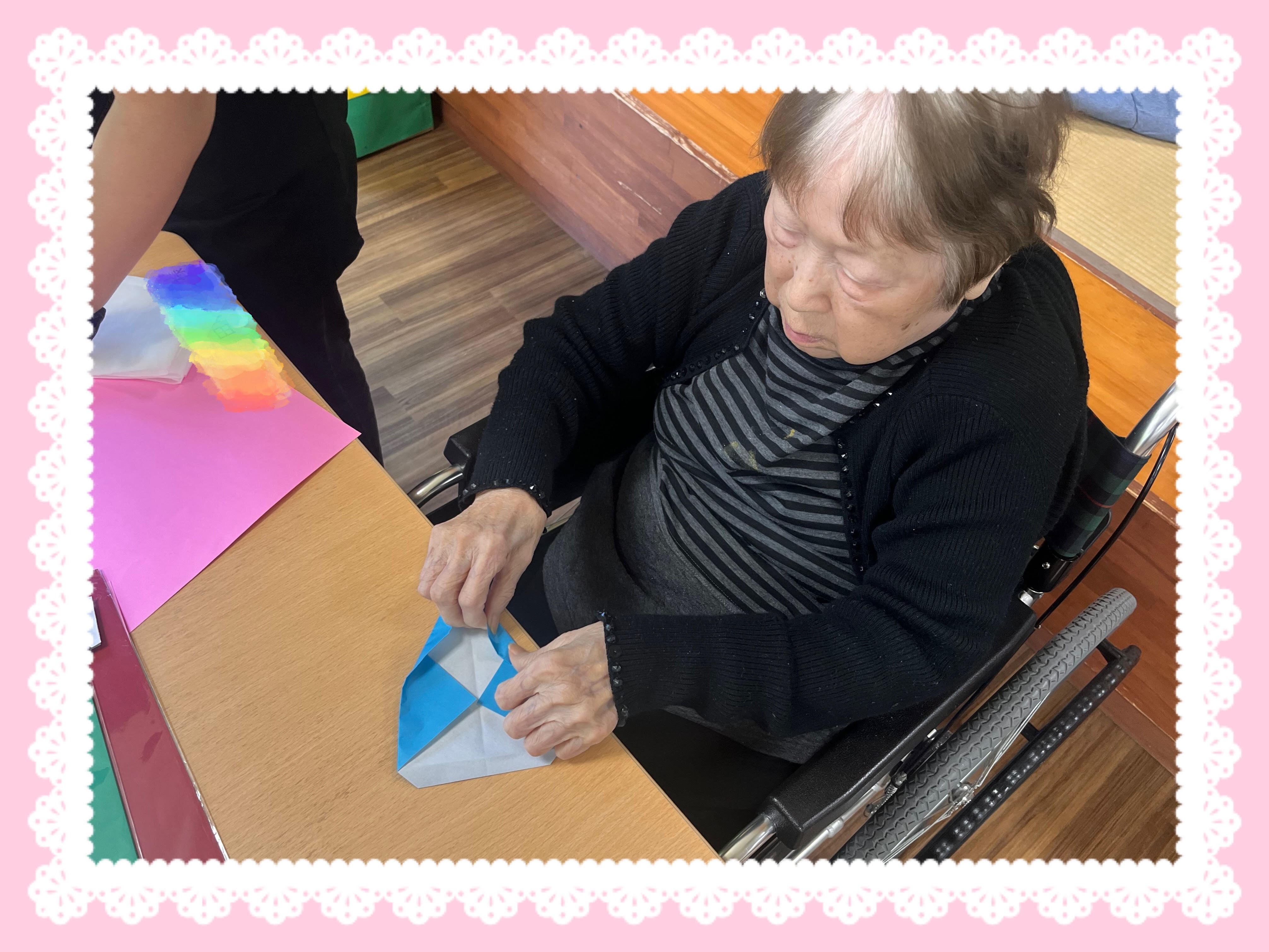 「難しいわ~」と仰られながらも黙々と鯉を折ってくださいました♬