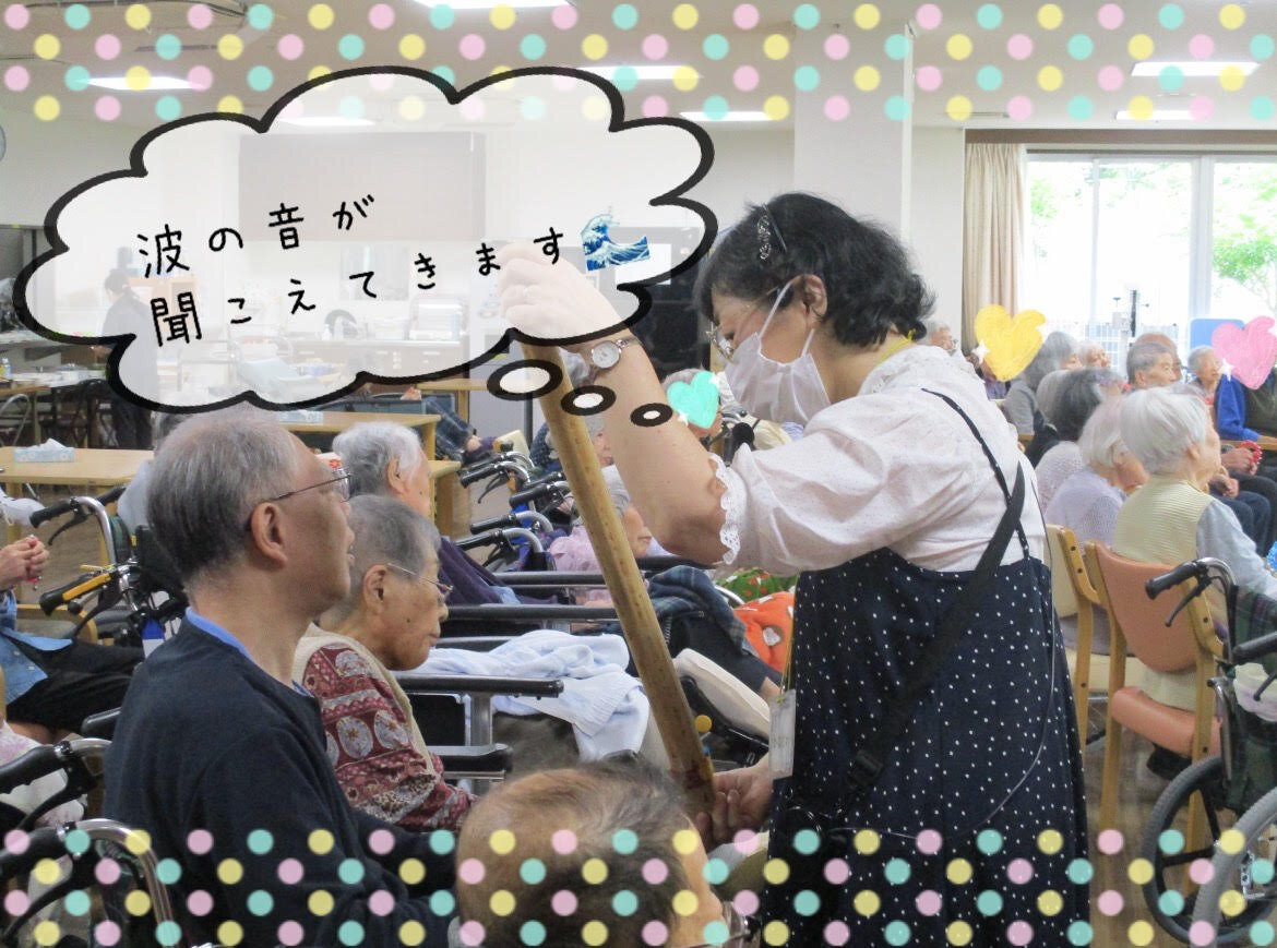 こちらも波の音が聞こえる楽器を耳のそばで聞こえやすいようにひとりずつ回っていただきました♬