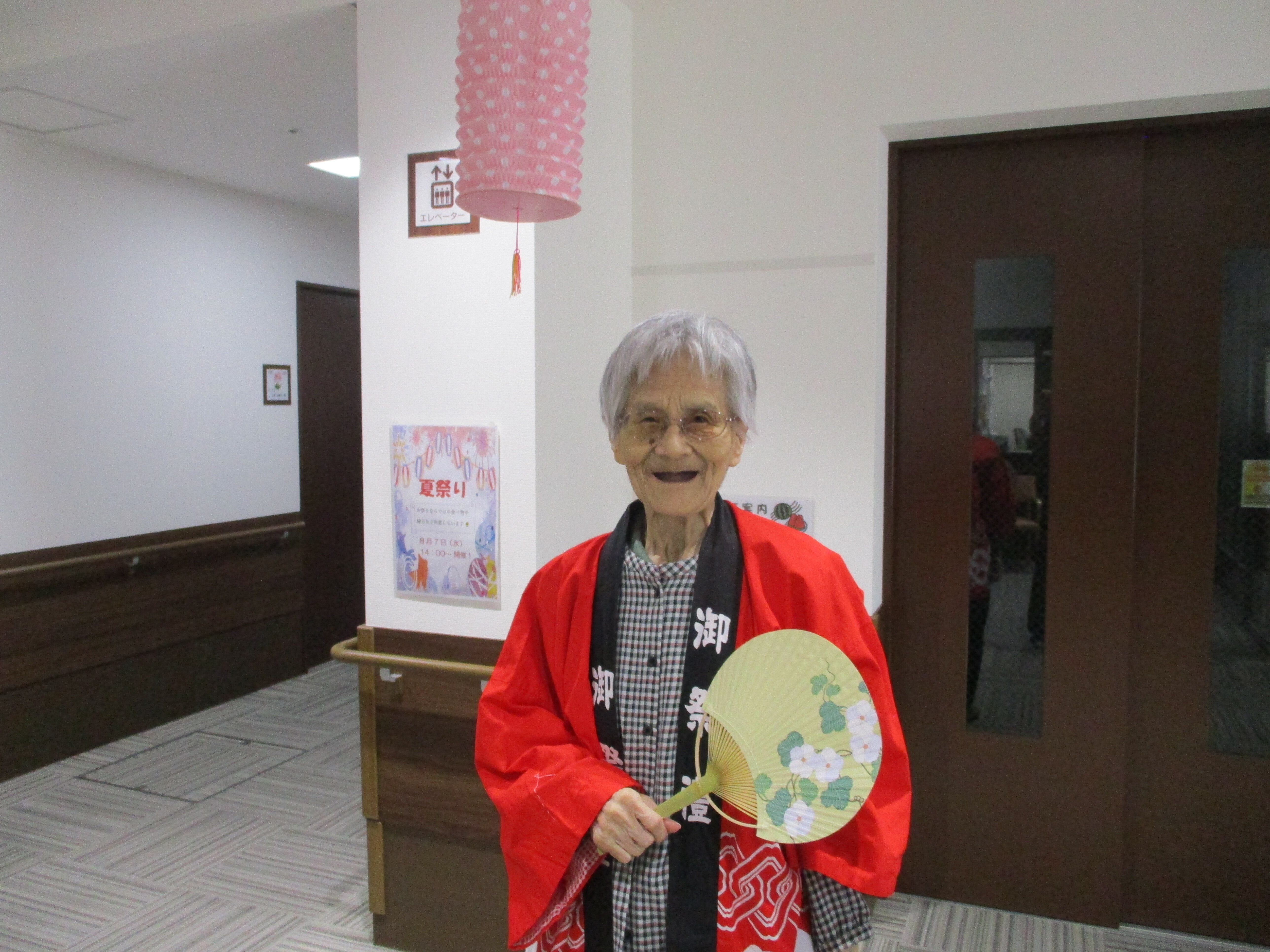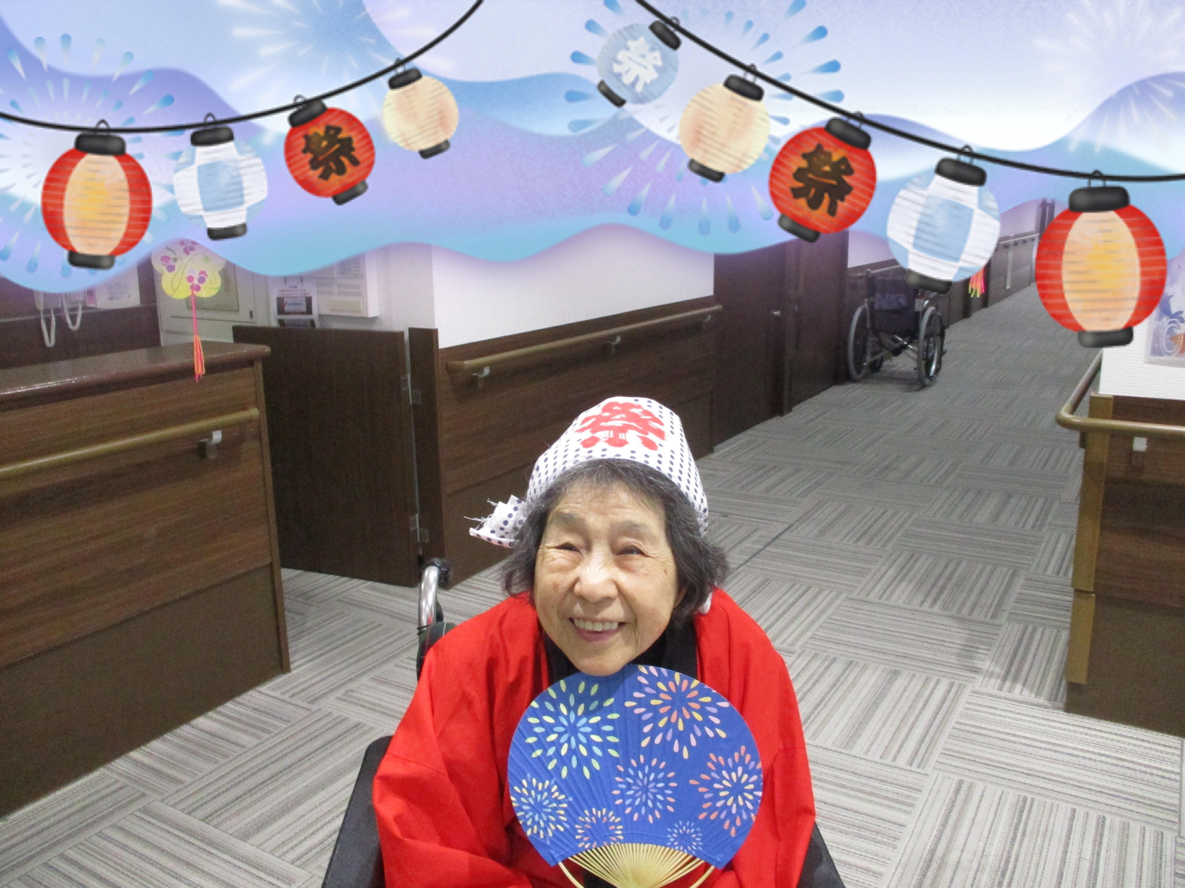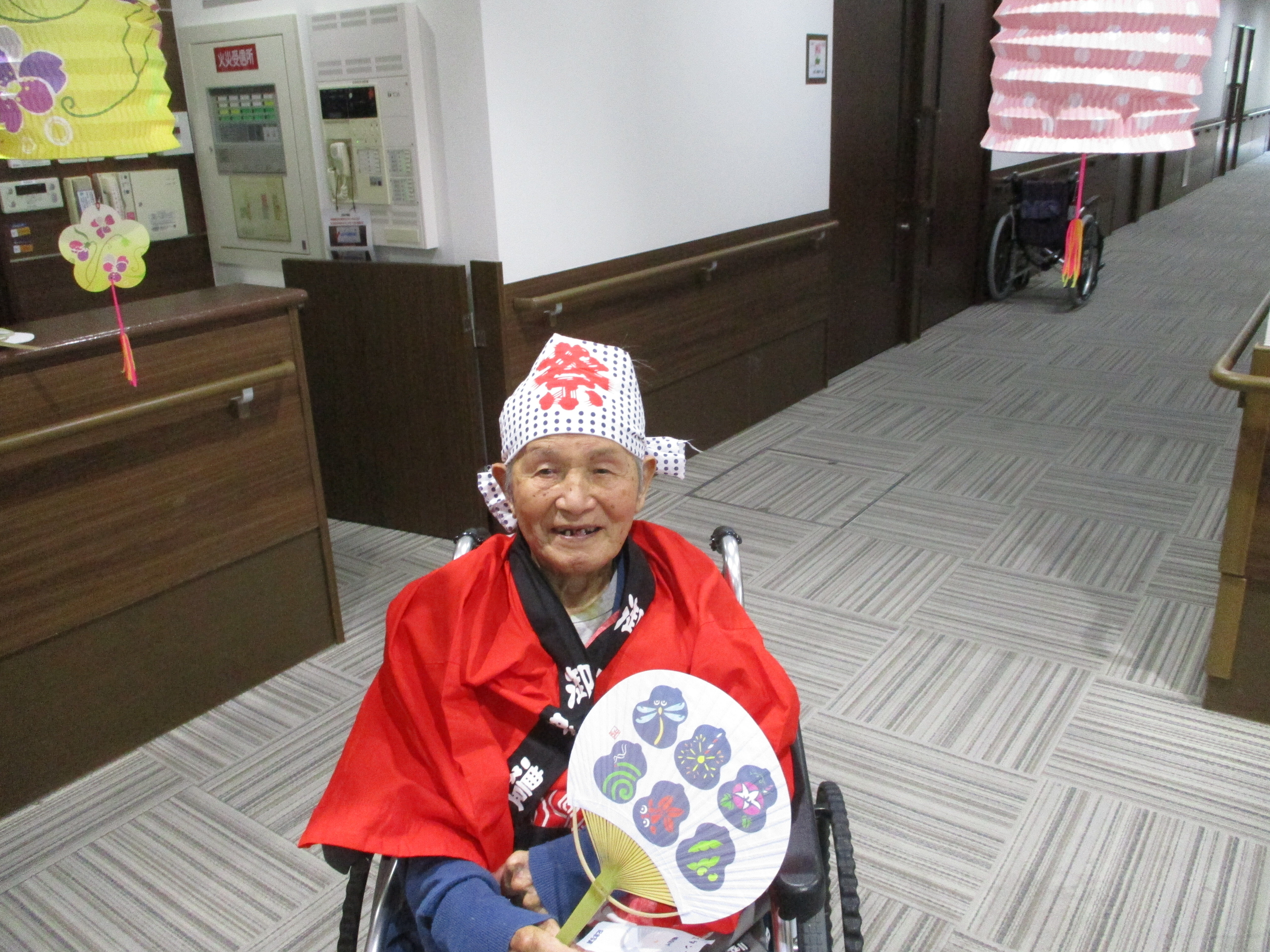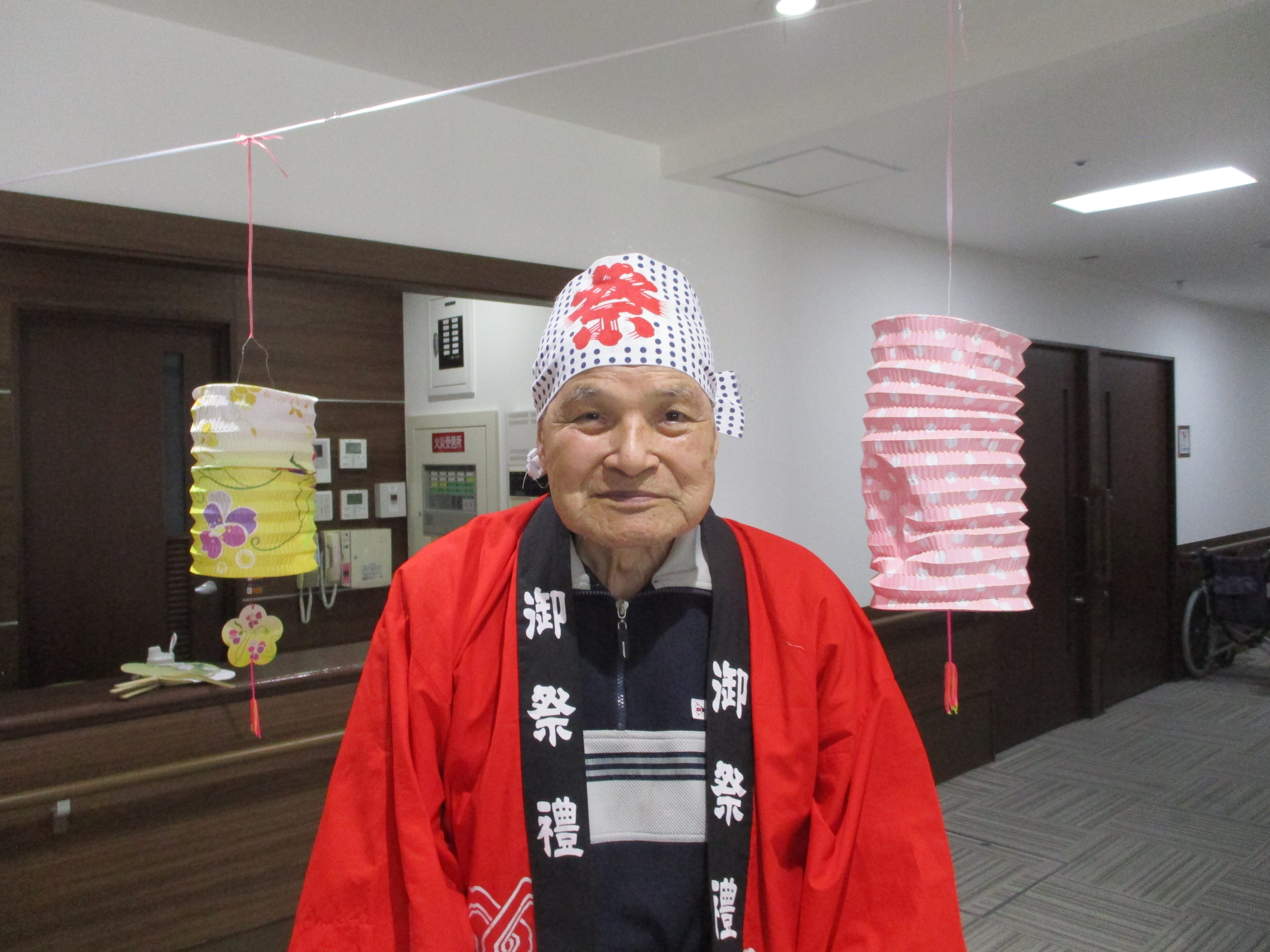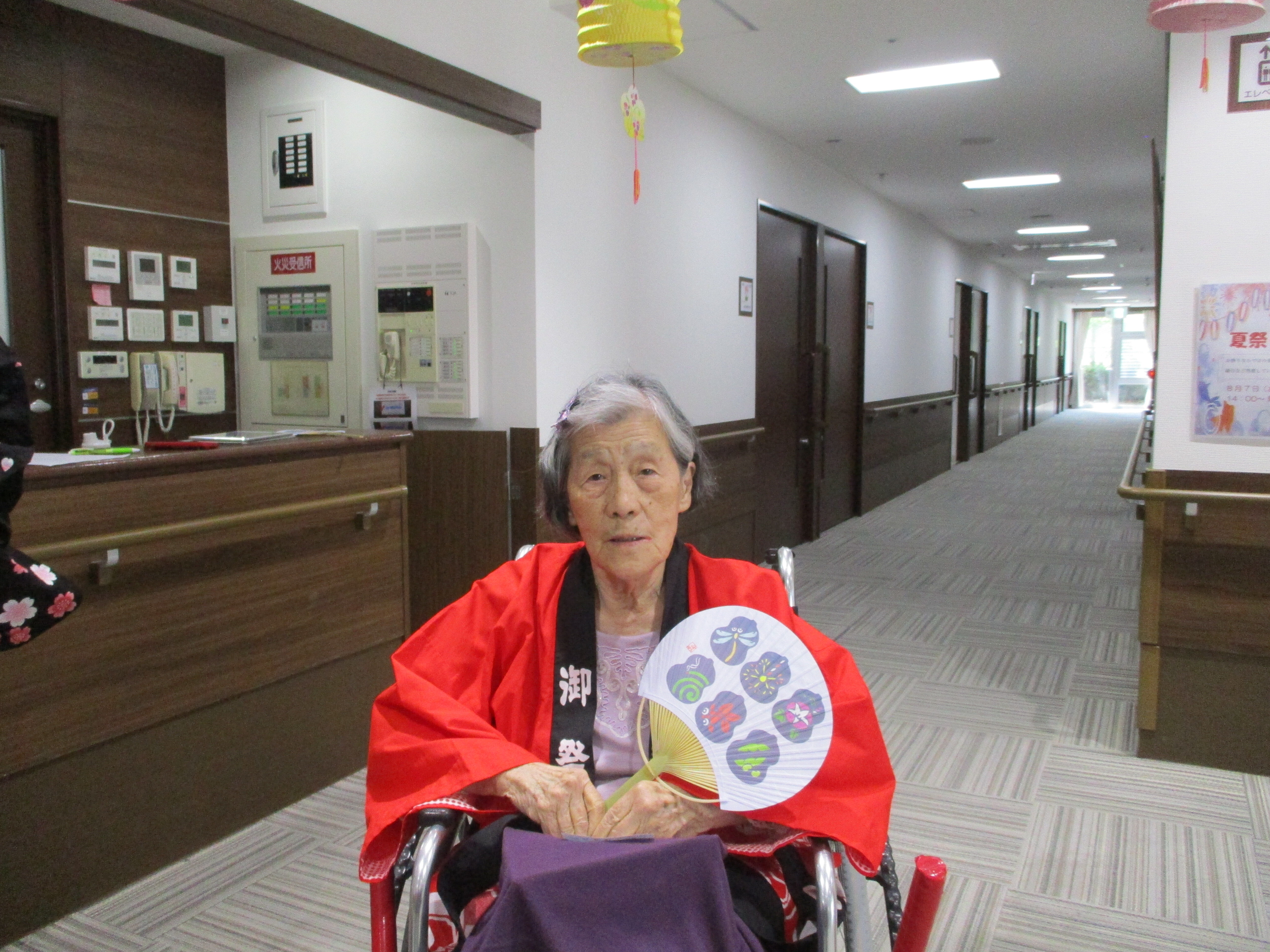 夏祭りでご入居者のみなさまに法被を着ていただきました!
