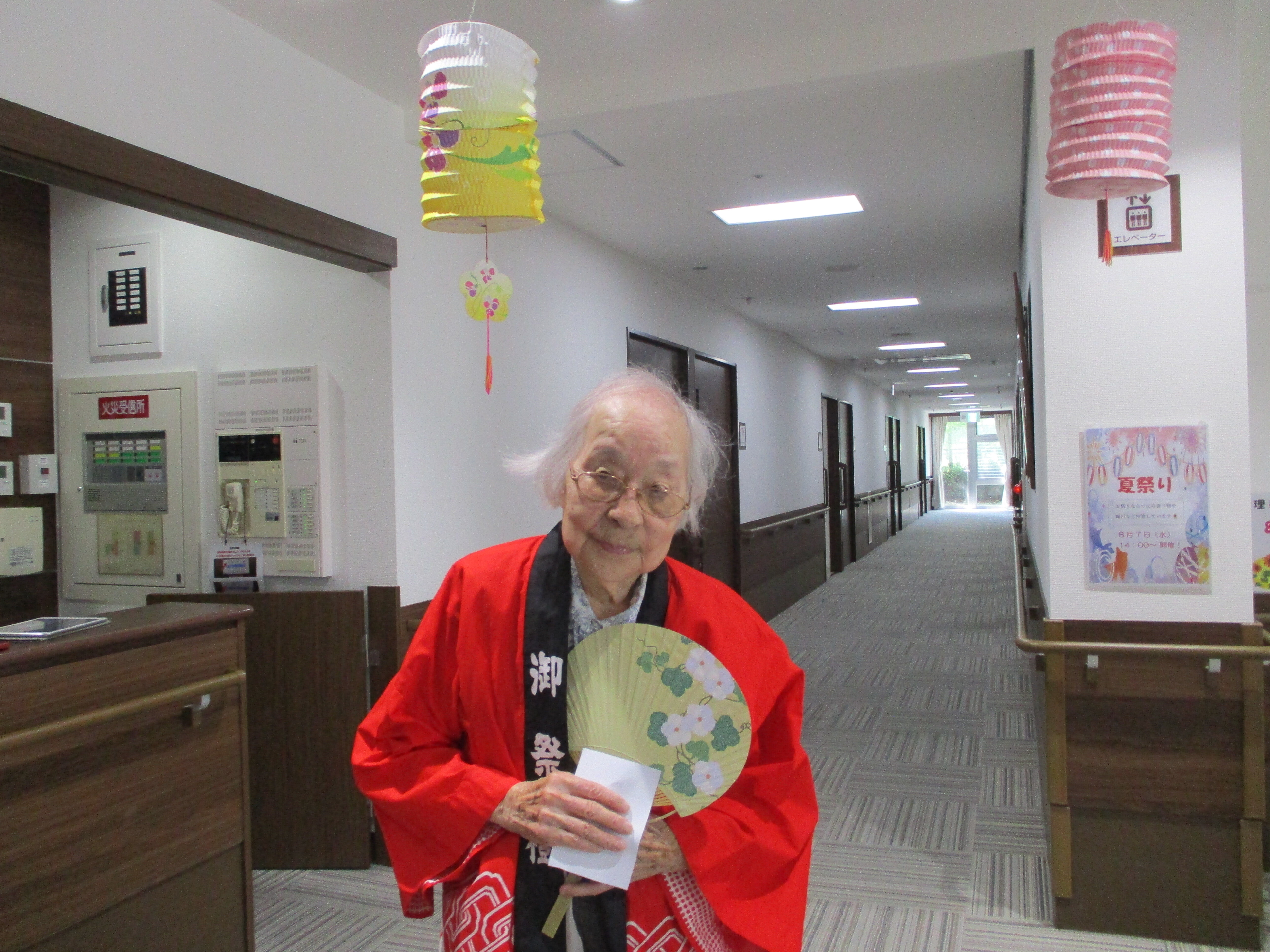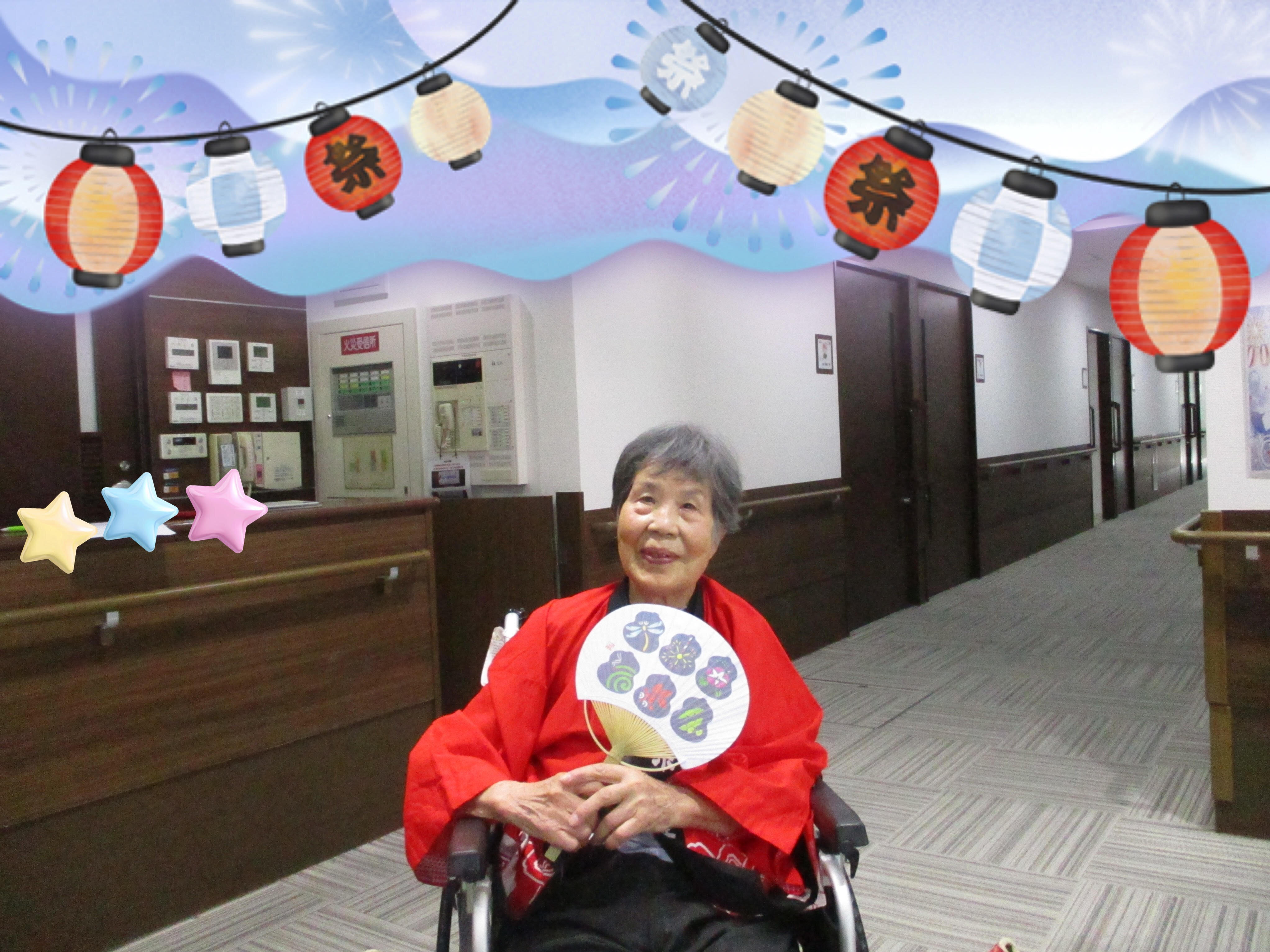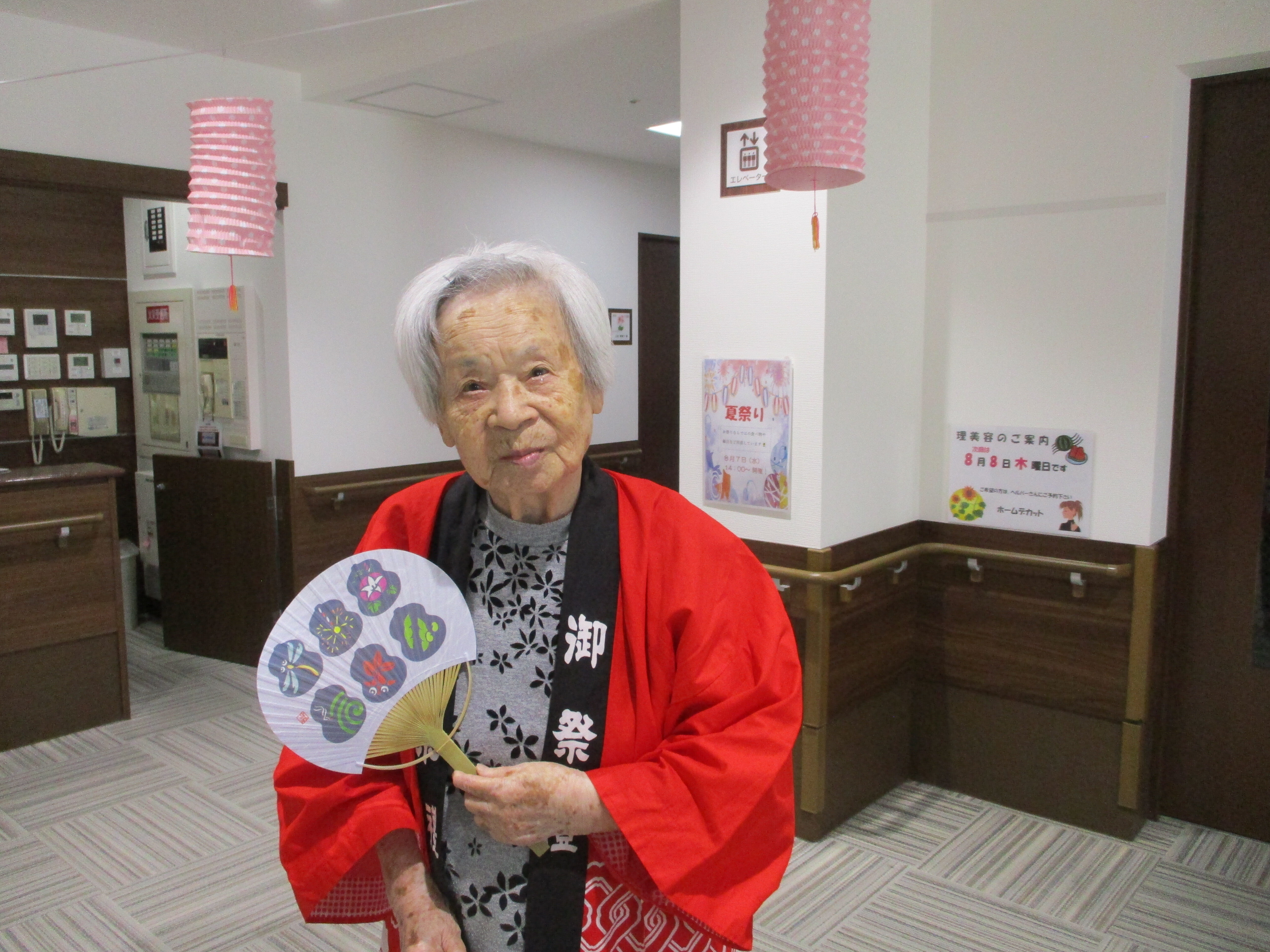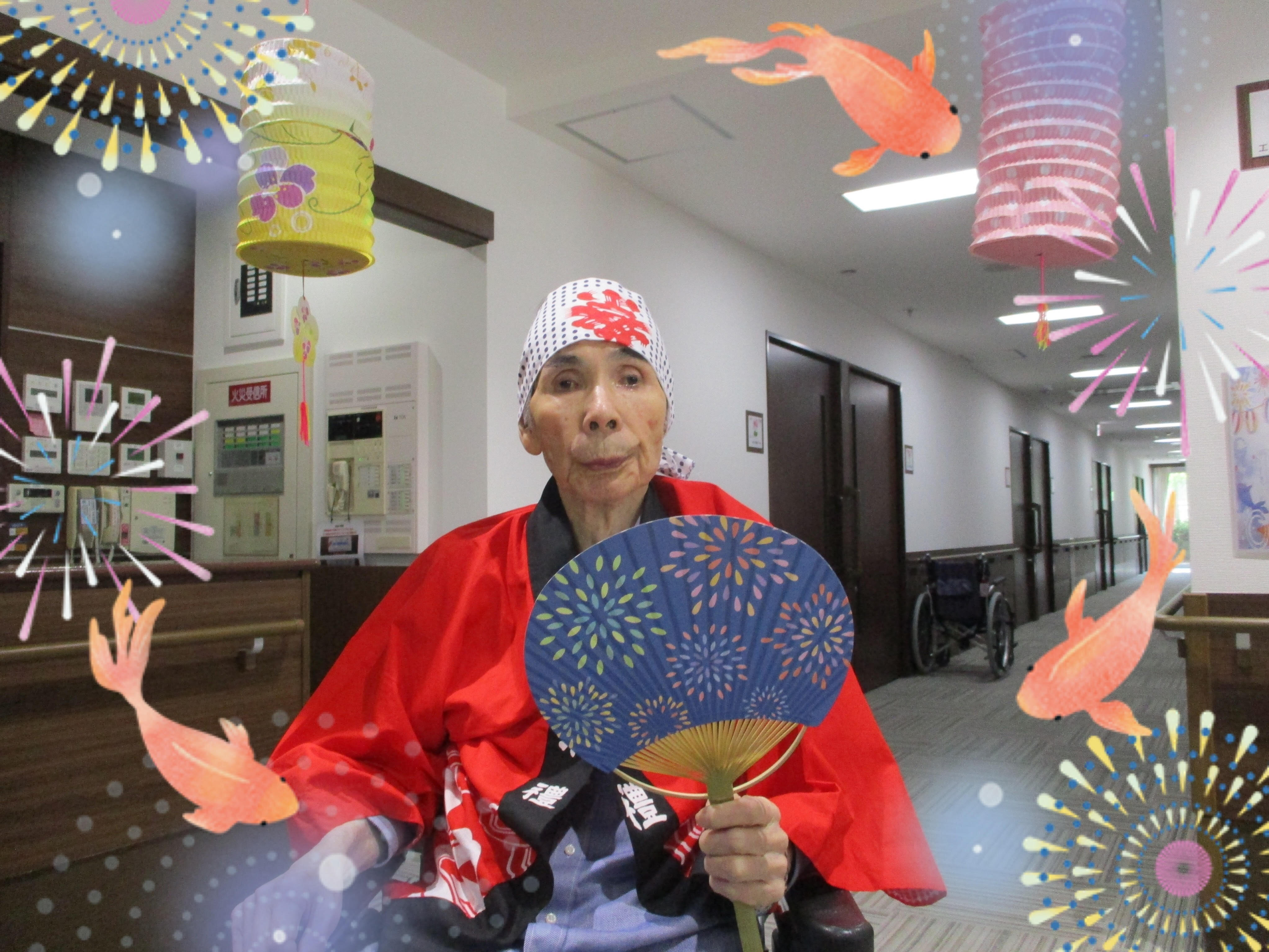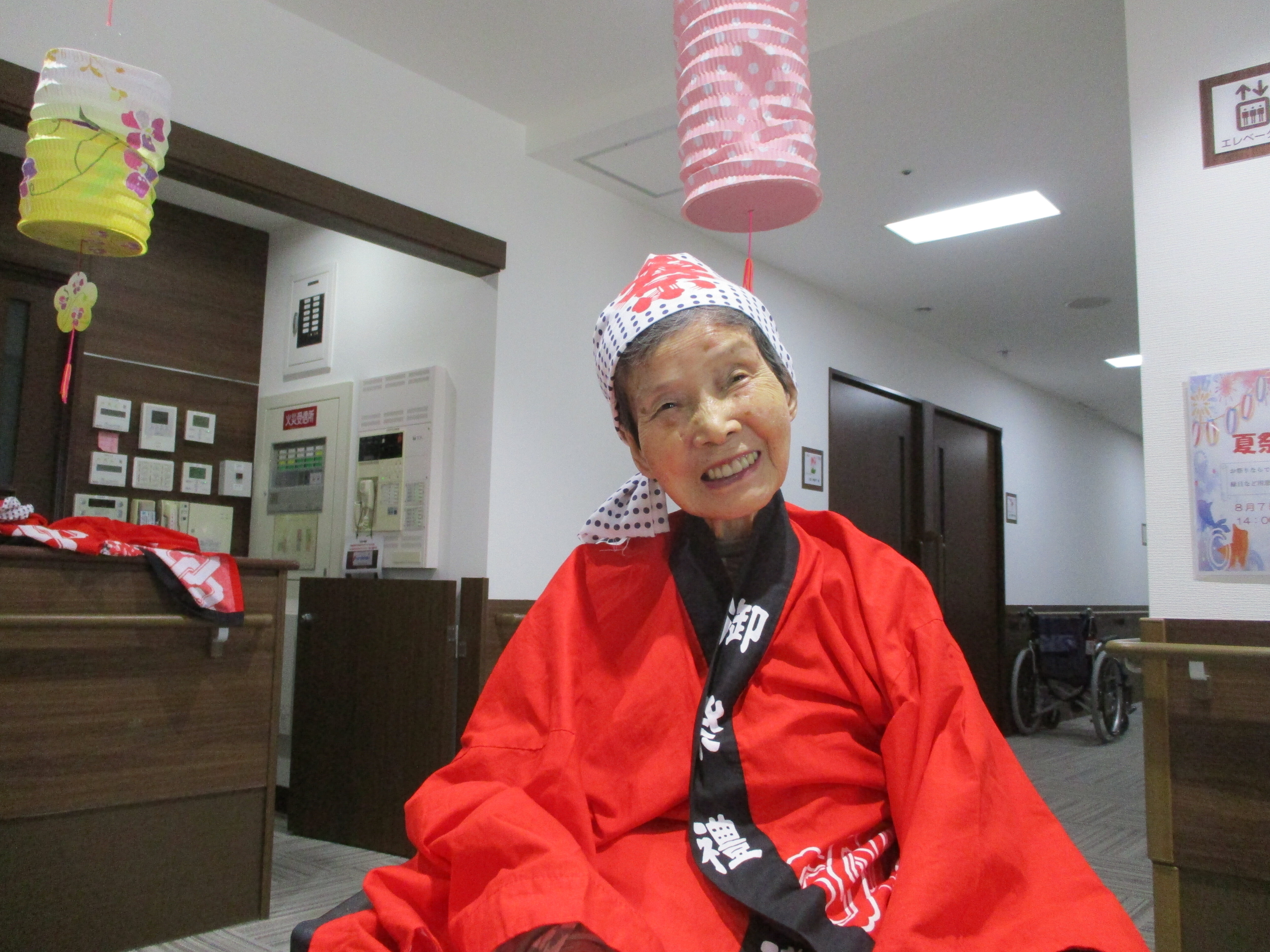 夏祭りでご入居者のみなさまに法被を着ていただきました!