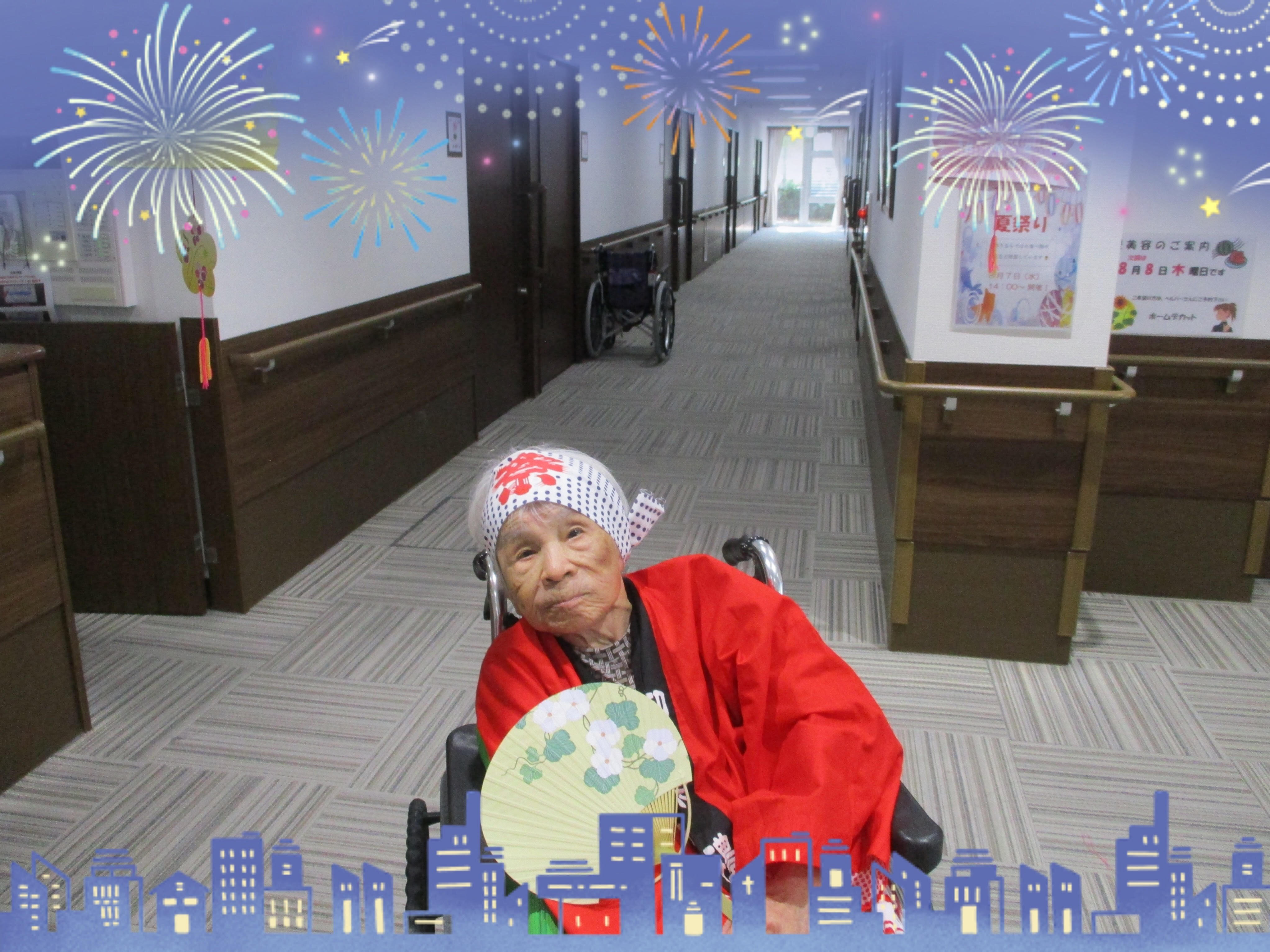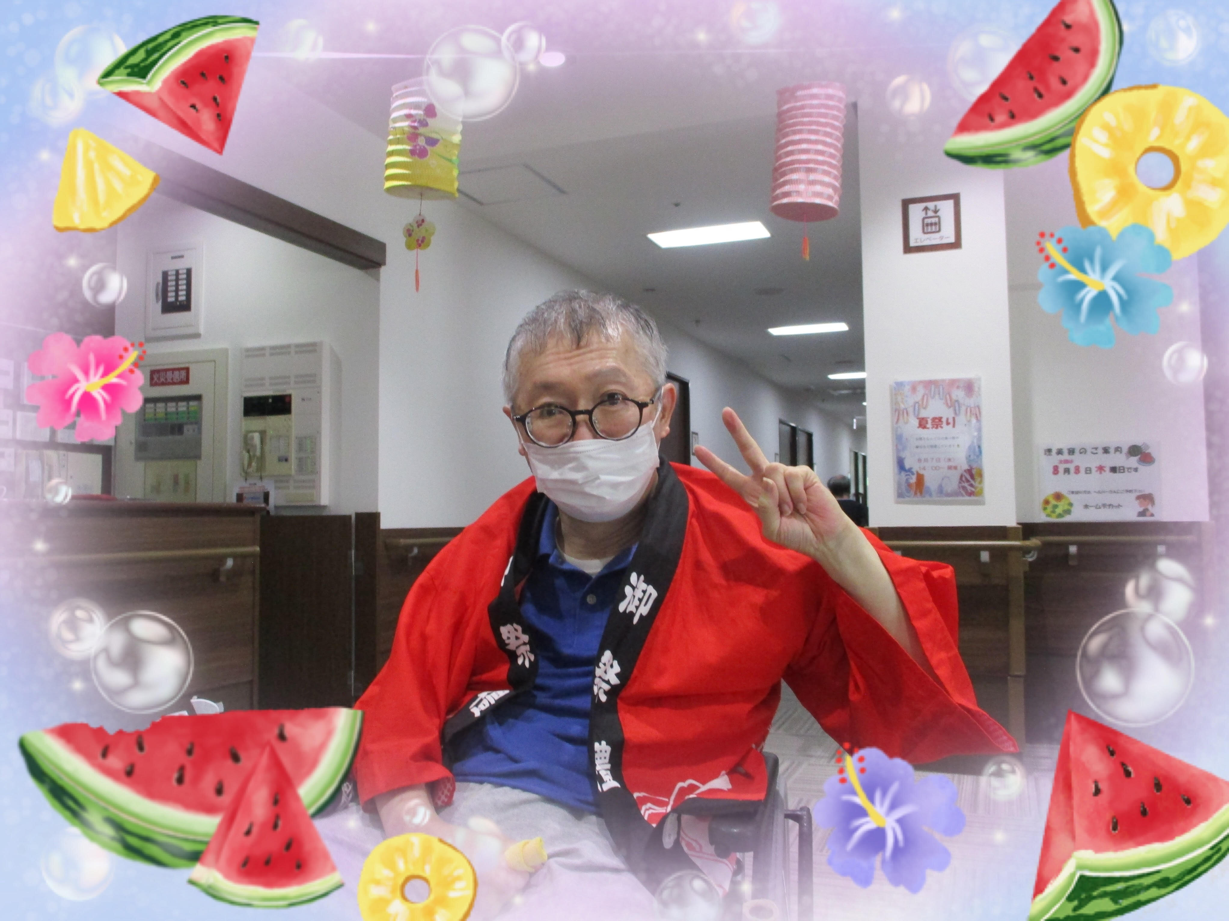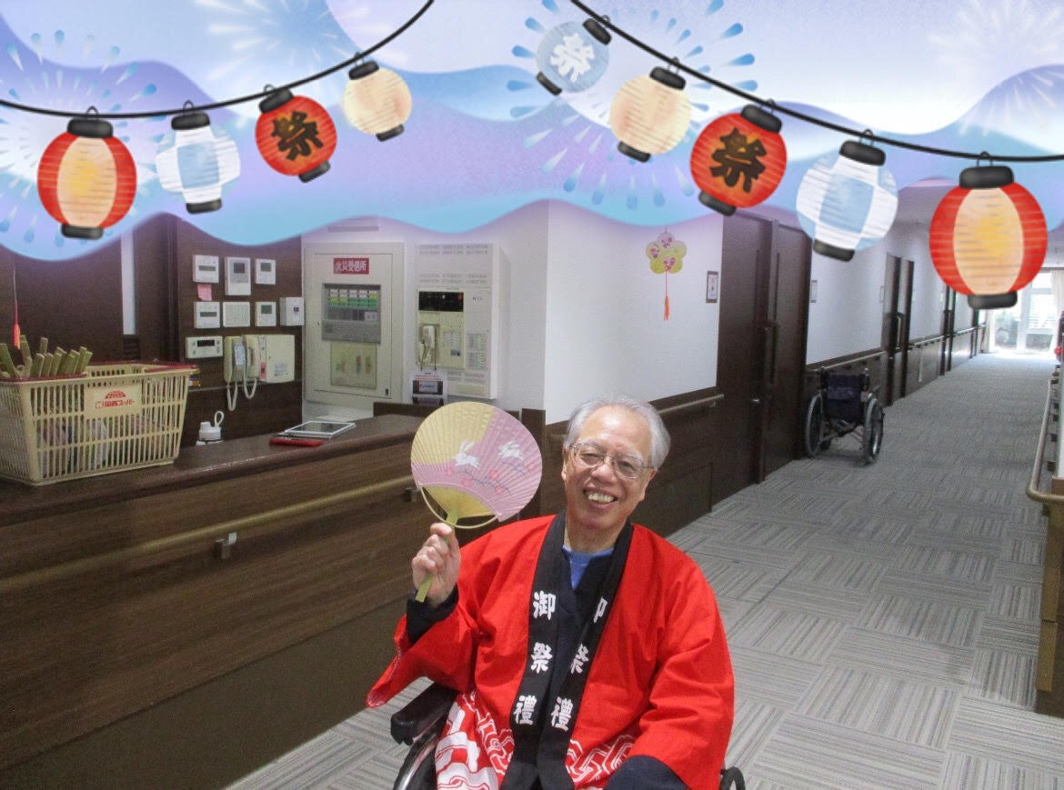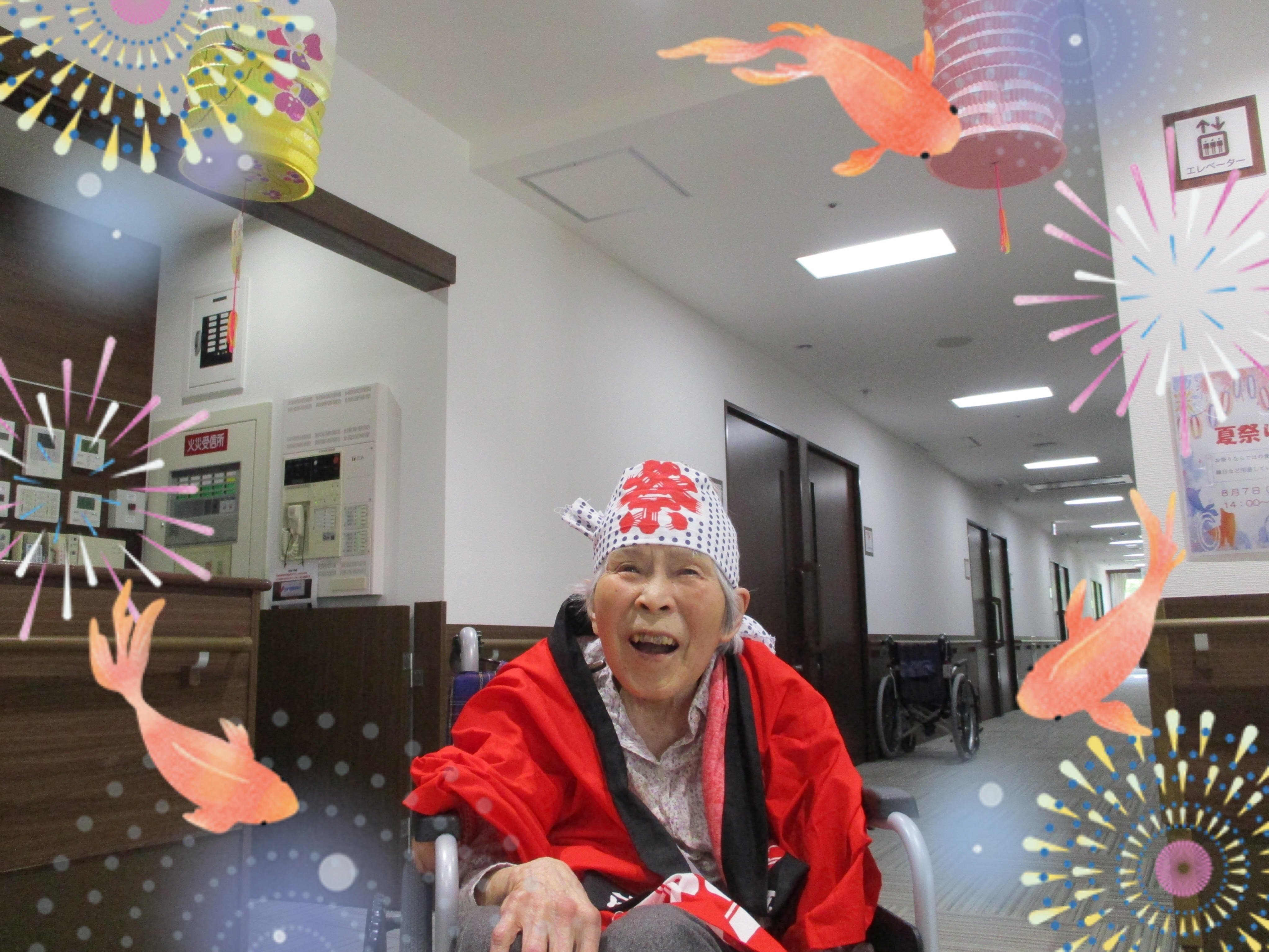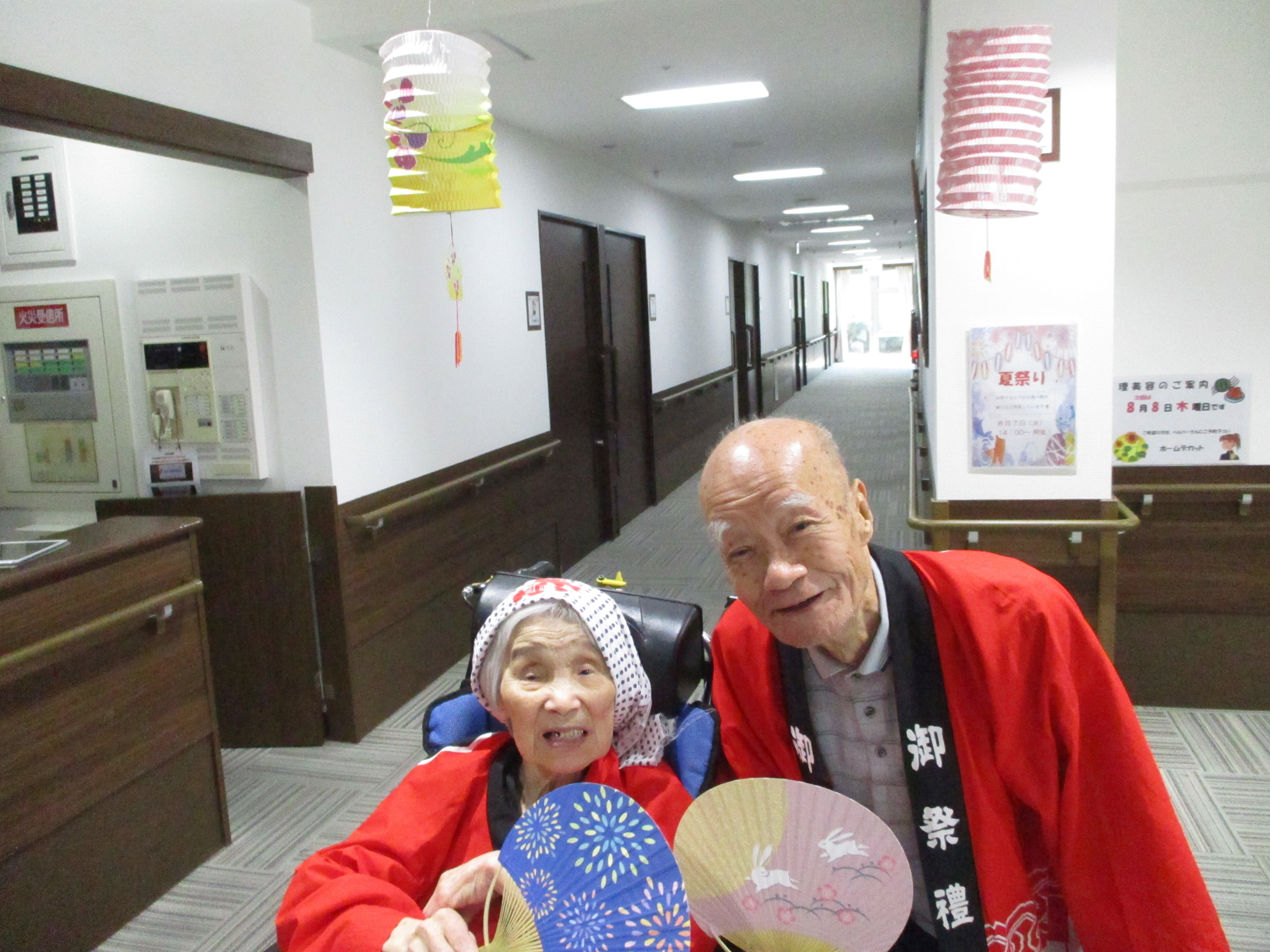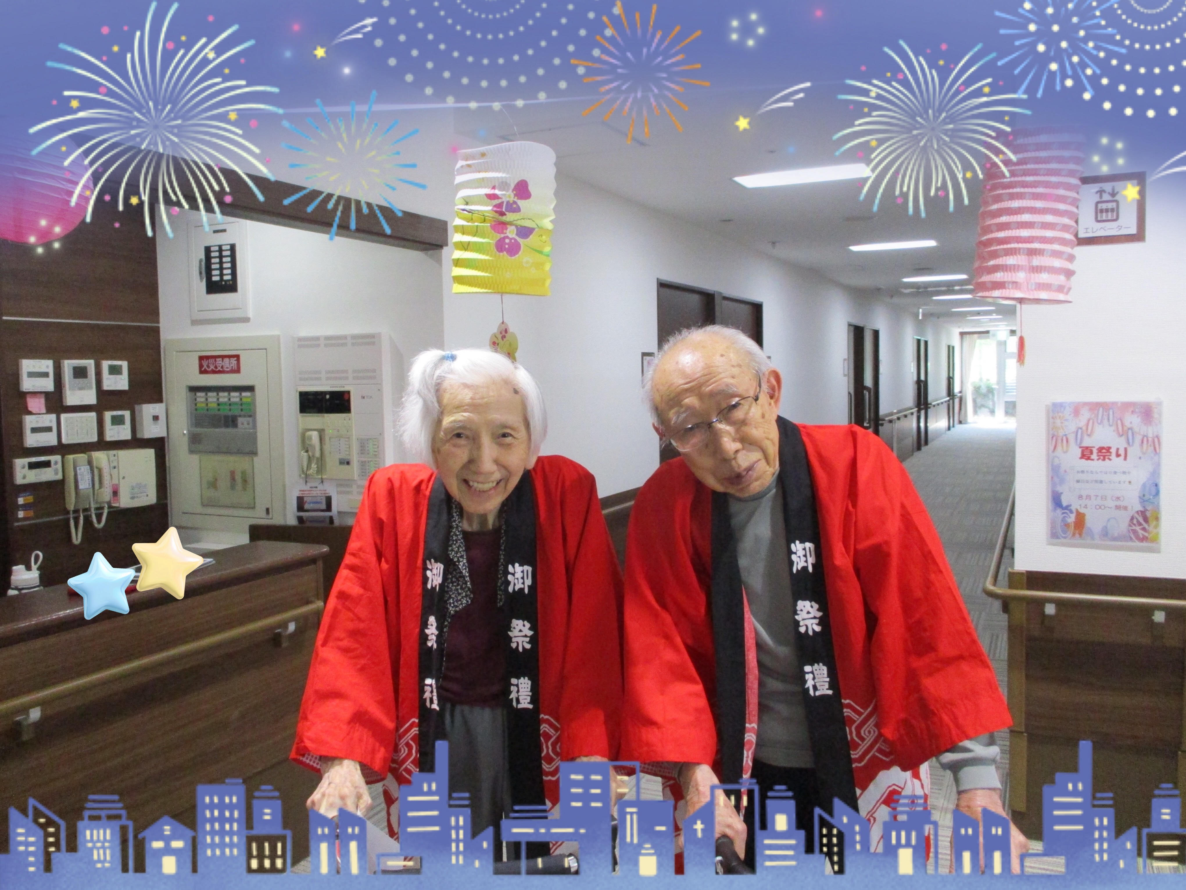 夏祭りでご入居者のみなさまに法被を着ていただきました!