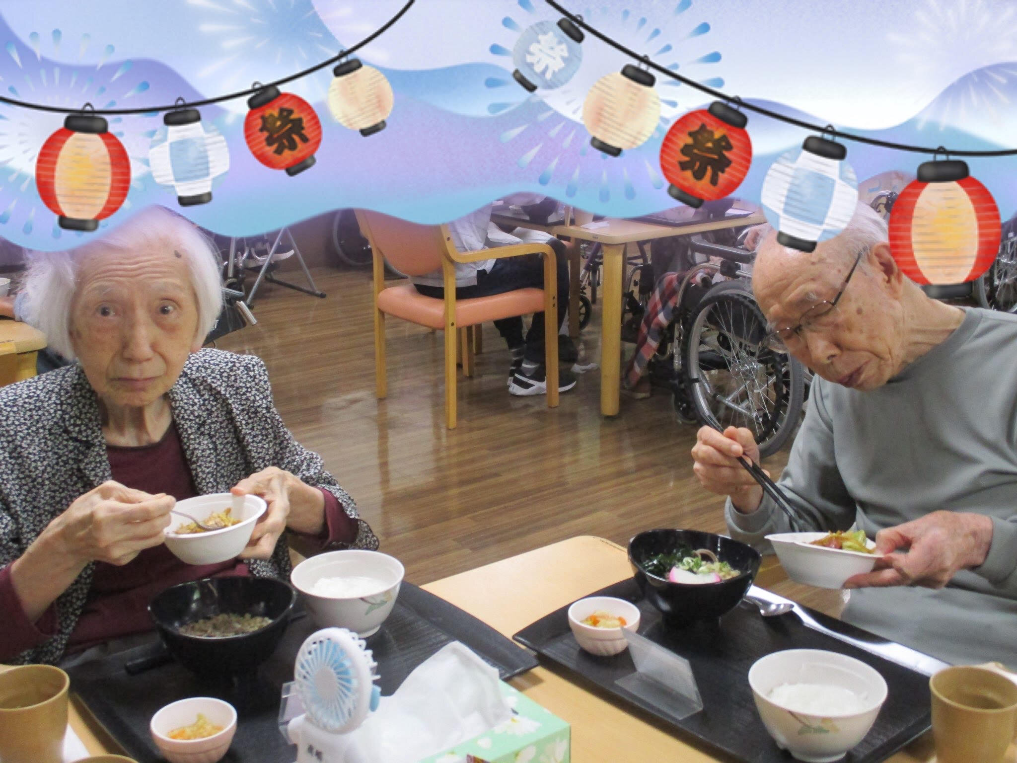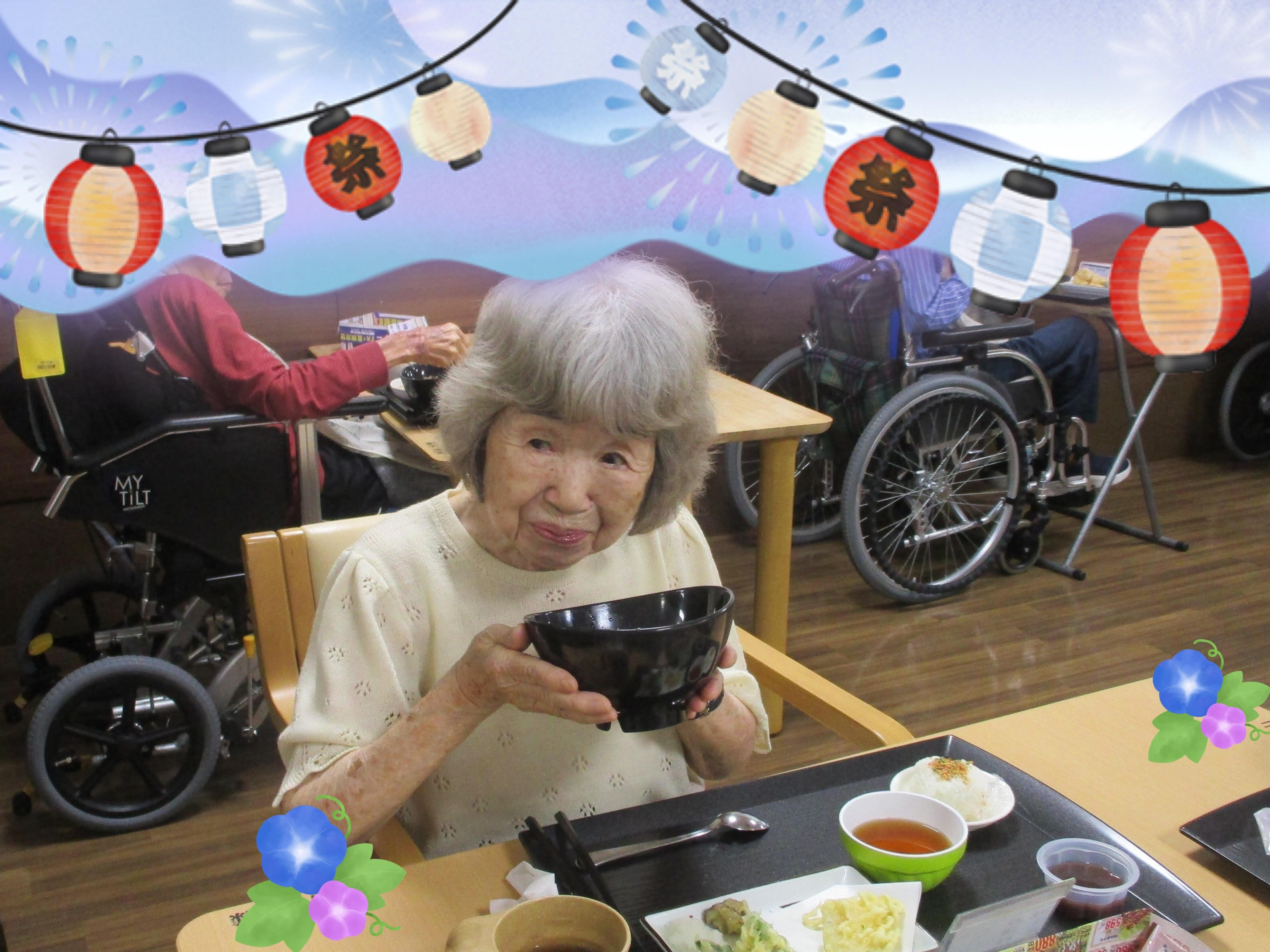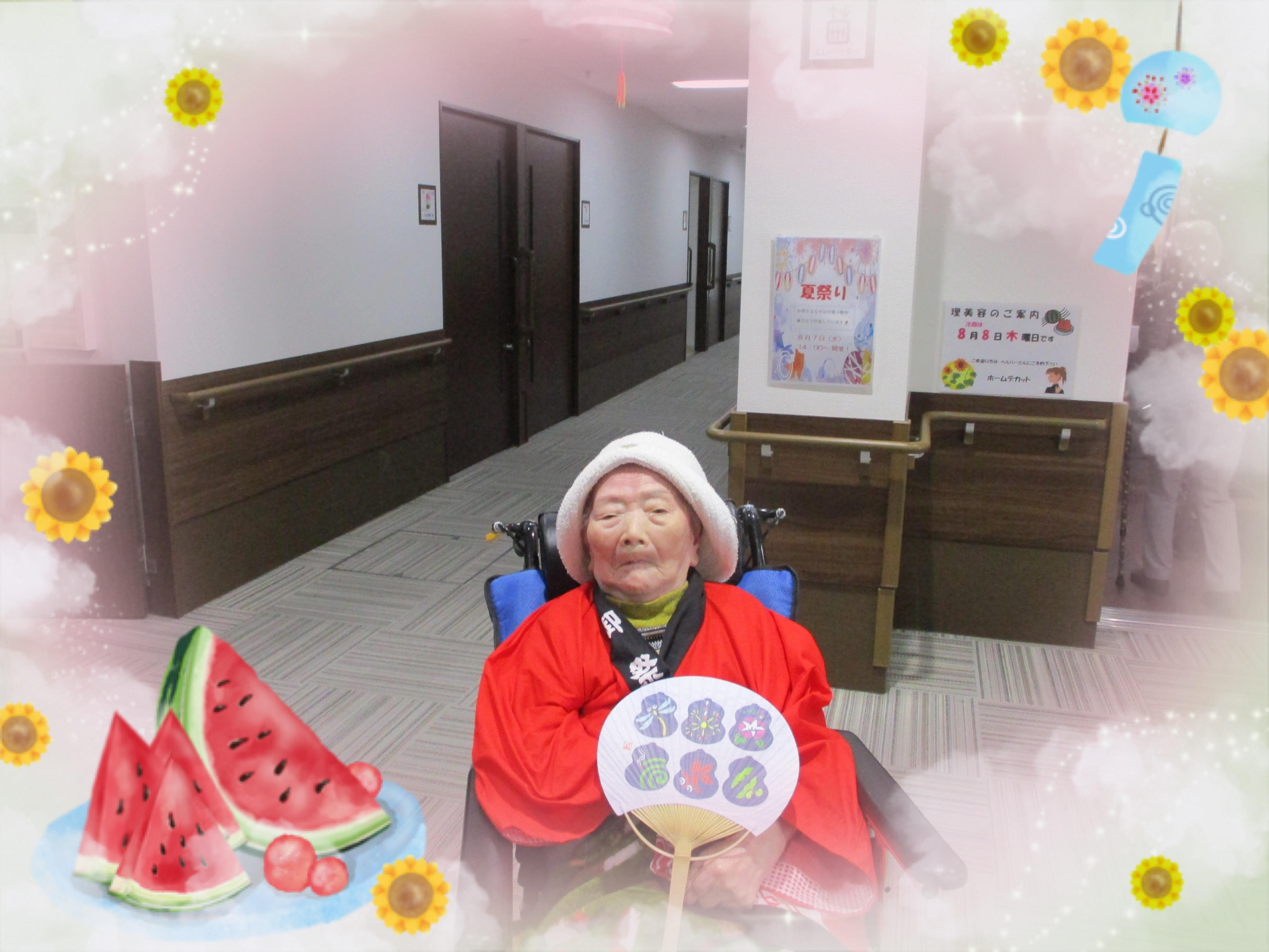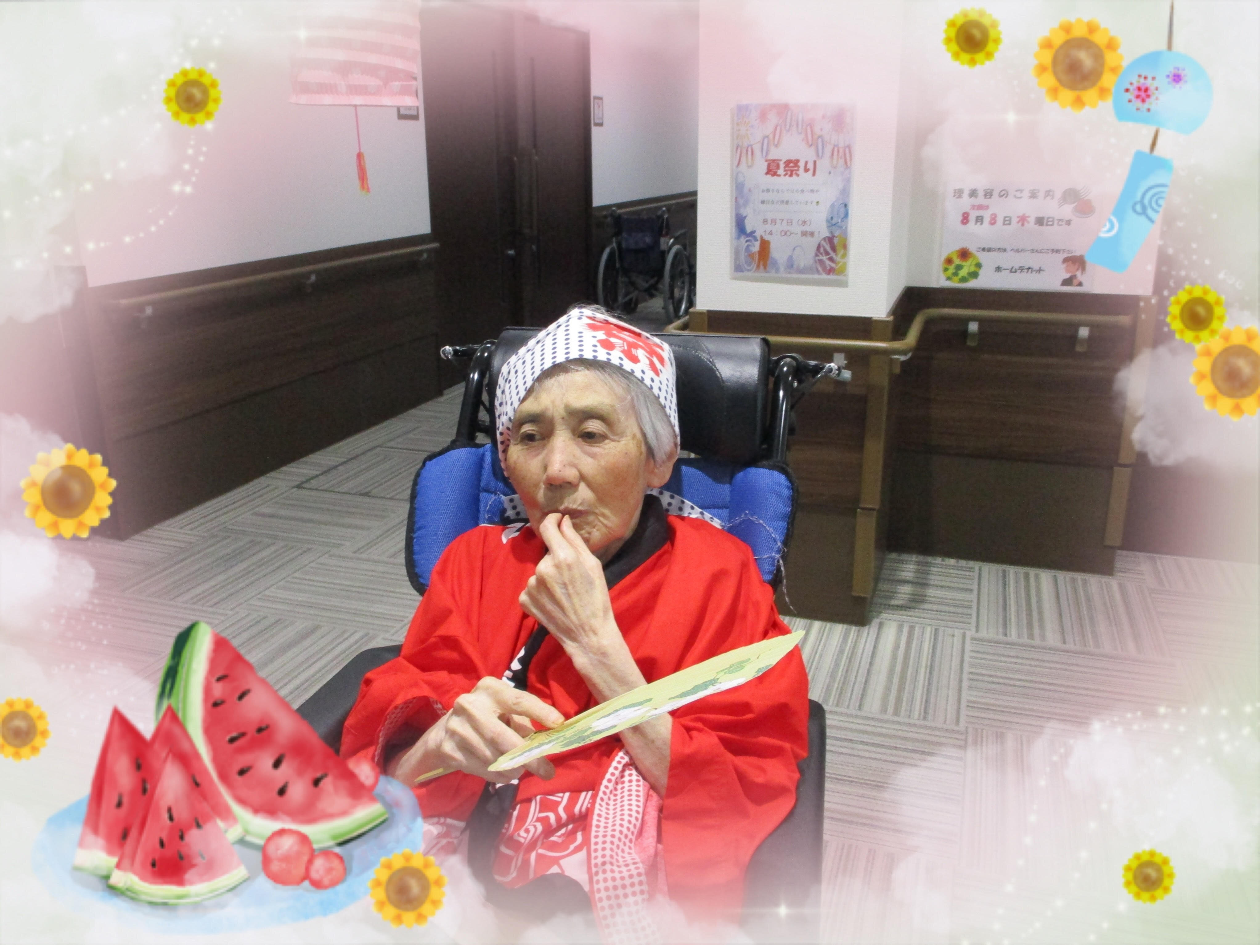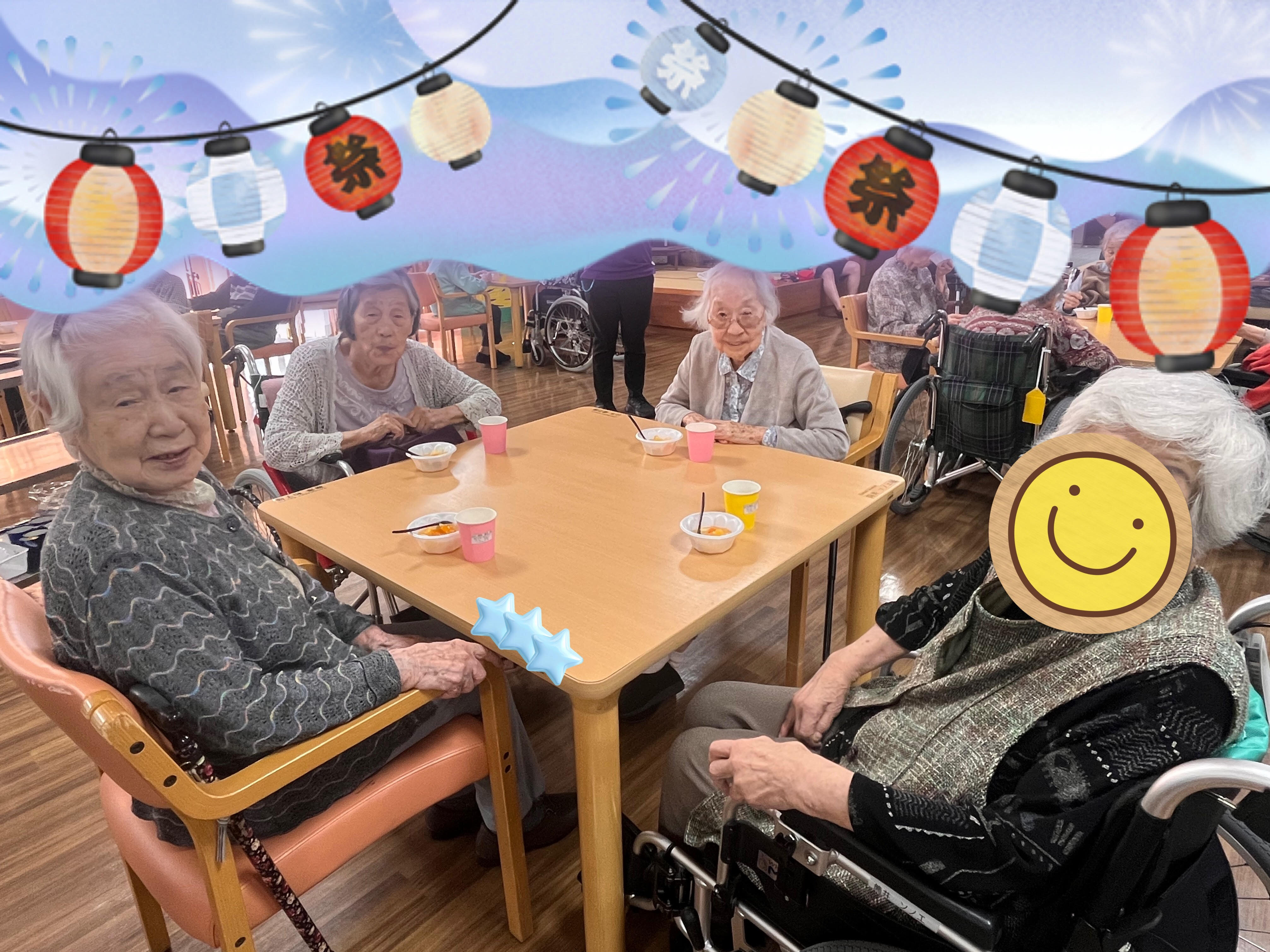 夏祭りでご入居者のみなさまに法被を着ていただきました!