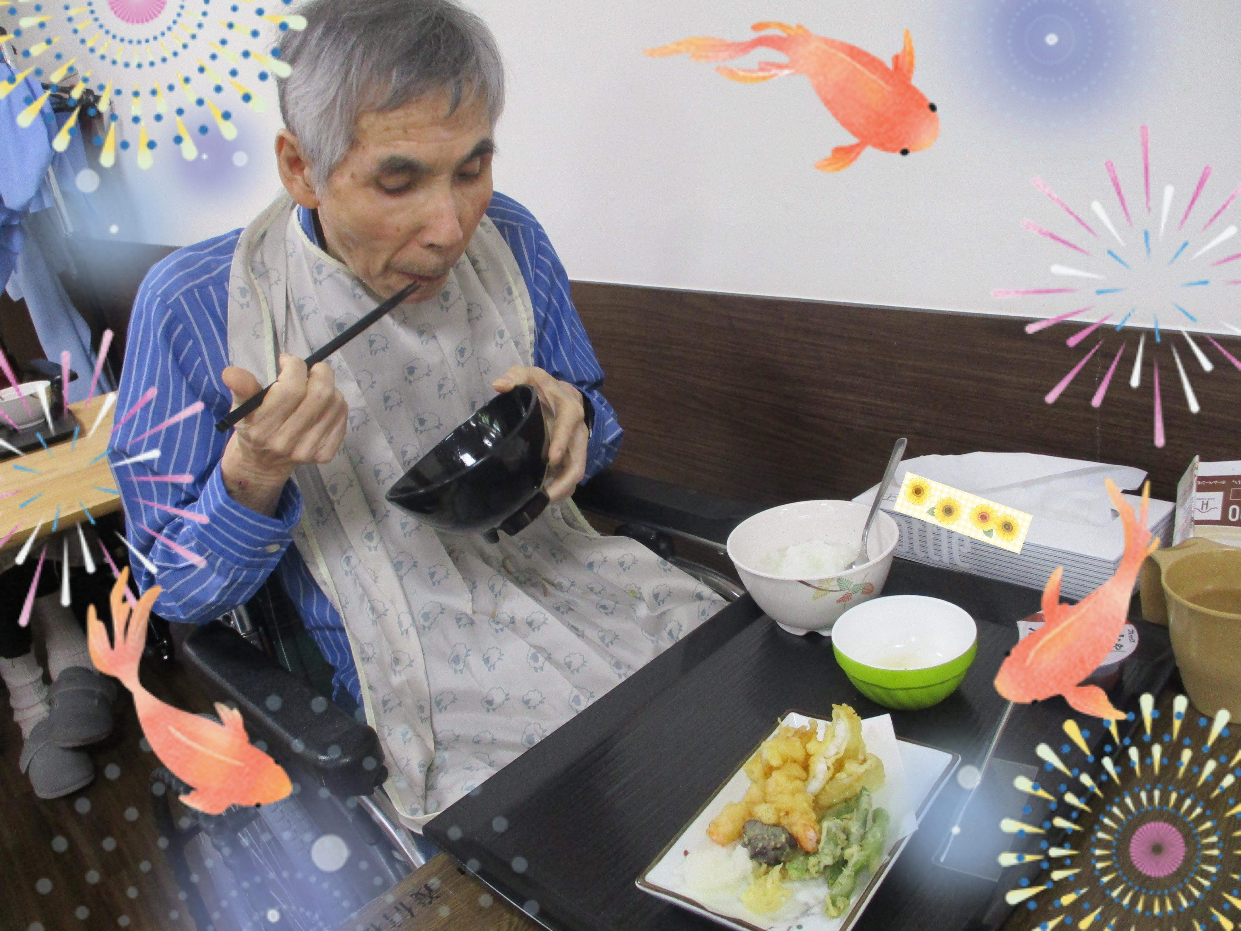 聞き取りの段階から「天ざる食べたかってん~!!」と楽しみにされていたご入居者が多かった今回のメニュー。
