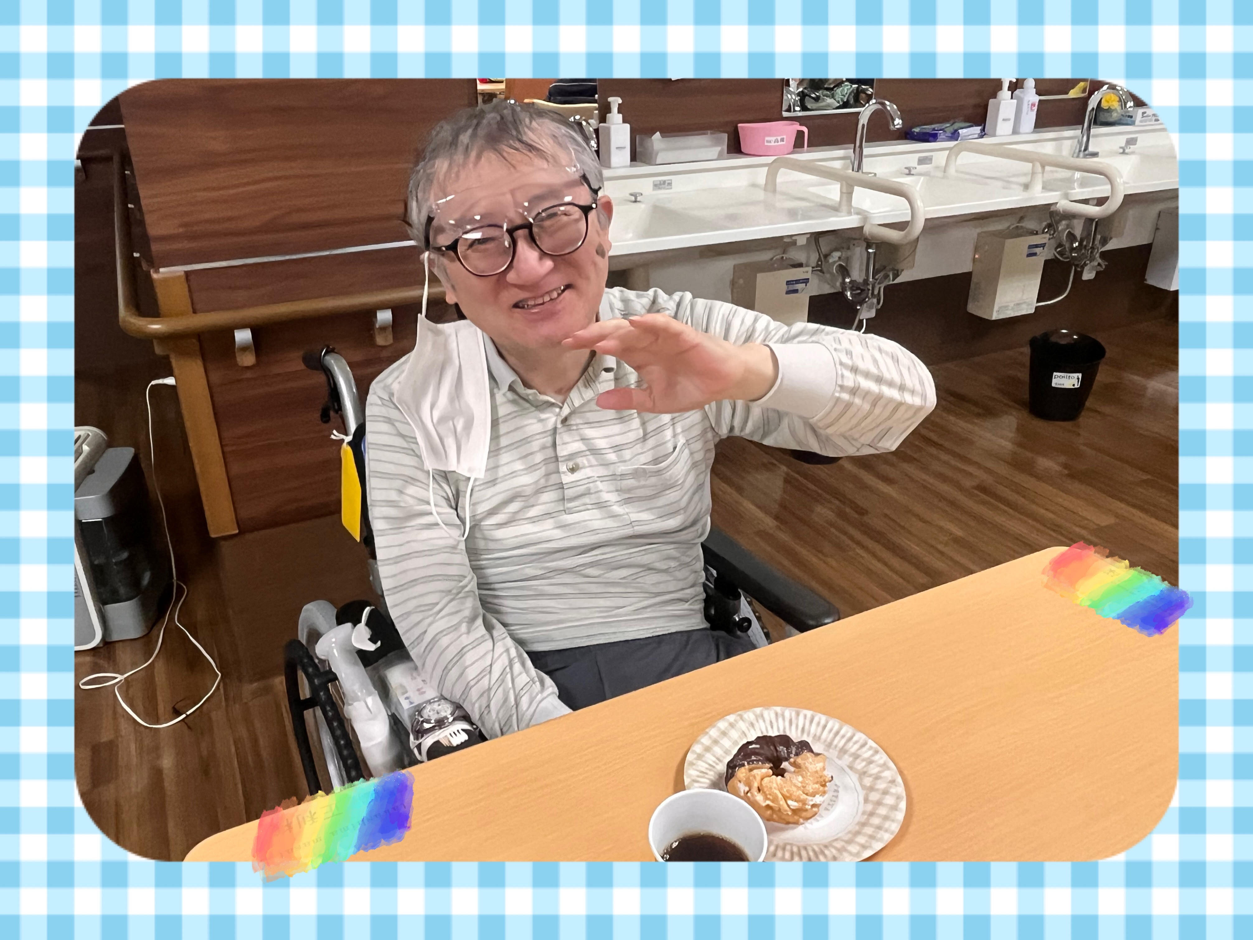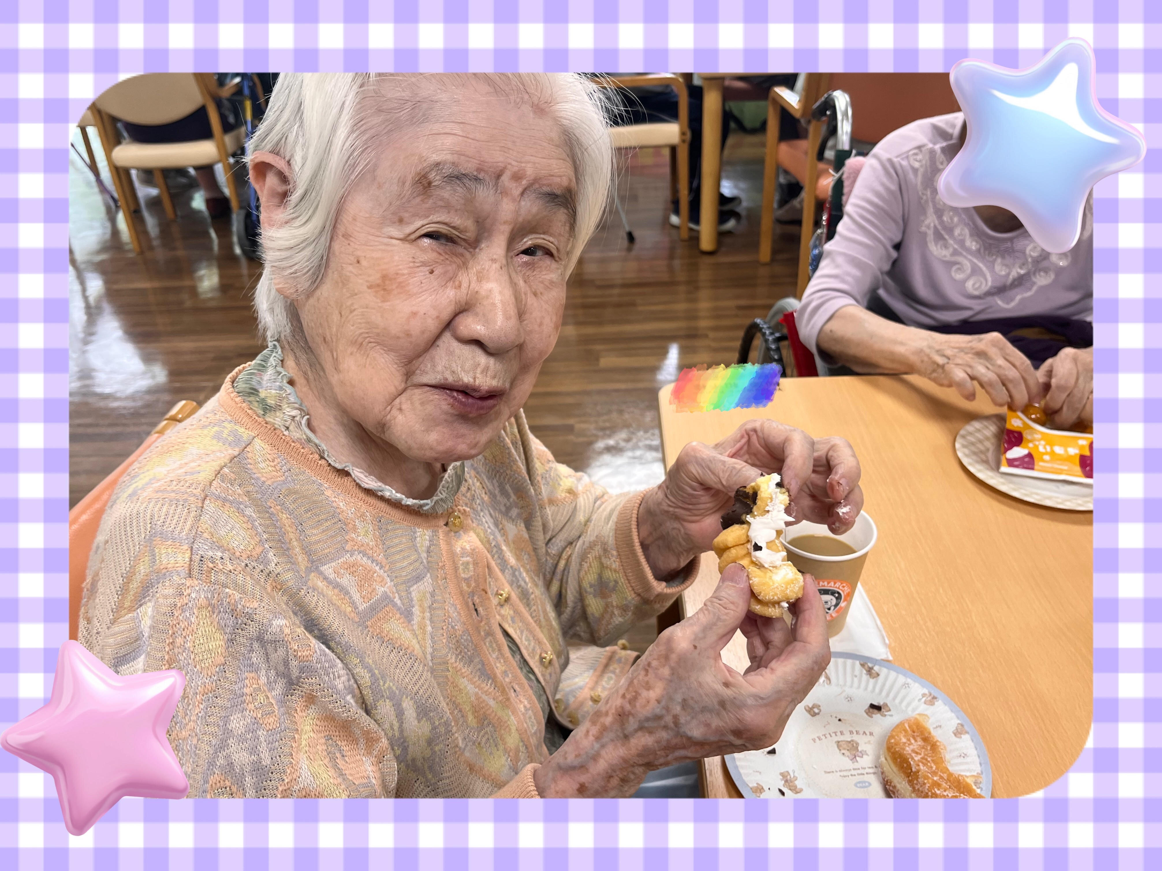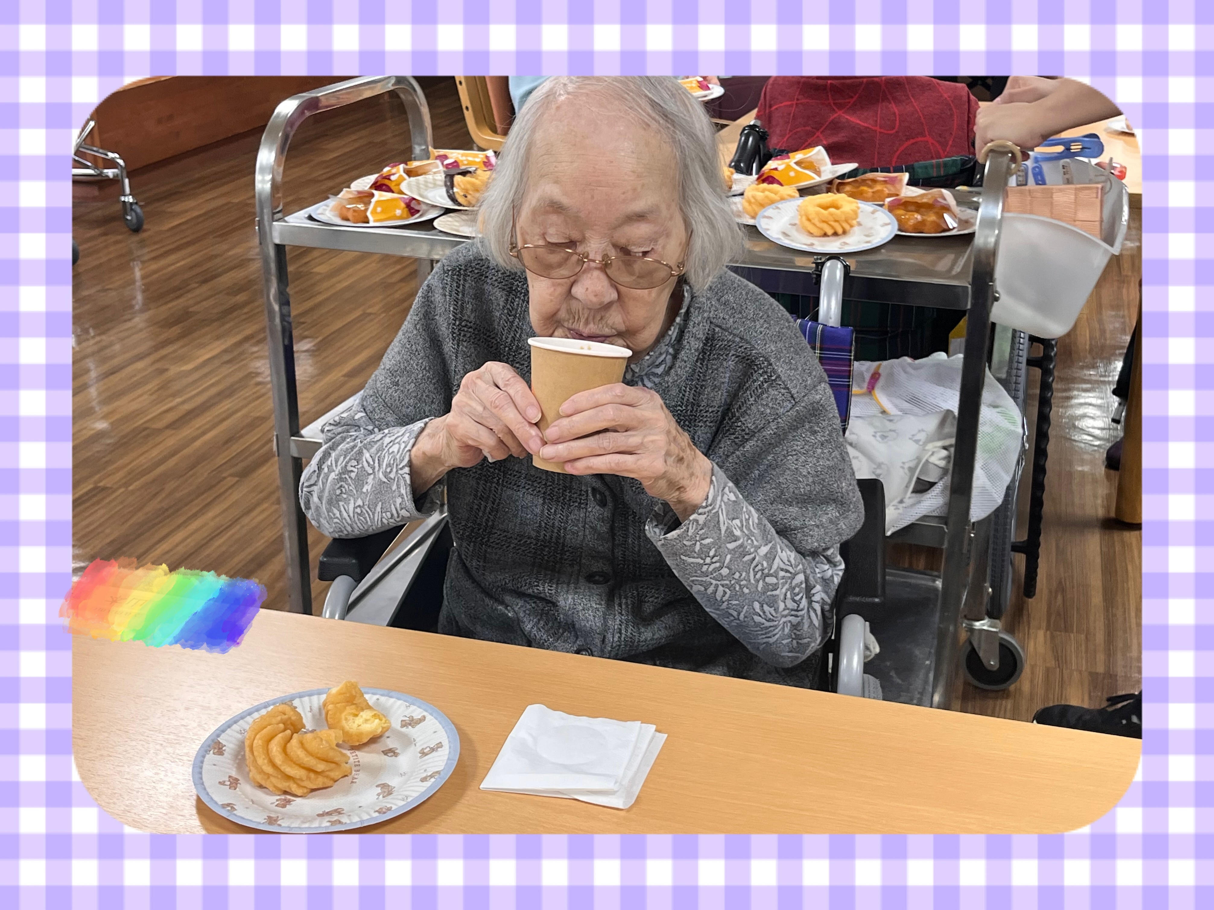 おやつの時間に同テーブルのご入居者と談笑しながらゆっくりとした時間を過ごしていただきました(*^^*)