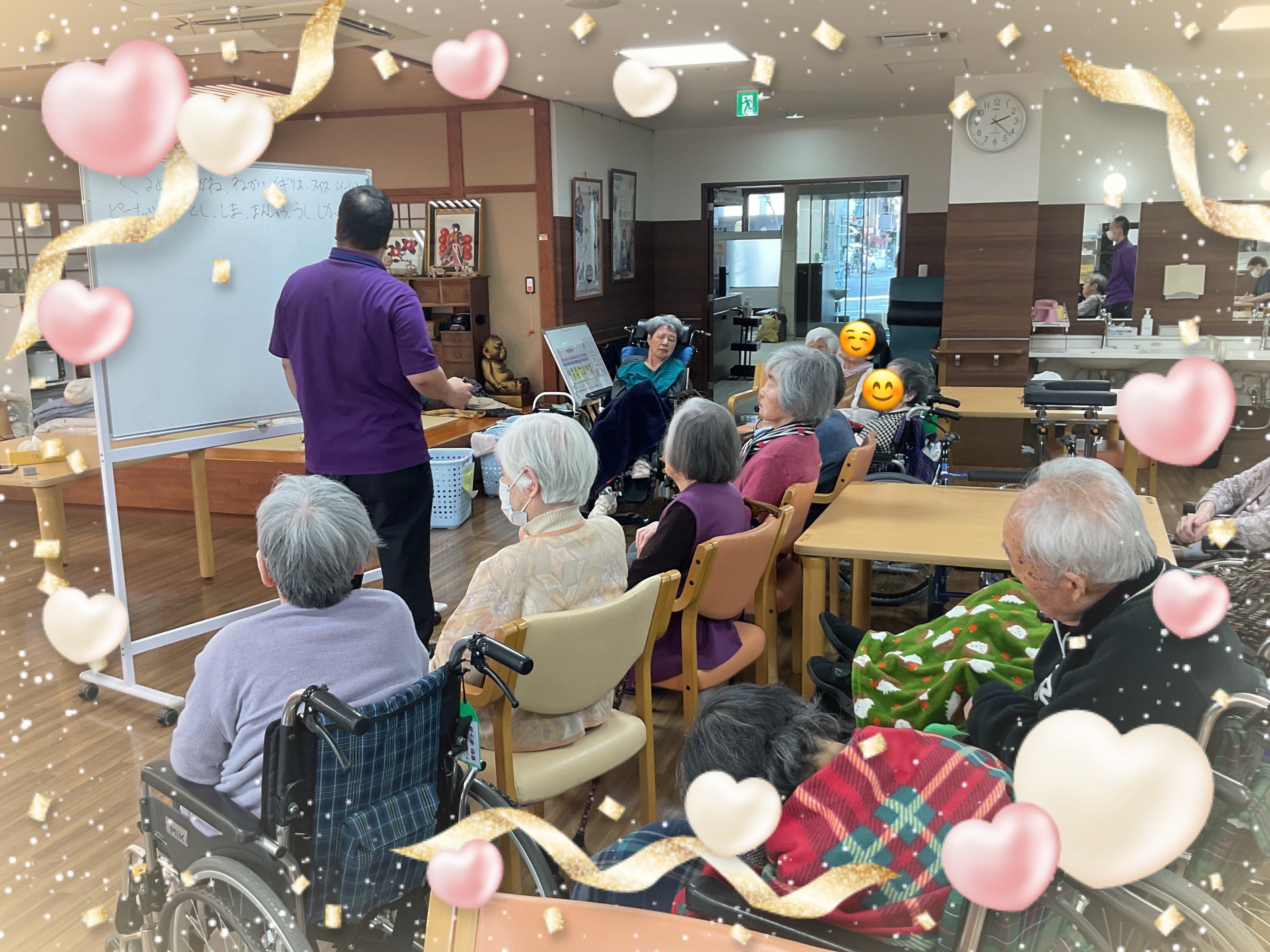 高槻では、毎日14時から30分程度食堂でレクリエーションを実施しています。