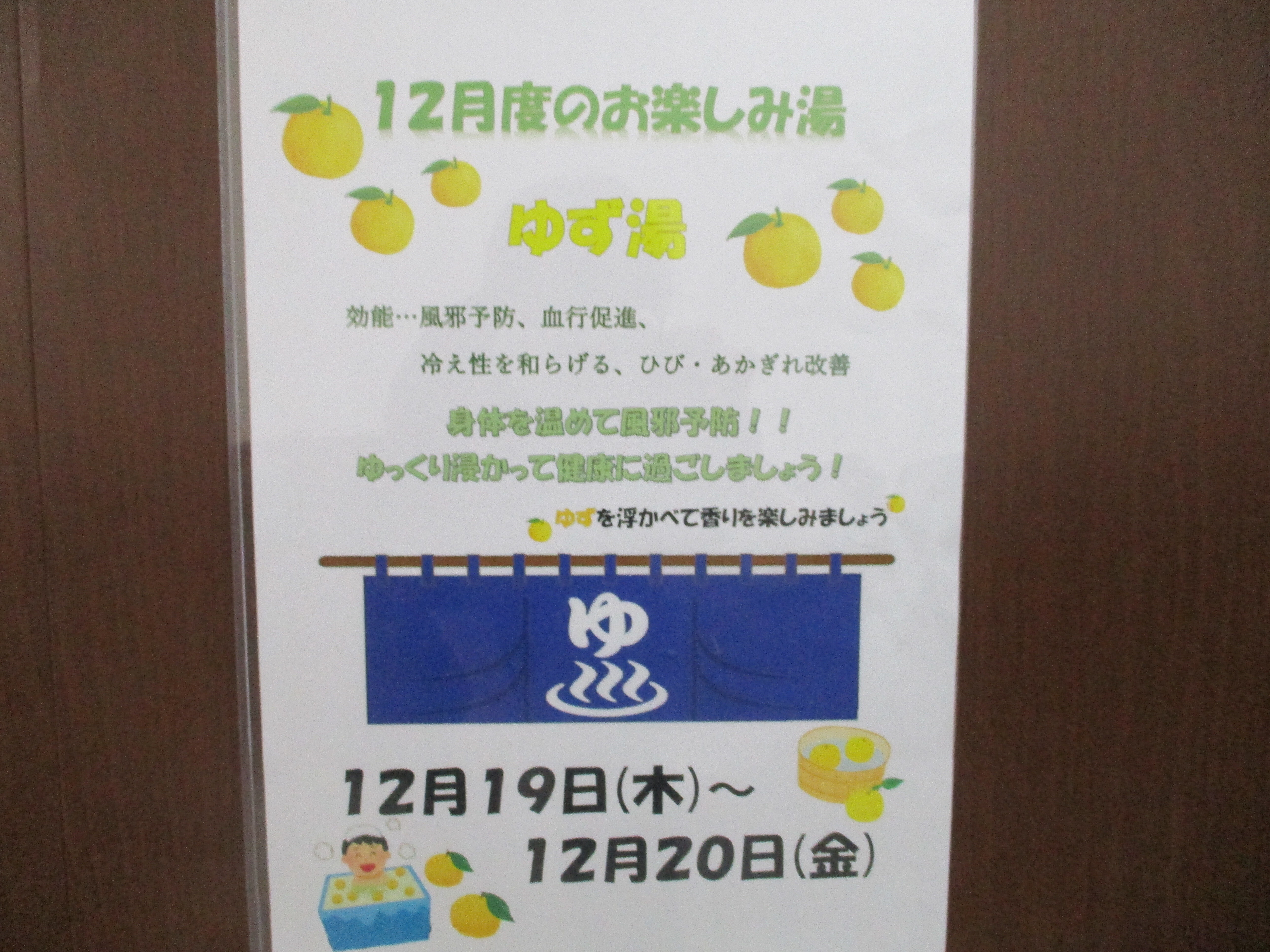 柚子を浮かべて、目でも香りでも柚子湯を楽しんで頂きました♬