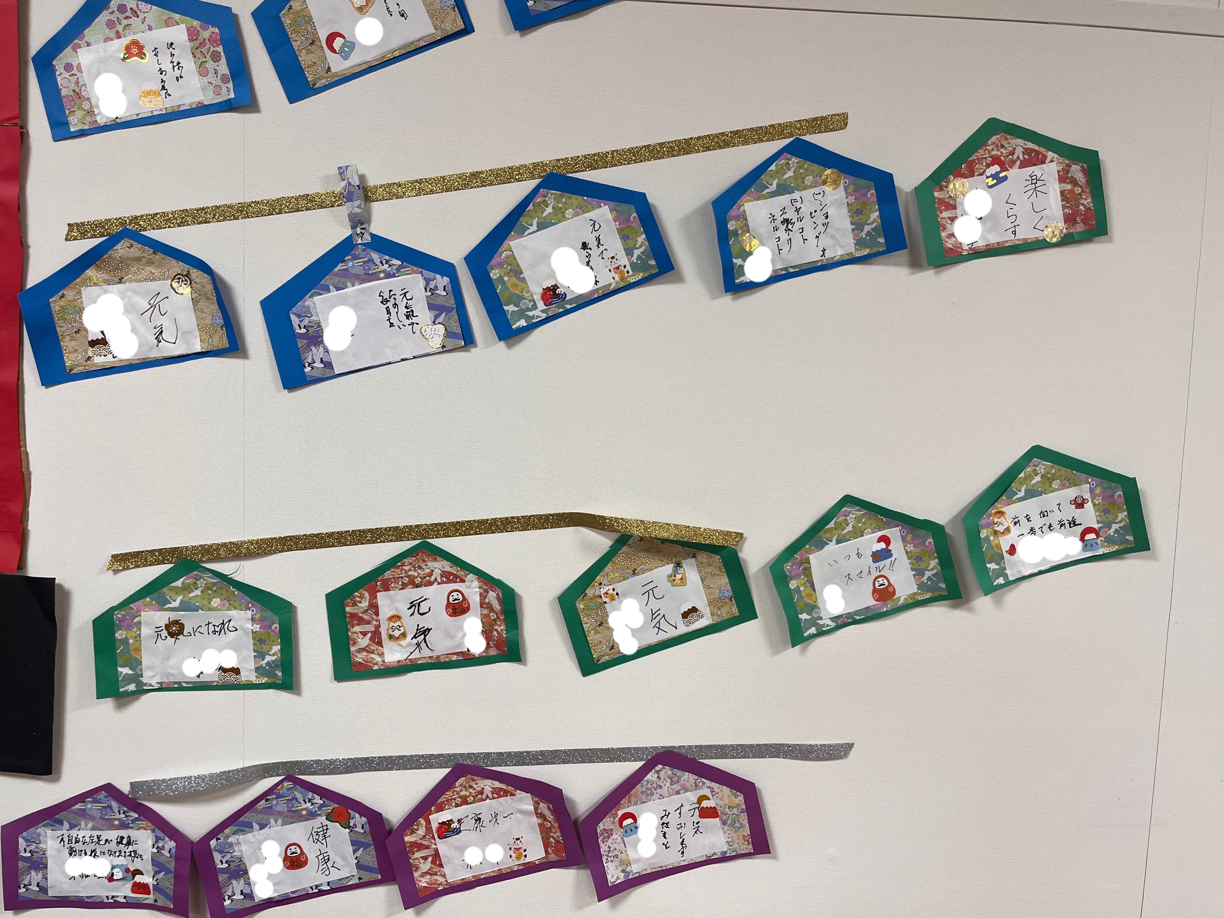 2025年の抱負をご自身で書ける方は書いていただき、書くことは難しい方は職員で代筆して絵馬の完成!♬