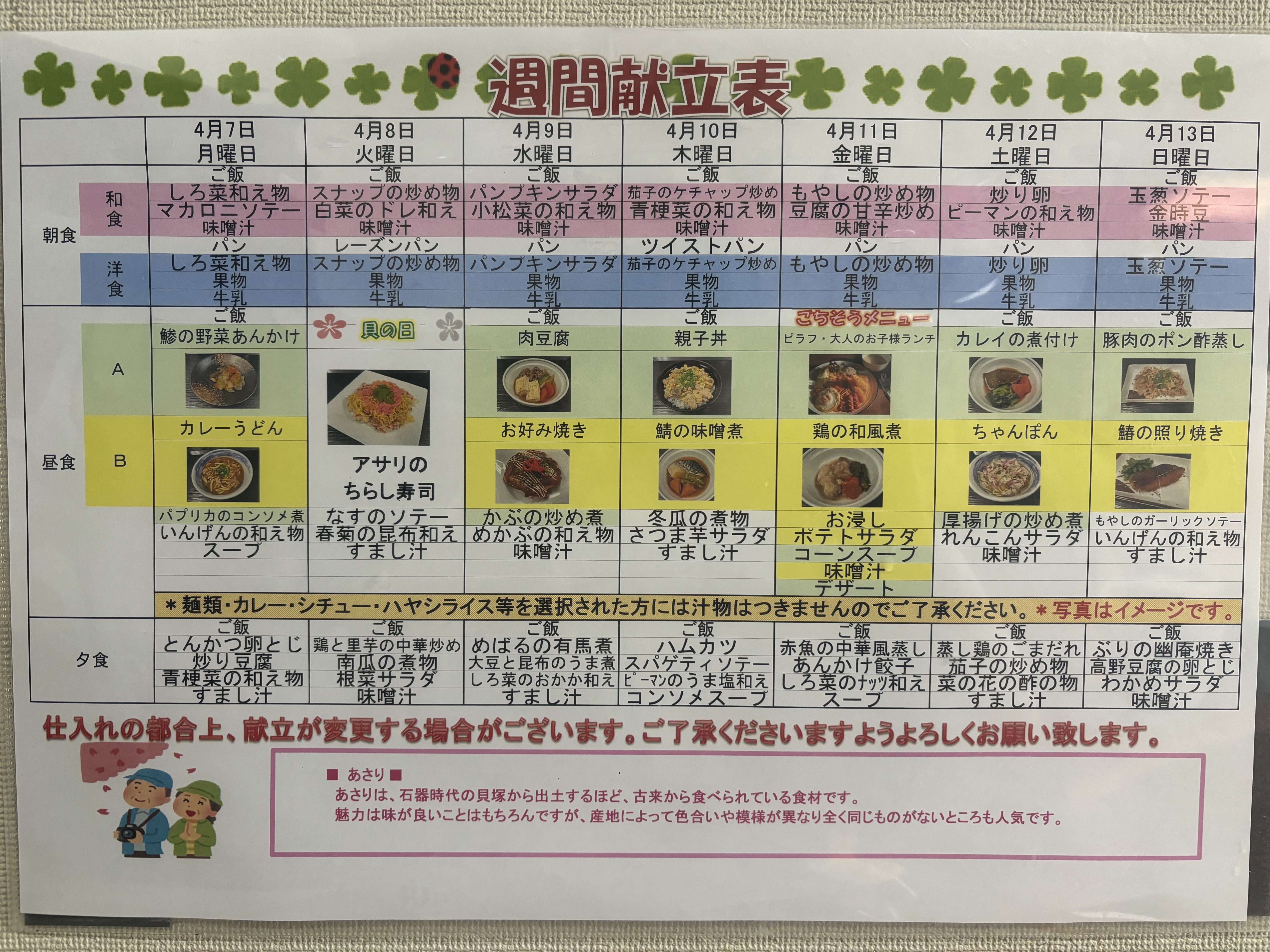 4/7(月)~4/13までの献立をご紹介します(^^♪
