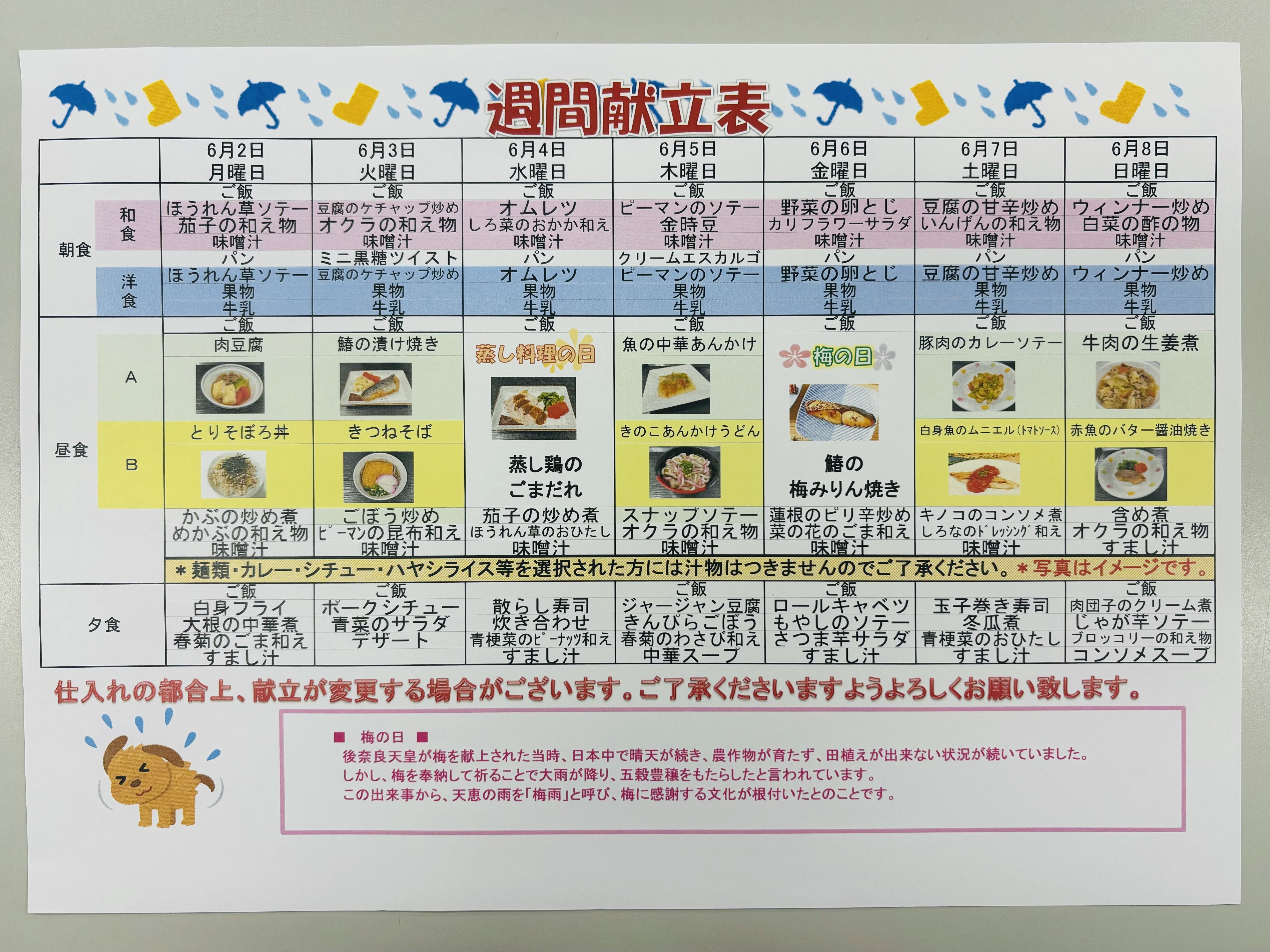 本日は6/2~6/15までの献立をお届けします(#^.^#)