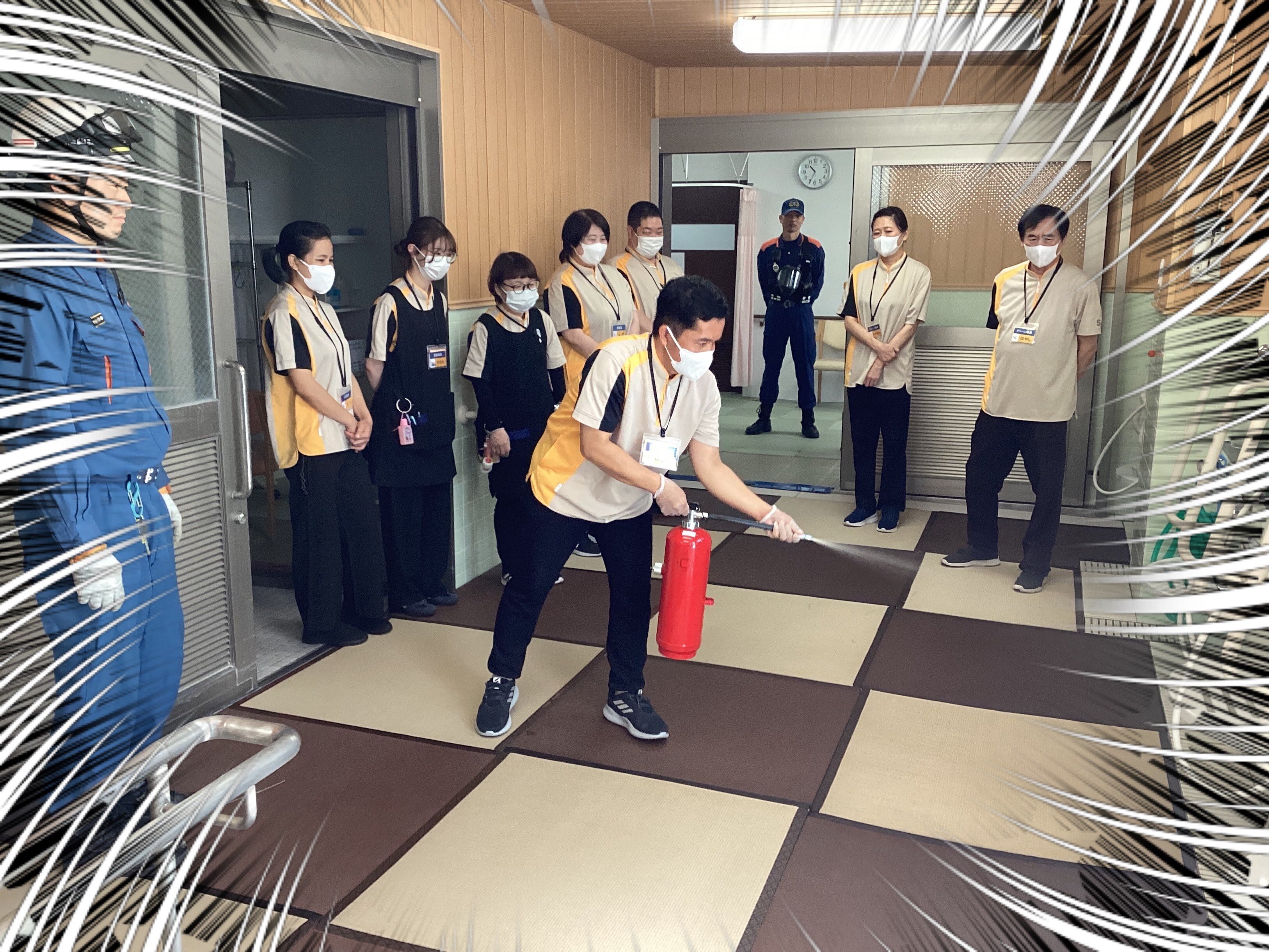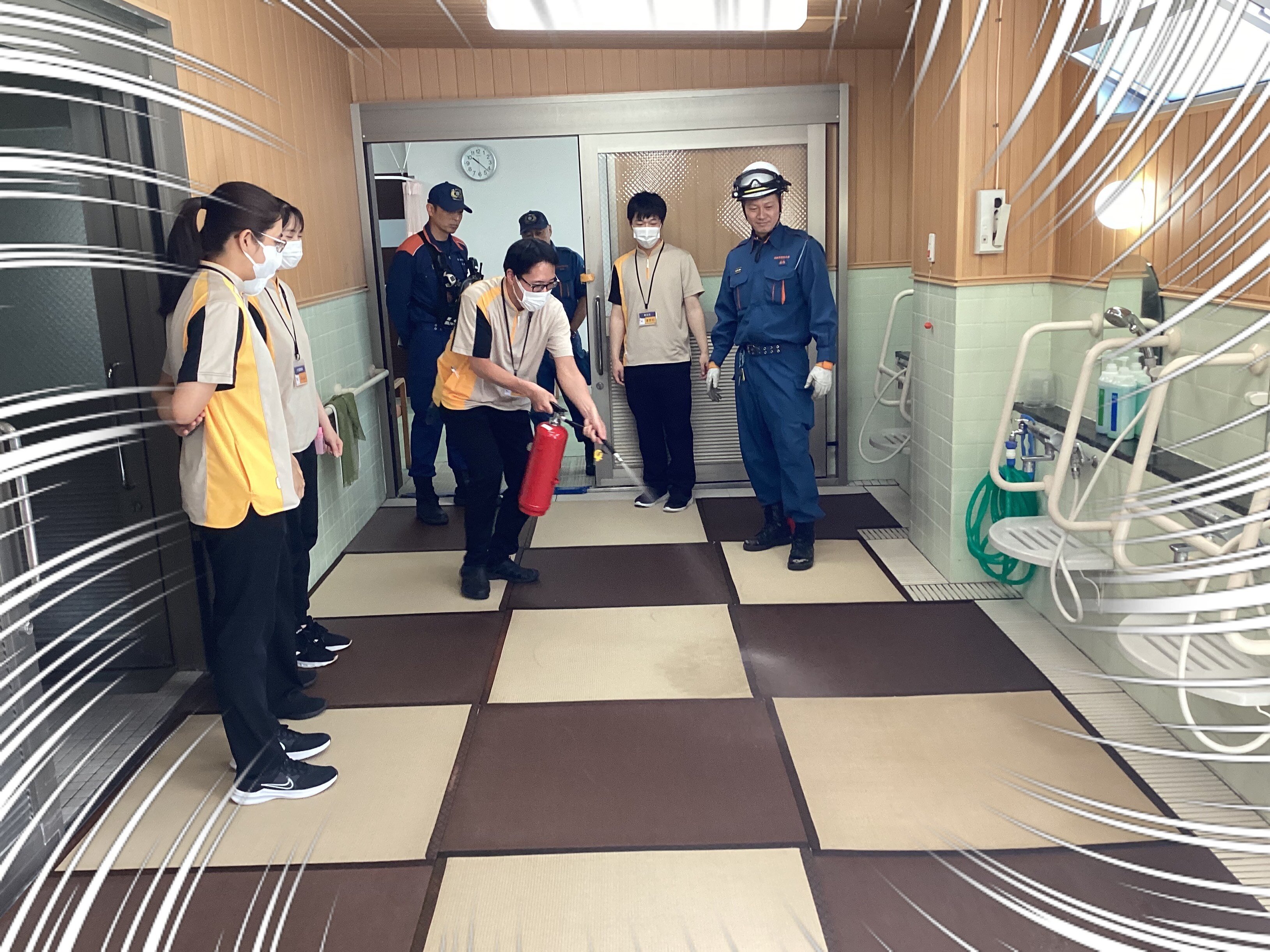 2組に分かれて、その日の勤務スタッフに消防訓練を行いました。