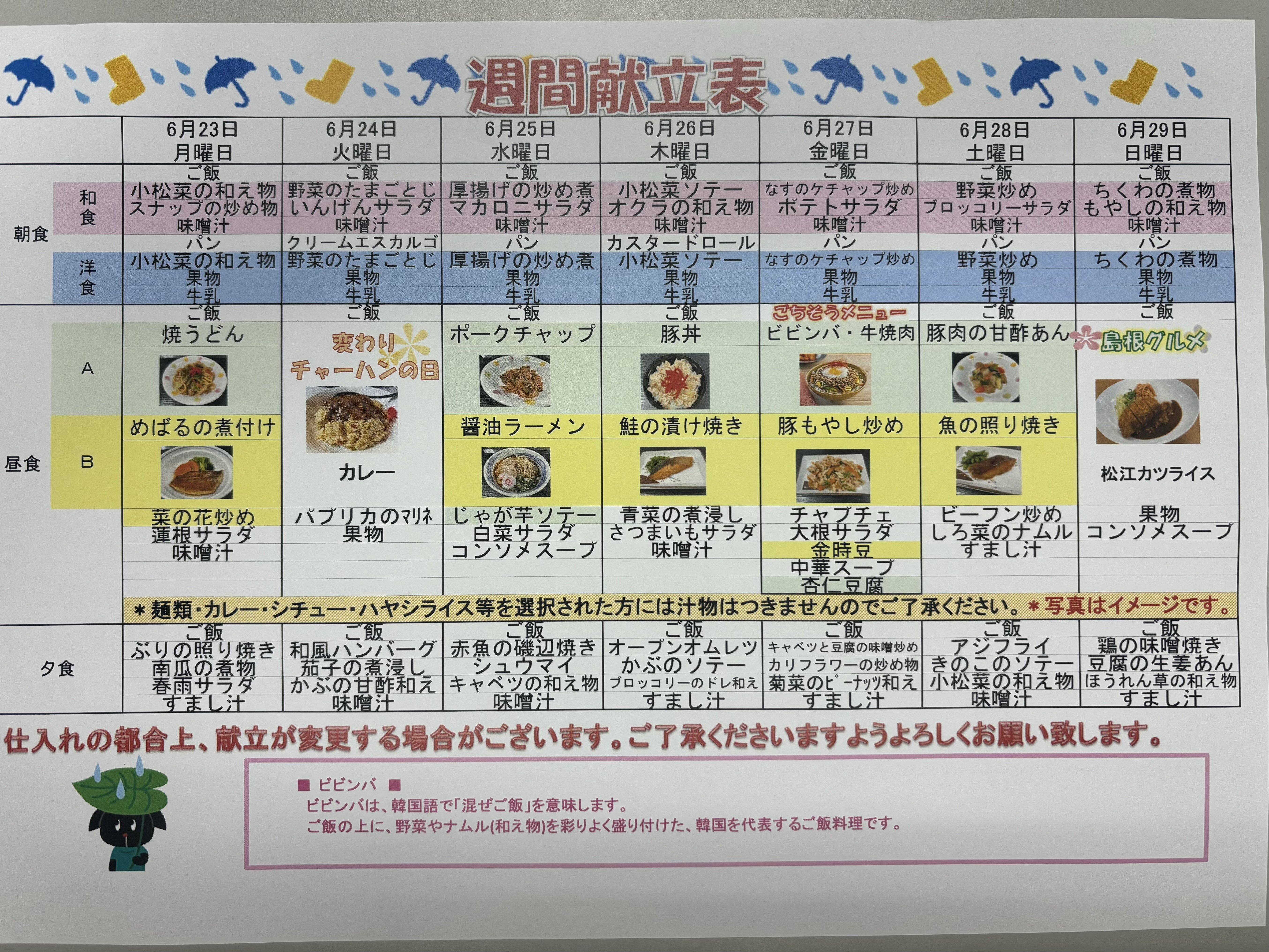 本日は6/16(月)~6/29(日)までの献立をお届けします(#^.^#)