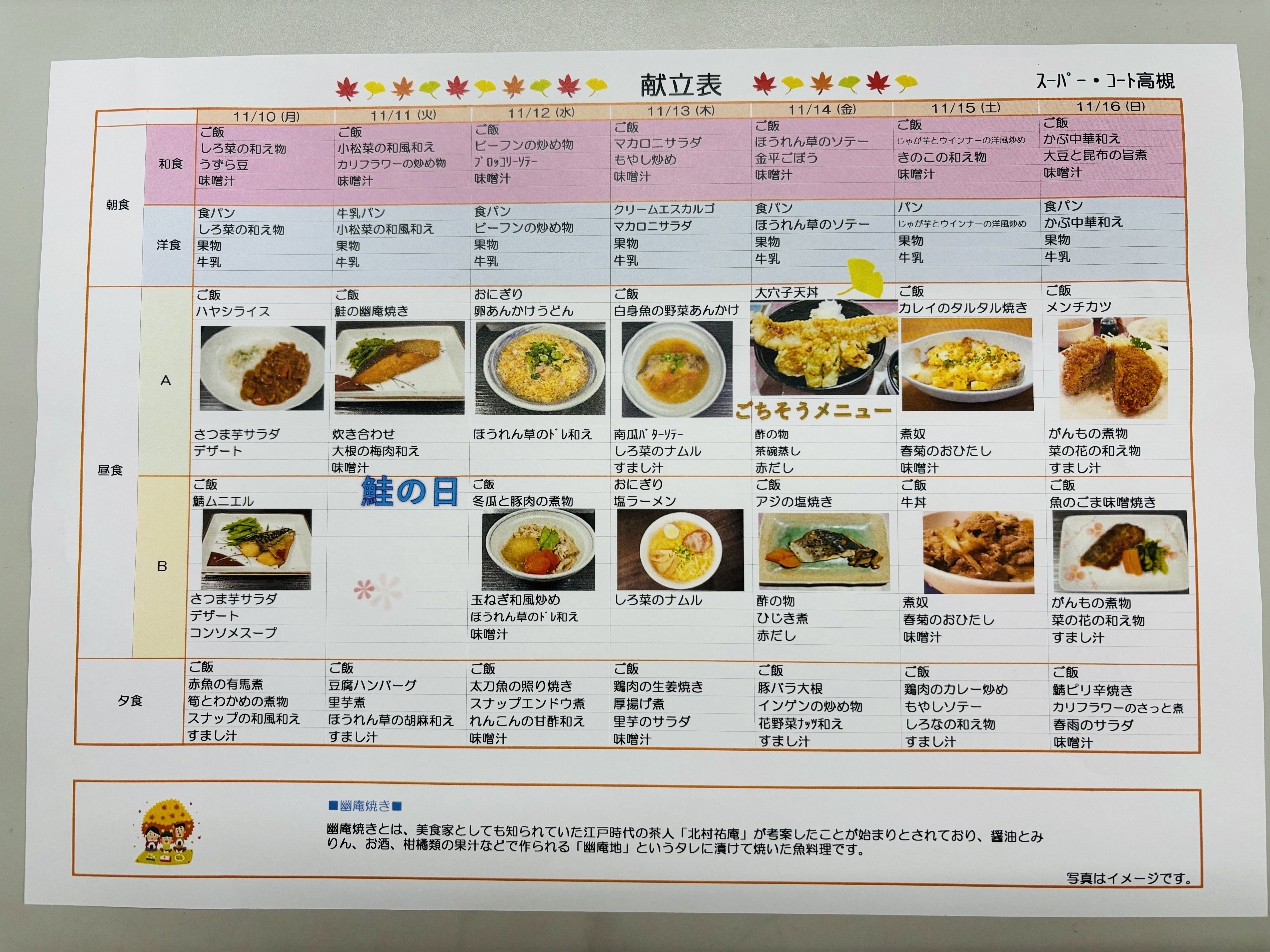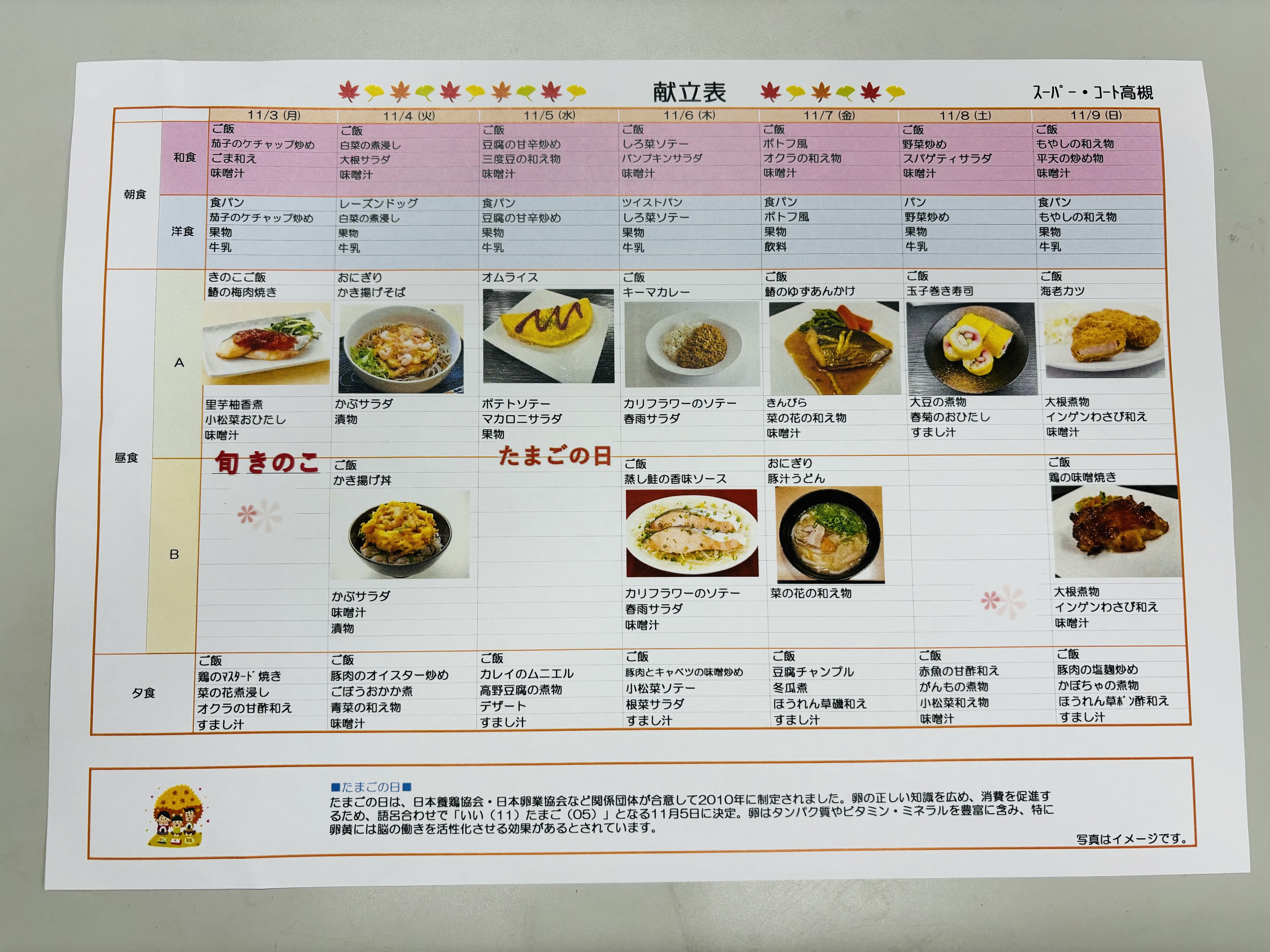 11/3(月)~11/16(日)の献立をご紹介しますね(^^♪