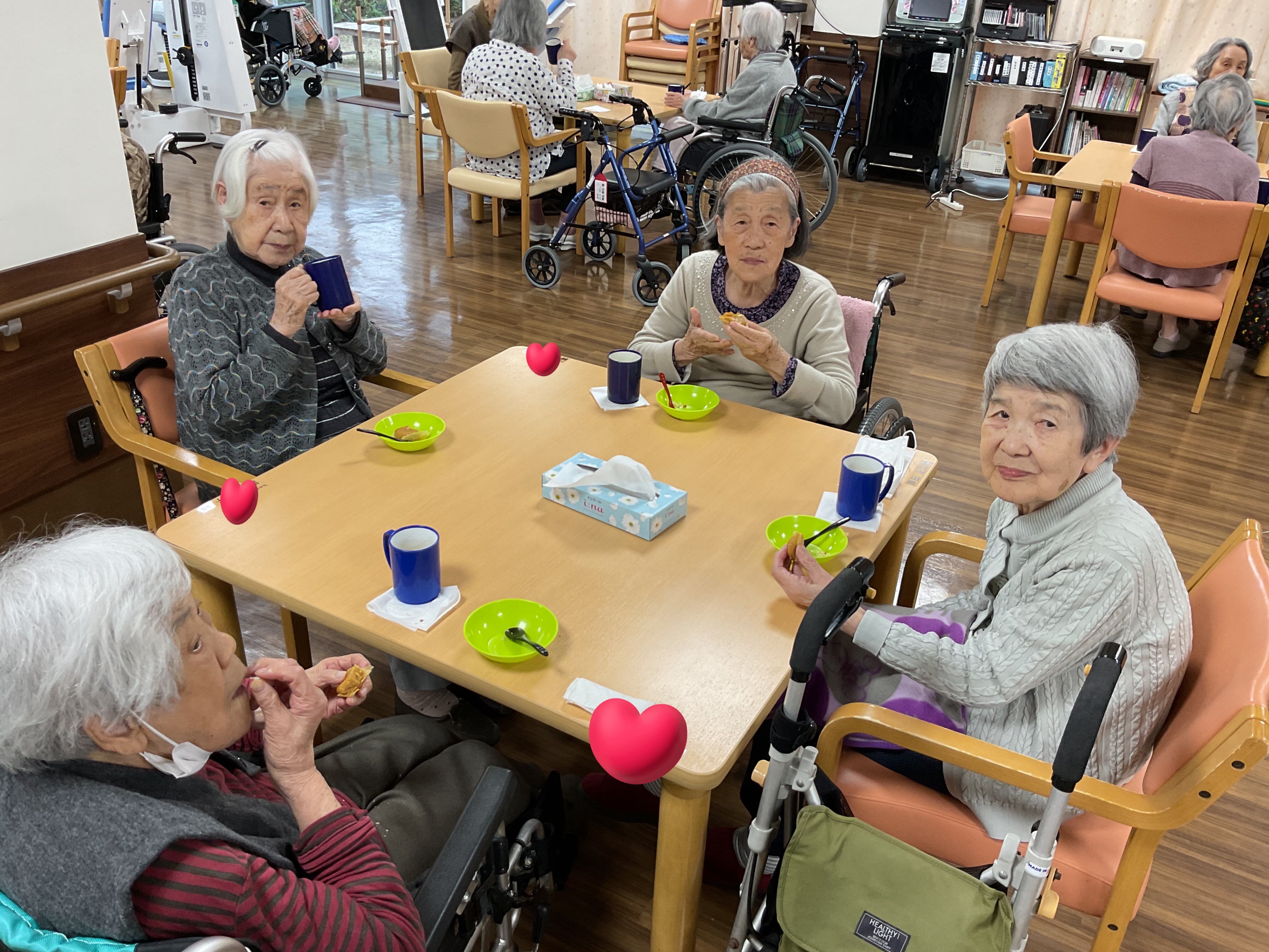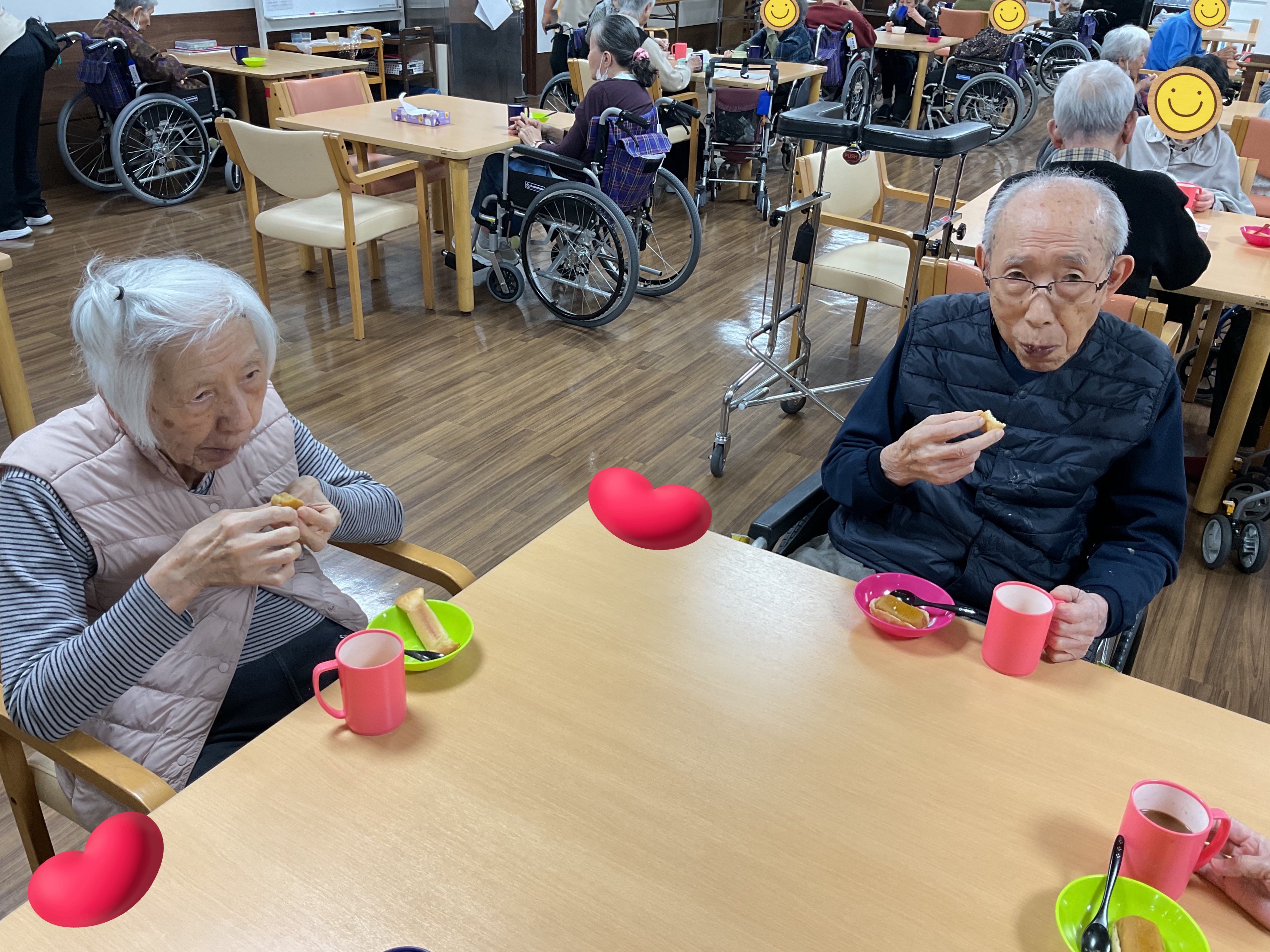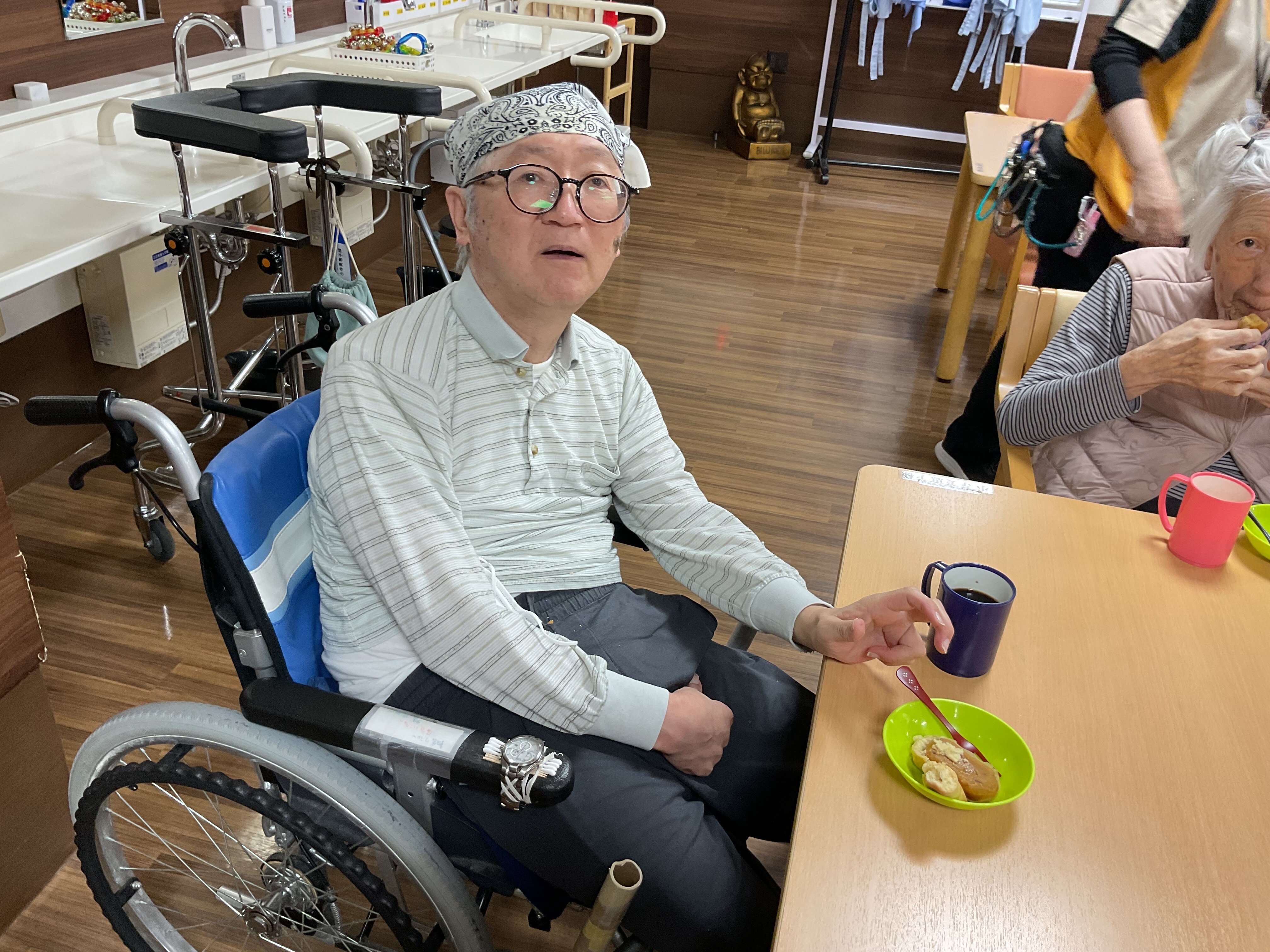 午前中に「園児たちとふれあい」、午後は「音楽レクとおやつ」